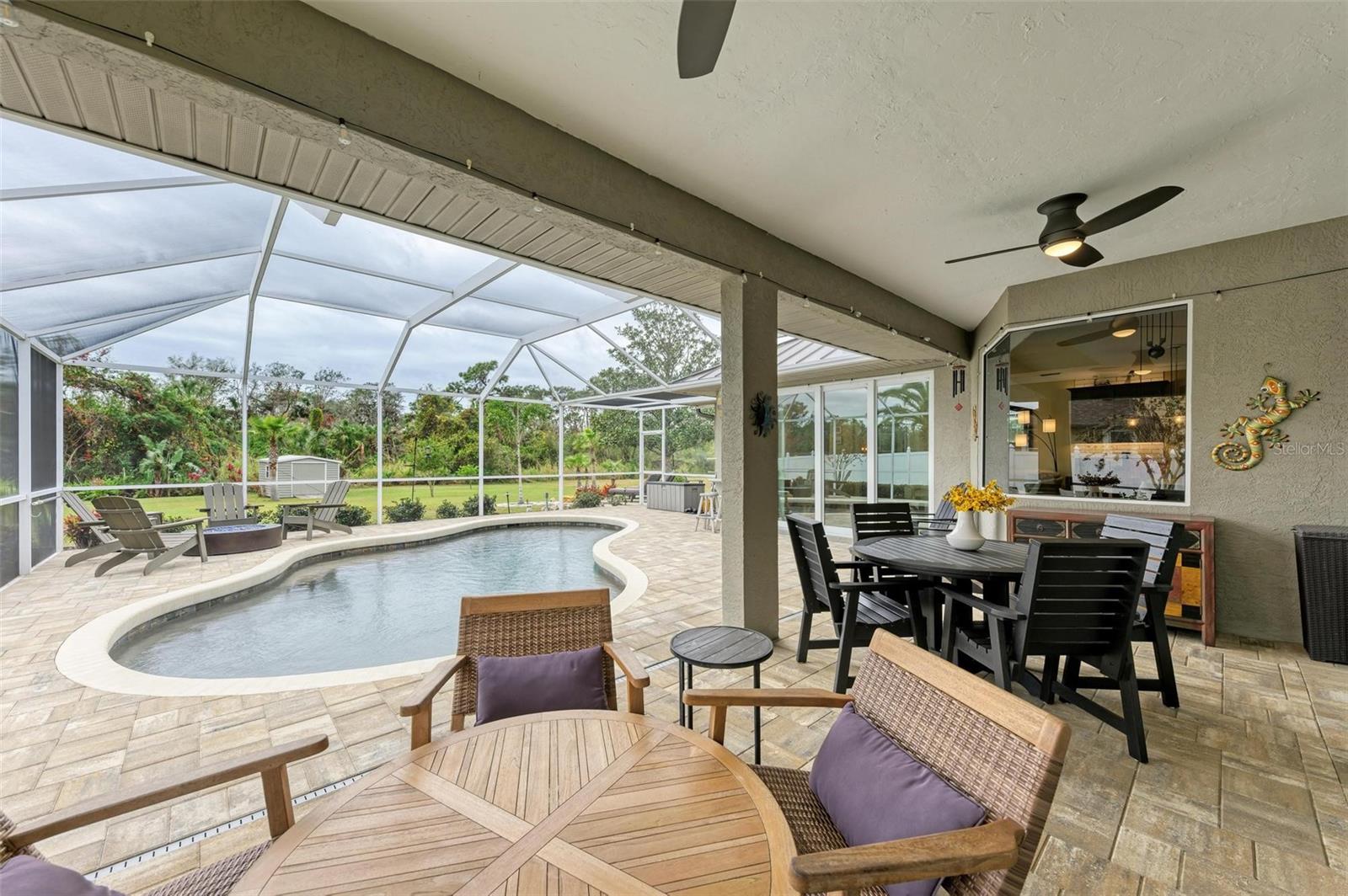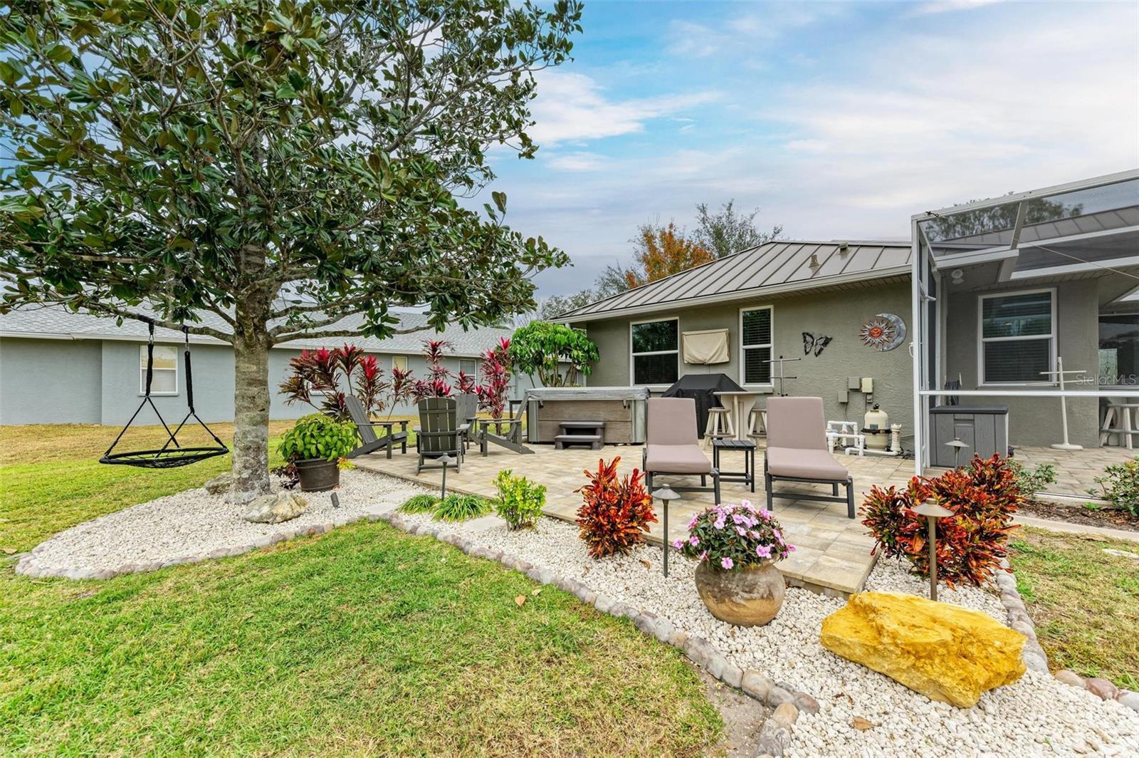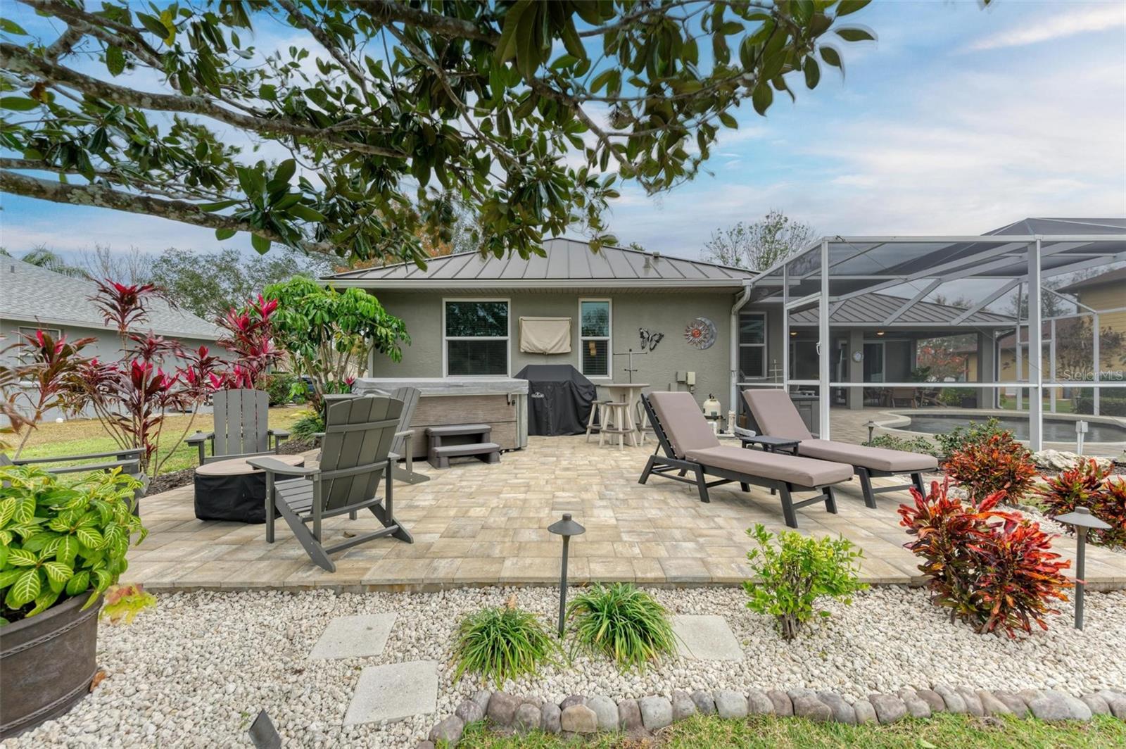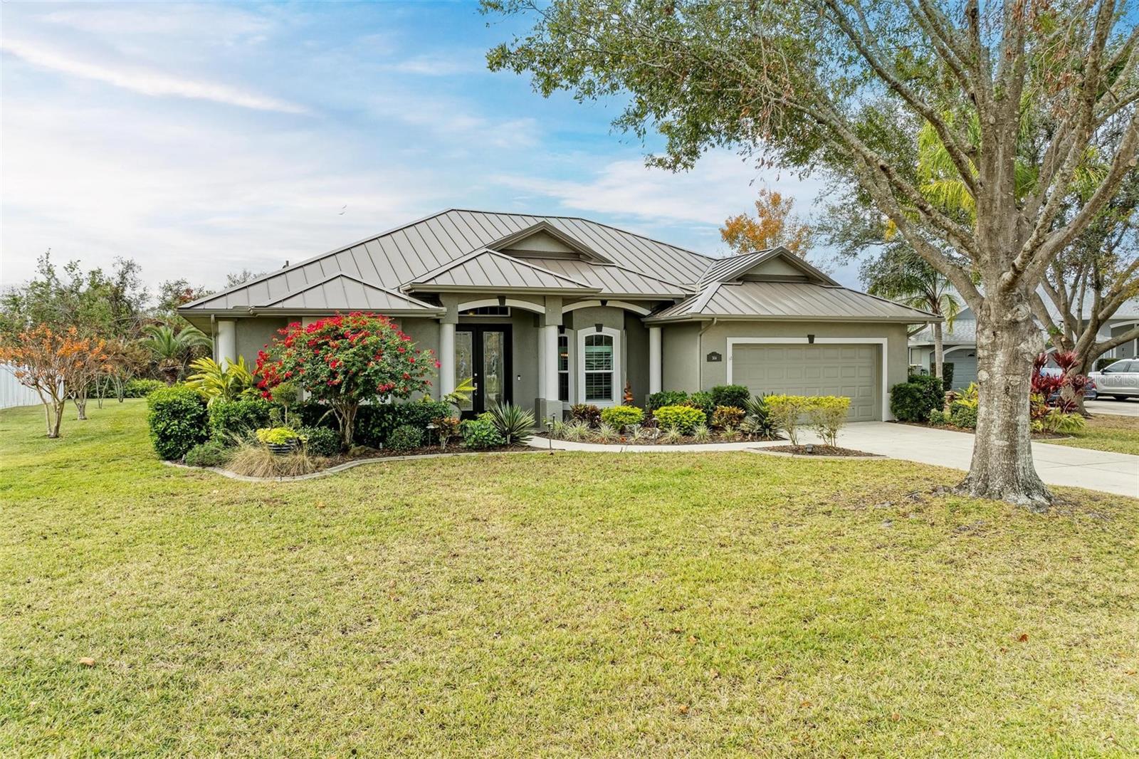 Stunning 3-Bedroom ONE owner Home with Luxurious Upgrades and Resort-Style Backyard on just over 3/4 of an acre! This beautifully remodeled home combines warmth and elegance with modern upgrades. Enjoy the cozy ambiance of the electric fireplace, perfectly complemented by the inviting open layout. The custom kitchen is a chef’s dream, featuring high-end cabinets, a gas stove powered by a 100-gallon propane tank, and thoughtful design elements that elevate every culinary experience. Every detail has been carefully curated, with highlights including: • Completely remodeled bathrooms and new flooring throughout. • A durable and stylish standing seam bronze metal roof • Impact doors and windows, eliminating the need for shutters. The outdoor spaces are equally impressive: • New pavers and pool coping, an extended patio, and a standalone hot tub create the perfect setting for relaxation or entertaining. • Professionally designed landscape lighting in the front and backyard enhances the ambiance day and night. Located in the highly sought after Country Creek commiunity with no CDD fees and low HOA fees, this property offers both convenience and sophistication. A truly stunning home that checks all the boxes for comfort, style, and functionality. YOU DO NOT want to miss this one! Its gorgeous! *Feels much bigger than 2288 sq ft. Schedule your private tour today to experience this amazing property firsthand!