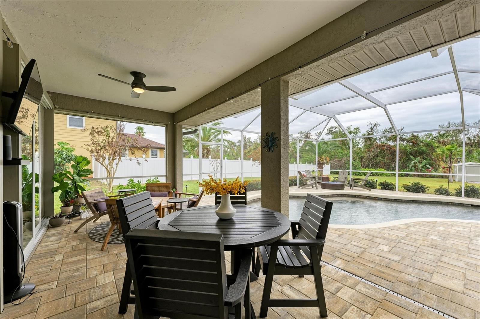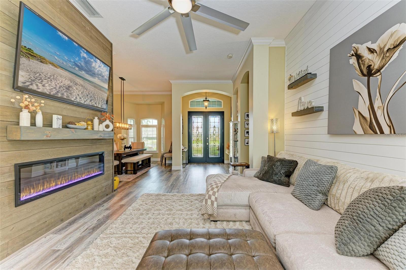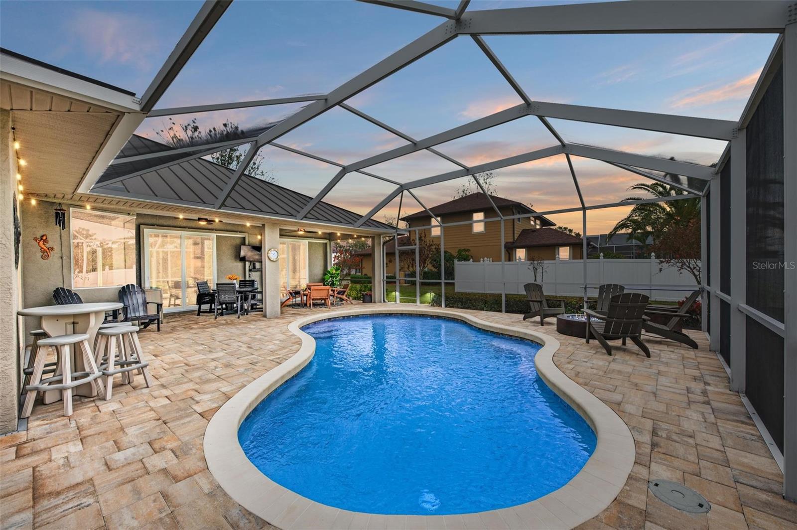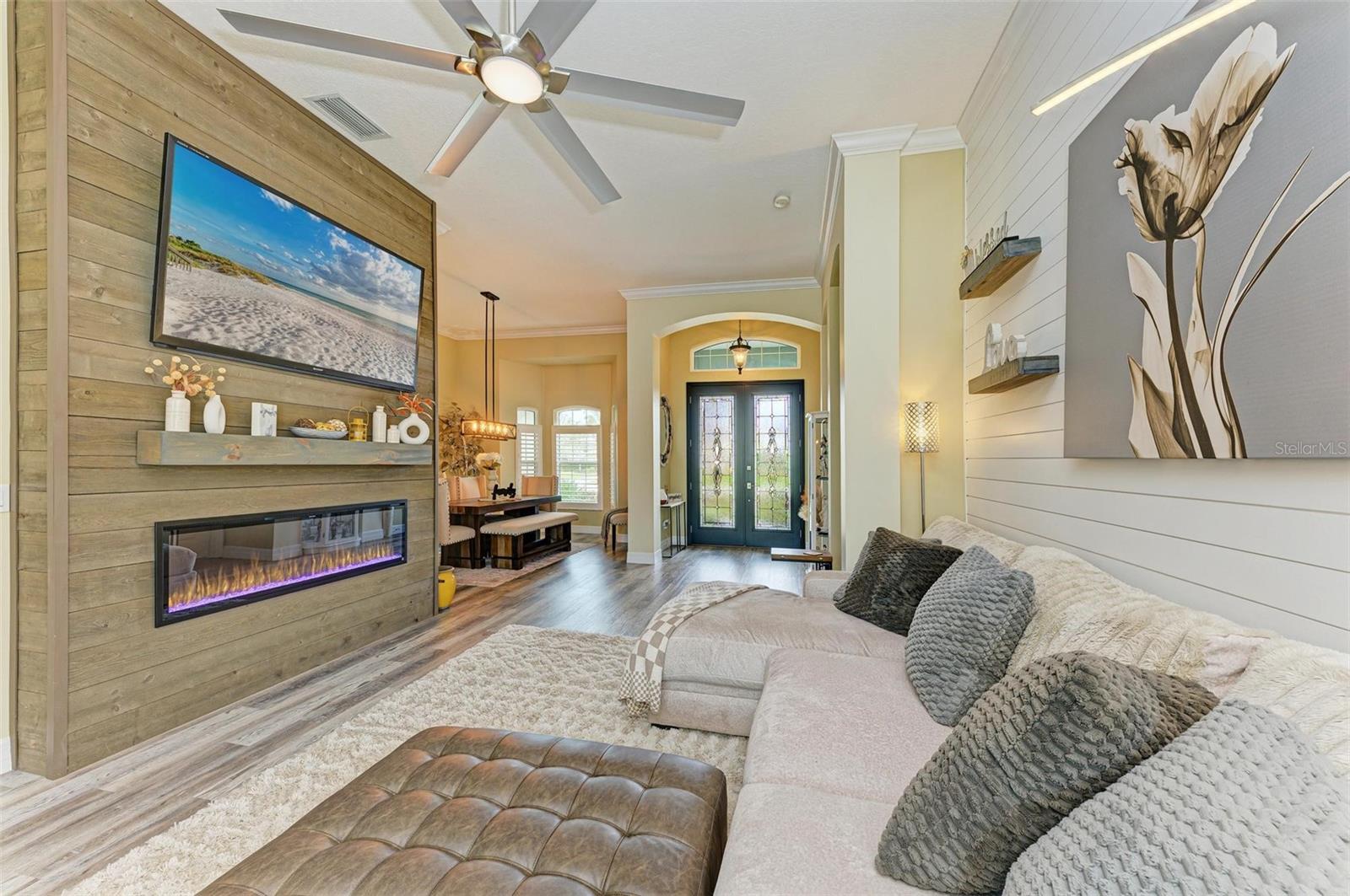 Stunning 3-Bedroom ONE owner Home with Luxurious Upgrades and Resort-Style Backyard on just over 3/4 of an acre! This beautifully remodeled home combines warmth and elegance with modern upgrades. Enjoy the cozy ambiance of the electric fireplace, perfectly complemented by the inviting open layout. The custom kitchen is a chef’s dream, featuring high-end cabinets, a gas stove powered by a 100-gallon propane tank, and thoughtful design elements that elevate every culinary experience. Every detail has been carefully curated, with highlights including: • Completely remodeled bathrooms and new flooring throughout. • A durable and stylish standing seam bronze metal roof • Impact doors and windows, eliminating the need for shutters. The outdoor spaces are equally impressive: • New pavers and pool coping, an extended patio, and a standalone hot tub create the perfect setting for relaxation or entertaining. • Professionally designed landscape lighting in the front and backyard enhances the ambiance day and night. Located in the highly sought after Country Creek commiunity with no CDD fees and low HOA fees, this property offers both convenience and sophistication. A truly stunning home that checks all the boxes for comfort, style, and functionality. YOU DO NOT want to miss this one! Its gorgeous! *Feels much bigger than 2288 sq ft. Schedule your private tour today to experience this amazing property firsthand!