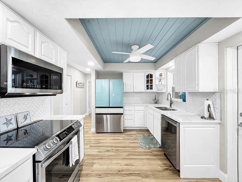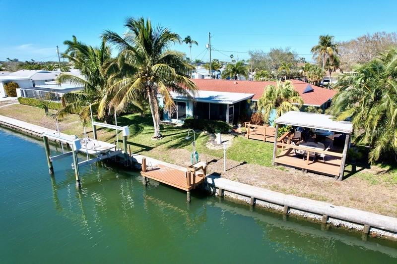 Welcome to this tropical paradise. This saltwater canal home with a 2019 boat lift is a charming "beachy" home off of Palma Sola Bay with no fixed bridges to the ICW. This home is ready for you to move into and relax on the large tiki hut by the water or in the lanai. So many upgrades done in our home over the last 2 years. Some include premium vinyl flooring and wide solid wood baseboards throughout, upscale kitchen appliances, quartz countertops in kitchen and bathrooms, marble back splashes, marble tub and shower tile in both bathrooms, custom glass shower doors in both aths, ceilings replaced in kitchen and bath, new bathroom vanity, hurricane impact slider, all new lighting inside and out, doorways widened to open up traffic flow, freshly painted inside and out, irrigation, landscaping, pavers on driveway, entry, and sidewalks, replaced wood on decking, wood on gables, garage door opener. Roof and boat lift new in 2019. Enjoy premium Florida living at its best on the water. This home would be a great family home, 2nd home, or vacation rental. Within 3 miles to Anna Maria Island and the beaches. Take the trolley, bicycle, drive or use your boat to enjoy many restaurants, shops on beaches. Paddle form your float into Robinson Preserve, where there are hundreds of acres of bird and fish sanctuary with ashphalt paths for bicycling or walking. This home has an approved pool permit from Manatee County.