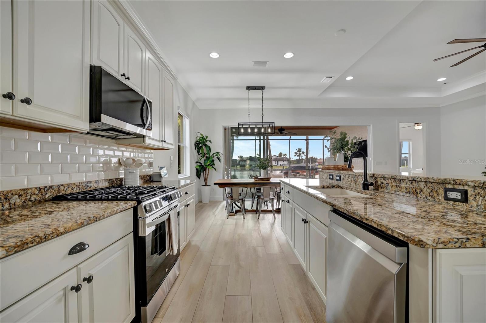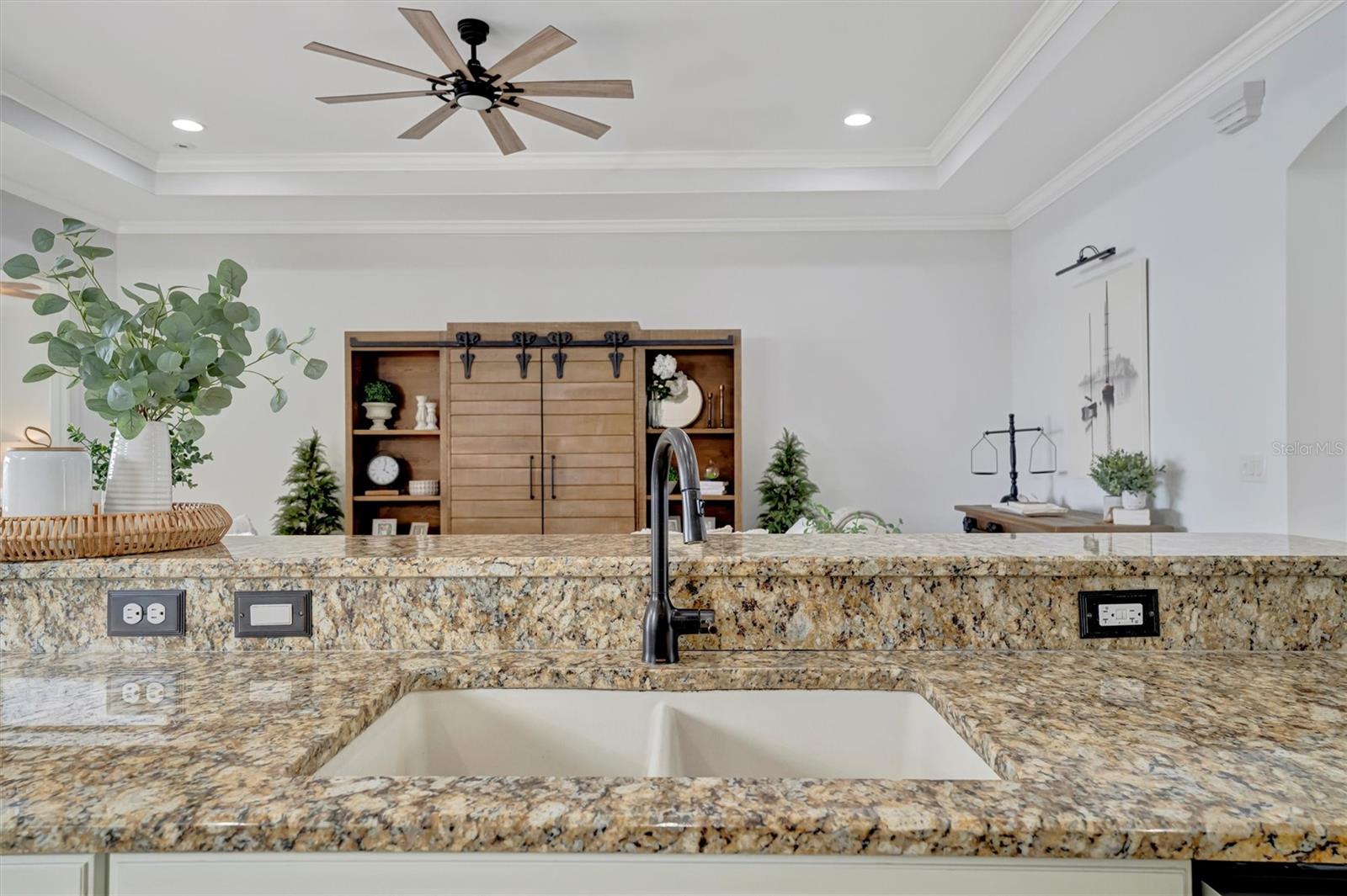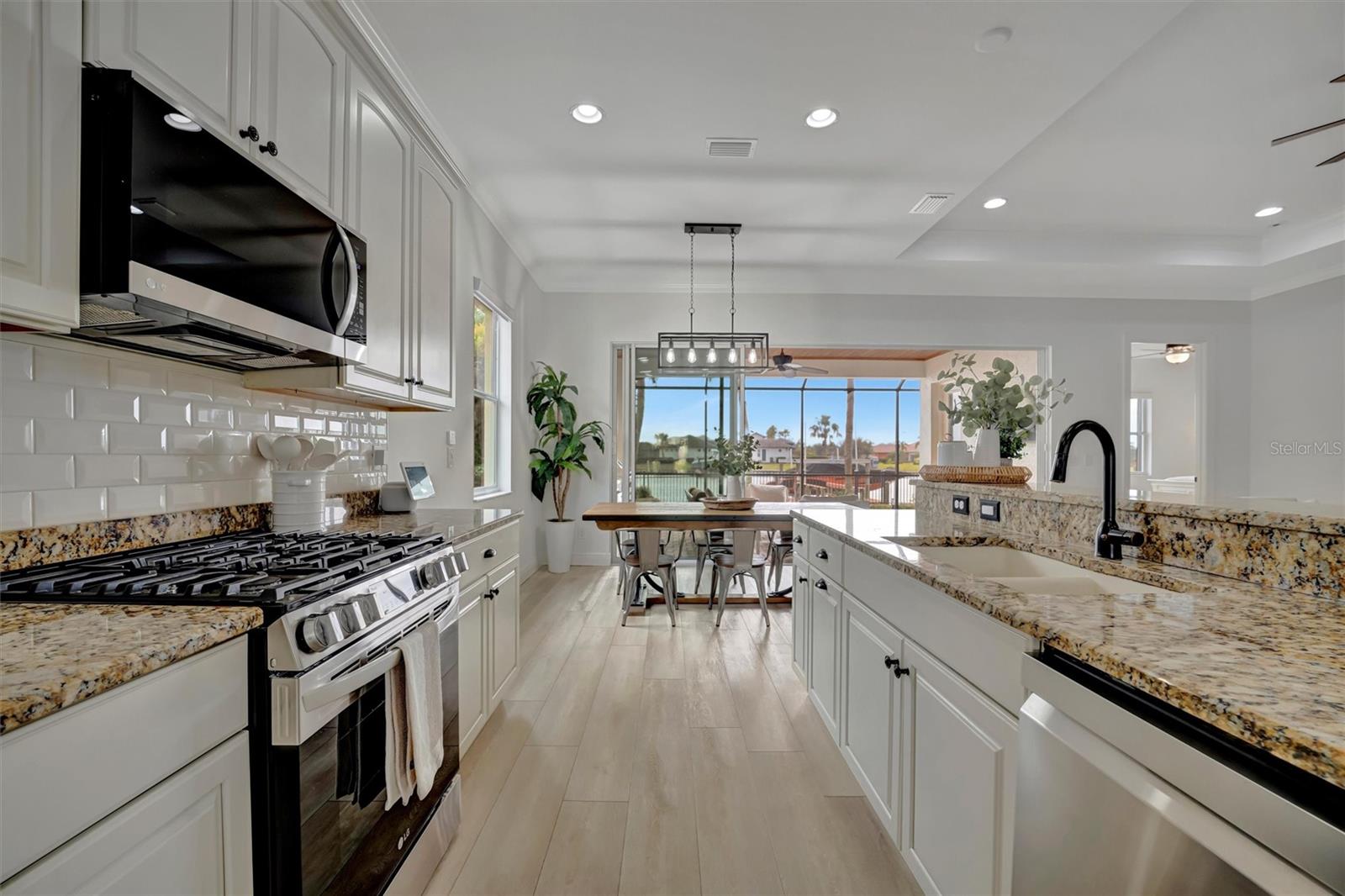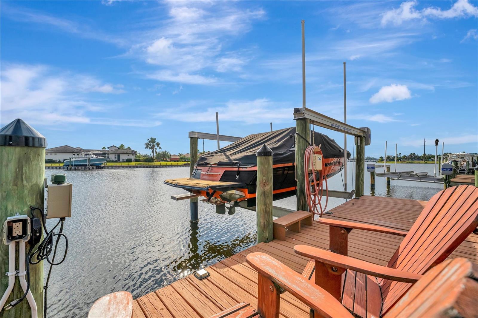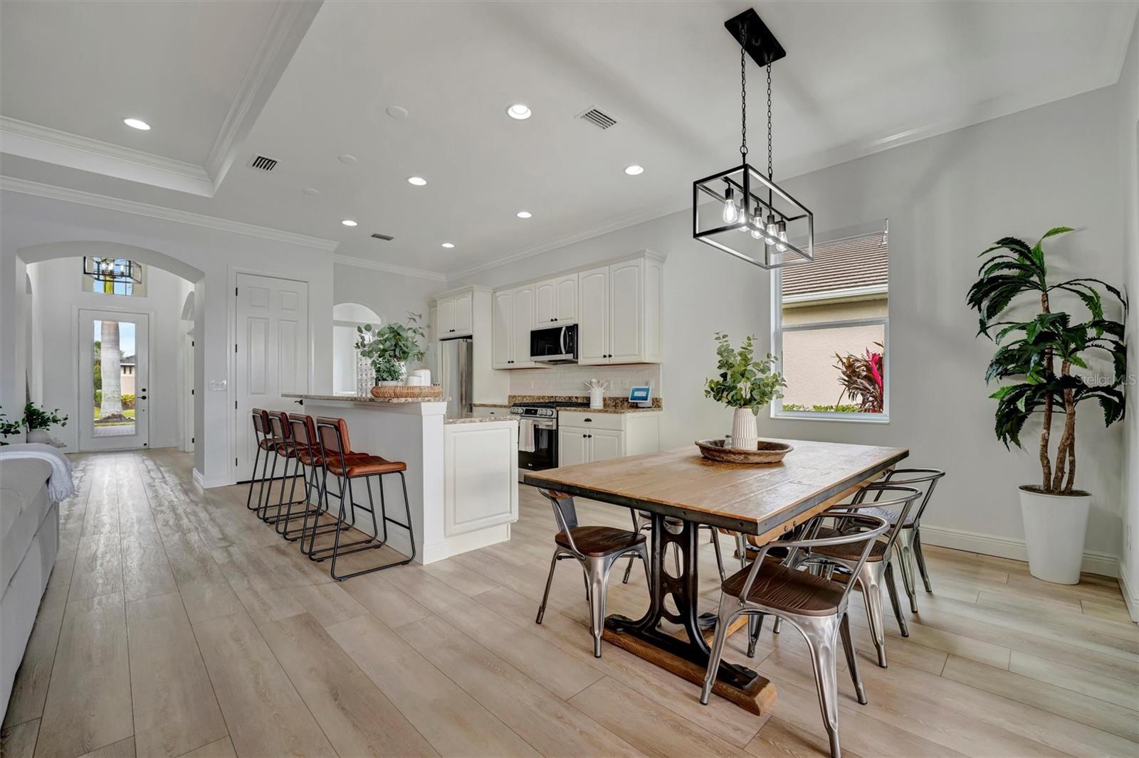 Come and tour this stunning 3-bedroom + den, 2-bath, 2-car garage Tidewater Preserve home, complete with a private boat dock and 10,000 lb lift, offering direct river access! This beautifully upgraded residence features luxury vinyl flooring, soaring 10+ foot ceilings, elegant crown molding, remote-controlled blinds, and dimmable lighting throughout. The open-concept kitchen boasts custom cabinetry, white subway tile backsplash, granite countertops, and a spacious island with a counter bar overlooking the great room. Four sliding glass doors seamlessly blend indoor and outdoor living, leading to an expansive outdoor retreat with a built-in grill—perfect for entertaining or unwinding in the evening breeze. A stylish office off the entry, enhanced with French doors and a sliding glass pocket door, provides both privacy and versatility. The luxurious primary suite showcases tray ceilings, two closets, an en-suite bath, and private access to the outdoor living space. The spa-like primary bathroom features a garden tub, dual vanities, a custom shower enclosure, and a private water closet. The 58.8 x 24 extended covered paver patio is an outdoor oasis, featuring custom hardwood ceilings, outdoor grill and an outdoor fan. It adjoins a screened lanai with a walkout to the fenced rear yard—perfect for pets or play. For boating enthusiasts, the community boat lift provides easy access to the Manatee River, allowing you to arrive at your favorite waterfront restaurant in style or embark on a scenic adventure to Anna Maria Island or Egmont Key. Located in the gated boating community of Tidewater Preserve, this home offers 24-hour guard security for peace of mind. Residents enjoy top-tier amenities, including a 3 resort-style pool, clubhouse, 2 fitness center, tennis courts, riverfront nature trails, dog park, playground, kayak launch, and marina. Best of all—No CDD fees! End each day with breathtaking sunsets from your private dock, embracing the ultimate waterfront lifestyle. An exceptional home in a premier waterfront community—don’t miss your opportunity to make it yours!