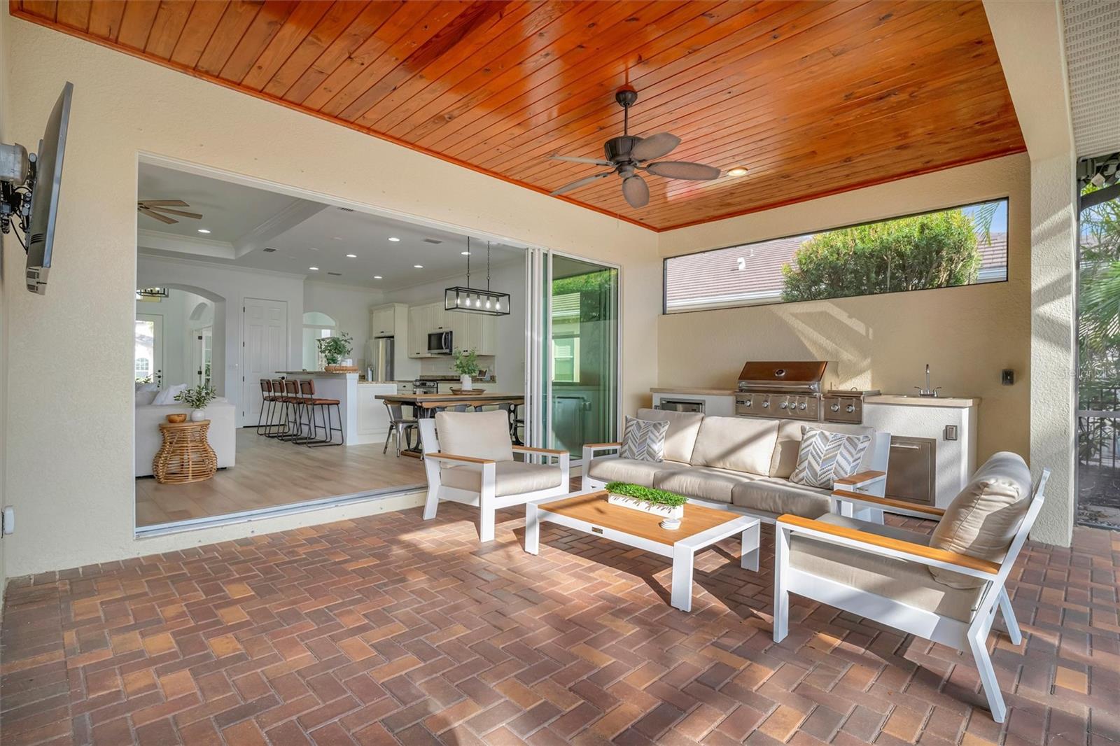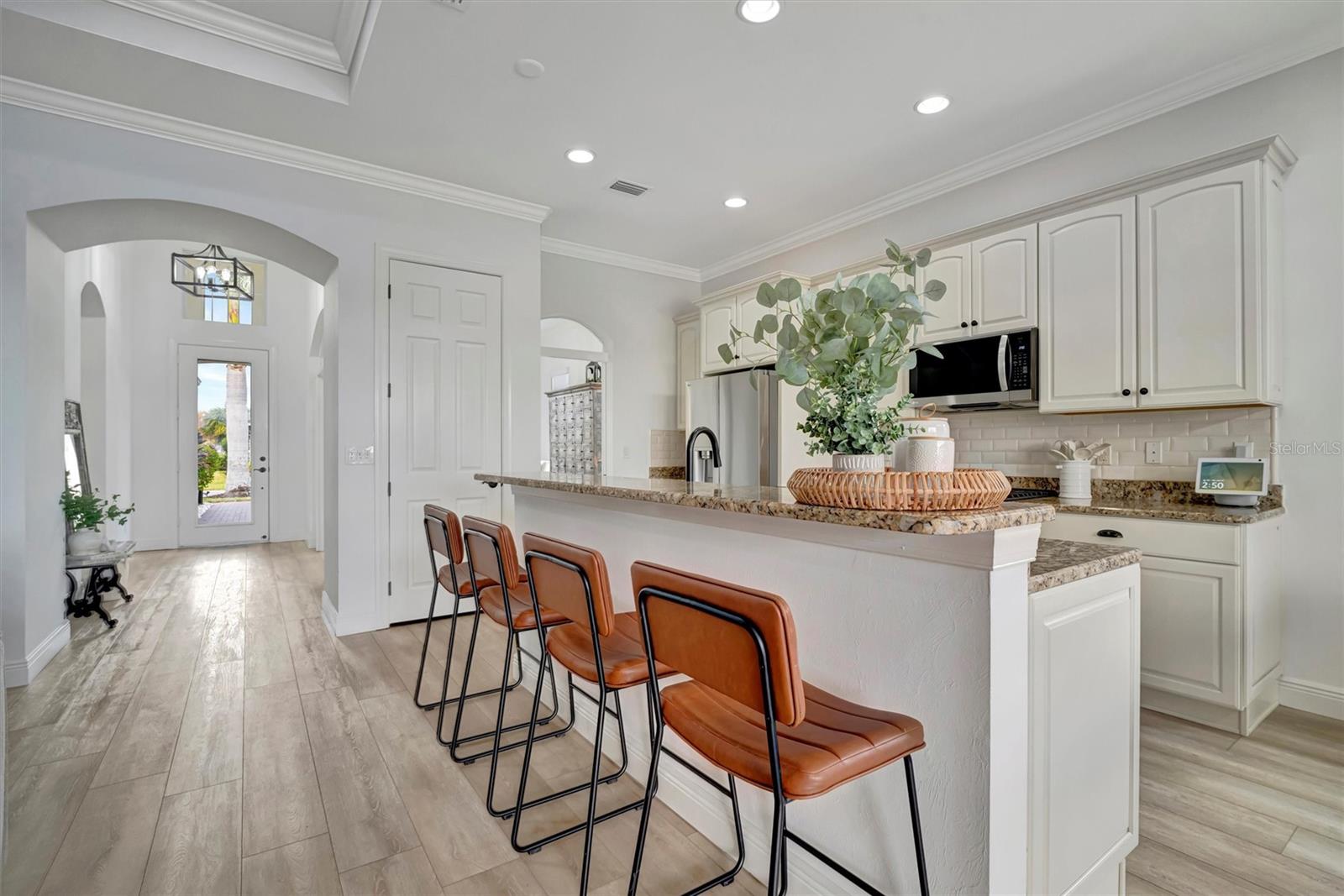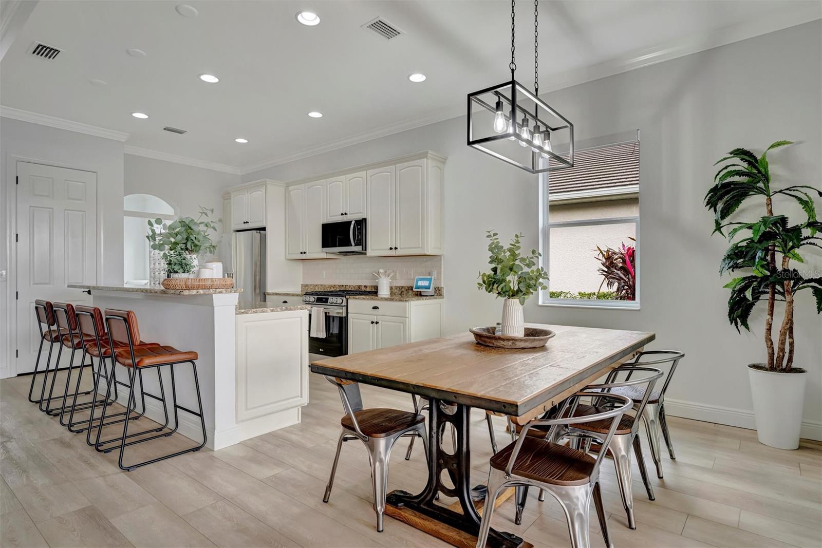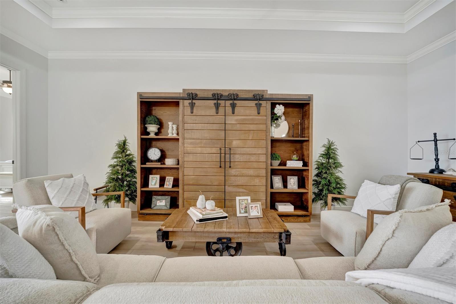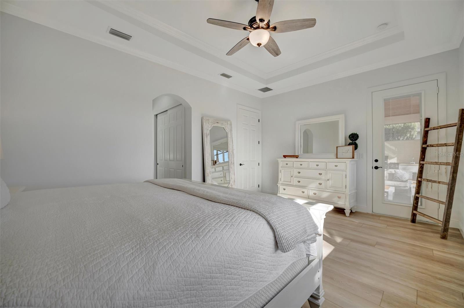Come and tour this stunning 3-bedroom + den, 2-bath, 2-car garage Tidewater Preserve home, complete with a private boat dock and 10,000 lb lift, offering direct river access! This beautifully upgraded residence features luxury vinyl flooring, soaring 10+ foot ceilings, elegant crown molding, remote-controlled blinds, and dimmable lighting throughout. The open-concept kitchen boasts custom cabinetry, white subway tile backsplash, granite countertops, and a spacious island with a counter bar overlooking the great room. Four sliding glass doors seamlessly blend indoor and outdoor living, leading to an expansive outdoor retreat with a built-in grill—perfect for entertaining or unwinding in the evening breeze. A stylish office off the entry, enhanced with French doors and a sliding glass pocket door, provides both privacy and versatility. The luxurious primary suite showcases tray ceilings, two closets, an en-suite bath, and private access to the outdoor living space. The spa-like primary bathroom features a garden tub, dual vanities, a custom shower enclosure, and a private water closet. The 58.8 x 24 extended covered paver patio is an outdoor oasis, featuring custom hardwood ceilings, outdoor grill and an outdoor fan. It adjoins a screened lanai with a walkout to the fenced rear yard—perfect for pets or play. For boating enthusiasts, the community boat lift provides easy access to the Manatee River, allowing you to arrive at your favorite waterfront restaurant in style or embark on a scenic adventure to Anna Maria Island or Egmont Key. Located in the gated boating community of Tidewater Preserve, this home offers 24-hour guard security for peace of mind. Residents enjoy top-tier amenities, including a 3 resort-style pool, clubhouse, 2 fitness center, tennis courts, riverfront nature trails, dog park, playground, kayak launch, and marina. Best of all—No CDD fees! End each day with breathtaking sunsets from your private dock, embracing the ultimate waterfront lifestyle. An exceptional home in a premier waterfront community—don’t miss your opportunity to make it yours!