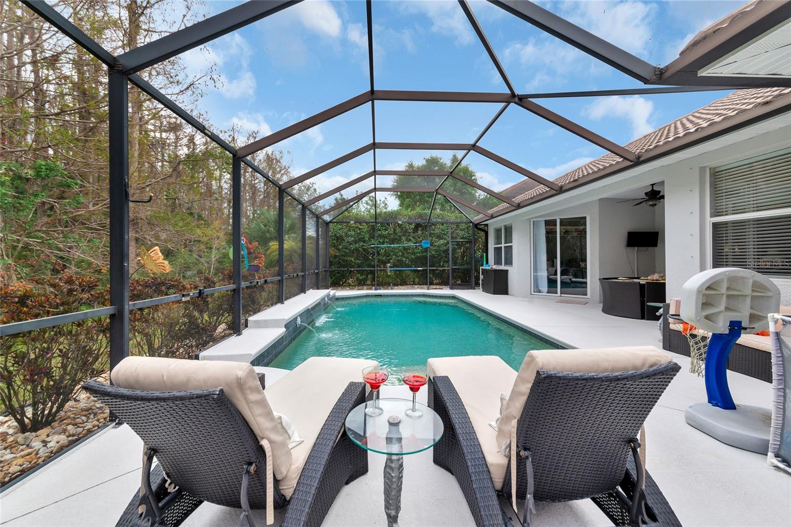 NEW AC and HOT WATER HEATER installed by March 9th! Roof Inspected and certified. Heated, Saltwater pool with Preserve Views, 3BD/2BA + Den/Office w/Bay Windows, Open and Split plan, Outdoor Kitchen, Screened Lanai, Newly Painted Kitchen Cabinets and Pantry Doors, Engineered Hardwood, Custom Closet, NO CARPETS, Ring Doorbell, Resort Style Amenities. Step into the essence of Florida living at 259 Golden Harbour Trail, a thoughtfully designed 3-bedroom, 2-bath home with a private den, set against the tranquil backdrop of a lush preserve in the sought-after gated community of Stoneybrook at Heritage Harbour. This home offers a seamless blend of comfort, style, and functionality, perfect for both daily life and entertaining. Inside, you'll find engineered hardwood floors, freshly painted cabinets, and a new kitchen backsplash, accented by modern lighting and ceiling fans throughout. The kitchen is a versatile space, featuring granite countertops, a spacious island for meal prep and casual dining, double ovens, and a refrigerator (2022) to accommodate the demands of everyday life. A built-in dry bar adds extra convenience for entertaining, while the family room entertainment center with electric fireplace creates a cozy and inviting atmosphere. The primary suite is a peaceful retreat with a custom walk-in closet and serene views of the screened pool area and preserve. Both bathrooms are finished with durable tile flooring, while the home’s NEW HOT WATER HEATER (2025) will ensure comfort and reliability. Additional conveniences include pull-down attic stairs and a garage with built-in storage cabinets and a rack for organization. Outside, your private oasis awaits. Relax in the heated saltwater pool, entertain with the outdoor kitchen, and enjoy the inclusion of pool furniture, all set within a screened lanai. The newer pool equipment adds to the home’s practicality, and the tall hedges on both sides of the pool, in addition to the preserve in the back, provide ultimate privacy. Residents of Stoneybrook enjoy resort-style amenities, including courts for tennis and pickleball, a community pool, additional outdoor games, and frequent events that foster a welcoming neighborhood atmosphere. The community also features an optional membership to its 18-hole golf course, complementing these offerings. Conveniently located near top-rated schools, the fabulous new "Marketplace at Heritage Harbour", and a short drive to Gulf Coast beaches, make this home is your gateway to Florida’s best. This is more than a home—it’s a lifestyle. Schedule your private showing today and make 259 Golden Harbour Trail yours.