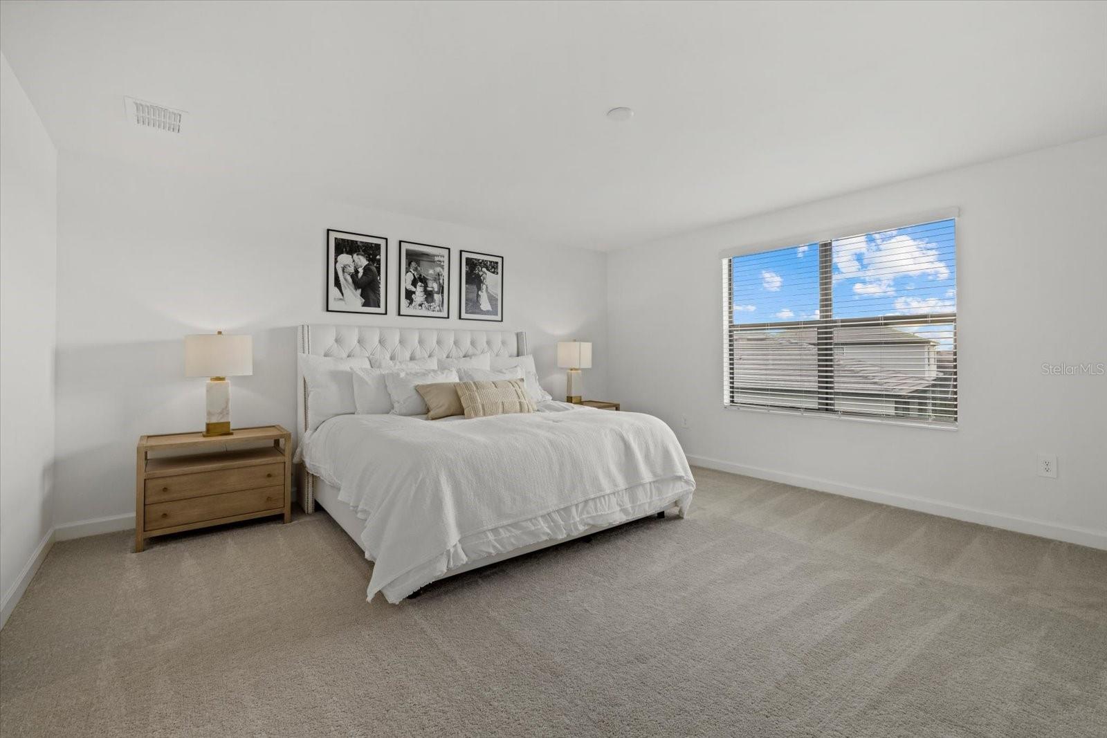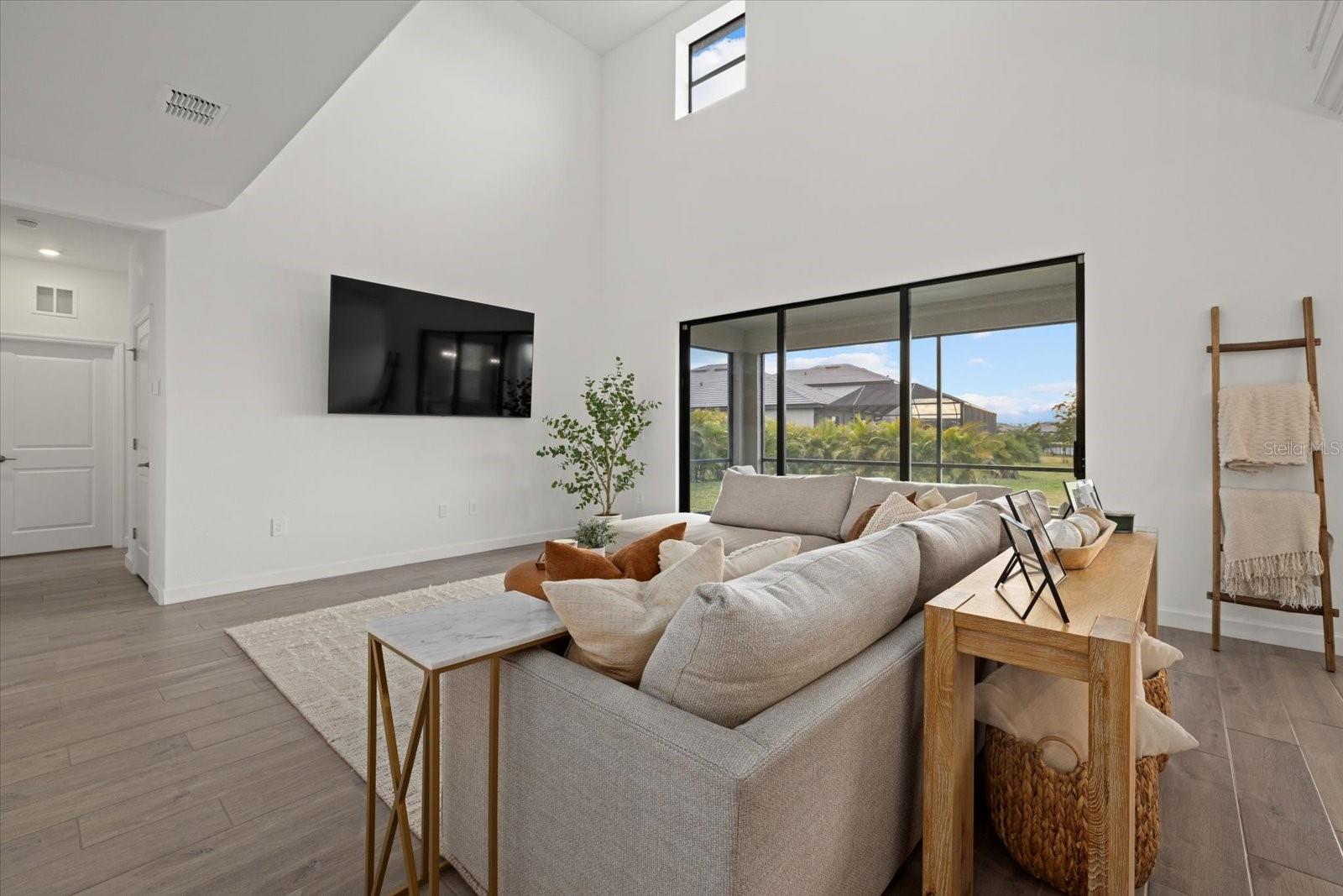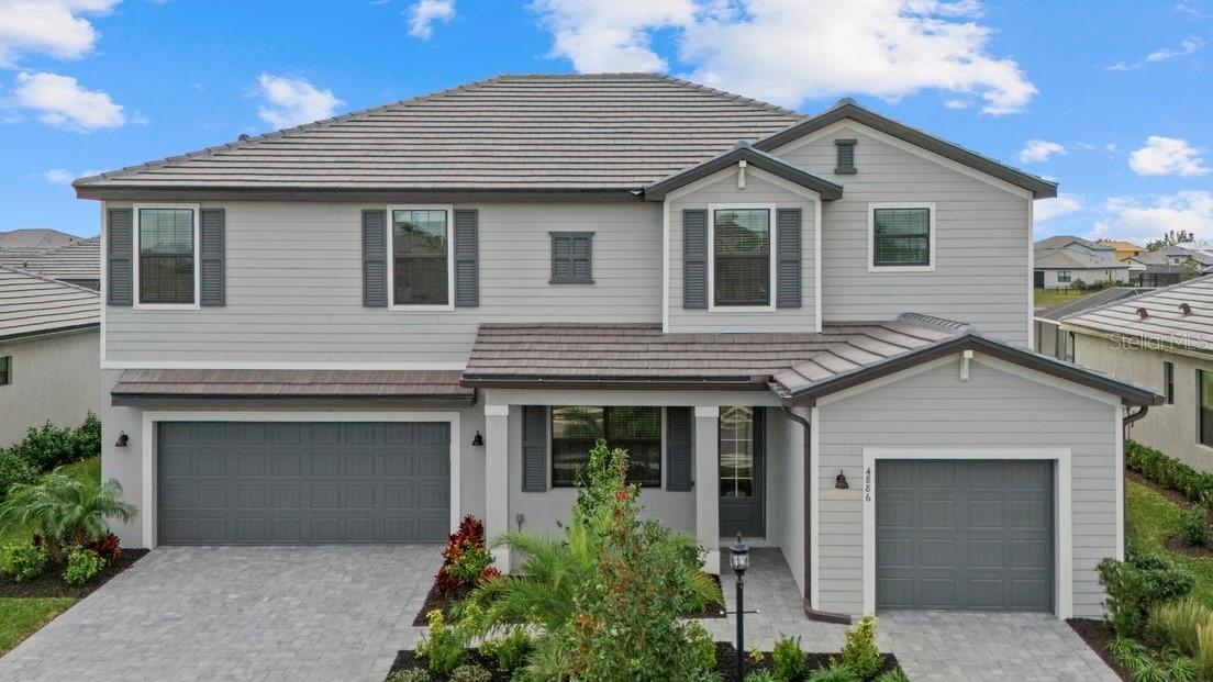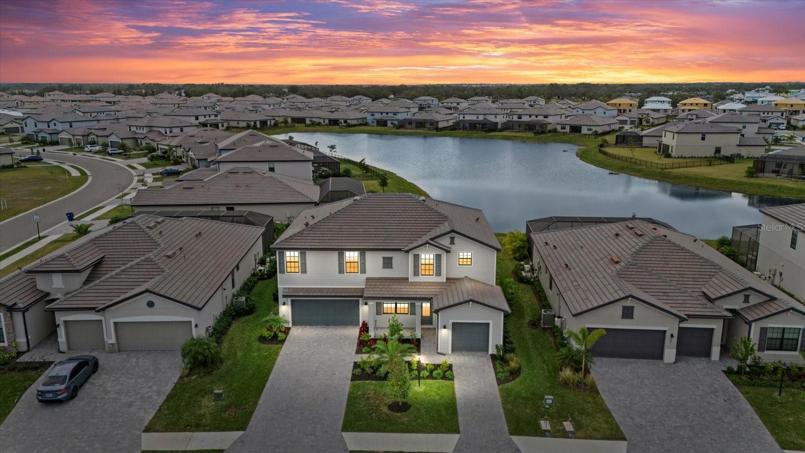 In the heart of Lakewood Ranch, within a picturesque resort community, sits this impressive five-bedroom, five-bathroom residence. Positioned on a lot that offers beautiful water views, the home is enhanced by lush privacy palms lining the backyard and perfect southwestern lighting with sunset vistas. The property includes a split three car garage and dual driveways with winding paver walkways leading to the glass front door. Upon entering, you are welcomed by an abundance of natural light that fills the home, creating a warm glow throughout. The first floor is finished with stunning, professionally sealed plank tile floors. To the right, a formal dining room with a butler’s pantry provides an ideal space for special occasions and holiday gatherings with family and friends. The kitchen showcases sparkling quartz countertops and stainless steel appliances complemented by elegant champagne bronze hardware and designer lighting. Adjacent to the kitchen, the open concept breakfast nook offers a comfortable spot for casual dining with lovely views of the water. A focal point of this stunning residence is the impressive two-story great room, which enhances the sense of spaciousness and grandeur within the home. The design incorporates two sets of glass sliding doors that invite natural light and provide a seamless transition between indoor and outdoor spaces. Relax on the covered, screened lanai watching the sun set over the water. On the first floor, there is also a generously sized bedroom that offers versatility, easily functioning as a home office or guest room. This bedroom features an attached full bathroom that serves as a convenient pool bath, adding to the home's functionality. Back inside, as you ascend the open grand staircase, you’ll find the spacious primary bedroom, which features, not one, but two walk-in closets. The primary bathroom features split vanities, quartz countertops, and a large walk-in shower. Additionally, there are three large bedrooms upstairs, one of which includes its own ensuite full bathroom. A third full bathroom with double sinks is also conveniently located on this floor. Completing the upper level is a versatile bonus room, ideal for use as a playroom, movie room, or game room. Lorraine Lakes boasts attractive features such as paver driveways, tile roofs, and a guard gate for added security. The HOA covers cable and internet, lawn maintenance, irrigation water, and offers a full range of resort-style amenities. Residents can enjoy an outdoor bar, a restaurant for poolside dining, a resort pool with separate lap pool, a hot tub, a splash playground, and facilities for tennis, pickleball, and basketball, including both indoor and outdoor courts. Additional amenities include a full fitness center, an arcade, an indoor playroom, a playground, a fishing dock, and a coffee bar. Schedule a showing to see this beautiful five-bedroom, five-bathroom home complete with a three car garage in Lakewood Ranch before it’s no longer available.