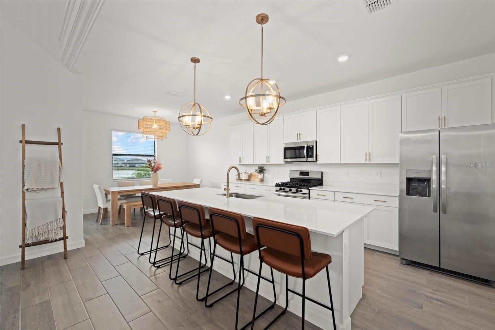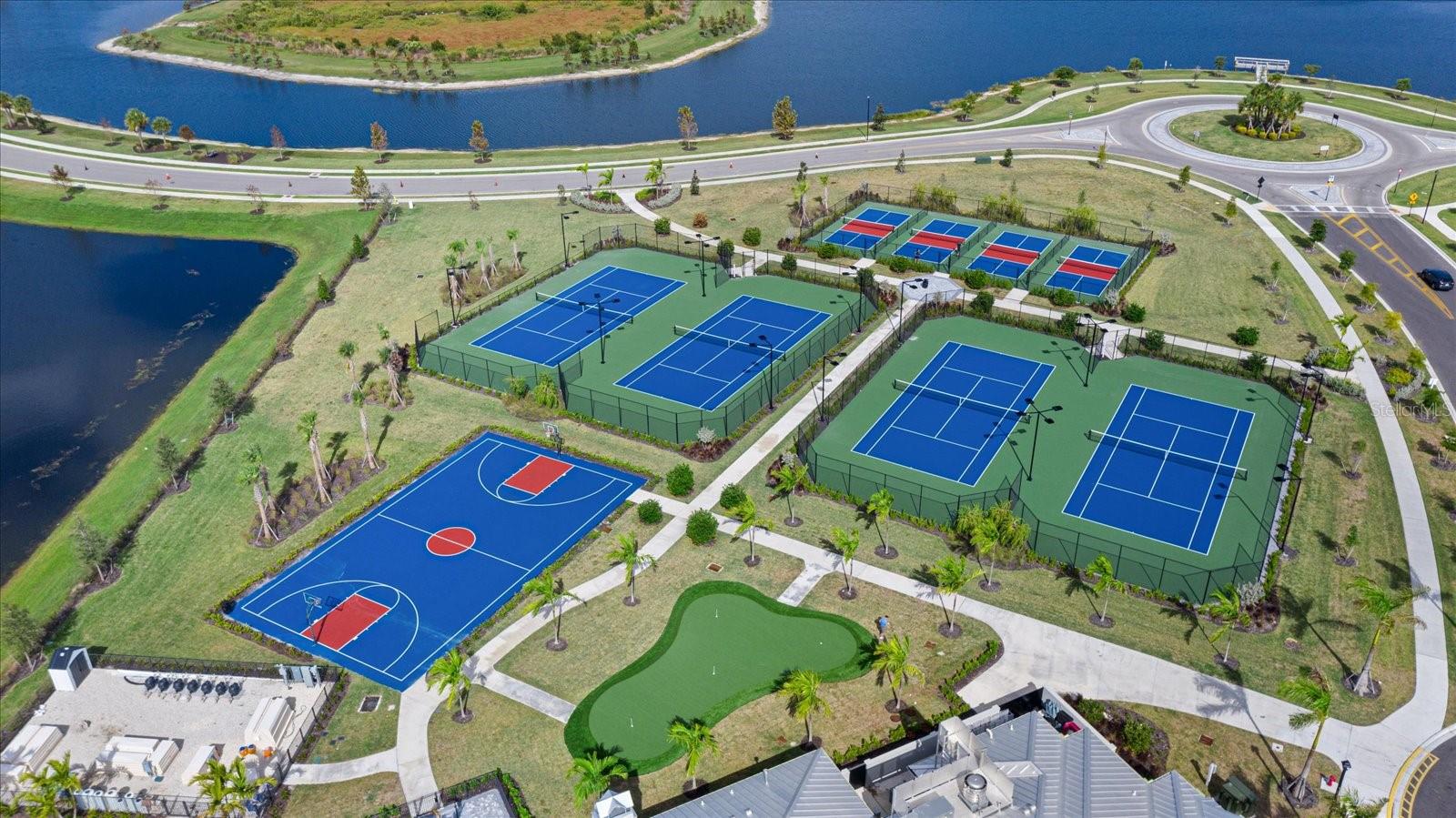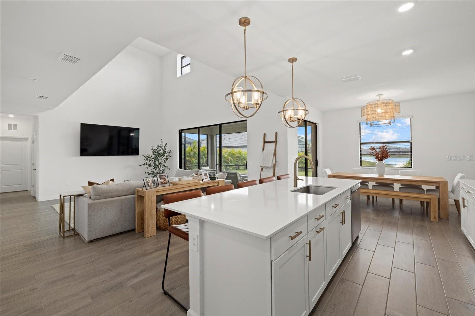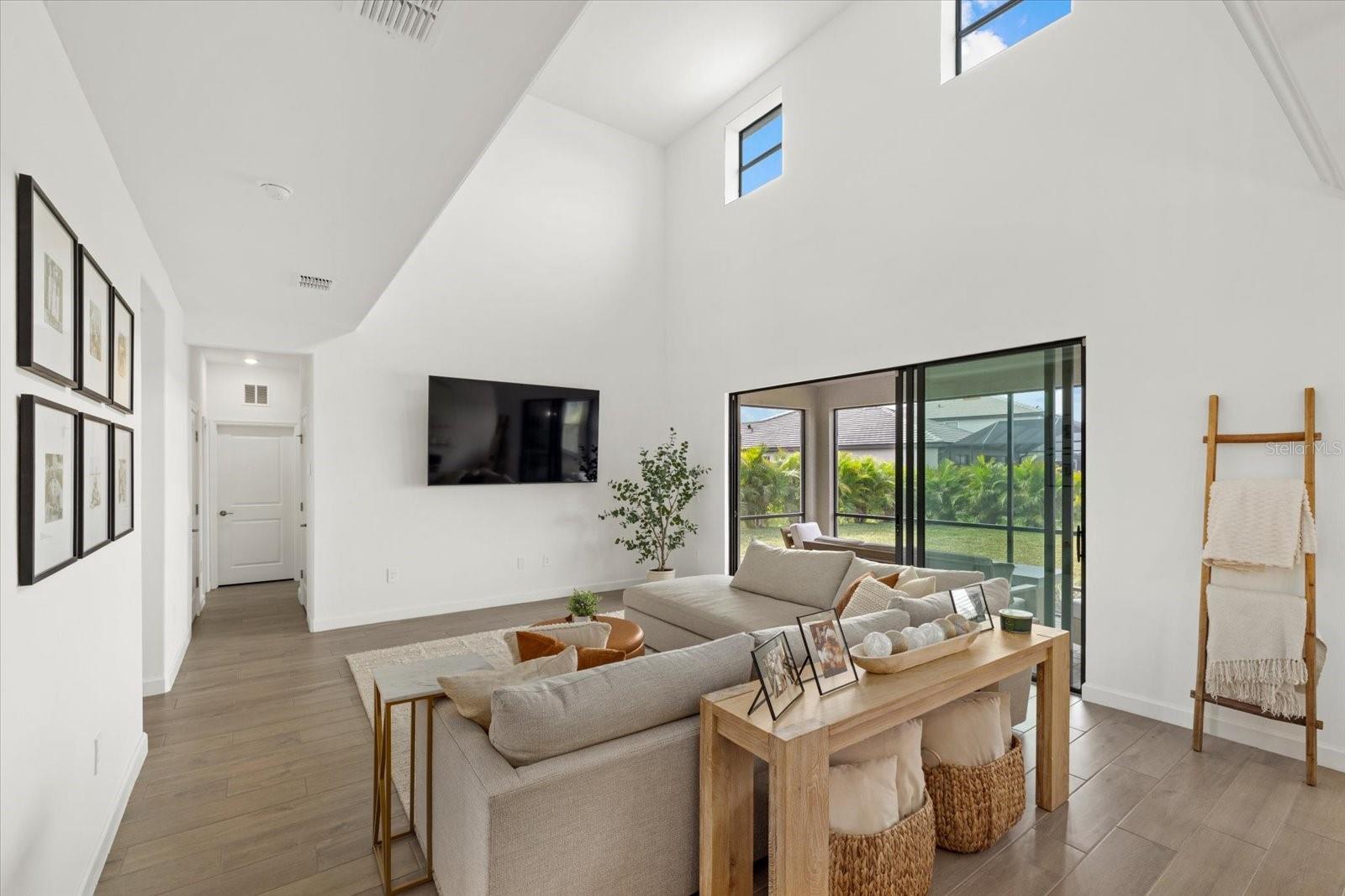 In the heart of Lakewood Ranch, within a picturesque resort community, sits this impressive five-bedroom, five-bathroom residence. Positioned on a lot that offers beautiful water views, the home is enhanced by lush privacy palms lining the backyard and perfect southwestern lighting with sunset vistas. The property includes a split three car garage and dual driveways with winding paver walkways leading to the glass front door. Upon entering, you are welcomed by an abundance of natural light that fills the home, creating a warm glow throughout. The first floor is finished with stunning, professionally sealed plank tile floors. To the right, a formal dining room with a butler’s pantry provides an ideal space for special occasions and holiday gatherings with family and friends. The kitchen showcases sparkling quartz countertops and stainless steel appliances complemented by elegant champagne bronze hardware and designer lighting. Adjacent to the kitchen, the open concept breakfast nook offers a comfortable spot for casual dining with lovely views of the water. A focal point of this stunning residence is the impressive two-story great room, which enhances the sense of spaciousness and grandeur within the home. The design incorporates two sets of glass sliding doors that invite natural light and provide a seamless transition between indoor and outdoor spaces. Relax on the covered, screened lanai watching the sun set over the water. On the first floor, there is also a generously sized bedroom that offers versatility, easily functioning as a home office or guest room. This bedroom features an attached full bathroom that serves as a convenient pool bath, adding to the home's functionality. Back inside, as you ascend the open grand staircase, you’ll find the spacious primary bedroom, which features, not one, but two walk-in closets. The primary bathroom features split vanities, quartz countertops, and a large walk-in shower. Additionally, there are three large bedrooms upstairs, one of which includes its own ensuite full bathroom. A third full bathroom with double sinks is also conveniently located on this floor. Completing the upper level is a versatile bonus room, ideal for use as a playroom, movie room, or game room. Lorraine Lakes boasts attractive features such as paver driveways, tile roofs, and a guard gate for added security. The HOA covers cable and internet, lawn maintenance, irrigation water, and offers a full range of resort-style amenities. Residents can enjoy an outdoor bar, a restaurant for poolside dining, a resort pool with separate lap pool, a hot tub, a splash playground, and facilities for tennis, pickleball, and basketball, including both indoor and outdoor courts. Additional amenities include a full fitness center, an arcade, an indoor playroom, a playground, a fishing dock, and a coffee bar. Schedule a showing to see this beautiful five-bedroom, five-bathroom home complete with a three car garage in Lakewood Ranch before it’s no longer available.