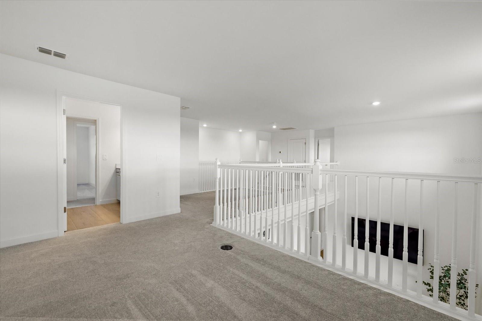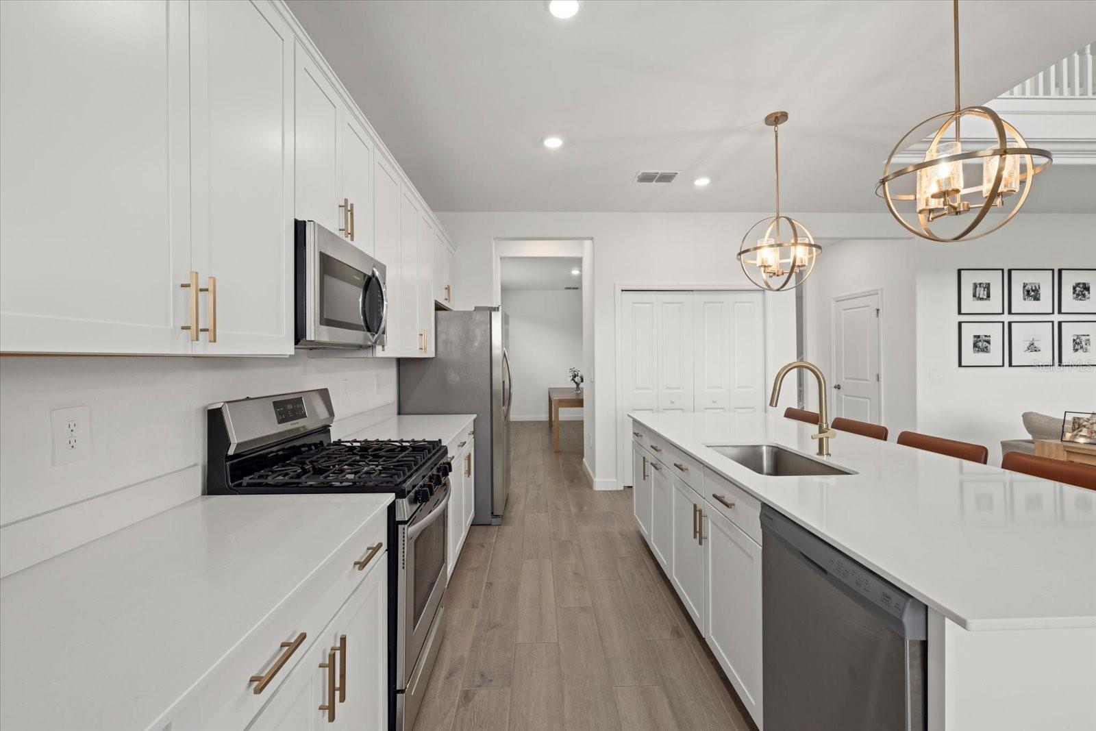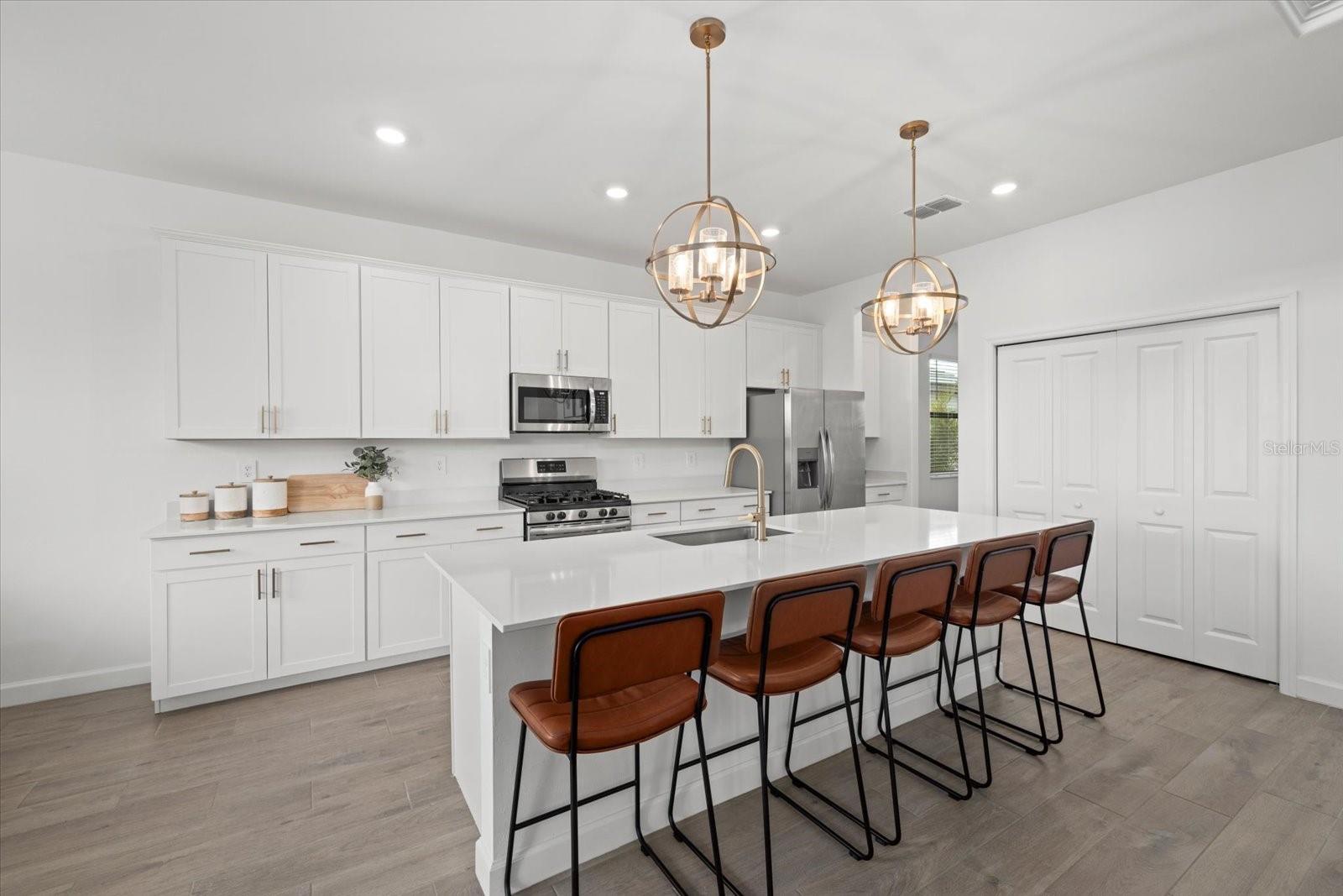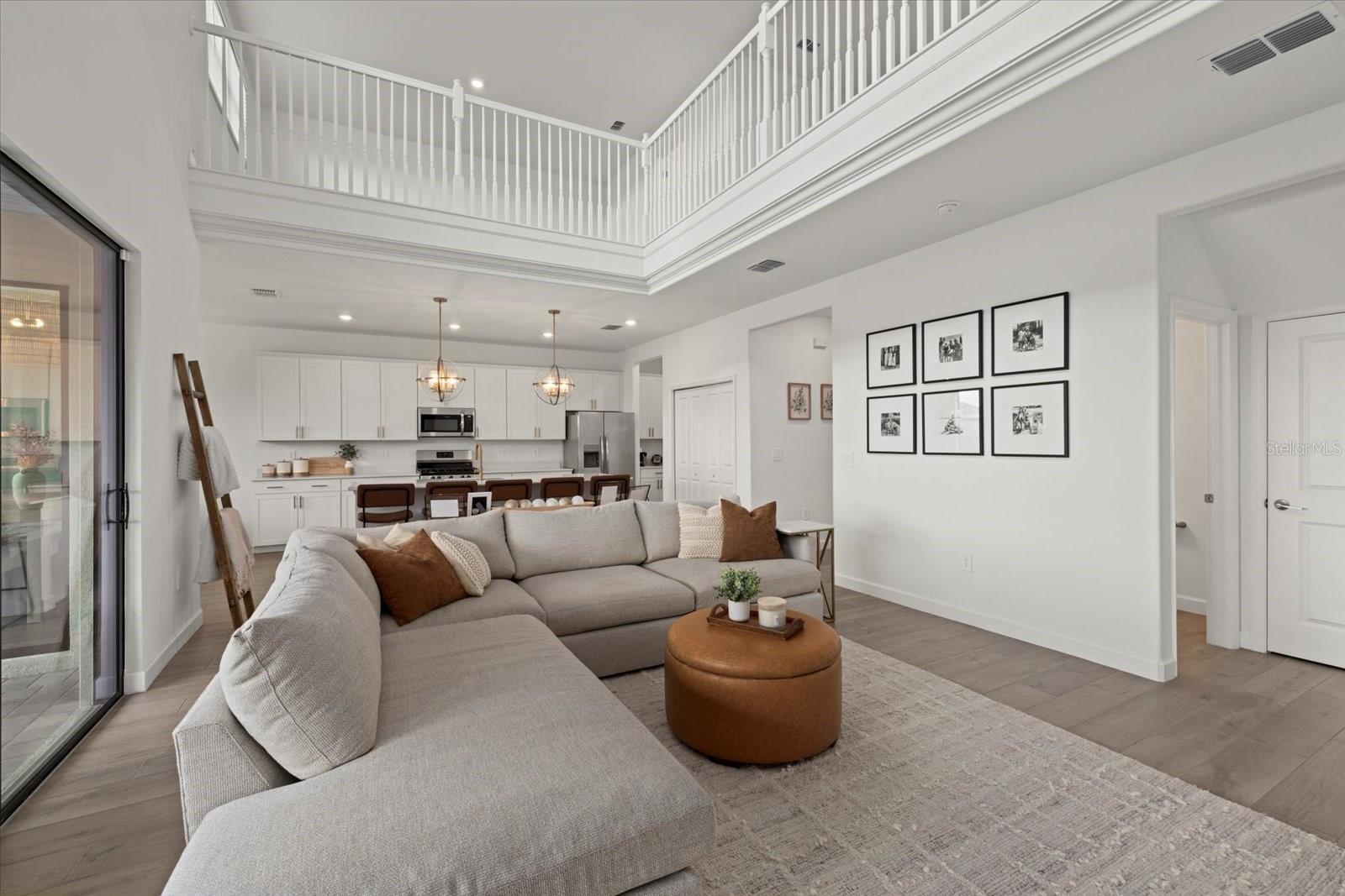 In the heart of Lakewood Ranch, within a picturesque resort community, sits this impressive five-bedroom, five-bathroom residence. Positioned on a lot that offers beautiful water views, the home is enhanced by lush privacy palms lining the backyard and perfect southwestern lighting with sunset vistas. The property includes a split three car garage and dual driveways with winding paver walkways leading to the glass front door. Upon entering, you are welcomed by an abundance of natural light that fills the home, creating a warm glow throughout. The first floor is finished with stunning, professionally sealed plank tile floors. To the right, a formal dining room with a butler’s pantry provides an ideal space for special occasions and holiday gatherings with family and friends. The kitchen showcases sparkling quartz countertops and stainless steel appliances complemented by elegant champagne bronze hardware and designer lighting. Adjacent to the kitchen, the open concept breakfast nook offers a comfortable spot for casual dining with lovely views of the water. A focal point of this stunning residence is the impressive two-story great room, which enhances the sense of spaciousness and grandeur within the home. The design incorporates two sets of glass sliding doors that invite natural light and provide a seamless transition between indoor and outdoor spaces. Relax on the covered, screened lanai watching the sun set over the water. On the first floor, there is also a generously sized bedroom that offers versatility, easily functioning as a home office or guest room. This bedroom features an attached full bathroom that serves as a convenient pool bath, adding to the home's functionality. Back inside, as you ascend the open grand staircase, you’ll find the spacious primary bedroom, which features, not one, but two walk-in closets. The primary bathroom features split vanities, quartz countertops, and a large walk-in shower. Additionally, there are three large bedrooms upstairs, one of which includes its own ensuite full bathroom. A third full bathroom with double sinks is also conveniently located on this floor. Completing the upper level is a versatile bonus room, ideal for use as a playroom, movie room, or game room. Lorraine Lakes boasts attractive features such as paver driveways, tile roofs, and a guard gate for added security. The HOA covers cable and internet, lawn maintenance, irrigation water, and offers a full range of resort-style amenities. Residents can enjoy an outdoor bar, a restaurant for poolside dining, a resort pool with separate lap pool, a hot tub, a splash playground, and facilities for tennis, pickleball, and basketball, including both indoor and outdoor courts. Additional amenities include a full fitness center, an arcade, an indoor playroom, a playground, a fishing dock, and a coffee bar. Schedule a showing to see this beautiful five-bedroom, five-bathroom home complete with a three car garage in Lakewood Ranch before it’s no longer available.