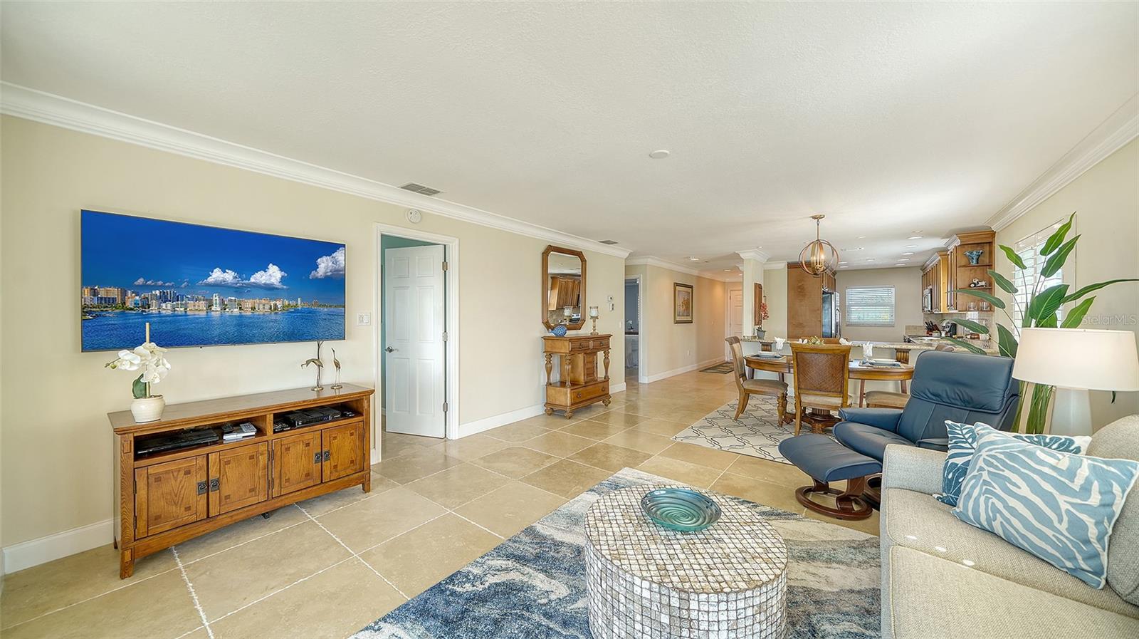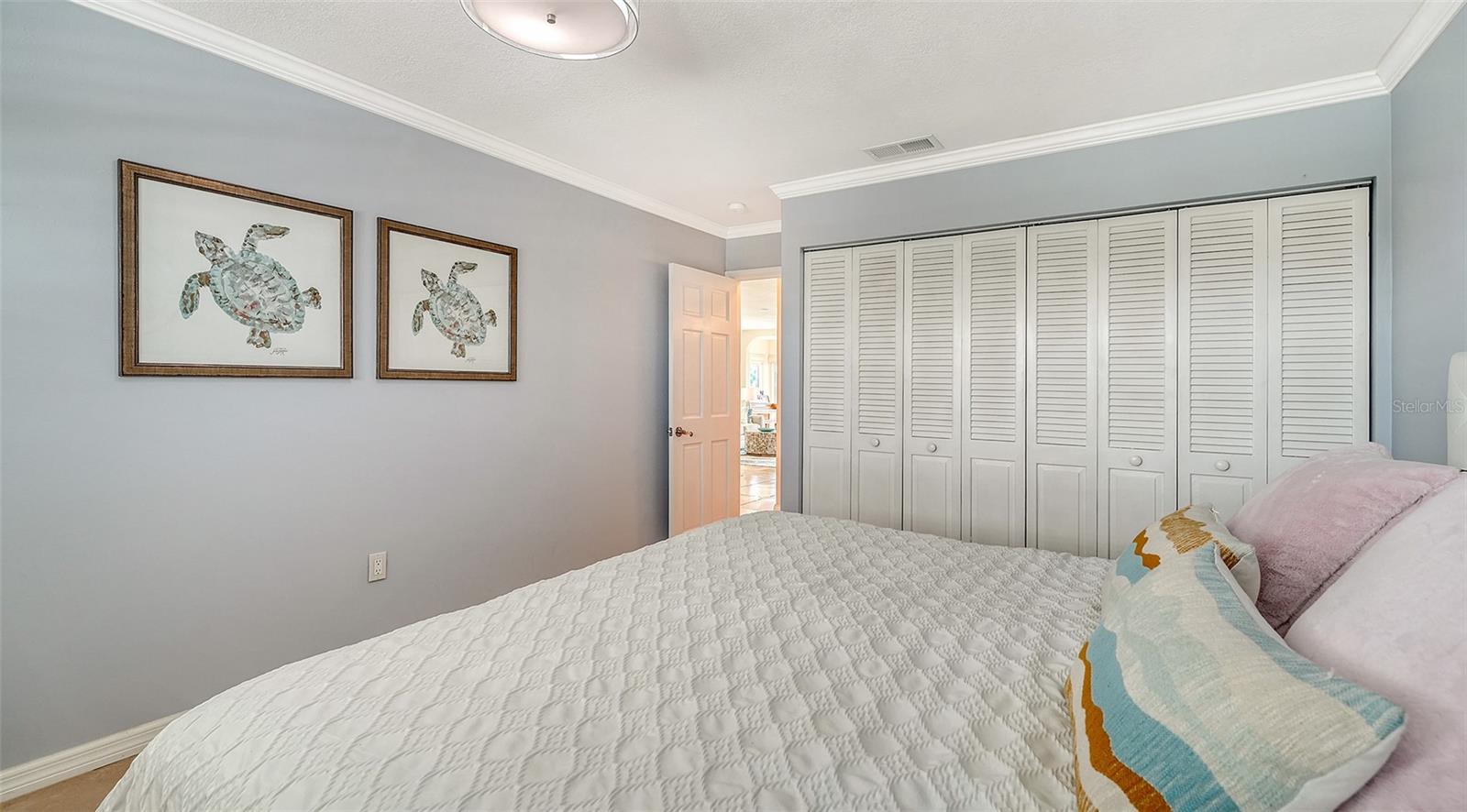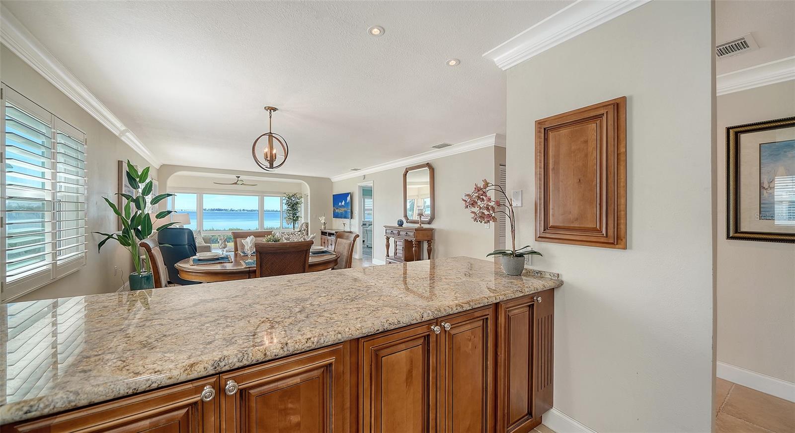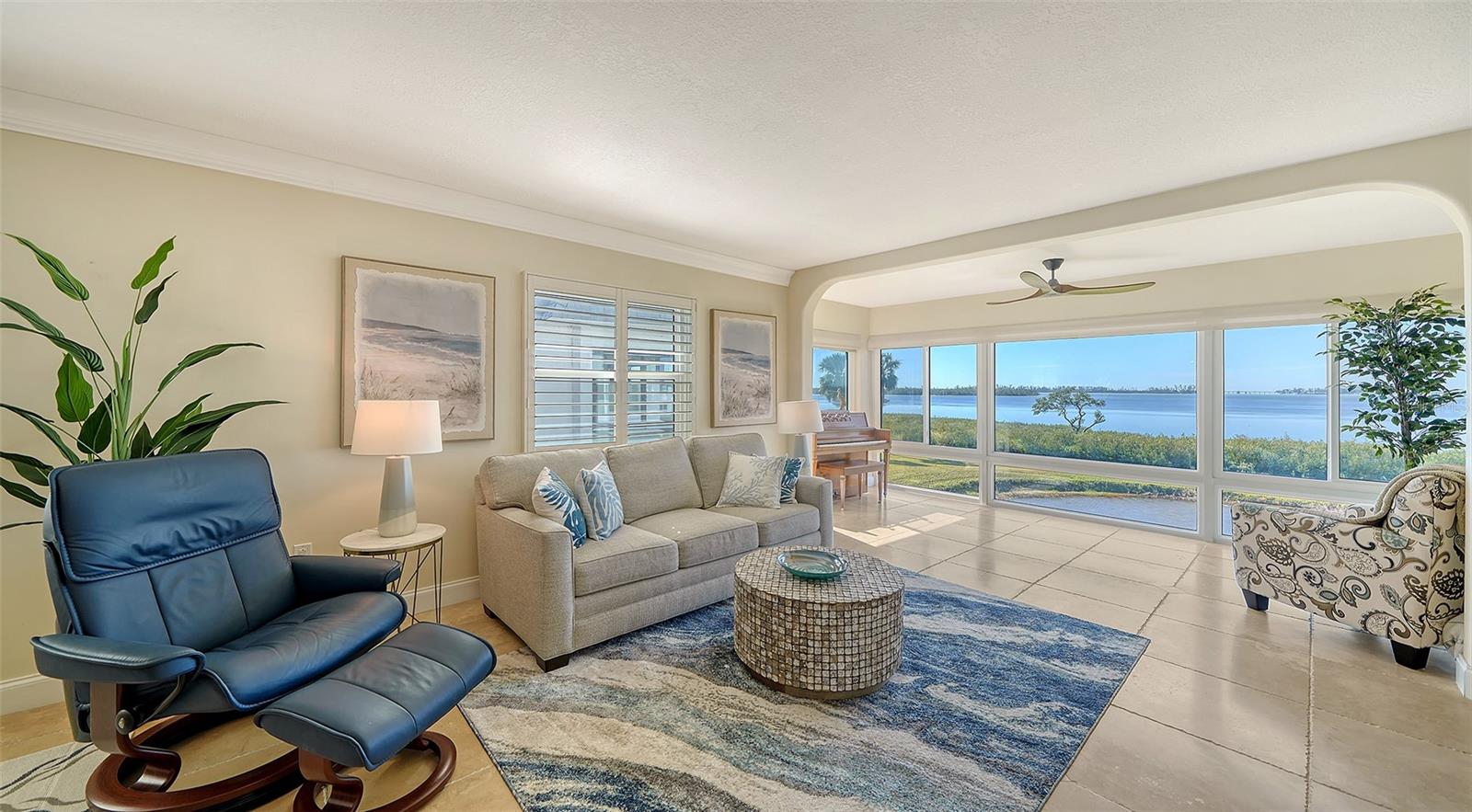 PRICE IMPROVEMENT ON THIS BEAAUTIFUL CONDO WITH stunning, unobstructed views of the Bay and Longboat Pass Bridge from this beautifully updated Top-Floor and End Unit, 2-bedroom, 2-bath condo, only steps from the BUILDING ELEVATOR. Located within the welcoming 55+ community of Mount Vernon. Just minutes by car or bike to Anna Maria Island, this home offers the perfect blend of style, convenience, and comfort. From the moment you step inside, you are greeted by breathtaking views and a designer-inspired coastal chic interior. Get ready to be wowed by the incredible Bay Views you'll see through your NEWLY INSTALLED IMPACT WINDOWS! The Larger Square Footage of this Condo provides for a great sense of spaciousness. The open kitchen, featuring stainless steel appliances, an eat-in area, and breakfast bar, invite culinary creativity and effortless entertaining. The space flows seamlessly into the dining and great areas, all of which showcase magnificent views of the bay, lakes, and mangroves, and of course the Stunning Sunsets the Area is known for! There is a sense of openness and connection to the natural waterfront surroundings from the Extra Windows that the End Position in the Building Provides. The enclosed lanai, provides a serene spot to unwind with cocktails while enjoying spectacular sunsets. The primary bedroom suite, also features splendid water views, and includes a remodeled en-suite bathroom and a spacious walk-in closet. The split-bedroom layout ensures privacy, with the guest bedroom thoughtfully located at the front of the residence. A second full bathroom, featuring a marble tile floor, has also been tastefully renovated. Bosch Stackable Laundry is conveniently hidden behind doors in the Entry Hallway, next to another large expansive closet. The Mount Vernon community is vibrant and active, offering a range of amenities to suit every lifestyle. Residents enjoy Dock Access, for a One Time $25 Fee (and Board Approval), a Clubhouse with Meeting Areas, a Kitchen, a Workshop, a Fitness Center, and Billiards. Outdoor facilities include tennis and pickleball courts, a heated swimming pool, a bocce ball court, a putting green, and a kayak launch with additional storage. The bayside pavilion, equipped with grills and picnic seating, and the Bayfront Nature Trail provide ideal settings to soak in Florida’s varied flora and fauna. Nature enthusiasts will appreciate the community's bird sanctuary and butterfly garden. Importantly, milestone inspections are not required for this community, offering additional peace of mind. Conveniently situated near Anna Maria Island, Longboat Key, Sarasota, and Sarasota Airport, as well as a plethora of dining and shopping options, this condo presents a rare opportunity to embrace the best of Florida living. With incredible Bayfront views, Bay and Gulf Boating access, and an amenity-rich community, this home is ready to welcome you. Schedule your visit today!