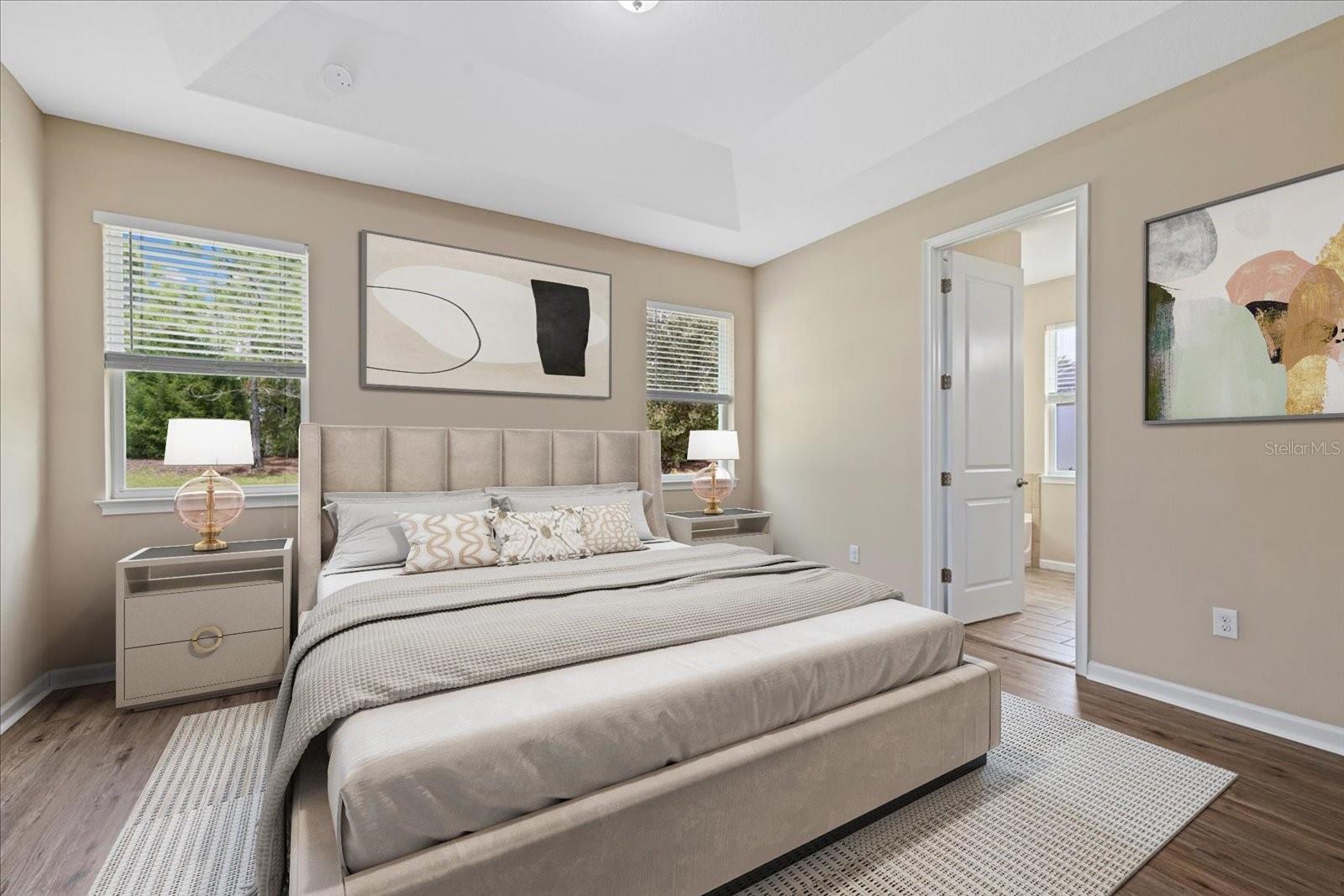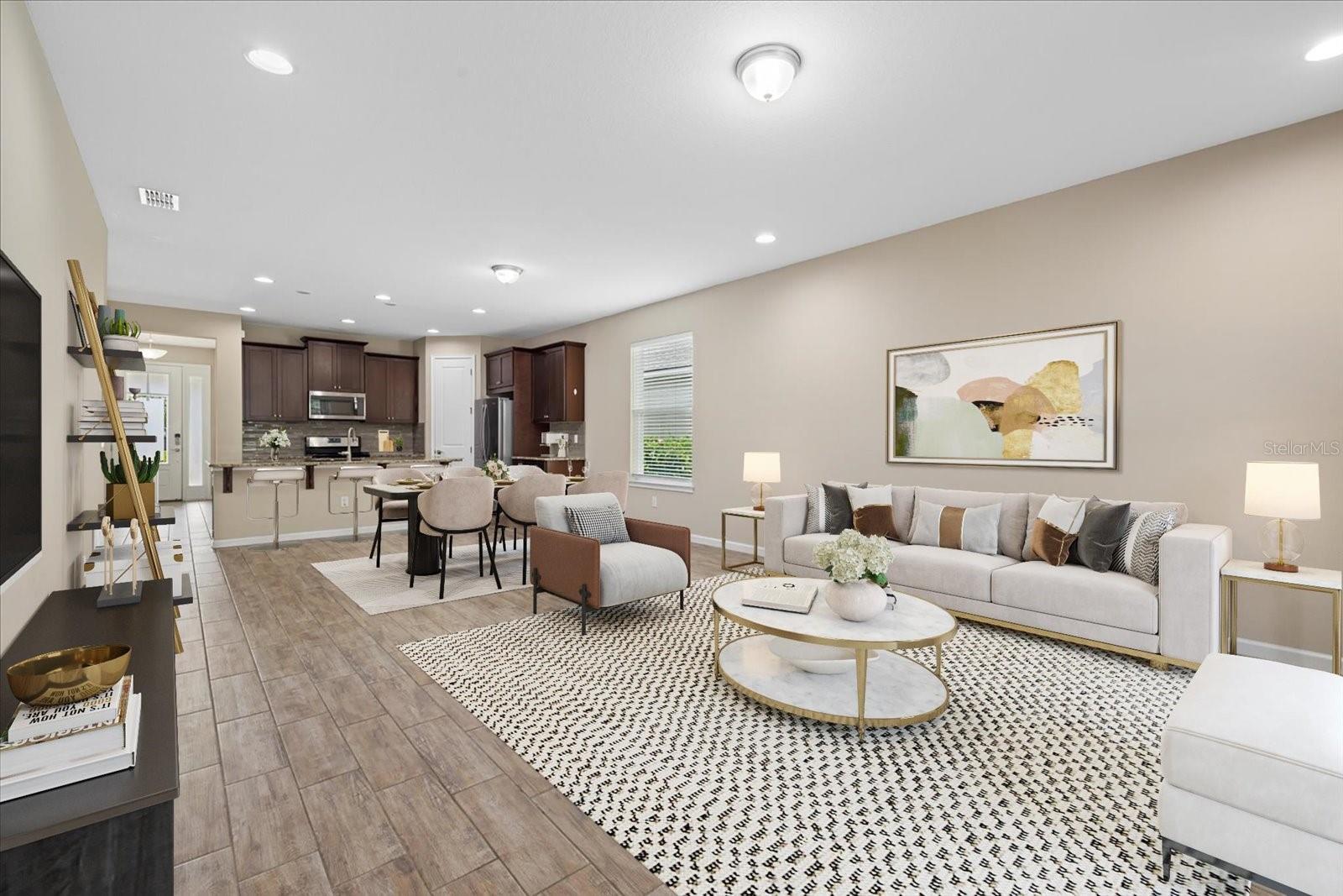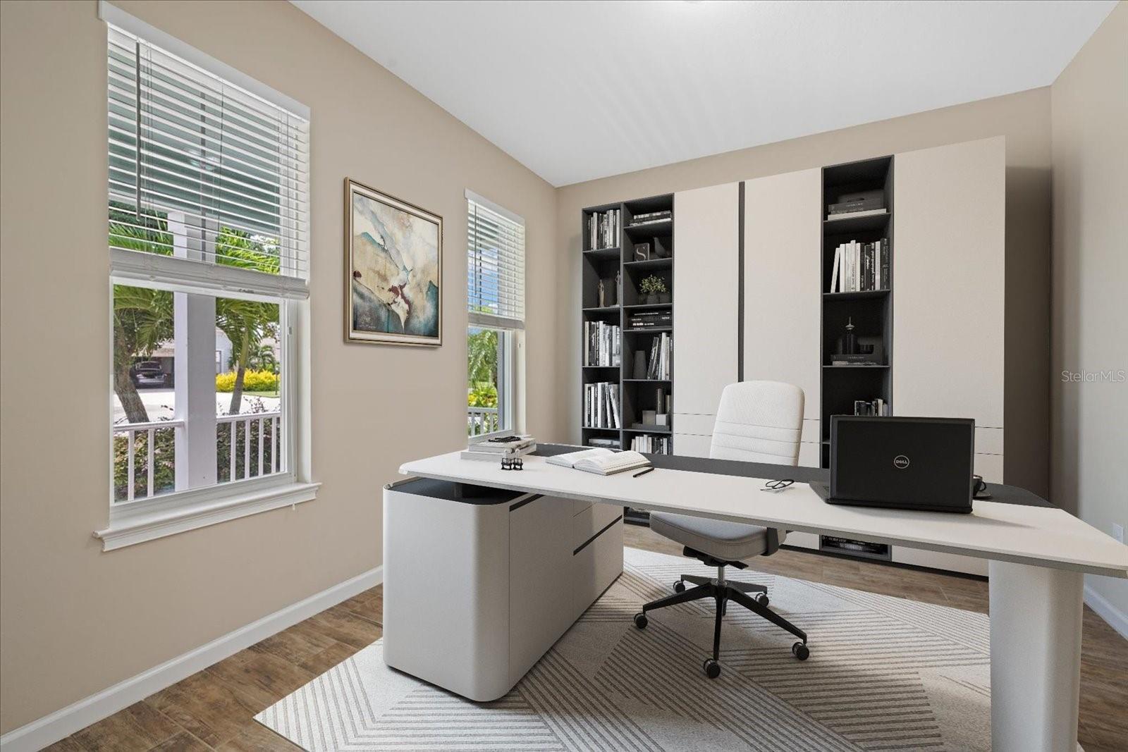 One or more photo(s) has been virtually staged. PRICED TO SELL WITH A BRAND NEW ROOF!! Welcome to your dream home nestled in the serene, gated community of Harmony in the heart of Lakewood Ranch. This delightful residence is located on a peaceful dead-end cul-de-sac, offering both tranquility and a sense of community. Step onto the inviting front porch where you can unwind, savor sunsets, engage with neighbors, or keep an eye on your loved ones. The expansive backyard features mature landscaping that ensures privacy and enhances the outdoor experience. Enjoy al fresco dining or simply relax under the generous covered lanai, making this space perfect for entertaining or quiet reflection. Inside, you'll find a thoughtfully designed floor plan WITH NO CARPET featuring 4 bedrooms, 2 bathrooms, and a dedicated home office with elegant French doors—ideal for remote work or study. The spacious great room is the heart of the home, seamlessly integrating a cozy living area, a bright dining space, and a kitchen outfitted with a central island and a handy pantry. The large primary suite is a true retreat, complete with double walk-in closets and a luxurious 5-piece en-suite bathroom. On the opposite side of the home, a hallway leads to three additional guest bedrooms and a well-appointed guest bathroom. Convenience is key with a dedicated laundry room and a spacious garage, providing ample space for all your vehicles and gear. As a resident of Harmony, you’ll enjoy maintenance-free living and a host of exclusive, fun-filled community amenities. Dive into the zero-entry pool, get active in the fitness center, let the kids play on the playground, or take a stroll along the scenic walking trails. Harmony's prime location is just 1.5 miles from the new Green shopping center, and close to Lakewood Ranch’s Town Center and Waterside. With easy access to top-rated schools and I-75, commuting to Sarasota, Bradenton, Tampa, St. Petersburg, and even Orlando is a breeze. Plus, don’t miss out on the world famous sugar sand beaches of the Gulf Coast, just a short drive away! This charming home in Harmony offers the perfect blend of comfort, convenience, and community. Don’t miss the opportunity to make it yours!