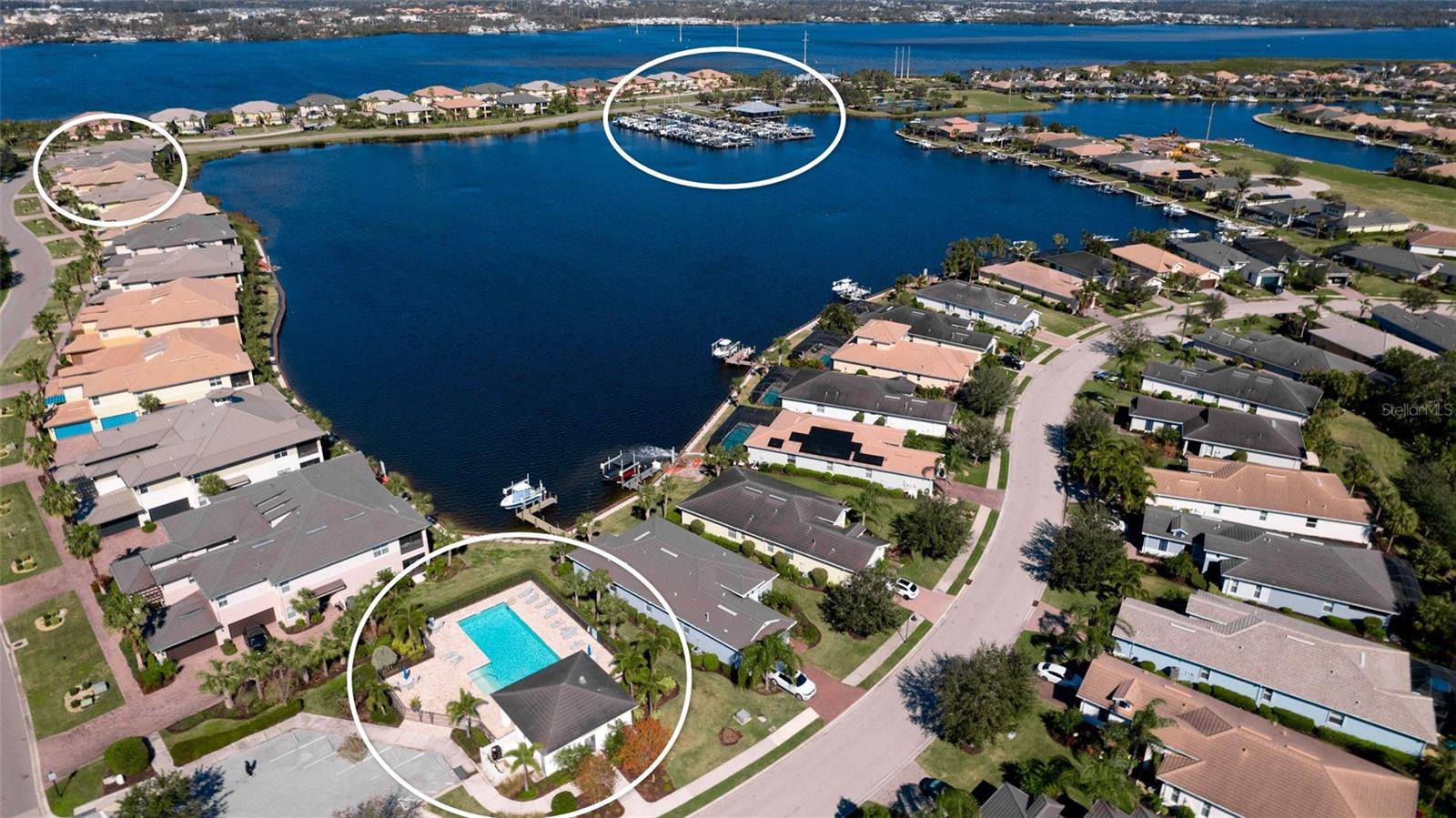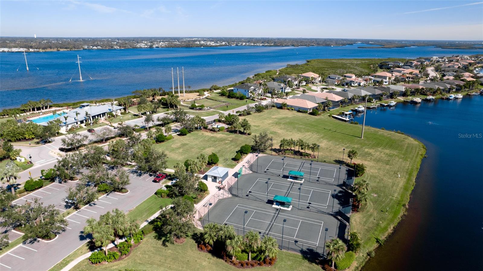 An opportunity to live in a gated community on the Manatee River with a Marina and many other amenities of Tidewater Preserve. This location, near the marina as well as the amenities offered in the surrounding community is private and well situated for easy access. Whether leaving from the marina by boat to the river, to either Tampa Bay or the Gulf of Mexico or just enjoying the views it's all right at here. You can just stay inside your spacious and very open interior floor plan or the expansive lanai, overlooking the Lagoon and Marina. When you pull directly into your garage or guests enter from the front door everyone can use the private elevator or the staircase entry. Once upstairs enjoy the expansive 2332 sq ft of interior living area, which includes 3 bedrooms, 2 bathrooms along with a den/office. The guest bathroom has a tub/shower, and the primary en suite bathroom has a large shower. Your new home's layout has the primary bedroom, also overlooking the Lagoon basin, with private access directly to the Lania. Tidewater Preserve provides ground maintenance for you (cutting, trimming, weeding, mulching, etc.) and an excellent package for cable, WIFI/internet in the modest HOA fees, no CDD. Also included are the resort-style amenities: fitness center, two clubhouses, pools, Har-Tru tennis courts, walking trail along the river, dog park, playground and kayak launch. For the nature lovers the kayak/canoe launch is another way of immersing themselves in the natural beauty of the area. Tidewater Preserve is a private community with an access gate staffed 24/7/365. Enjoy the Florida lifestyle in this once in a lifetime home in a premier boating community convenient to the Gulf Beaches, Tampa, St. Petersburg, Sarasota, and Lakewood Ranch.