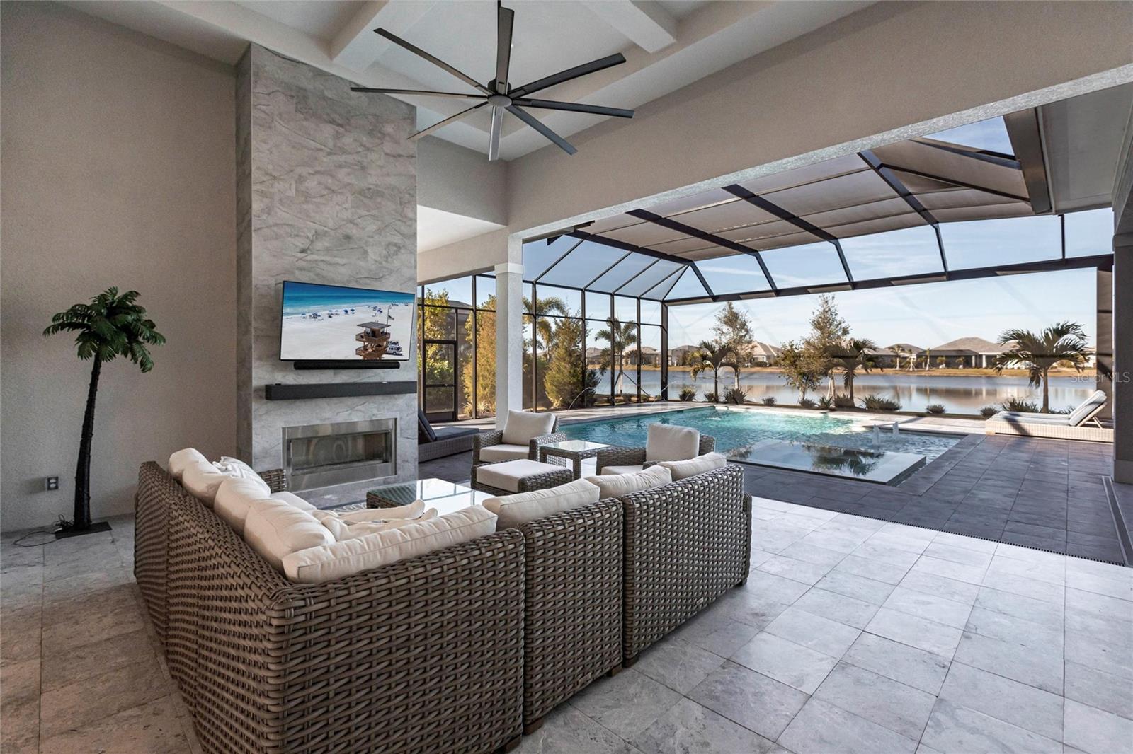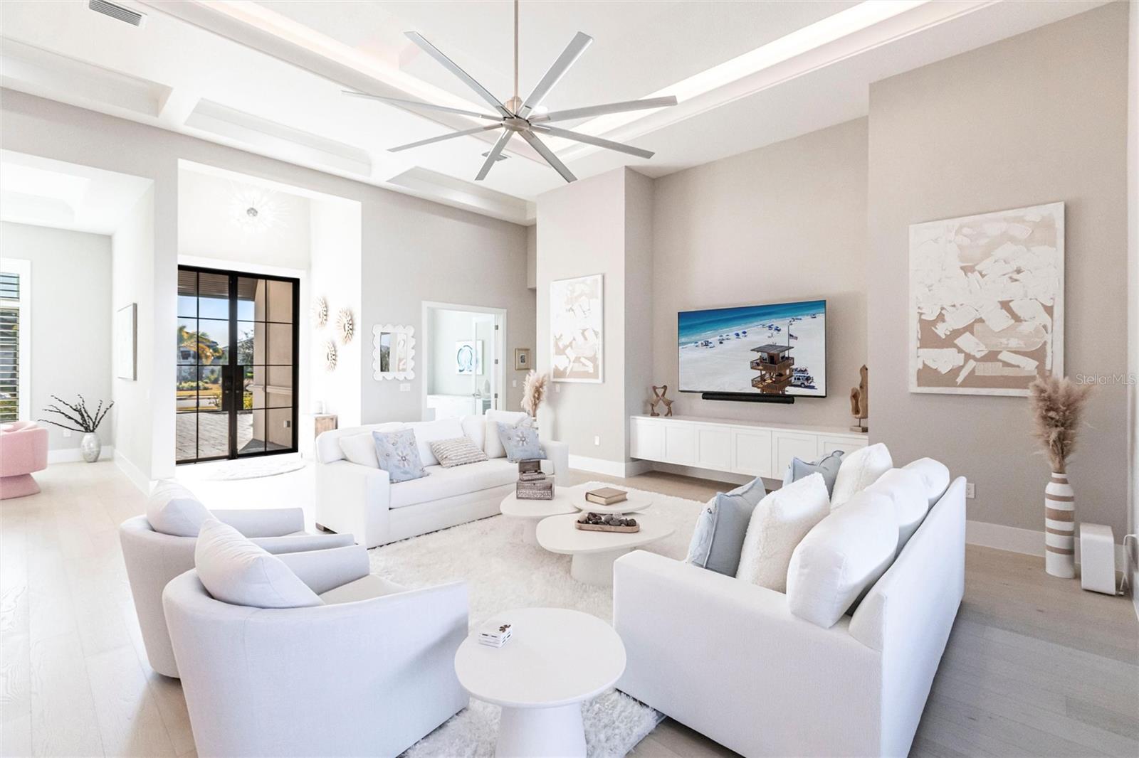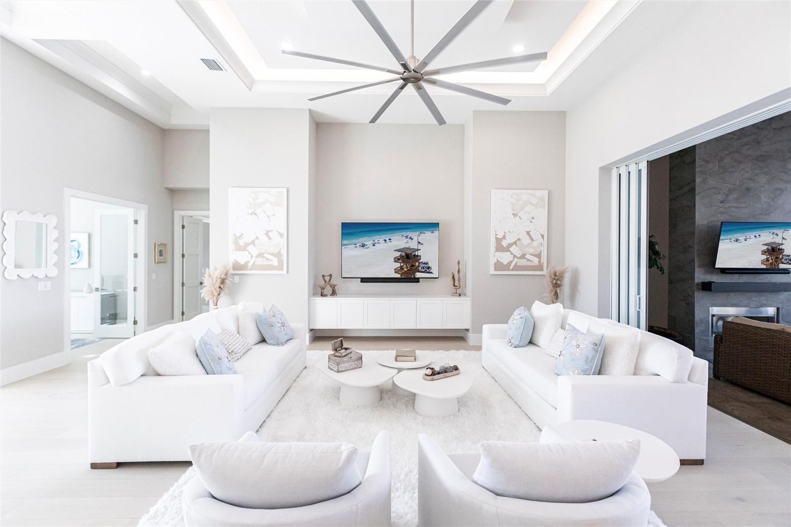 Exquisite 2024 Margo III Model in The Lake Club – Lakewood Ranch's Premier Community! This is the home you've dreamed about. Discover the pinnacle of luxury living in this gorgeous, newly built Stock Home, offering breathtaking lake views and an unparalleled indoor-outdoor lifestyle. This 3,936 sq. ft. masterpiece (5,826 sq. ft. total with extended lanai) features 3 bedrooms, 4.5 baths, a spacious den, a formal dining room, and a massive bonus/game room—easily convertible into a second master suite or mother-in-law retreat. Elegant & Functional Design: Chef’s dream kitchen with an oversized center island, ample cabinetry, and high-end appliances. Spectacular great room boasting 15-foot coffered ceilings, built-in cabinets, and 10-foot pocket sliders that seamlessly blend indoor and outdoor living. Expansive master suite with French doors opening to the lanai and a luxurious bath featuring a walk-in shower, soaking tub, and his-and-her built-out walk-in closets. The master suite is complete with Hunter Douglas remote control blackout shades. Two spacious guest suites, each with ensuite baths and walk-in closets. Outdoor Oasis: Oversized lanai with saltwater heated pool & spa, complete with fountains and ambient lighting. Fully equipped summer kitchen with a gas grill, outdoor gas fireplace & TV, plus a firepit overlooking the serene lake. Additional Features: Impact glass storm windows & security system for peace of mind. Engineered hardwood floors throughout. Gas water heater & metered sprinkler irrigation system. Water softener system, hot water recirculation pump, whole house electrical surge protectors, and plantation shutters. Located in The Lake Club, an exclusive, gated community with resort-style amenities, including a grand clubhouse, spa, fitness center, and more. Furniture negotiable—move in and start living the dream!