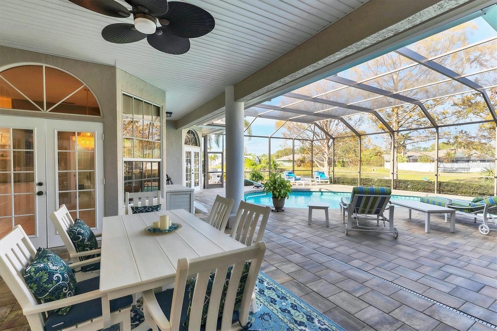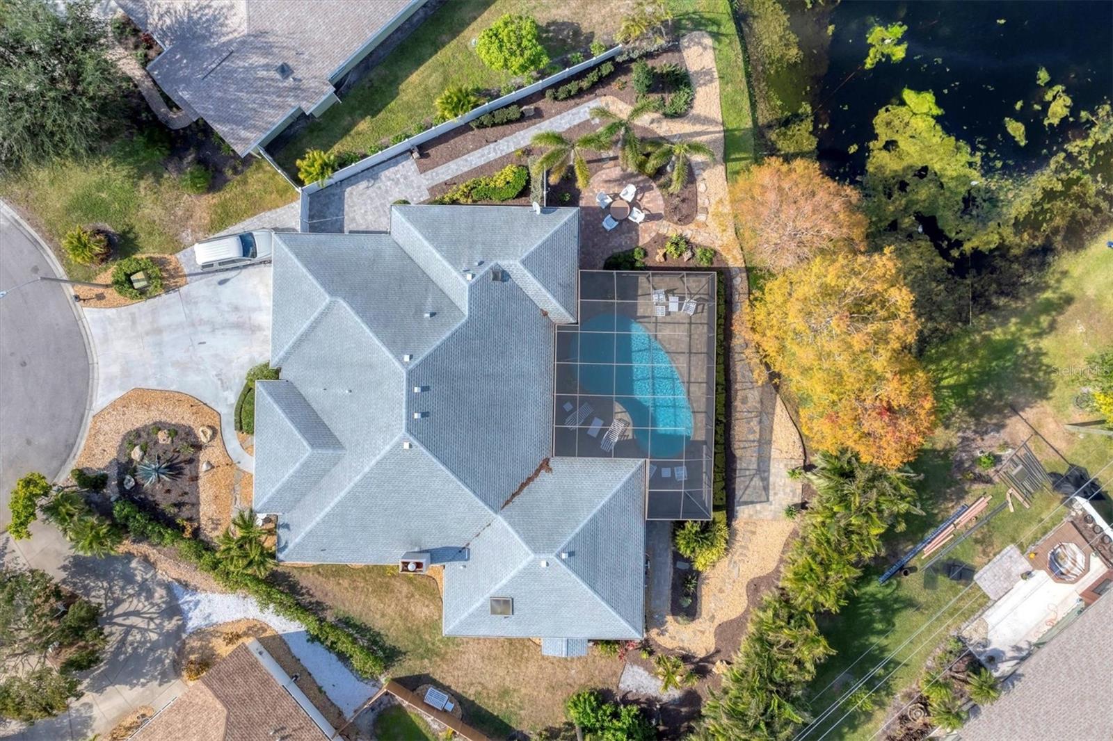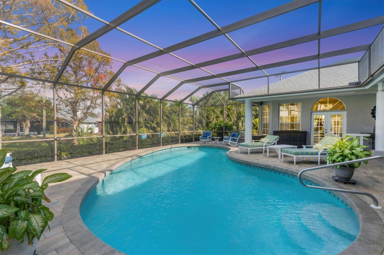 ~ NW BRADENTON LAKEFRONT HOME ~ There are so many amazing features to explore in this gorgeous cul-de-sac home! Enter the grand foyer that leads to the family room showcasing a newer $23K built-in housing a wine refrigerator and JennAire coffee system where you can indulge and delight your senses with specialty cappucinos, lattes and frothes. Higher ceilings, a wood burning fireplace and ample space for your furniture make this area incredibly cozy and inviting. You'll have over 3000 sf of living area featuring 3 bedrooms, 3 full bathrooms, a Study, a large breakfast nook and a formal dining room. Multiple sets of French doors lead to the caged saltwater heated pool and expansive covered patio and deck areas. Entertaining friends and family will be so effortless with all the inviting lounging areas surrounding the pool. Low maintenance native landscape has been enhanced with river rock, landscape lighting and slate pathways. Several private sitting areas can be found all around the perimeter of this home including a firepit seating area and table overlooking the natural lake creating a very charming ambiance. The captivating lakeviews that nature provides of the Rosetta Spoonbills, waterfowl and nesting turtles are absolutely absorbing. You'll also own a portion of the lake! The Primary Suite is a retreat all of its own with French doors and windows providing wonderful natural lighting inviting the outdoors in. The closet space is truly unbelievable with an incredible amount of room for all your items. Custom upgrades abound everywhere with upscale Lyteworks stunning chandeliers that come with dimmers. Enjoy the advantages of already having a $5K Halo Water Filtration System, Ring system, $50K kitchen makeover, $65K landscape upgrade, 2017 $27K roof, $30K A/C for two 2022 zones, $25K for appliances, $7k exterior paint, $5K interior paint job in 2023, $5k newer shed, 2022 sprinkler pump, irrigation system, $10K new pool cage with new screws and braces reinforced to hurricane standards and $18k for stunning primary suite bathroom cabinetry that includes a fluted glass shower door .... WOW .... no expense has been spared in maintaining this very special residence. Almost all the furnishings including artwork and the $6400 newer flat screen tv with a sound bar and Sonos sound system are available. This 1/2 acre property does not allow short term rentals, is deed restricted and has $290 annual fees and is in a non-flood zone. Be sure to view the Matterport Tour!