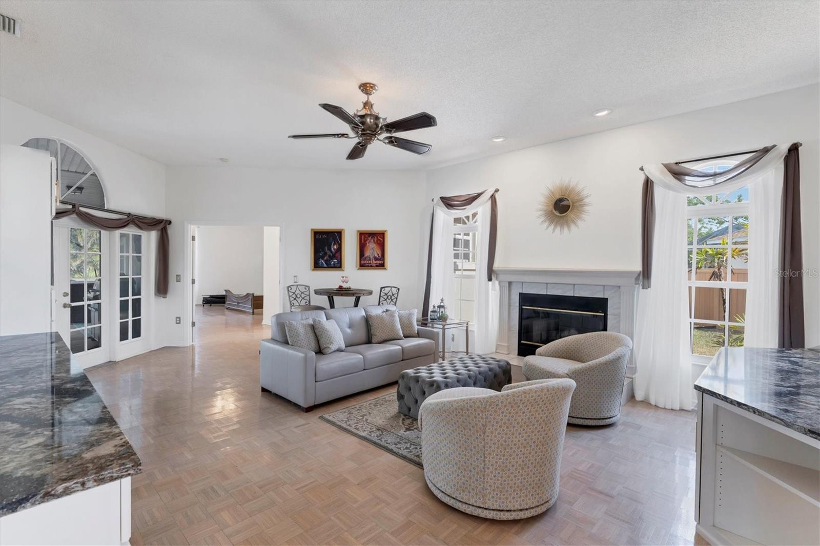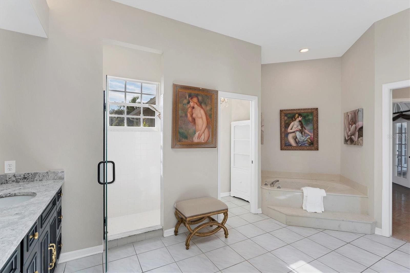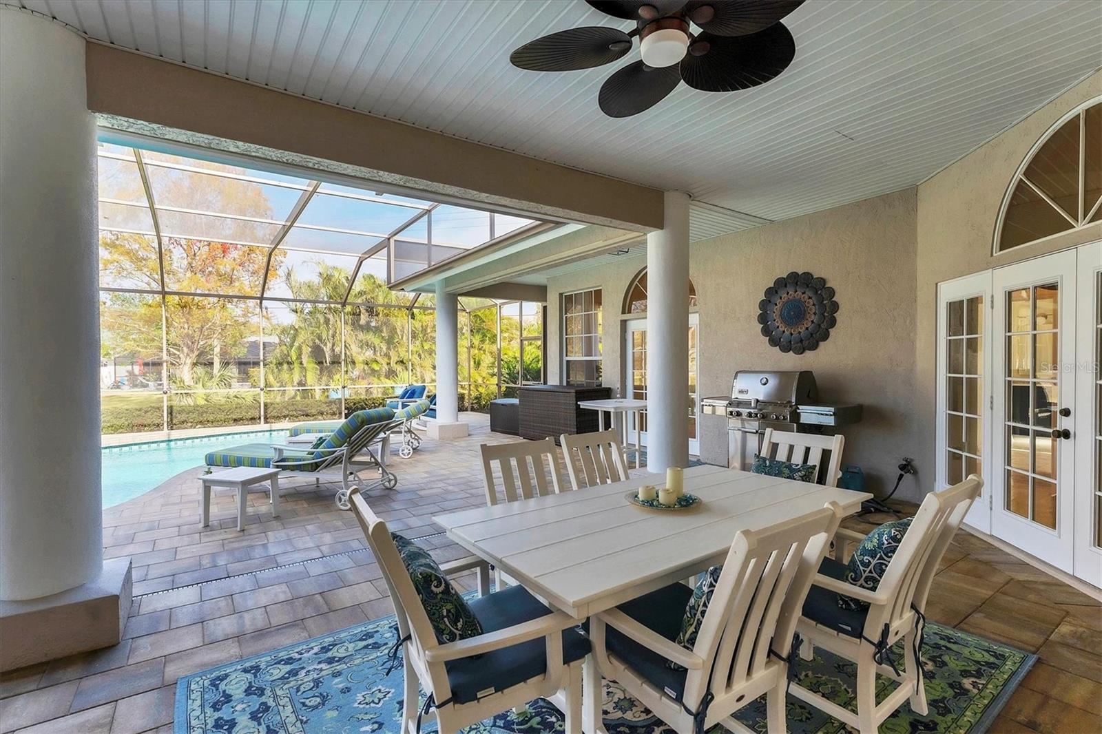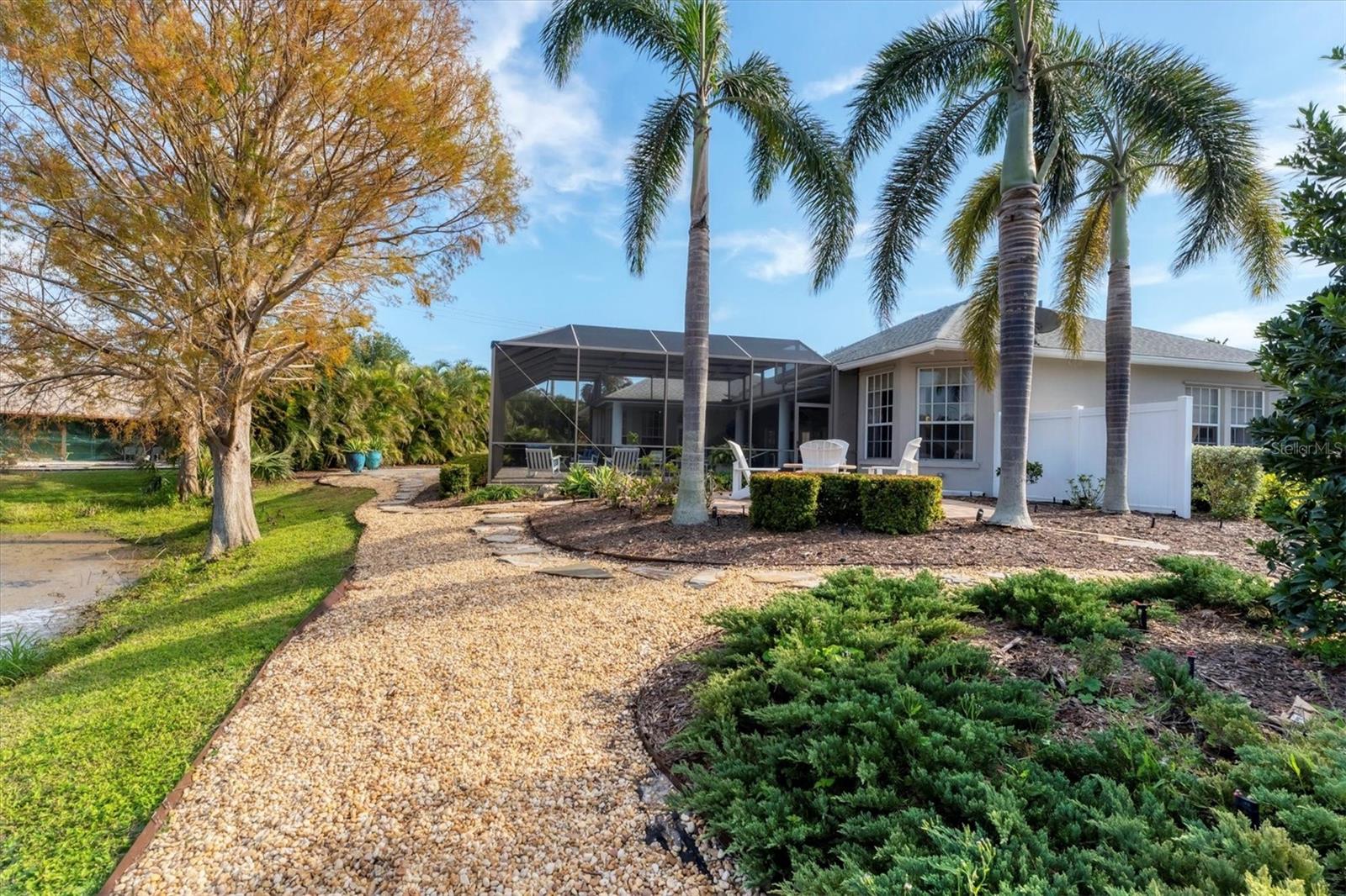 ~ NW BRADENTON LAKEFRONT HOME ~ There are so many amazing features to explore in this gorgeous cul-de-sac home! Enter the grand foyer that leads to the family room showcasing a newer $23K built-in housing a wine refrigerator and JennAire coffee system where you can indulge and delight your senses with specialty cappucinos, lattes and frothes. Higher ceilings, a wood burning fireplace and ample space for your furniture make this area incredibly cozy and inviting. You'll have over 3000 sf of living area featuring 3 bedrooms, 3 full bathrooms, a Study, a large breakfast nook and a formal dining room. Multiple sets of French doors lead to the caged saltwater heated pool and expansive covered patio and deck areas. Entertaining friends and family will be so effortless with all the inviting lounging areas surrounding the pool. Low maintenance native landscape has been enhanced with river rock, landscape lighting and slate pathways. Several private sitting areas can be found all around the perimeter of this home including a firepit seating area and table overlooking the natural lake creating a very charming ambiance. The captivating lakeviews that nature provides of the Rosetta Spoonbills, waterfowl and nesting turtles are absolutely absorbing. You'll also own a portion of the lake! The Primary Suite is a retreat all of its own with French doors and windows providing wonderful natural lighting inviting the outdoors in. The closet space is truly unbelievable with an incredible amount of room for all your items. Custom upgrades abound everywhere with upscale Lyteworks stunning chandeliers that come with dimmers. Enjoy the advantages of already having a $5K Halo Water Filtration System, Ring system, $50K kitchen makeover, $65K landscape upgrade, 2017 $27K roof, $30K A/C for two 2022 zones, $25K for appliances, $7k exterior paint, $5K interior paint job in 2023, $5k newer shed, 2022 sprinkler pump, irrigation system, $10K new pool cage with new screws and braces reinforced to hurricane standards and $18k for stunning primary suite bathroom cabinetry that includes a fluted glass shower door .... WOW .... no expense has been spared in maintaining this very special residence. Almost all the furnishings including artwork and the $6400 newer flat screen tv with a sound bar and Sonos sound system are available. This 1/2 acre property does not allow short term rentals, is deed restricted and has $290 annual fees and is in a non-flood zone. Be sure to view the Matterport Tour!