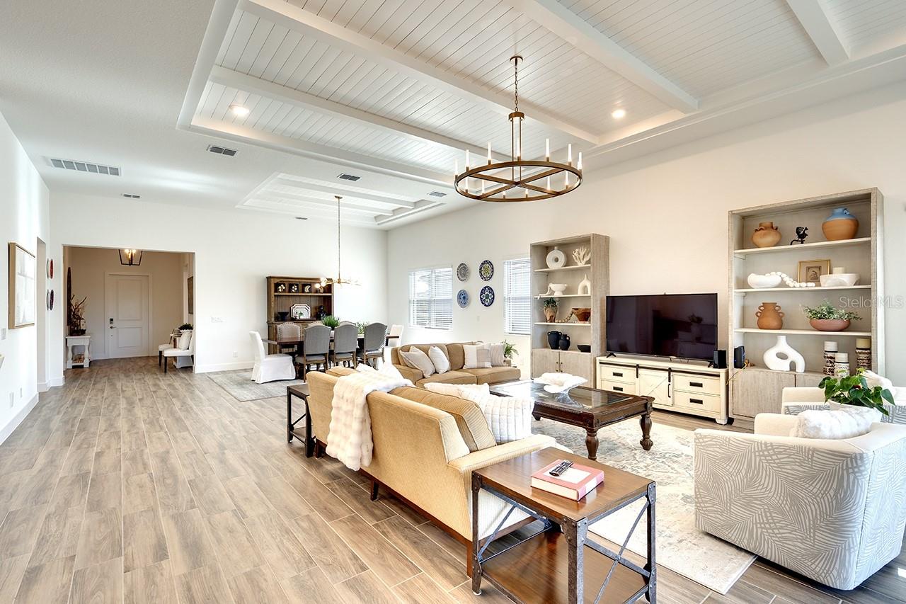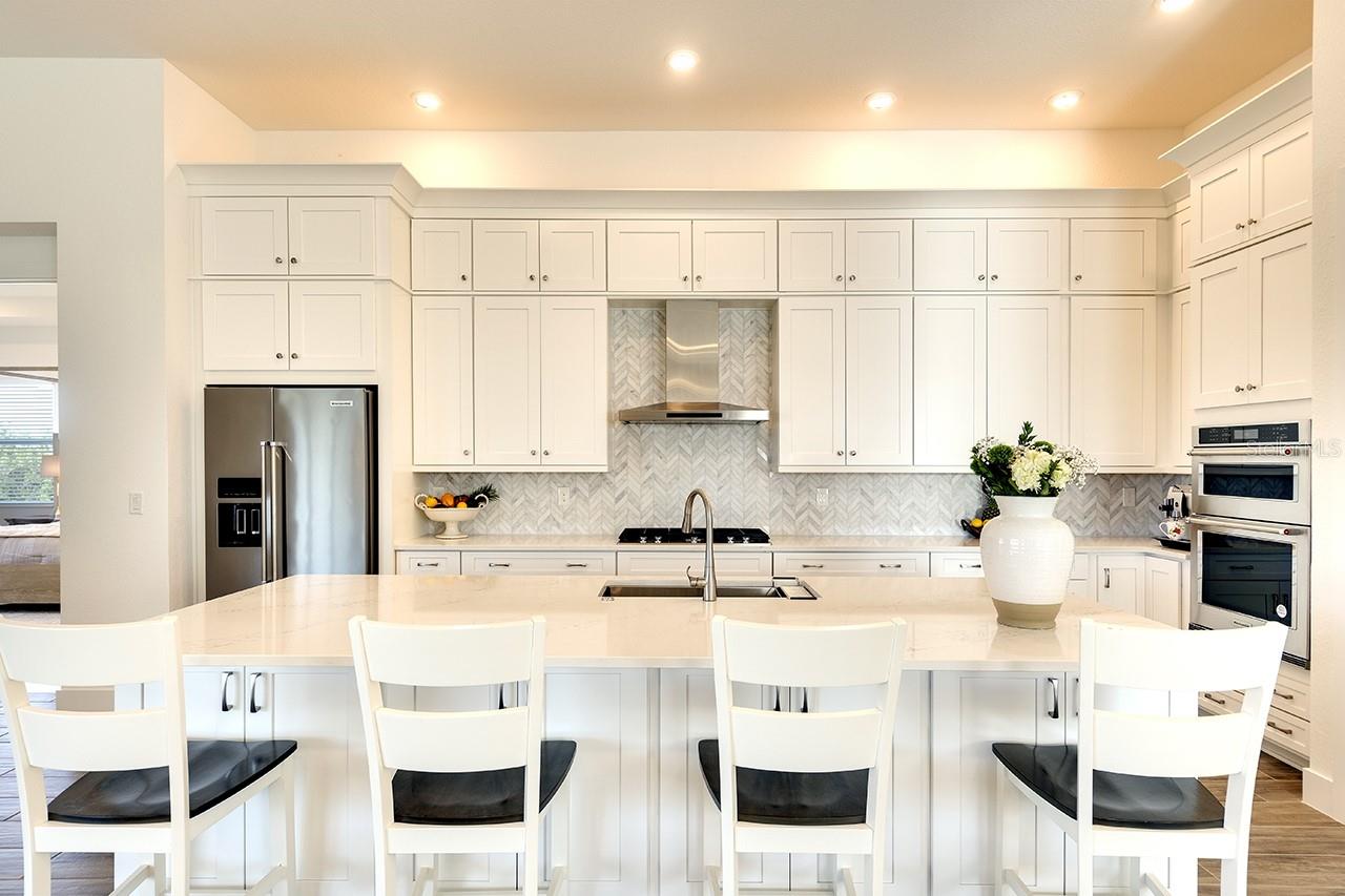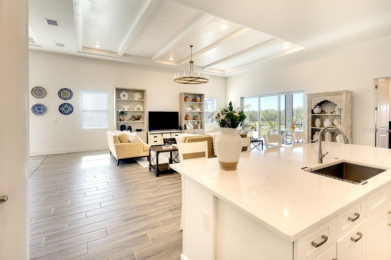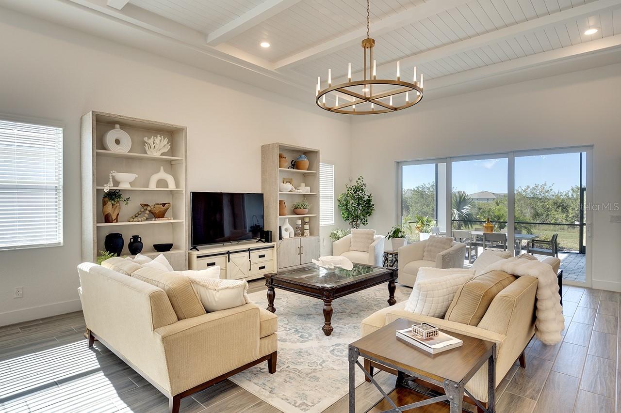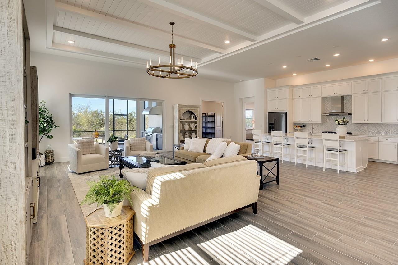 Price Improvement! Now offered at $1,010,000. This beautifully upgraded home is move-in ready and waiting for its new owners. This 3-bedroom, 3-bathroom home spans 3,022 square feet and is located on an oversized lot with picturesque views of a serene preserve, offering privacy and a stunning natural backdrop. Ceramic tile floors run throughout the home, creating a cohesive and low maintenance living space. The expanded great room and dining room features beautiful, coffered ceilings with shiplap and beams, adding a touch of architectural elegance, while designer chandeliers enhance the sophistication of both the great room and dining area. The alternate kitchen layout is a chef’s dream, featuring sleek quartz countertops and marble backsplash, 5 burner gas stove, walk in pantry and a spacious design perfect for entertaining. A tankless water heater and hurricane impact windows and doors provide modern efficiency and peace of mind. A central vacuum system is built in which is designed to make household chores easier. The primary suite is a luxurious retreat with a large walk in closet, a spa-like bathroom, featuring recessed shower niche, rain shower head, as well as standard shower fixture and dual sinks. The second bedroom offers an en-suite bathroom, ideal for guests or family members seeking comfort and privacy. A home office with a view of the preserve provides a tranquil space for work or relaxation. Outdoor living is exceptional with a welcoming front porch, a screened-in back porch for year-round enjoyment, and a fully equipped outdoor kitchen perfect for entertaining featuring a grill, refrigerator, sink and a tranquil view of the pond and preserve. Located in an amenity -rich community, residents of The Isles at Lakewood Ranch enjoy access to a resort-style pool, along with lap lanes, clubhouse, fitness center, tennis and pickleball courts, and scenic walking and biking trails. This exceptional residence seamlessly blends luxury, functionality and natural beauty, offering an unparalleled lifestyle in a truly breathtaking setting. Don't miss this incredible opportunity to own a beautifully upgraded home in The Isles!