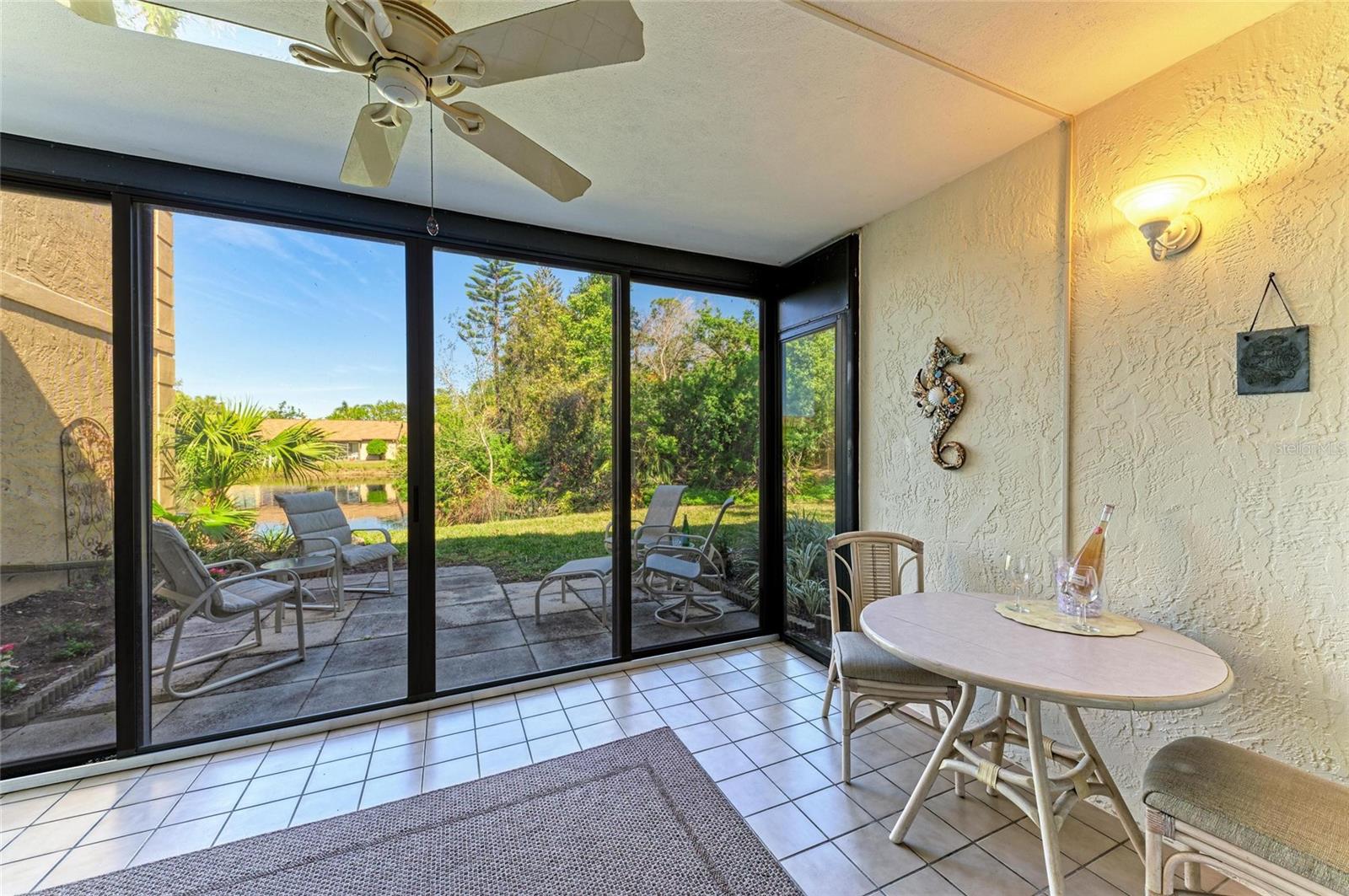 Discover coastal living in this spacious ground floor end unit, untouched by hurricanes and just minutes from charming Anna Maria Island. Easy access to shopping, dining, and the stunning natural parks of Robinsons Preserve, De Soto National Park, and G.T. Bray Park. Upon entering through the garden-like entrance, you are welcomed by an inviting open floor plan showcasing serene lake views through the lanai and rear courtyard. This well-maintained property boasts abundant natural light, a newly updated primary bathroom (2023), a refreshed second bathroom (2020), and is in the small welcoming complex of “The Lakes”. The amenities include a clubhouse, heated pool, tennis courts, along with a new roof (2019) and gutters (2025). This complex is pet friendly and has no age restrictions. This property is offered turnkey furnished with a list of exceptions and has a deeded carport. Information deemed reliable but not guaranteed. Buyer and Buyers agent to verify.