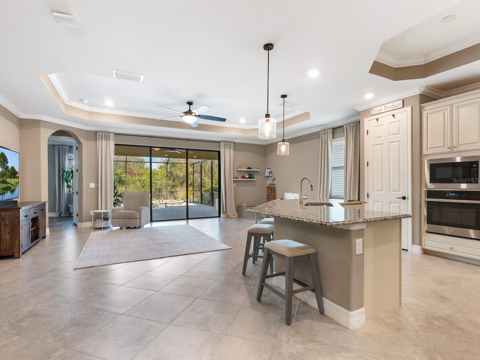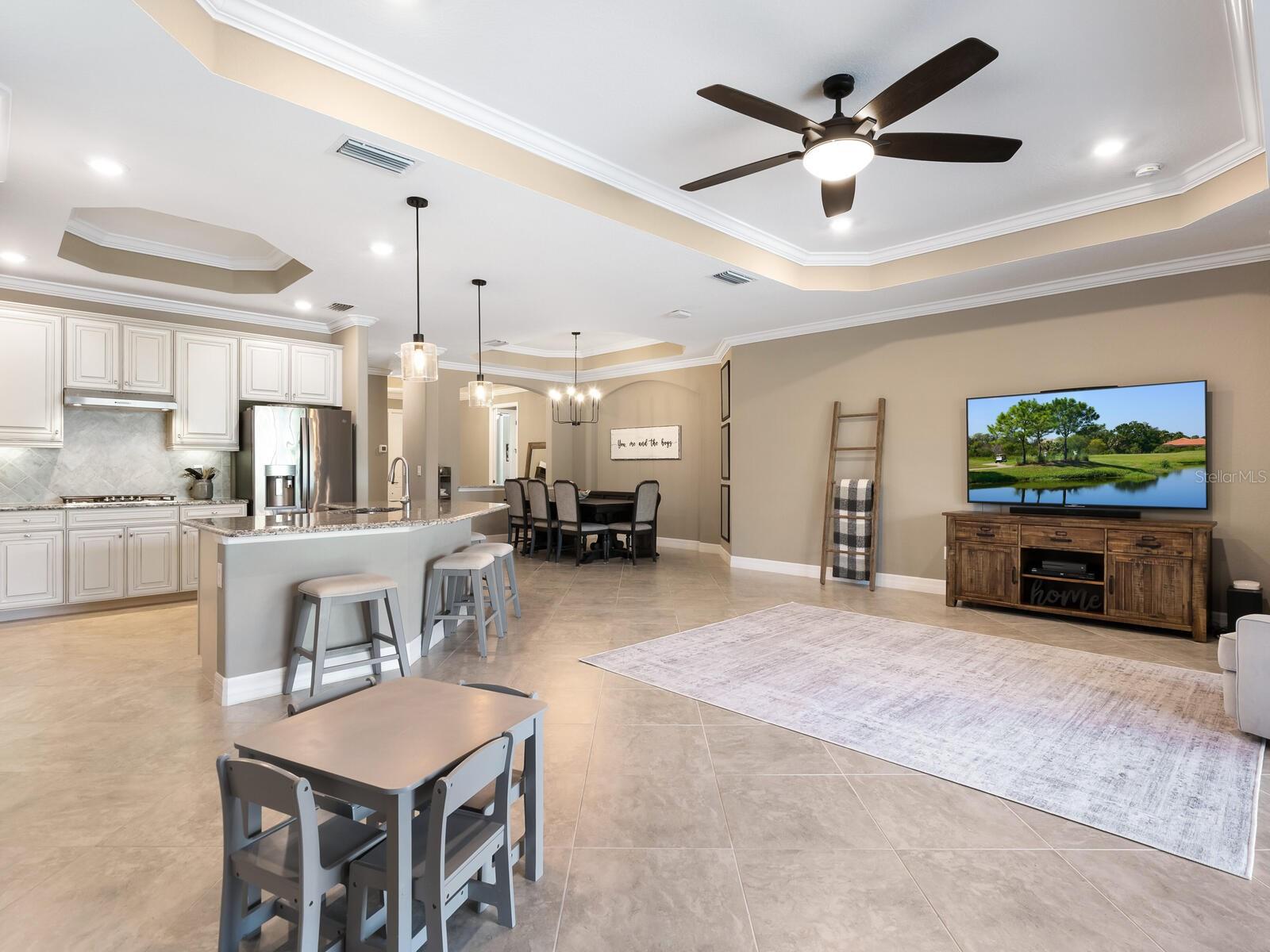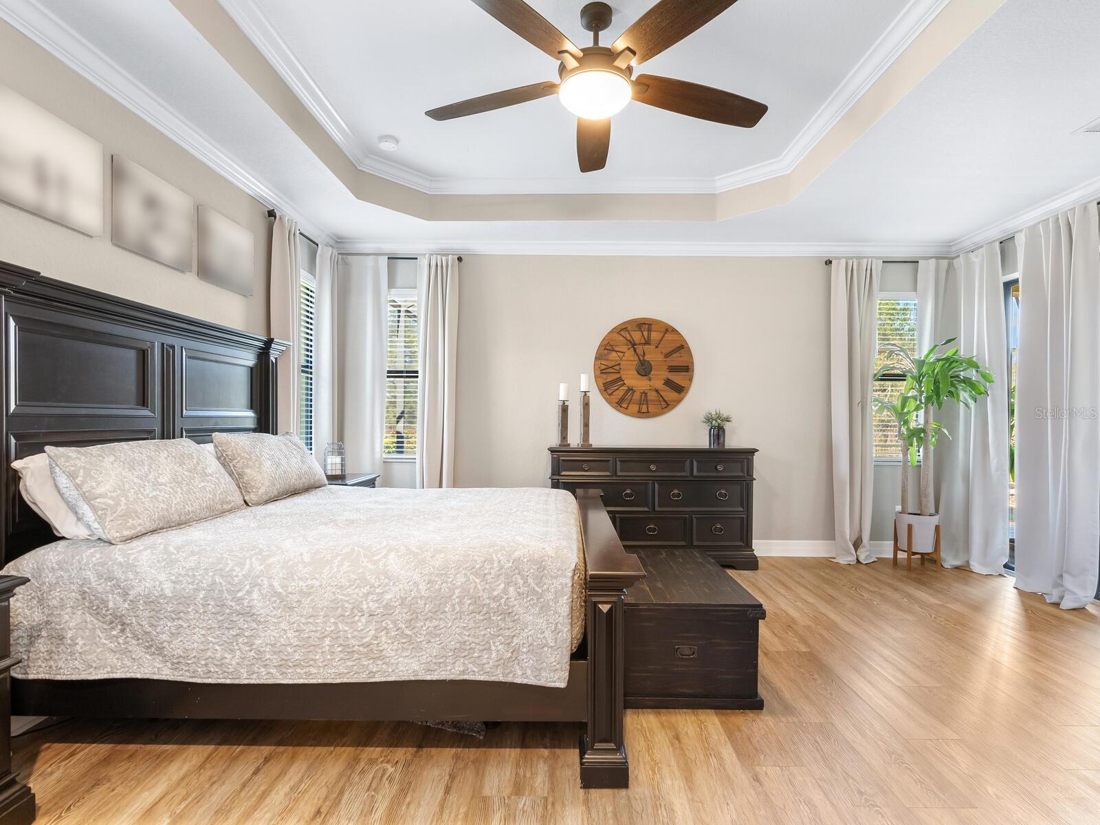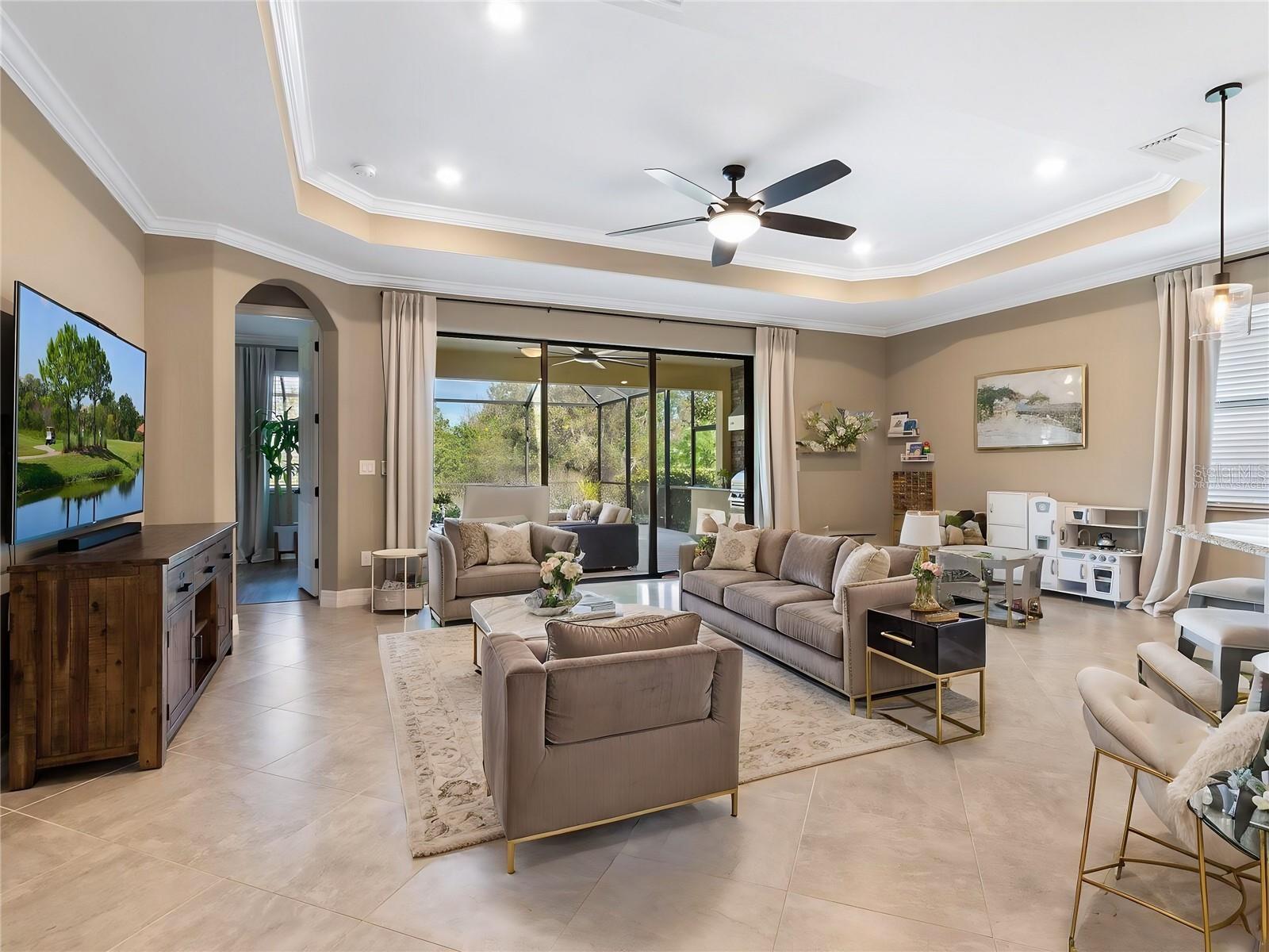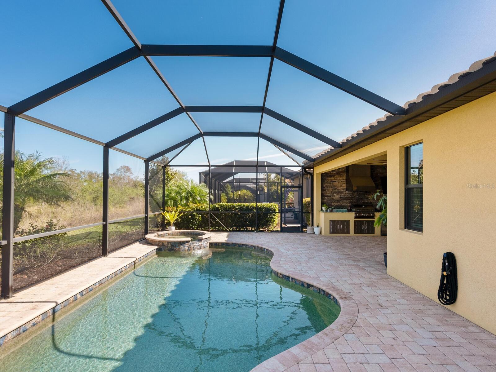 One or more photo(s) has been virtually staged. Experience the perfect blend of comfort and sophistication in the Isabella model, featuring 4 bedrooms (4th currently an office) and 2 bathrooms, saltwater pool and spa and 2 car garage! Located in the fabulous Lakewood National Golf Club, a 36-hole Arnold Palmer-designed golf community in Lakewood Ranch, this fully established, resort-style neighborhood offers exclusive access to championship golf and premier amenities. An inviting foyer leads into the open-concept kitchen, dining, and living area, perfect for entertaining. The well-designed kitchen boasts a large island with seating, stainless steel appliances, abundant cabinetry, and an oversized pantry. A private split-bedroom guest suite features two bedrooms sharing a full bath. The laundry room, complete with a utility sink and cabinetry, is conveniently located near the 2-car garage. The expansive primary suite is a true retreat, featuring a tray ceiling, cozy sitting area, and two spacious walk-in closets. The luxurious ensuite bath includes dual vanities, a soaking tub, walk-in shower, a linen closet, and a private water closet. Enjoy Luxury Vinyl Plank flooring throughout the bedrooms and office. Outdoors, relax in your private backyard oasis, complete with a summer kitchen, saltwater pool and spa, framed by the serene preserve views. Beyond the home, indulge in Lakewood Nationals resort-style amenities, including a beach-entry lagoon pool, poolside dining, a Tiki bar, a luxury spa, a state-of-the-art fitness center, and a Grand Clubhouse with fine and casual dining. Stay active with tennis, pickleball, bocce courts, and world-class practice facilities, all within a gated community with 24-hour security. As a resident, you will also enjoy an included membership to two championship Arnold Palmer-designed golf courses, ensuring every round feels like a getaway!