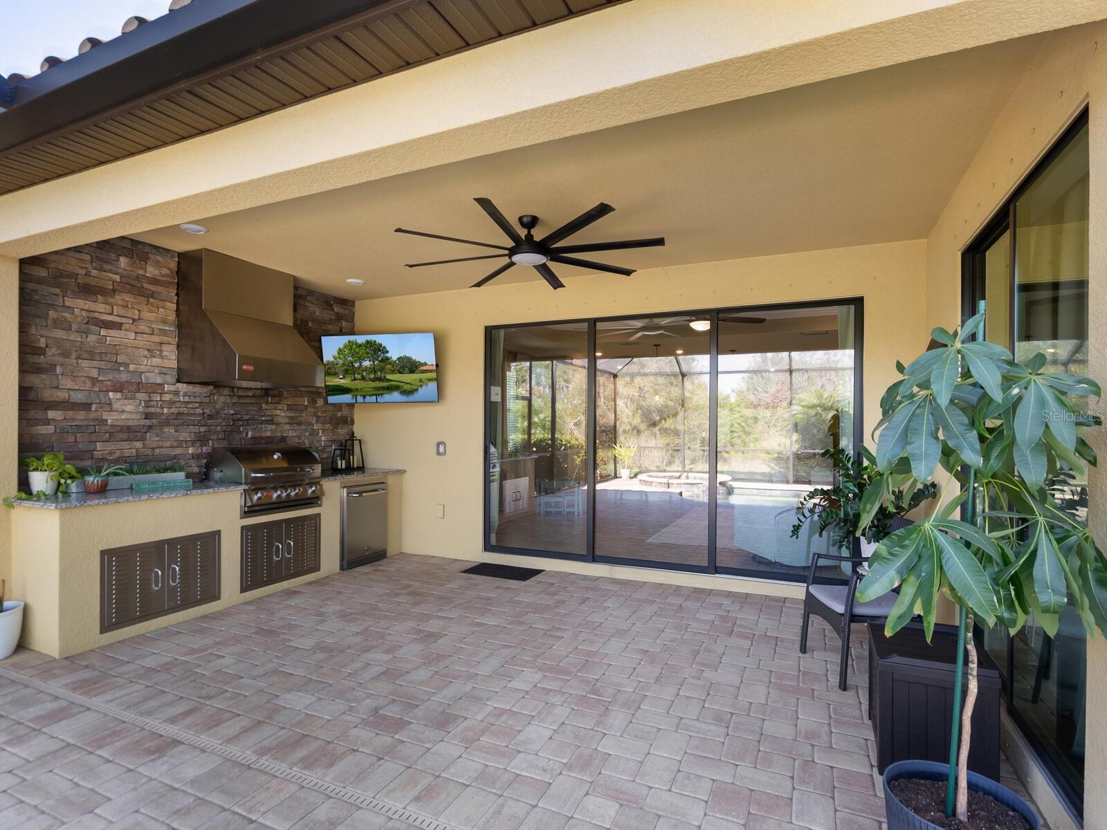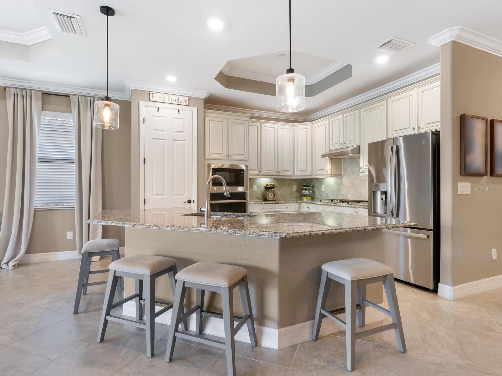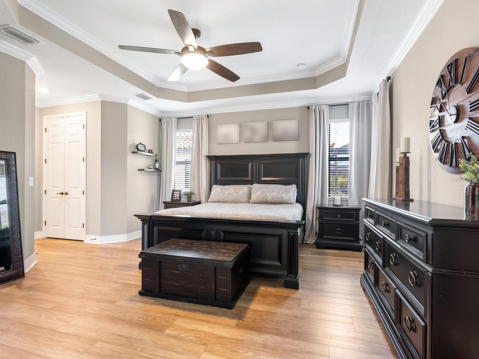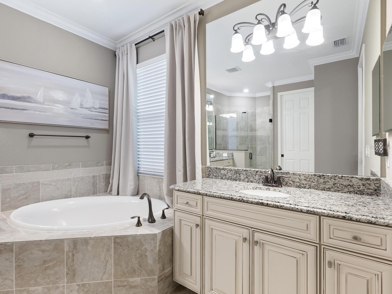 One or more photo(s) has been virtually staged. Experience the perfect blend of comfort and sophistication in the Isabella model, featuring 4 bedrooms (4th currently an office) and 2 bathrooms, saltwater pool and spa and 2 car garage! Located in the fabulous Lakewood National Golf Club, a 36-hole Arnold Palmer-designed golf community in Lakewood Ranch, this fully established, resort-style neighborhood offers exclusive access to championship golf and premier amenities. An inviting foyer leads into the open-concept kitchen, dining, and living area, perfect for entertaining. The well-designed kitchen boasts a large island with seating, stainless steel appliances, abundant cabinetry, and an oversized pantry. A private split-bedroom guest suite features two bedrooms sharing a full bath. The laundry room, complete with a utility sink and cabinetry, is conveniently located near the 2-car garage. The expansive primary suite is a true retreat, featuring a tray ceiling, cozy sitting area, and two spacious walk-in closets. The luxurious ensuite bath includes dual vanities, a soaking tub, walk-in shower, a linen closet, and a private water closet. Enjoy Luxury Vinyl Plank flooring throughout the bedrooms and office. Outdoors, relax in your private backyard oasis, complete with a summer kitchen, saltwater pool and spa, framed by the serene preserve views. Beyond the home, indulge in Lakewood Nationals resort-style amenities, including a beach-entry lagoon pool, poolside dining, a Tiki bar, a luxury spa, a state-of-the-art fitness center, and a Grand Clubhouse with fine and casual dining. Stay active with tennis, pickleball, bocce courts, and world-class practice facilities, all within a gated community with 24-hour security. As a resident, you will also enjoy an included membership to two championship Arnold Palmer-designed golf courses, ensuring every round feels like a getaway!