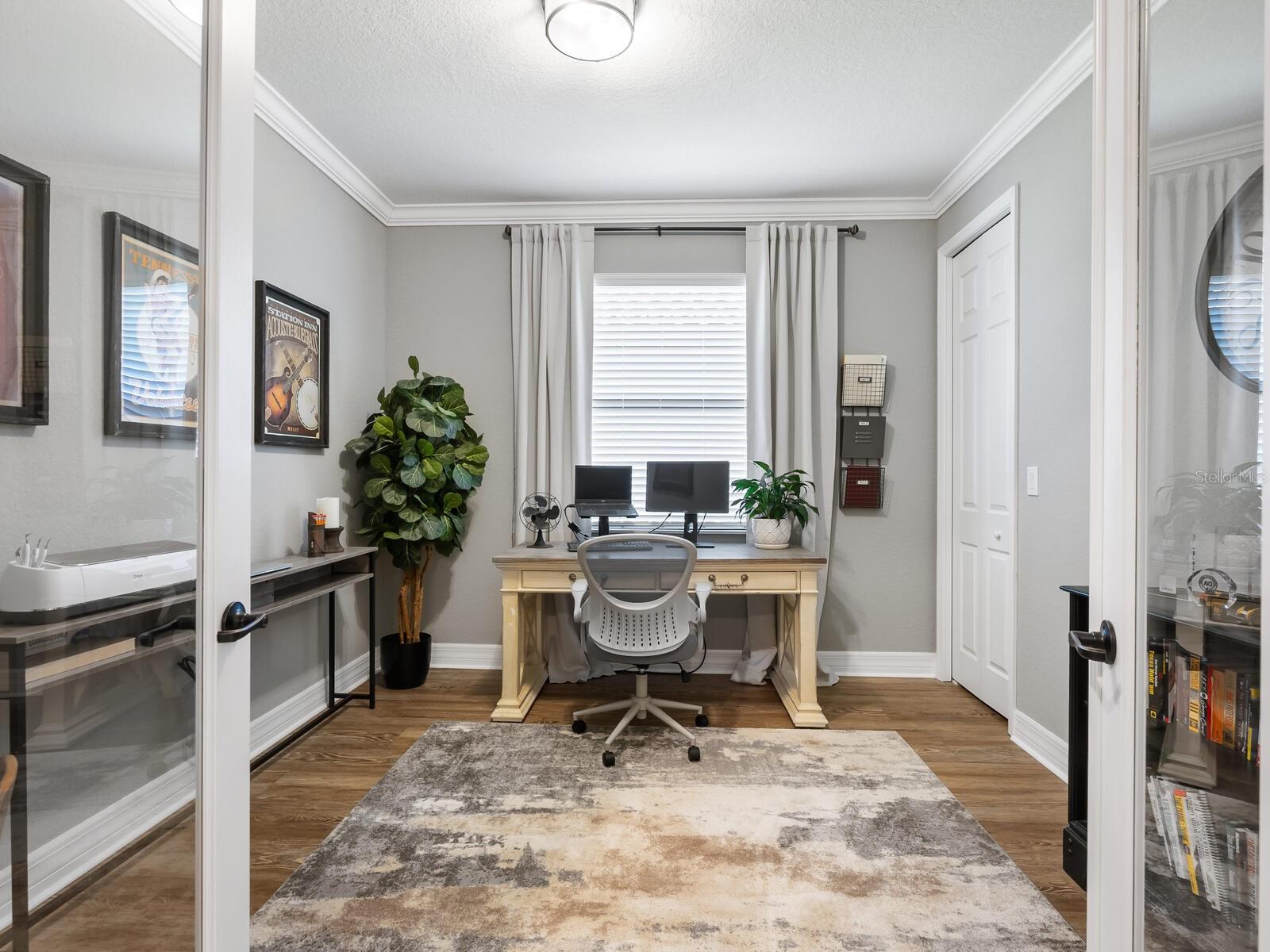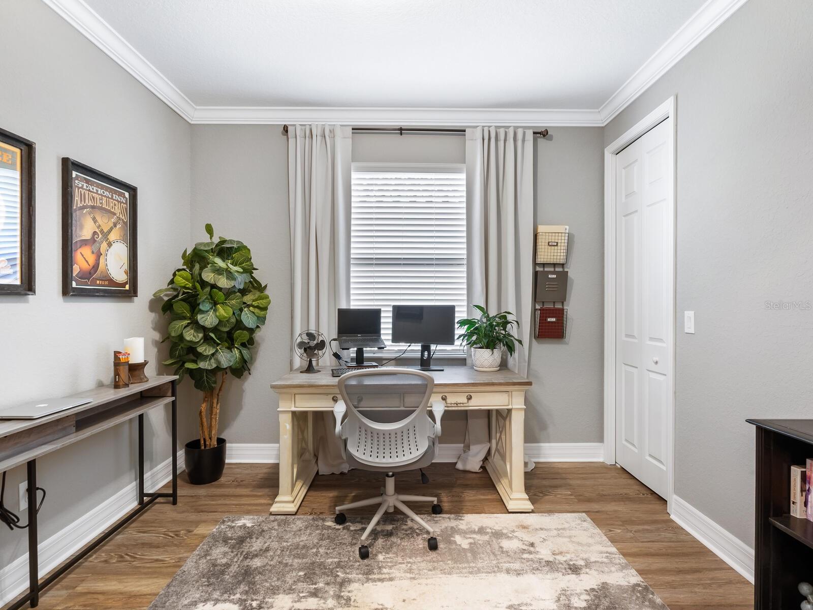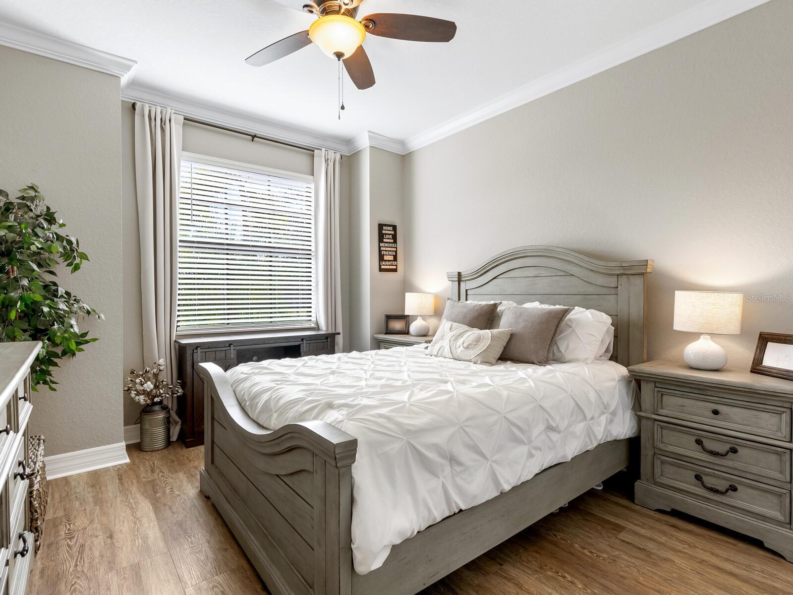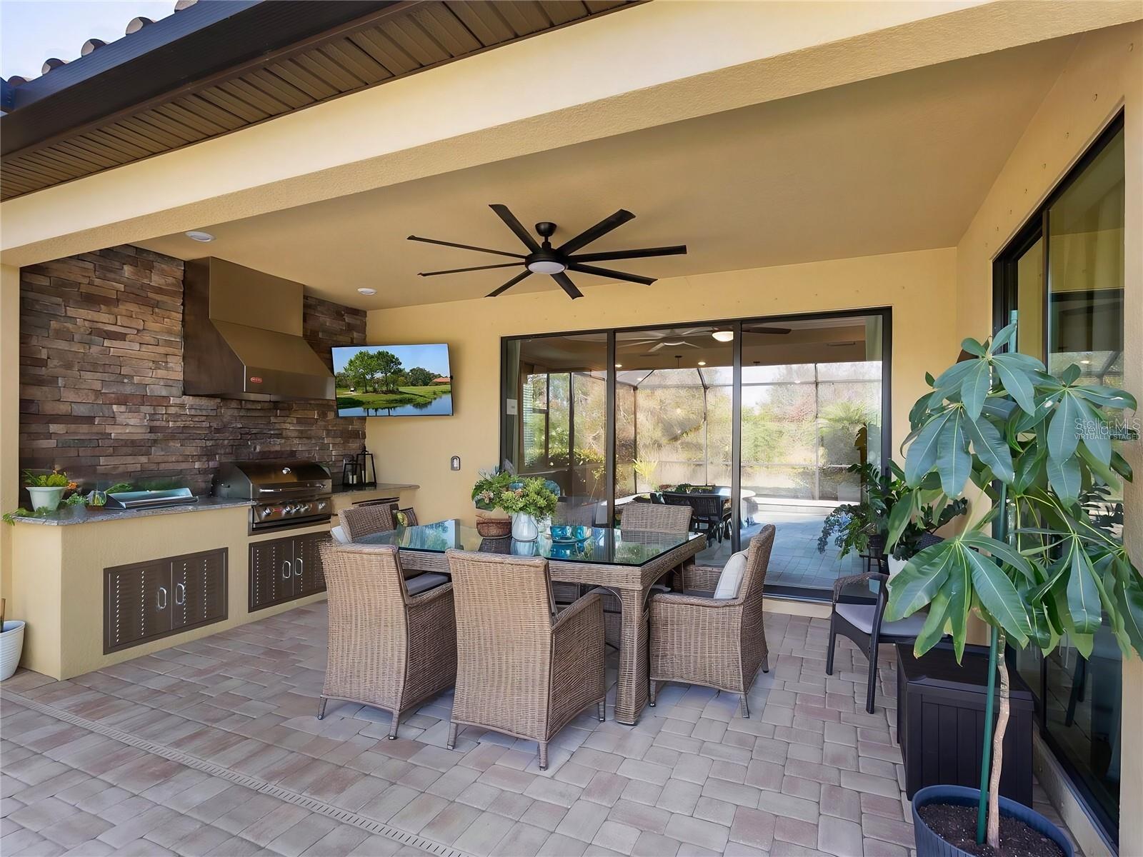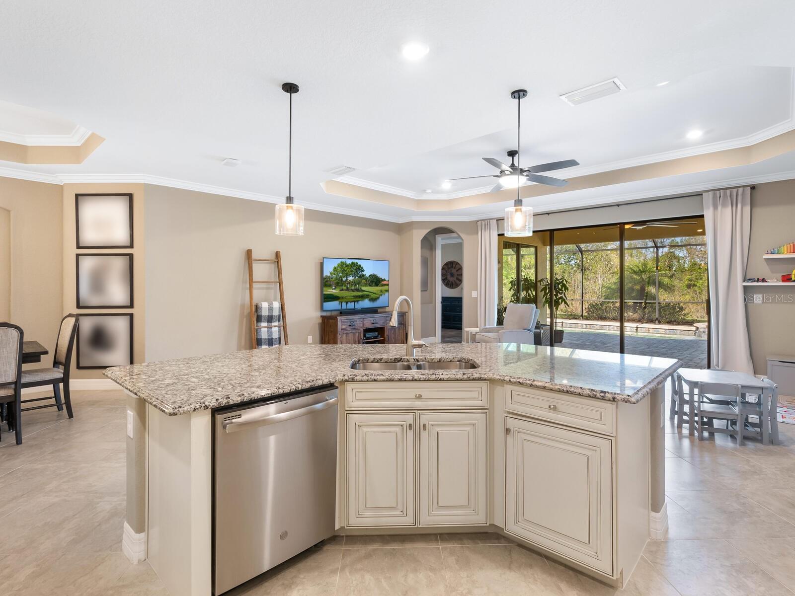 One or more photo(s) has been virtually staged. Experience the perfect blend of comfort and sophistication in the Isabella model, featuring 4 bedrooms (4th currently an office) and 2 bathrooms, saltwater pool and spa and 2 car garage! Located in the fabulous Lakewood National Golf Club, a 36-hole Arnold Palmer-designed golf community in Lakewood Ranch, this fully established, resort-style neighborhood offers exclusive access to championship golf and premier amenities. An inviting foyer leads into the open-concept kitchen, dining, and living area, perfect for entertaining. The well-designed kitchen boasts a large island with seating, stainless steel appliances, abundant cabinetry, and an oversized pantry. A private split-bedroom guest suite features two bedrooms sharing a full bath. The laundry room, complete with a utility sink and cabinetry, is conveniently located near the 2-car garage. The expansive primary suite is a true retreat, featuring a tray ceiling, cozy sitting area, and two spacious walk-in closets. The luxurious ensuite bath includes dual vanities, a soaking tub, walk-in shower, a linen closet, and a private water closet. Enjoy Luxury Vinyl Plank flooring throughout the bedrooms and office. Outdoors, relax in your private backyard oasis, complete with a summer kitchen, saltwater pool and spa, framed by the serene preserve views. Beyond the home, indulge in Lakewood Nationals resort-style amenities, including a beach-entry lagoon pool, poolside dining, a Tiki bar, a luxury spa, a state-of-the-art fitness center, and a Grand Clubhouse with fine and casual dining. Stay active with tennis, pickleball, bocce courts, and world-class practice facilities, all within a gated community with 24-hour security. As a resident, you will also enjoy an included membership to two championship Arnold Palmer-designed golf courses, ensuring every round feels like a getaway!