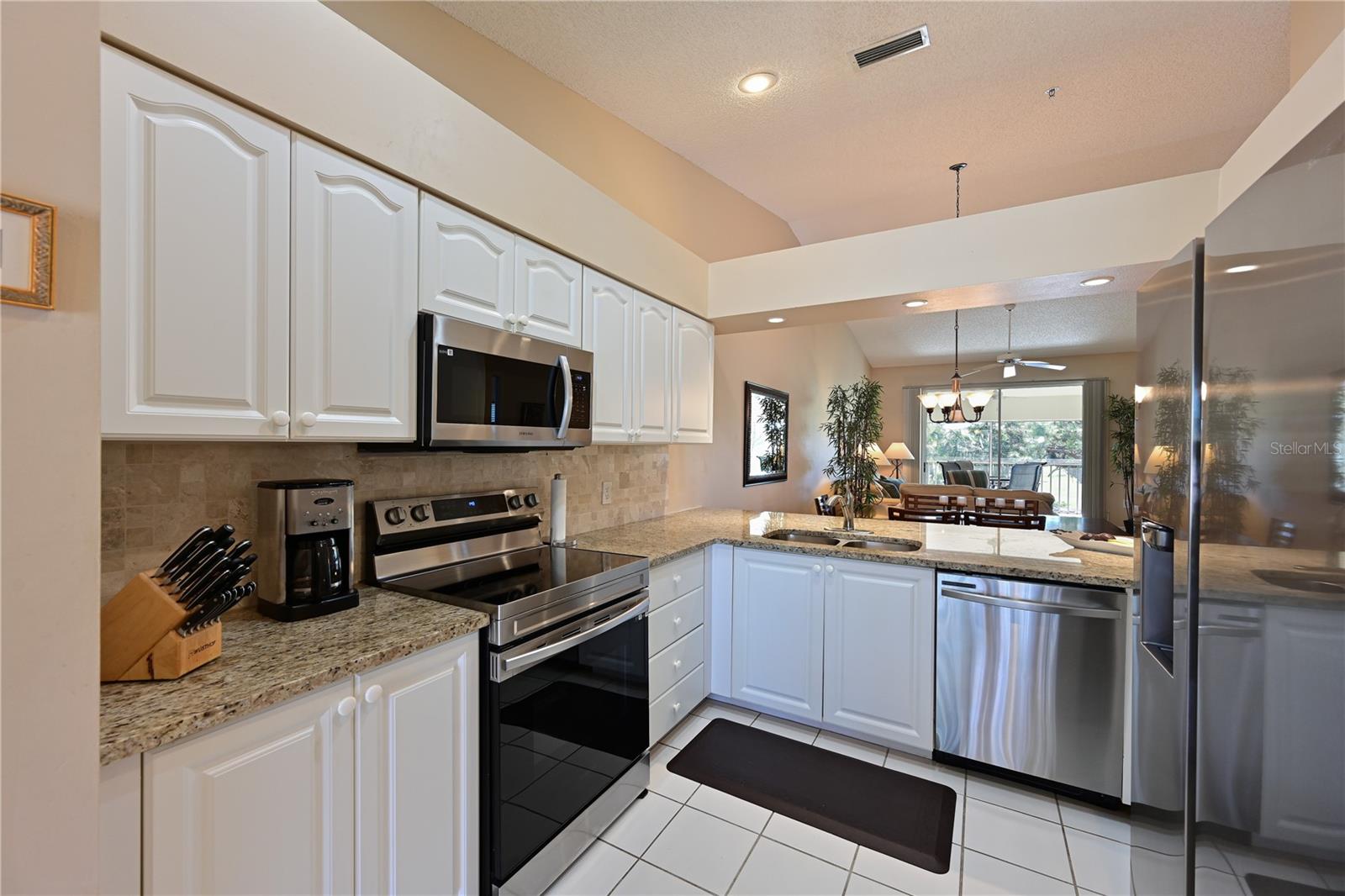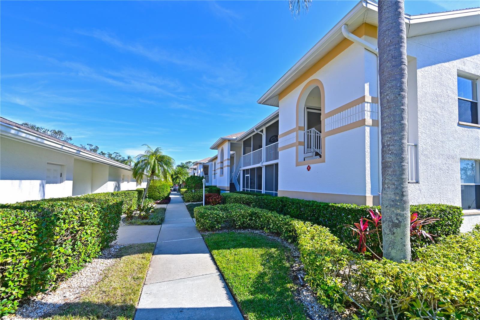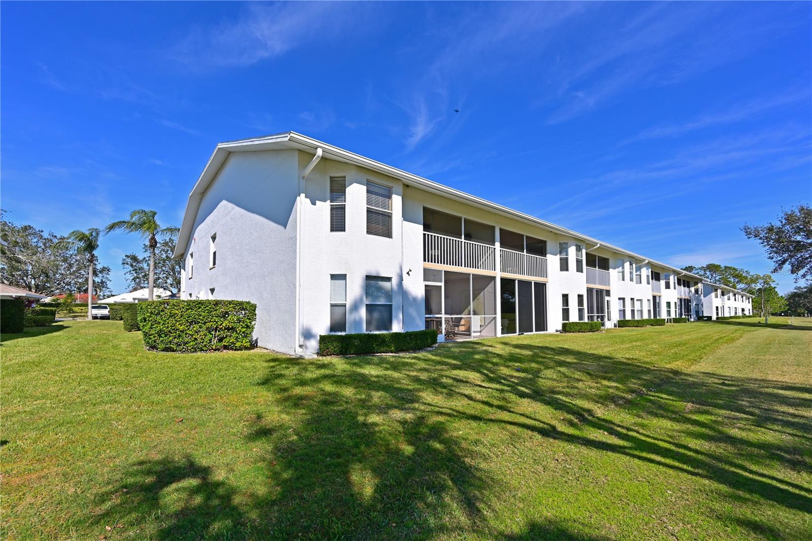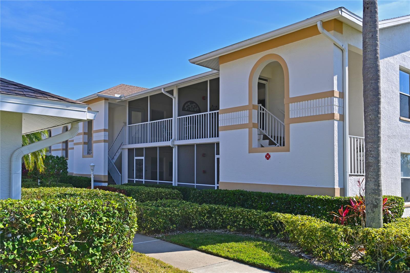 Truly one of the most fabulous turn-key furnished, end unit condos in the Village of Tara Golf and Country Club. Beautiful, updated kitchen, open floor plan, wood floors throughout the living area, wet bar for that extra area of entertaining needs, den with pocket doors, and a few of the features of this two bedroom, two bath home. Kitchen has stone counters and been opened up structurally between the dining room and kitchen to give a grand open feeling. Two full baths and convenient laundry closet. Two screened in lanais, the back Lanai looks out on the 10th and 11th hole of the championship golf course with southern exposure for great sunsets and inspiring sun rises. Class A membership is deeded to the property for the best golf community you can find. 18 hole golf course was renovated in 2023 with new greens, tee boxes and fairways. Pickleball Center presently being built with 5 new courts, to be completed Spring 2025. The community enjoys community pools, tennis, full fitness center, bocce, clubhouse dining and actives in the greatest location off State Rd 70. Close to highways, airports, super shopping and dining, and the best beaches in the Sarasota Bradenton area. Home comes with a 1 Year Home Warranty!!! Welcome to Taradise!
