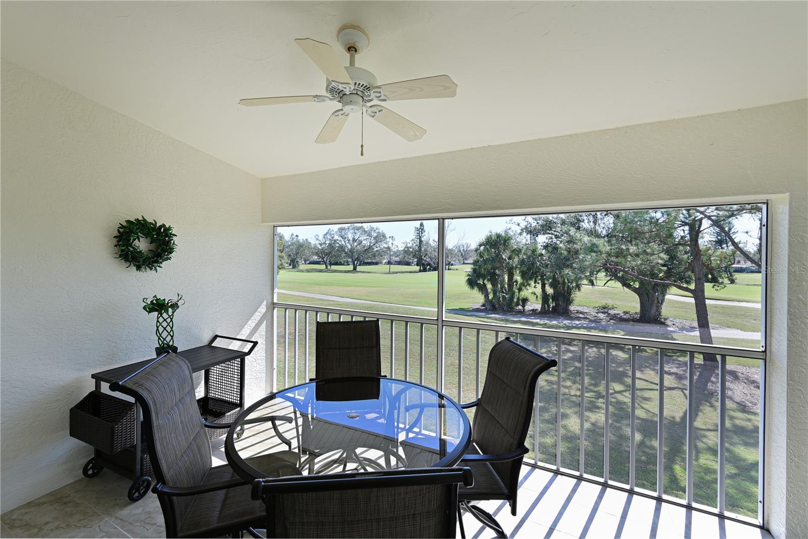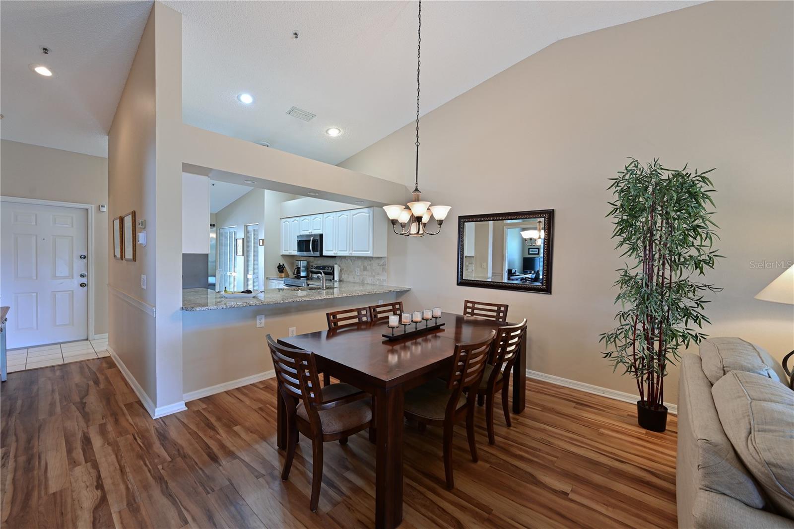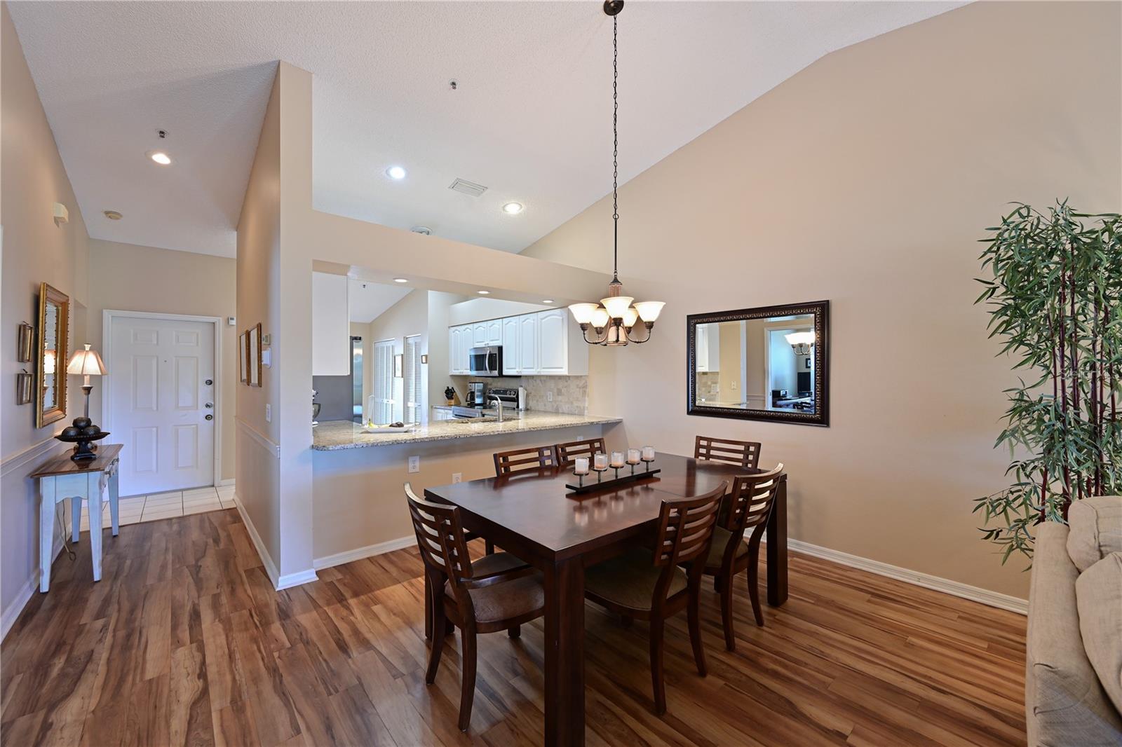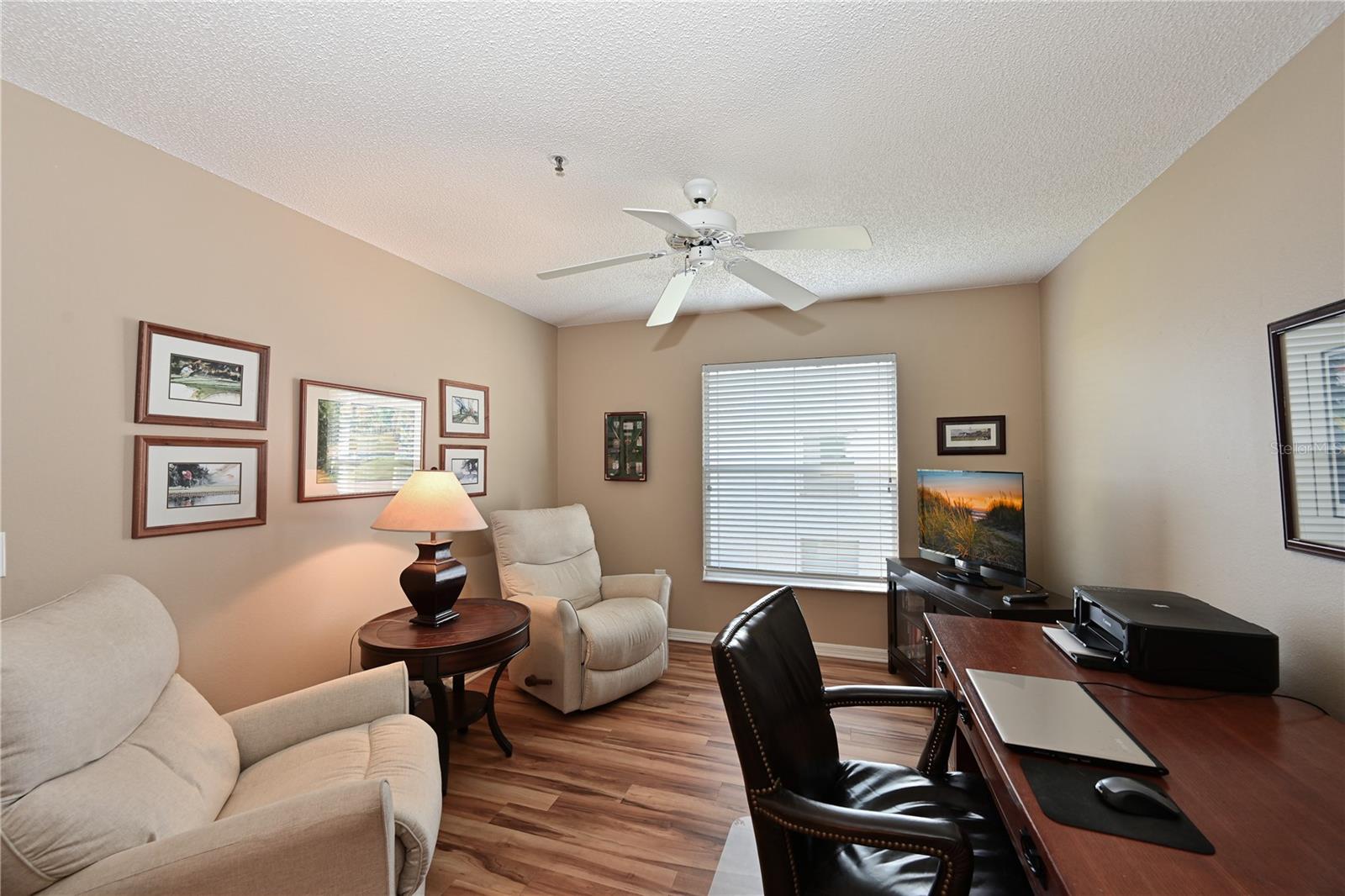 Truly one of the most fabulous turn-key furnished, end unit condos in the Village of Tara Golf and Country Club. Beautiful, updated kitchen, open floor plan, wood floors throughout the living area, wet bar for that extra area of entertaining needs, den with pocket doors, and a few of the features of this two bedroom, two bath home. Kitchen has stone counters and been opened up structurally between the dining room and kitchen to give a grand open feeling. Two full baths and convenient laundry closet. Two screened in lanais, the back Lanai looks out on the 10th and 11th hole of the championship golf course with southern exposure for great sunsets and inspiring sun rises. Class A membership is deeded to the property for the best golf community you can find. 18 hole golf course was renovated in 2023 with new greens, tee boxes and fairways. Pickleball Center presently being built with 5 new courts, to be completed Spring 2025. The community enjoys community pools, tennis, full fitness center, bocce, clubhouse dining and actives in the greatest location off State Rd 70. Close to highways, airports, super shopping and dining, and the best beaches in the Sarasota Bradenton area. Home comes with a 1 Year Home Warranty!!! Welcome to Taradise!