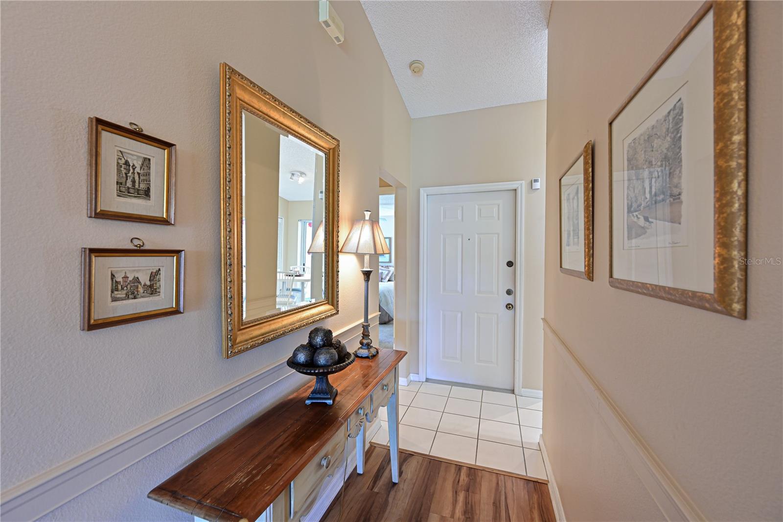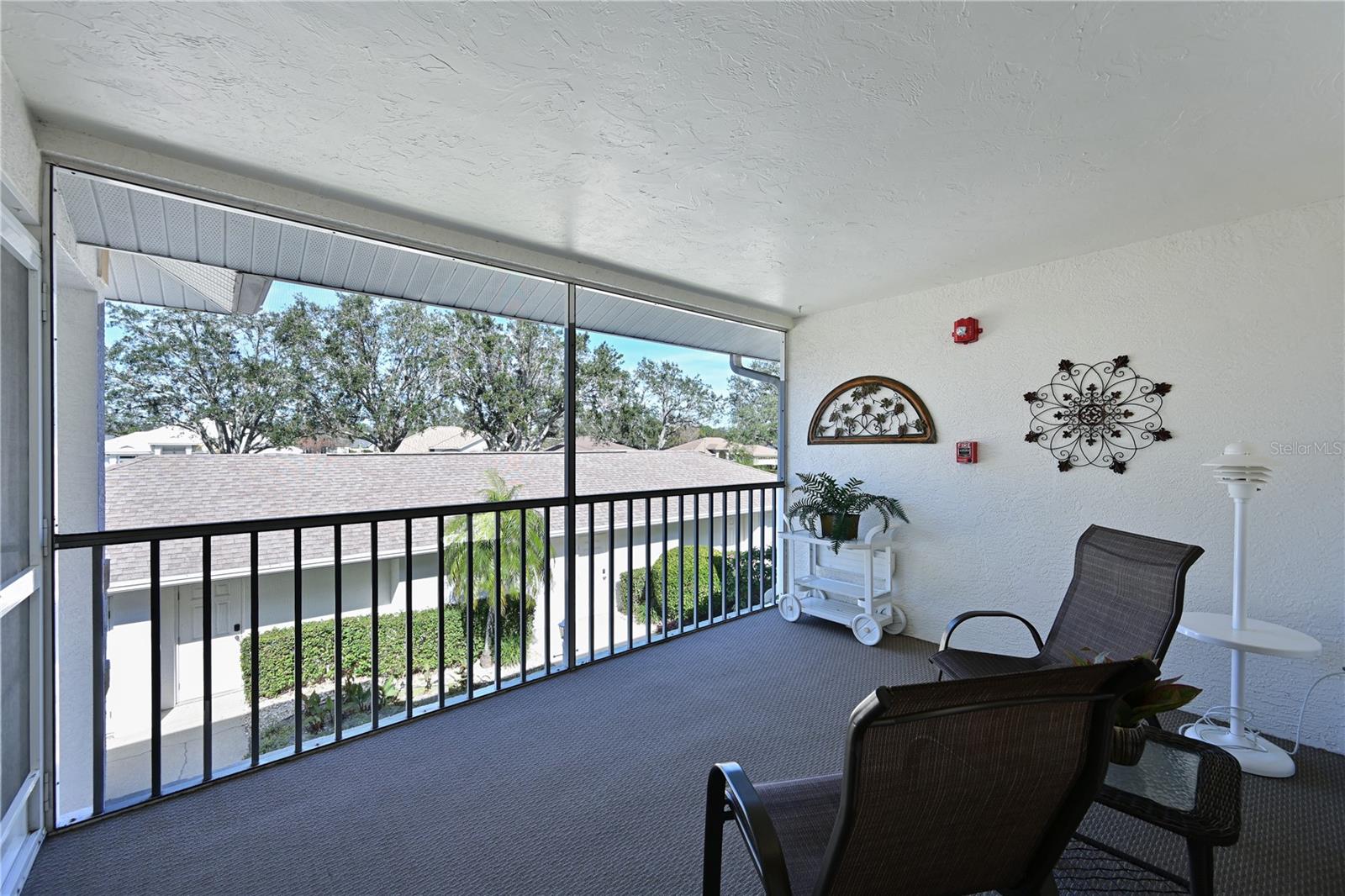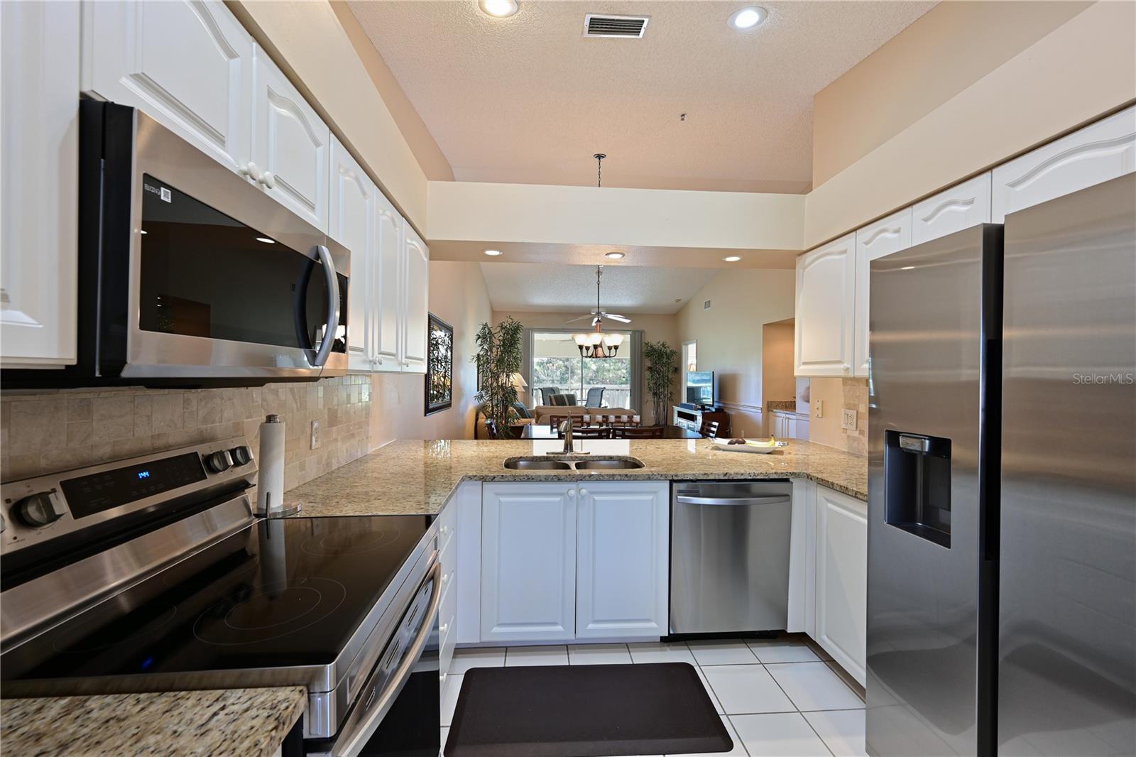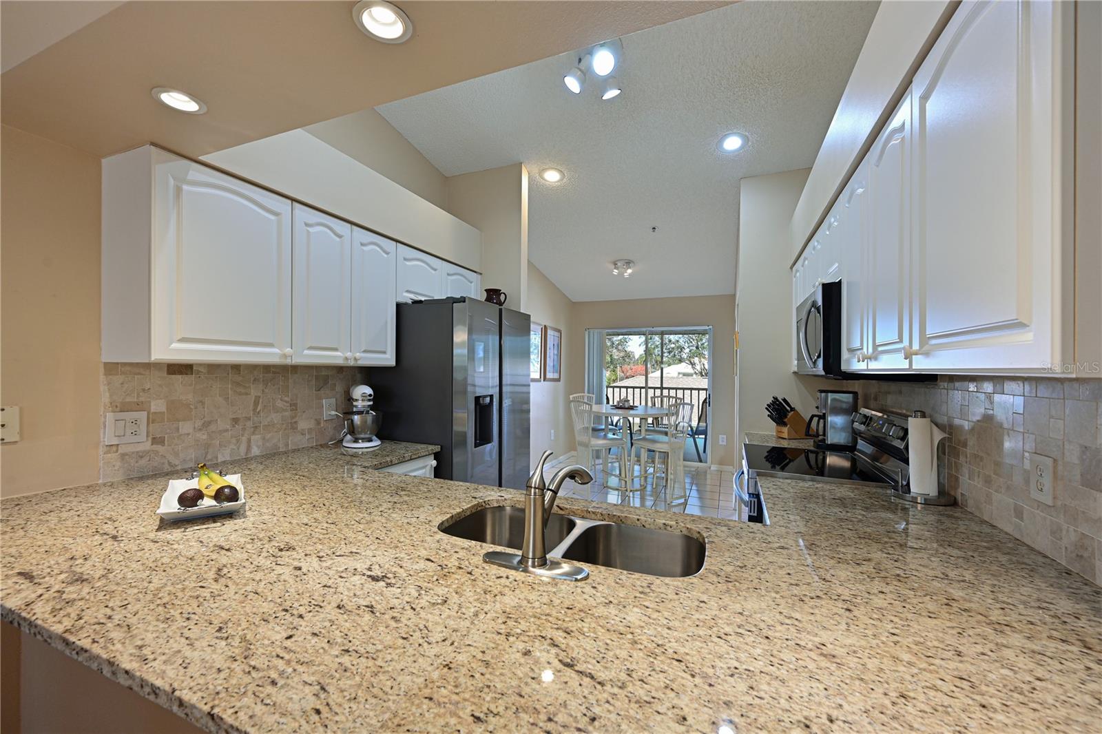 Truly one of the most fabulous turn-key furnished, end unit condos in the Village of Tara Golf and Country Club. Beautiful, updated kitchen, open floor plan, wood floors throughout the living area, wet bar for that extra area of entertaining needs, den with pocket doors, and a few of the features of this two bedroom, two bath home. Kitchen has stone counters and been opened up structurally between the dining room and kitchen to give a grand open feeling. Two full baths and convenient laundry closet. Two screened in lanais, the back Lanai looks out on the 10th and 11th hole of the championship golf course with southern exposure for great sunsets and inspiring sun rises. Class A membership is deeded to the property for the best golf community you can find. 18 hole golf course was renovated in 2023 with new greens, tee boxes and fairways. Pickleball Center presently being built with 5 new courts, to be completed Spring 2025. The community enjoys community pools, tennis, full fitness center, bocce, clubhouse dining and actives in the greatest location off State Rd 70. Close to highways, airports, super shopping and dining, and the best beaches in the Sarasota Bradenton area. Home comes with a 1 Year Home Warranty!!! Welcome to Taradise!