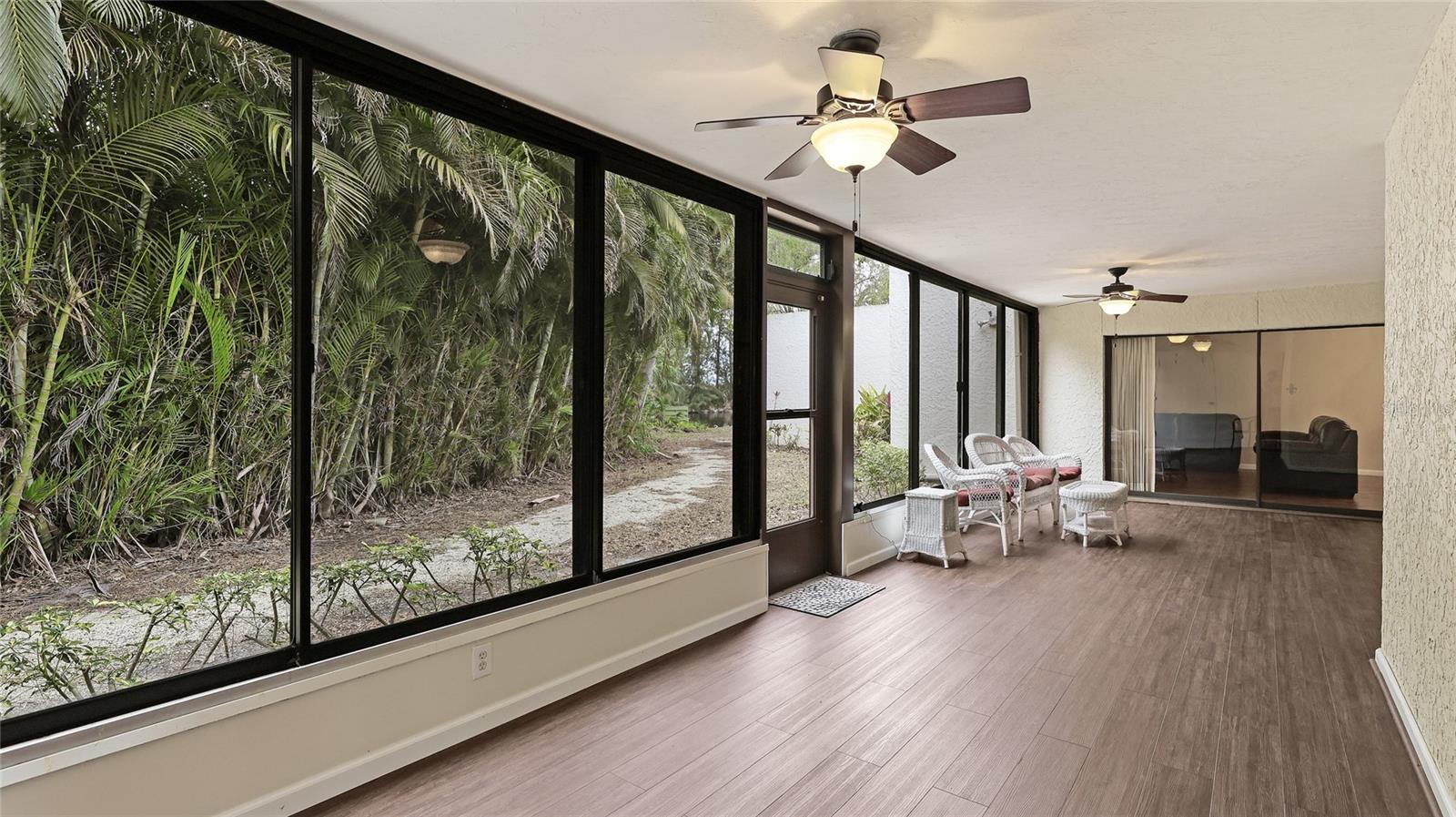 Spacious First-Floor Corner Condo with Serene Pond Views. This exceptionally spacious first-floor corner unit offers 1,818 square feet of comfortable living in a peaceful, park-like setting. With three bedrooms and two and a half bathrooms, this condo provides ample space for relaxation and entertaining. The private front courtyard welcomes you into the home, while a second courtyard in the back offers additional outdoor living space with tranquil pond views. The primary bedroom features a walk-in closet, an en-suite bathroom, and sliding doors leading to the enclosed lanai.Recent updates include a new HVAC system installed in November 2022, a new front door, new windows in the living room and hallway, and a new sliding door. The convenience of an in-unit washer and dryer adds to the ease of living. One assigned carport space is included.This beautifully maintained community spans 88 acres and is recognized as an Audubon bird and wildlife sanctuary. Lush tropical landscaping enhances the natural beauty of the surroundings, creating a peaceful retreat. Experience the perfect blend of space, privacy, and scenic views in this remarkable condo.
