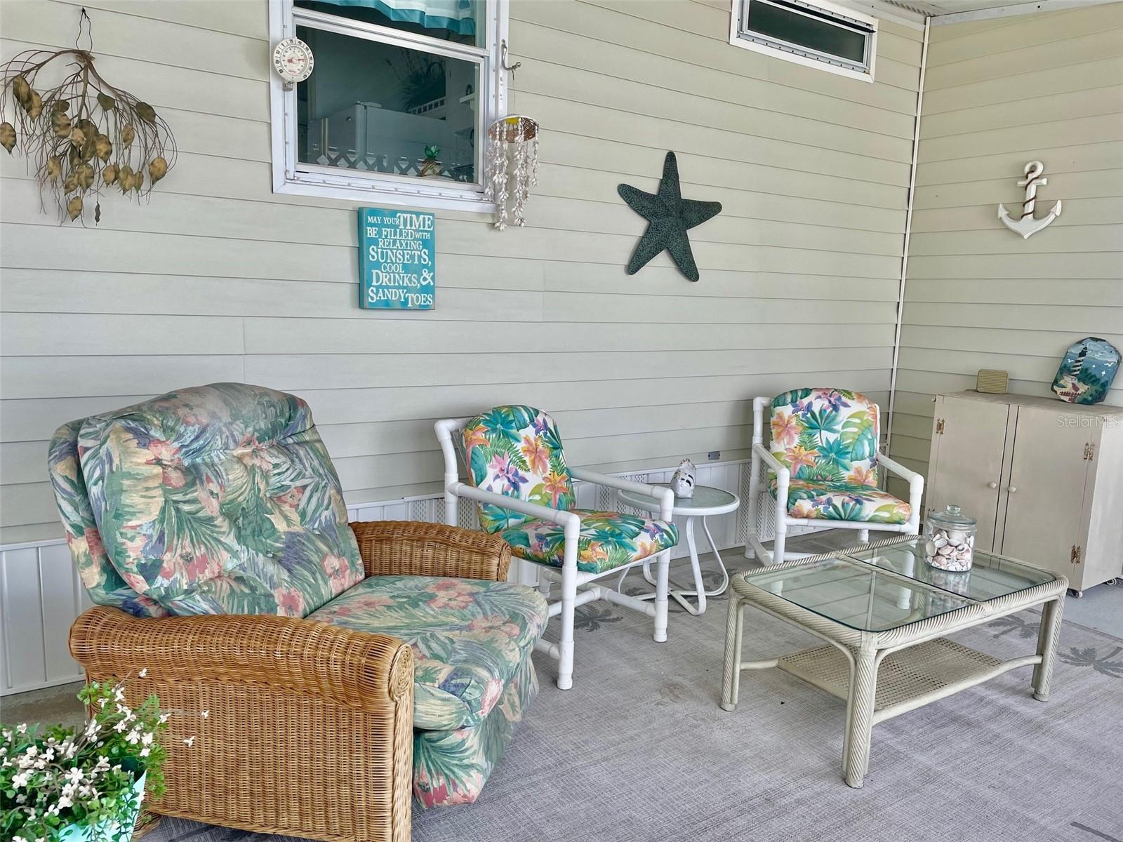 Home is a Turn-Key furnished 2 Bedroom & 2 full Baths, located in Beautiful Gold Tree Co-op. There is room to roam in this beautiful home with an 11X10 enclosed lanai/bonus room plus a 12X12 outdoor screen room providing you great areas to sit and relax or entertain your guests. It is a well-maintained home with A/C/Heat replaced in May 2024, & brand new roof April 2025 along with the microwave. HOA fees include cable, internet, yard maintenance, (including sprinkler system using reclaimed water from Gold Tree's pond), sewer trash & water. Gold Tree has lots of activities, a monthly newsletter with Calendar of Events, clubhouse, heated pool, on site management, library, shuffleboard, tennis & pickleball courts, bocce ball and neighborly neighbors already in place. It is a gated community located near shopping, eateries, banking, hospitals, UTC Mall, Benderson Park, Riverwalk and best of all the wonderful beaches always listed among top beaches in the U.S. Bring your boat, RV or trailer they have a storage yard for your convenience. Association says 55+, rentals allowed and your pets are welcome.