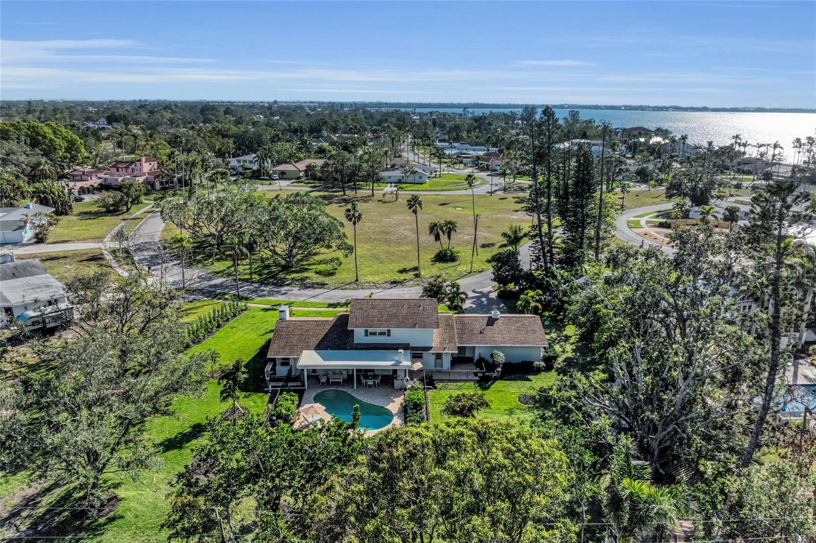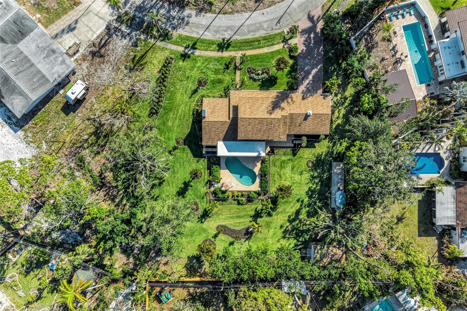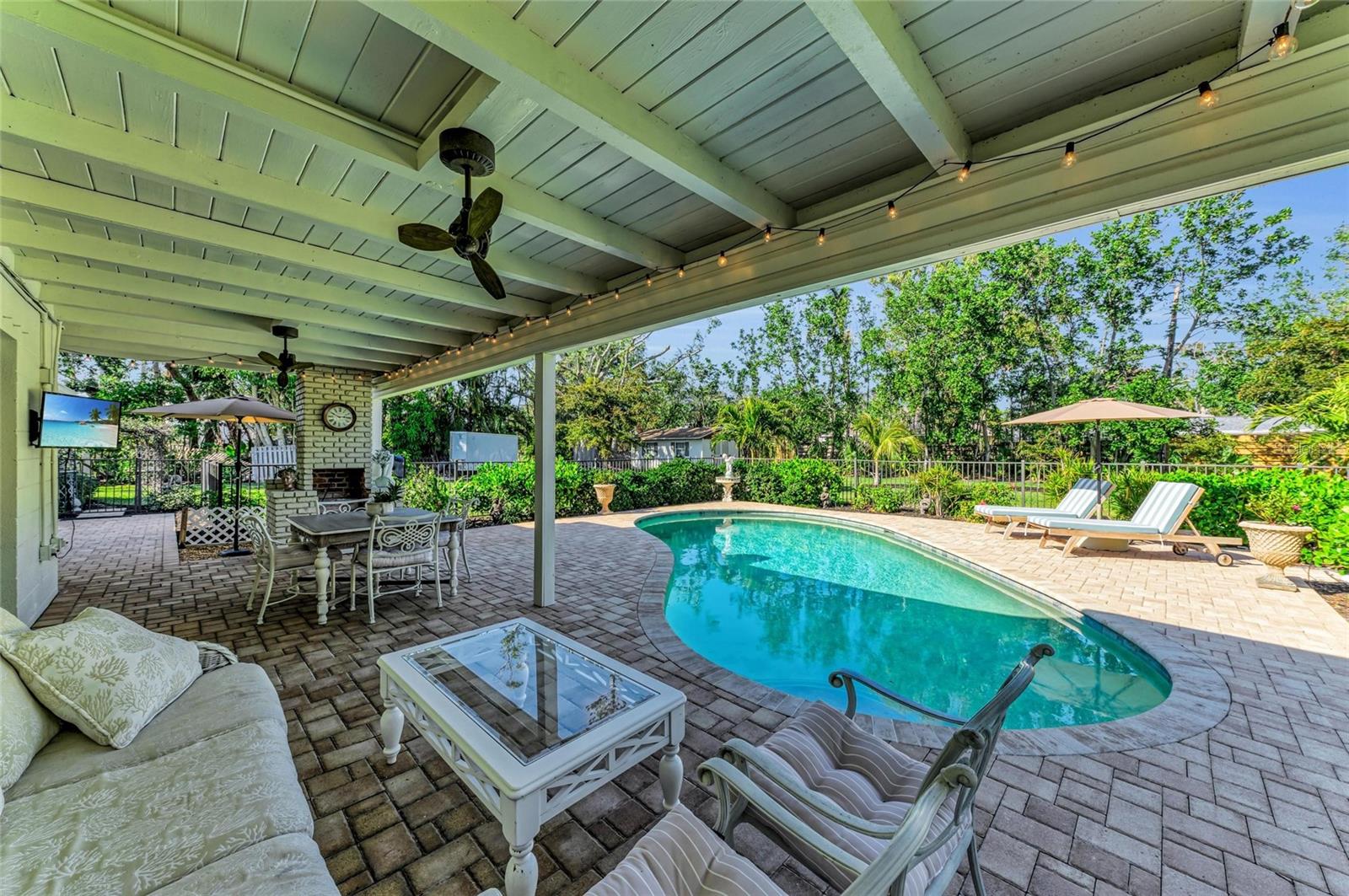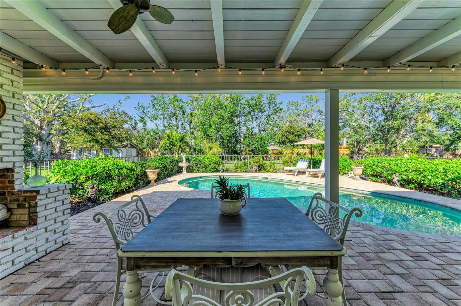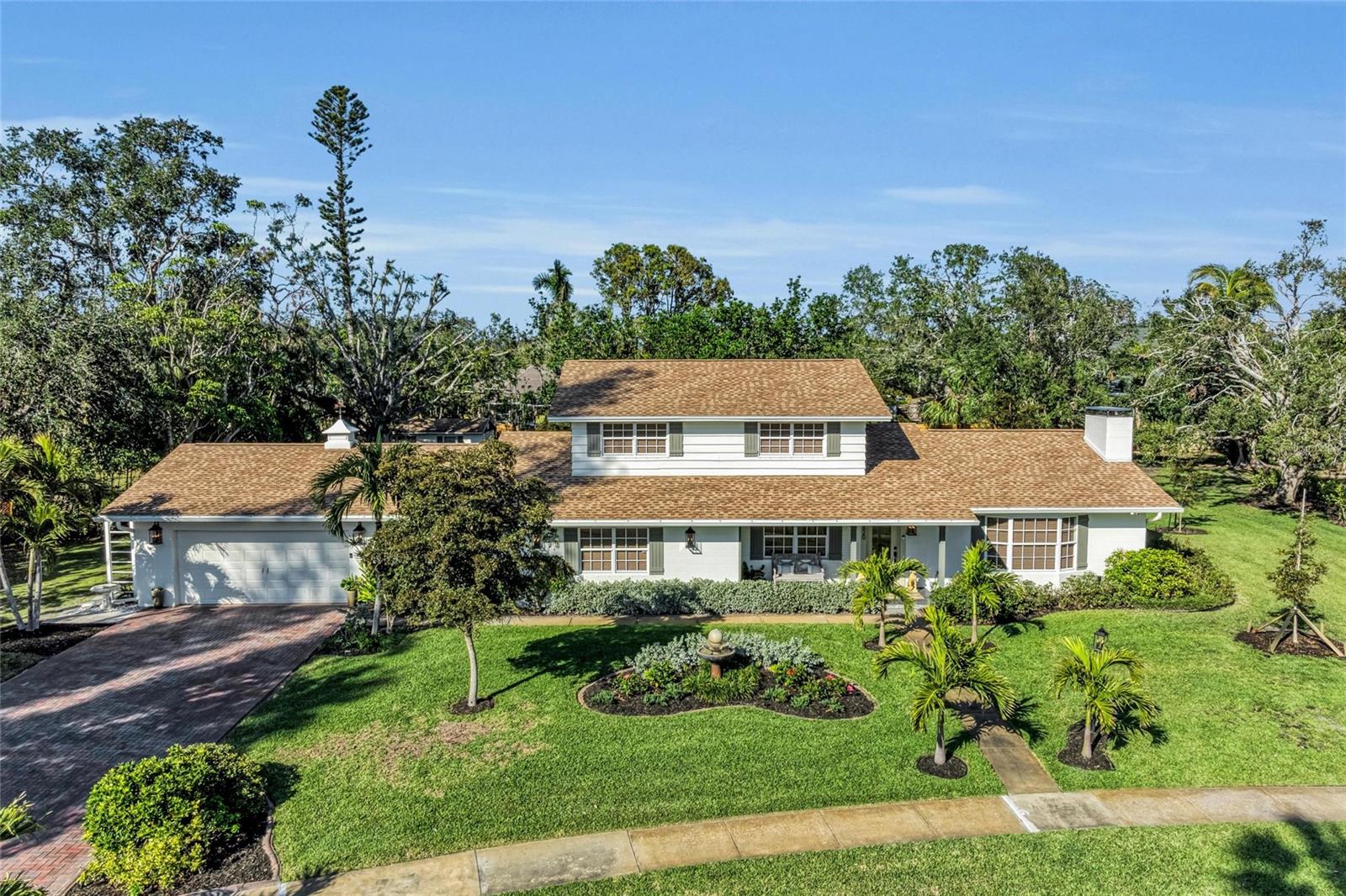 Tucked away in historic Palma Sola Park, this classic home is a far cry from cookie cutter. Nestled between an iconic 1920s craftsman residence and a mid-century modern home that is currently undergoing a ground-up restoration, this home has been lovingly restored and meticulously maintained. Beautifully landscaped, the large lot offers something rarely seen in a property this close to our island beaches. Away from the hustle and bustle, but a mere 5 MILES TO THE BEACH it is truly a serene paradise and the best of both worlds. No HOA or CDD! Dual Master suites and two living areas offer versatility for the growing family or the investor who is looking for that perfect rental. There is even a potential 5th bedroom Every detail has been thoughtfully curated by the interior decorator for both relaxed beauty and practicality. Built to last, this home has endured many years of hurricanes without a single drop of water intrusion-NO-FLOOD INSURANCE REQUIRED. With a second-story cedar exterior and a rock-solid roof that has never lost a single shingle, it stands as a testament to exceptional craftsmanship. Inside, you'll find hand-scraped acacia wood floors throughout, custom window treatments, and a designer kitchen featuring an 8-foot island with abundant storage, a farmhouse ceramic sink, and Made-in-America KitchenAid appliances. The open floor plan seamlessly flows into the living spaces, where a wood-burning or propane fireplace adds warmth and charm. Every bathroom has been completely remodeled with rain showerheads, granite countertops, and bidet toilet seats, while the downstairs master suite includes a luxurious clawfoot soaking tub and walk-in shower. Step outside to an exquisite backyard retreat, Room for PICKLE BALL COURT. A stunning pool surrounded by pavers and metal fencing, an outdoor wood-burning fireplace perfect for s'mores nights, a lanai with a wood-beamed ceiling, market lighting, and dual ceiling fans all add to the relaxing beauty of the back yard. The beautifully landscaped (almost an acre) lot includes Shady Lady olive trees, Christmas palms, a coconut tree, and a new privacy hedge. Additional highlights include: *Qualifies for a boat slip at the Portosueno Boat Basin * a large custom cedar-sided shed for kayaks *a golf cart * solid brick paver driveway *an extra long RV pad * 3 zone sprinkler system fed by a well * Hurricane-rated polycarbonate panels (150+ mph) for easy installation * Four hard-wired security cameras with motion spotlights *massive attic with wood flooring for ample storage * updated electrical and plumbing (2014), including a new panel box and subpanel. This home is the perfect blend of coastal convenience, designer luxury, and rock-solid durability. Don't miss your chance to make it yours!
