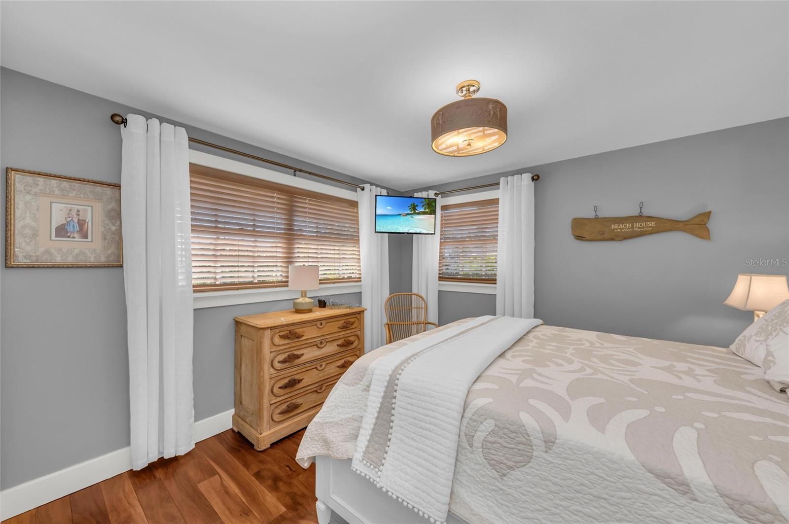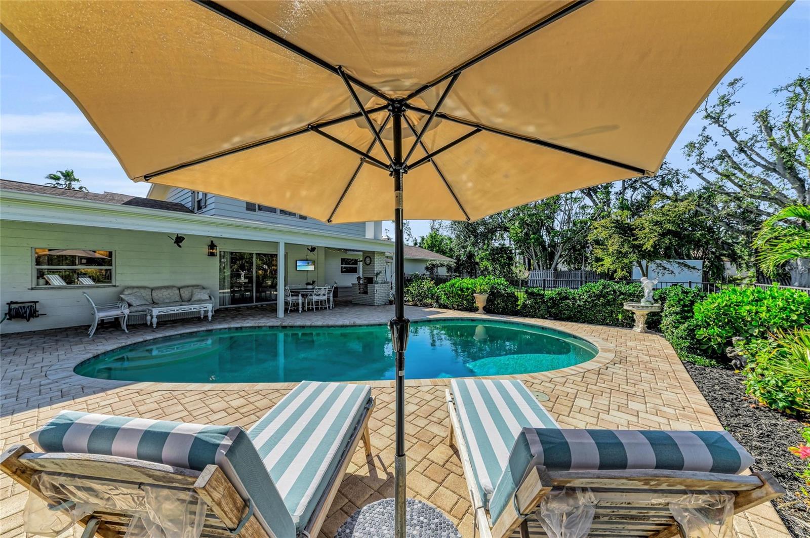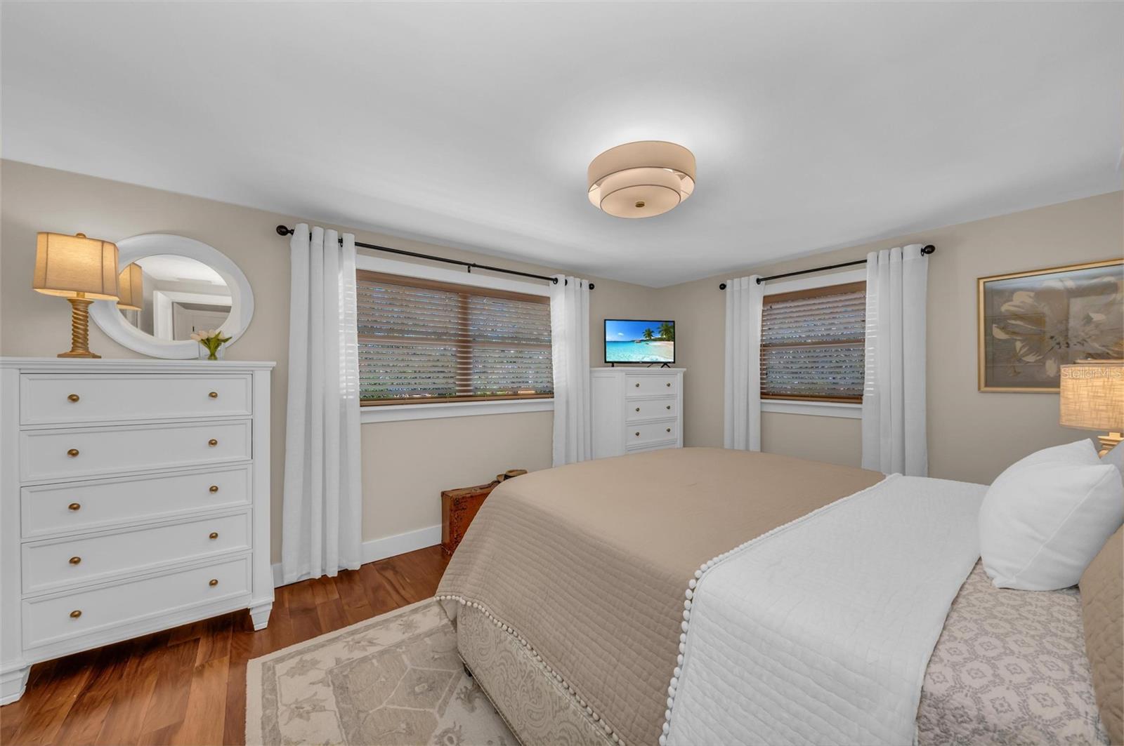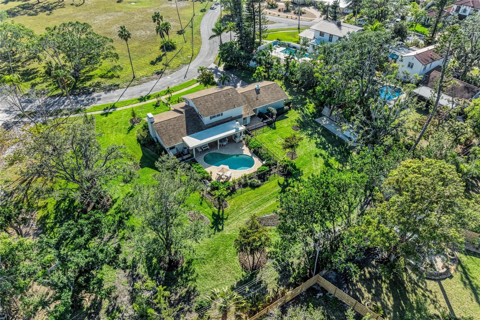 Tucked away in historic Palma Sola Park, this classic home is a far cry from cookie cutter. Nestled between an iconic 1920s craftsman residence and a mid-century modern home that is currently undergoing a ground-up restoration, this home has been lovingly restored and meticulously maintained. Beautifully landscaped, the large lot offers something rarely seen in a property this close to our island beaches. Away from the hustle and bustle, but a mere 5 MILES TO THE BEACH it is truly a serene paradise and the best of both worlds. No HOA or CDD! Dual Master suites and two living areas offer versatility for the growing family or the investor who is looking for that perfect rental. There is even a potential 5th bedroom Every detail has been thoughtfully curated by the interior decorator for both relaxed beauty and practicality. Built to last, this home has endured many years of hurricanes without a single drop of water intrusion-NO-FLOOD INSURANCE REQUIRED. With a second-story cedar exterior and a rock-solid roof that has never lost a single shingle, it stands as a testament to exceptional craftsmanship. Inside, you'll find hand-scraped acacia wood floors throughout, custom window treatments, and a designer kitchen featuring an 8-foot island with abundant storage, a farmhouse ceramic sink, and Made-in-America KitchenAid appliances. The open floor plan seamlessly flows into the living spaces, where a wood-burning or propane fireplace adds warmth and charm. Every bathroom has been completely remodeled with rain showerheads, granite countertops, and bidet toilet seats, while the downstairs master suite includes a luxurious clawfoot soaking tub and walk-in shower. Step outside to an exquisite backyard retreat, Room for PICKLE BALL COURT. A stunning pool surrounded by pavers and metal fencing, an outdoor wood-burning fireplace perfect for s'mores nights, a lanai with a wood-beamed ceiling, market lighting, and dual ceiling fans all add to the relaxing beauty of the back yard. The beautifully landscaped (almost an acre) lot includes Shady Lady olive trees, Christmas palms, a coconut tree, and a new privacy hedge. Additional highlights include: *Qualifies for a boat slip at the Portosueno Boat Basin * a large custom cedar-sided shed for kayaks *a golf cart * solid brick paver driveway *an extra long RV pad * 3 zone sprinkler system fed by a well * Hurricane-rated polycarbonate panels (150+ mph) for easy installation * Four hard-wired security cameras with motion spotlights *massive attic with wood flooring for ample storage * updated electrical and plumbing (2014), including a new panel box and subpanel. This home is the perfect blend of coastal convenience, designer luxury, and rock-solid durability. Don't miss your chance to make it yours!