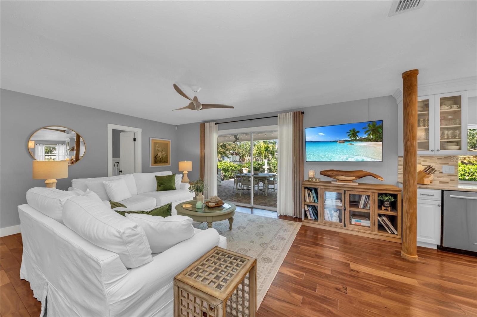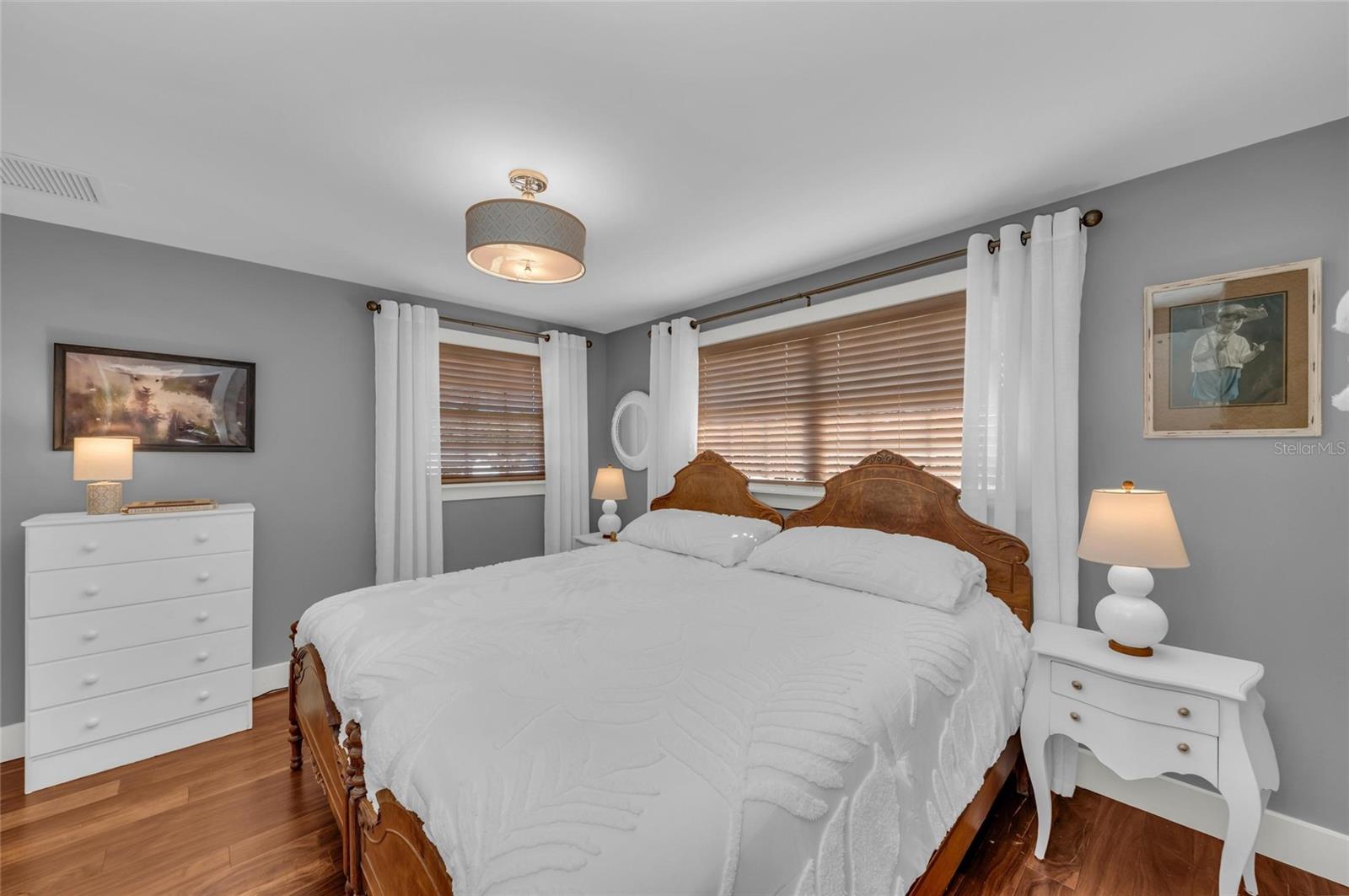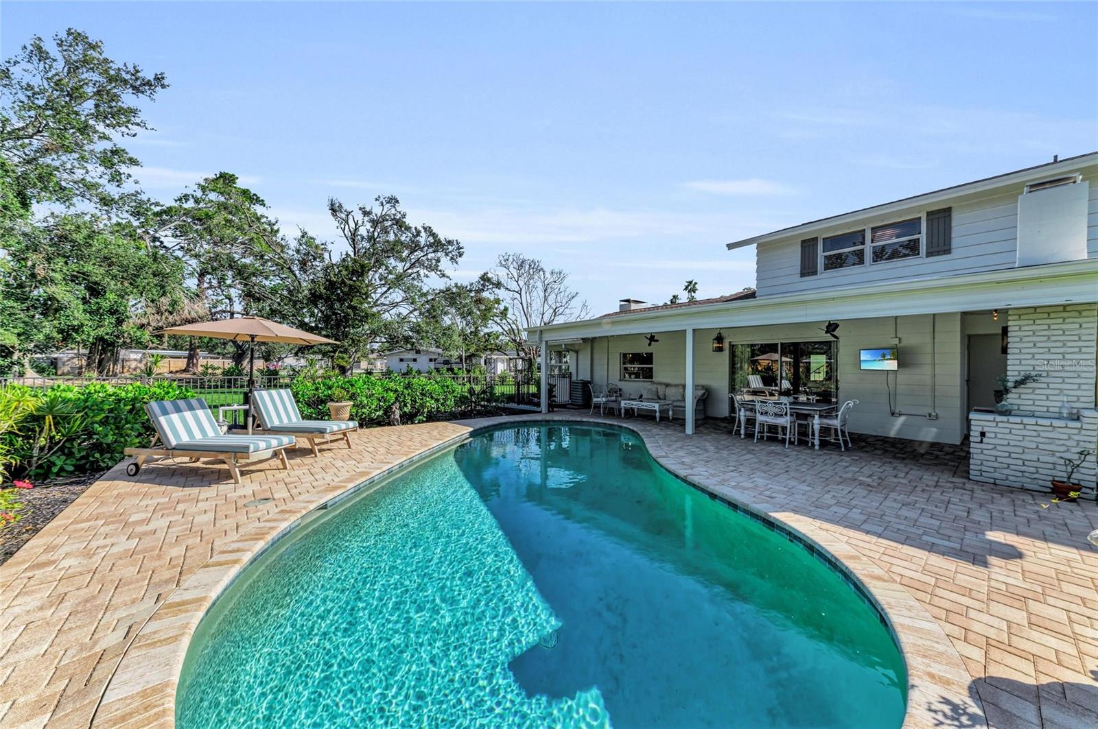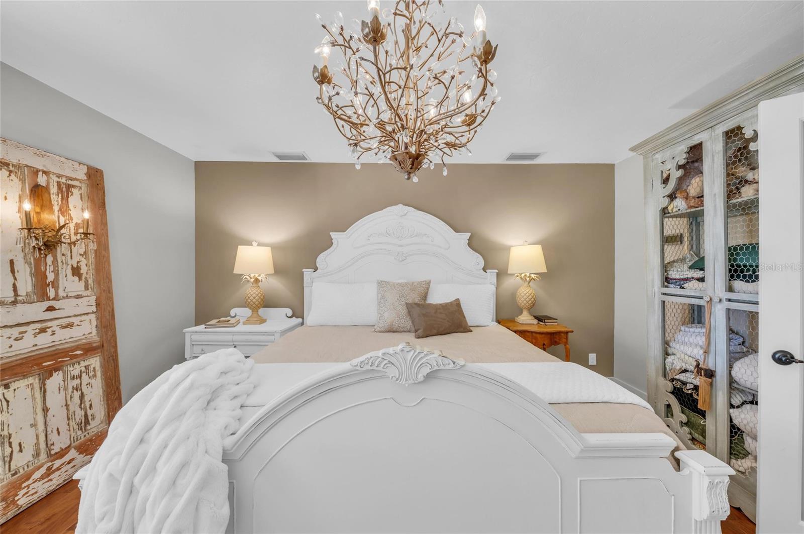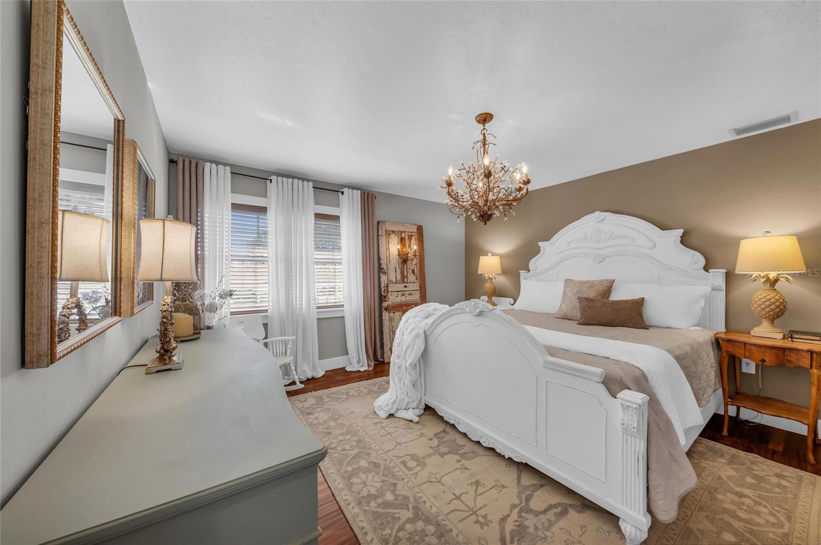 Tucked away in historic Palma Sola Park, this classic home is a far cry from cookie cutter. Nestled between an iconic 1920s craftsman residence and a mid-century modern home that is currently undergoing a ground-up restoration, this home has been lovingly restored and meticulously maintained. Beautifully landscaped, the large lot offers something rarely seen in a property this close to our island beaches. Away from the hustle and bustle, but a mere 5 MILES TO THE BEACH it is truly a serene paradise and the best of both worlds. No HOA or CDD! Dual Master suites and two living areas offer versatility for the growing family or the investor who is looking for that perfect rental. There is even a potential 5th bedroom Every detail has been thoughtfully curated by the interior decorator for both relaxed beauty and practicality. Built to last, this home has endured many years of hurricanes without a single drop of water intrusion-NO-FLOOD INSURANCE REQUIRED. With a second-story cedar exterior and a rock-solid roof that has never lost a single shingle, it stands as a testament to exceptional craftsmanship. Inside, you'll find hand-scraped acacia wood floors throughout, custom window treatments, and a designer kitchen featuring an 8-foot island with abundant storage, a farmhouse ceramic sink, and Made-in-America KitchenAid appliances. The open floor plan seamlessly flows into the living spaces, where a wood-burning or propane fireplace adds warmth and charm. Every bathroom has been completely remodeled with rain showerheads, granite countertops, and bidet toilet seats, while the downstairs master suite includes a luxurious clawfoot soaking tub and walk-in shower. Step outside to an exquisite backyard retreat, Room for PICKLE BALL COURT. A stunning pool surrounded by pavers and metal fencing, an outdoor wood-burning fireplace perfect for s'mores nights, a lanai with a wood-beamed ceiling, market lighting, and dual ceiling fans all add to the relaxing beauty of the back yard. The beautifully landscaped (almost an acre) lot includes Shady Lady olive trees, Christmas palms, a coconut tree, and a new privacy hedge. Additional highlights include: *Qualifies for a boat slip at the Portosueno Boat Basin * a large custom cedar-sided shed for kayaks *a golf cart * solid brick paver driveway *an extra long RV pad * 3 zone sprinkler system fed by a well * Hurricane-rated polycarbonate panels (150+ mph) for easy installation * Four hard-wired security cameras with motion spotlights *massive attic with wood flooring for ample storage * updated electrical and plumbing (2014), including a new panel box and subpanel. This home is the perfect blend of coastal convenience, designer luxury, and rock-solid durability. Don't miss your chance to make it yours!