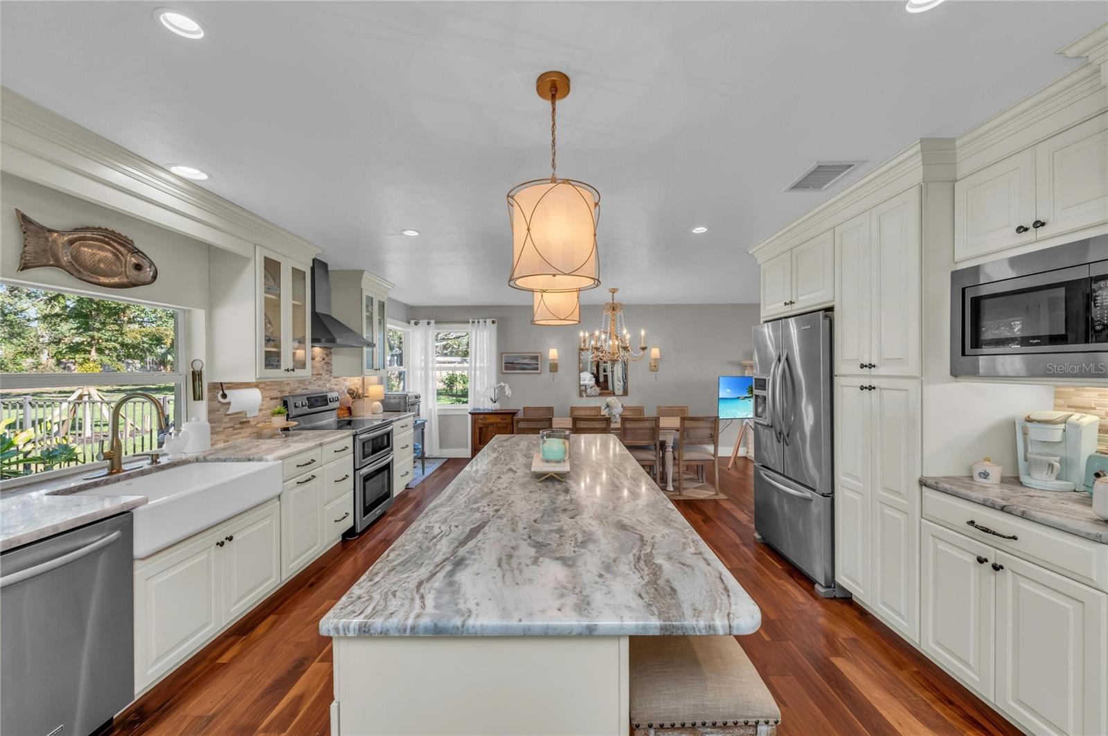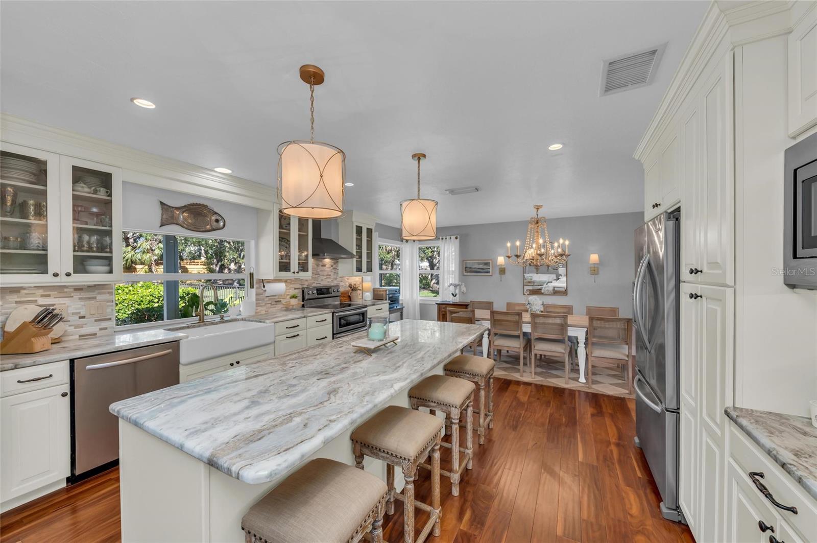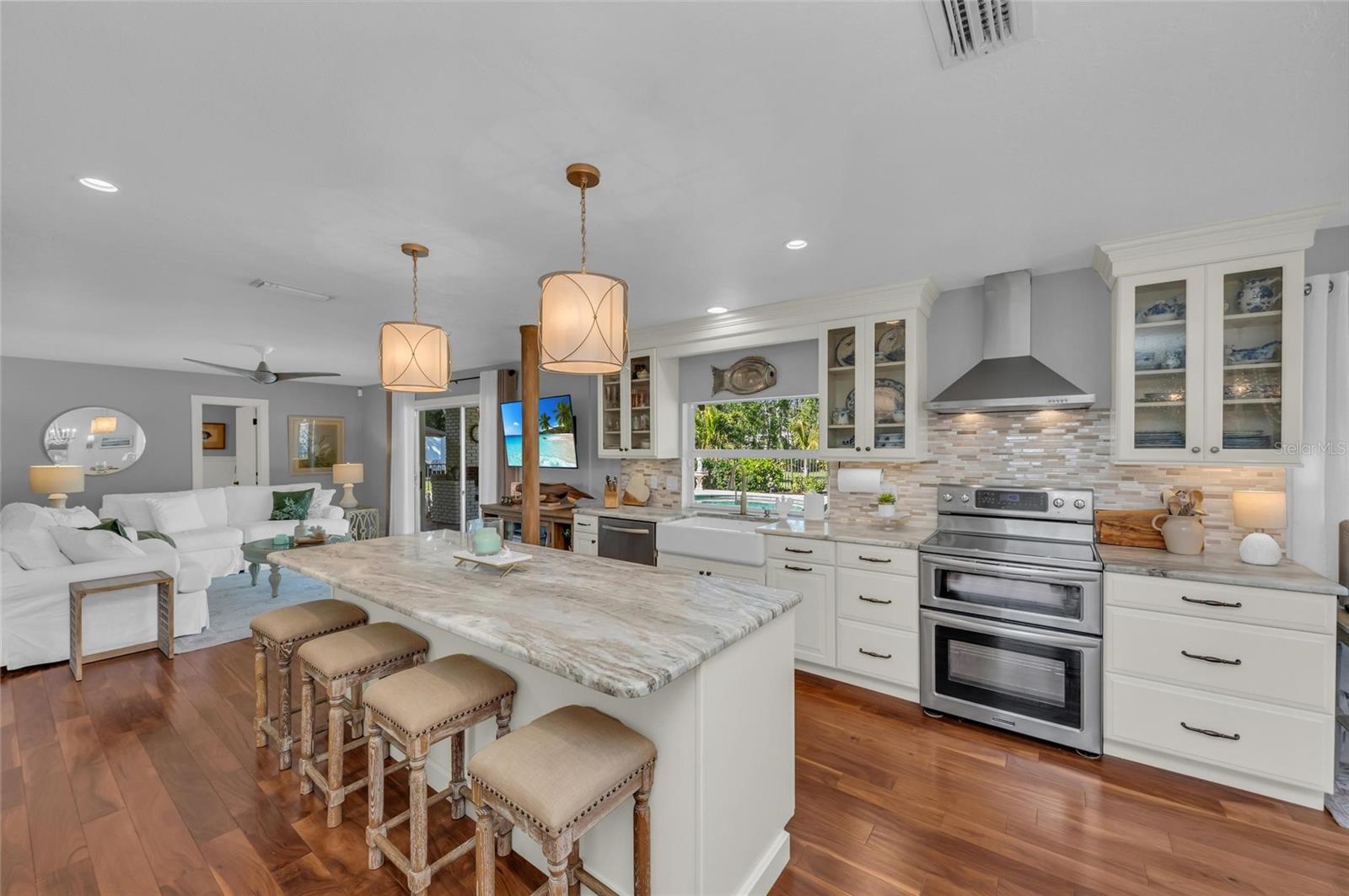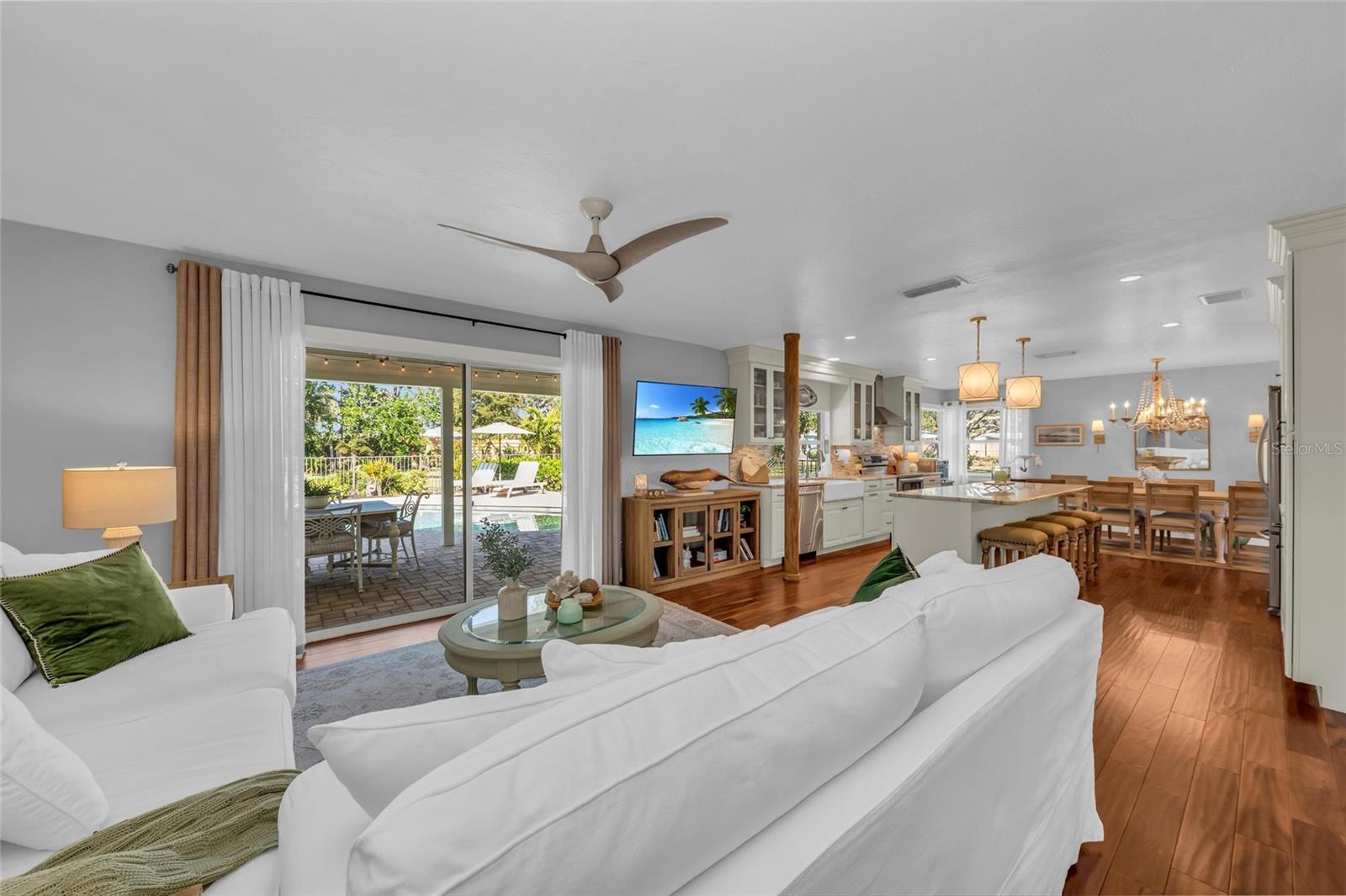 Tucked away in historic Palma Sola Park, this classic home is a far cry from cookie cutter. Nestled between an iconic 1920s craftsman residence and a mid-century modern home that is currently undergoing a ground-up restoration, this home has been lovingly restored and meticulously maintained. Beautifully landscaped, the large lot offers something rarely seen in a property this close to our island beaches. Away from the hustle and bustle, but a mere 5 MILES TO THE BEACH it is truly a serene paradise and the best of both worlds. No HOA or CDD! Dual Master suites and two living areas offer versatility for the growing family or the investor who is looking for that perfect rental. There is even a potential 5th bedroom Every detail has been thoughtfully curated by the interior decorator for both relaxed beauty and practicality. Built to last, this home has endured many years of hurricanes without a single drop of water intrusion-NO-FLOOD INSURANCE REQUIRED. With a second-story cedar exterior and a rock-solid roof that has never lost a single shingle, it stands as a testament to exceptional craftsmanship. Inside, you'll find hand-scraped acacia wood floors throughout, custom window treatments, and a designer kitchen featuring an 8-foot island with abundant storage, a farmhouse ceramic sink, and Made-in-America KitchenAid appliances. The open floor plan seamlessly flows into the living spaces, where a wood-burning or propane fireplace adds warmth and charm. Every bathroom has been completely remodeled with rain showerheads, granite countertops, and bidet toilet seats, while the downstairs master suite includes a luxurious clawfoot soaking tub and walk-in shower. Step outside to an exquisite backyard retreat, Room for PICKLE BALL COURT. A stunning pool surrounded by pavers and metal fencing, an outdoor wood-burning fireplace perfect for s'mores nights, a lanai with a wood-beamed ceiling, market lighting, and dual ceiling fans all add to the relaxing beauty of the back yard. The beautifully landscaped (almost an acre) lot includes Shady Lady olive trees, Christmas palms, a coconut tree, and a new privacy hedge. Additional highlights include: *Qualifies for a boat slip at the Portosueno Boat Basin * a large custom cedar-sided shed for kayaks *a golf cart * solid brick paver driveway *an extra long RV pad * 3 zone sprinkler system fed by a well * Hurricane-rated polycarbonate panels (150+ mph) for easy installation * Four hard-wired security cameras with motion spotlights *massive attic with wood flooring for ample storage * updated electrical and plumbing (2014), including a new panel box and subpanel. This home is the perfect blend of coastal convenience, designer luxury, and rock-solid durability. Don't miss your chance to make it yours!