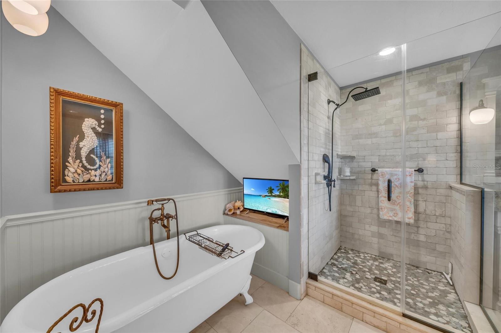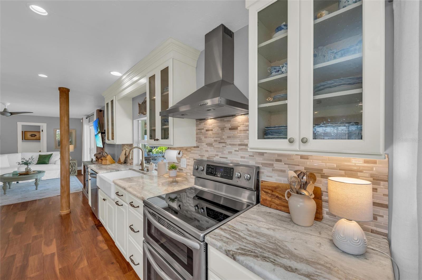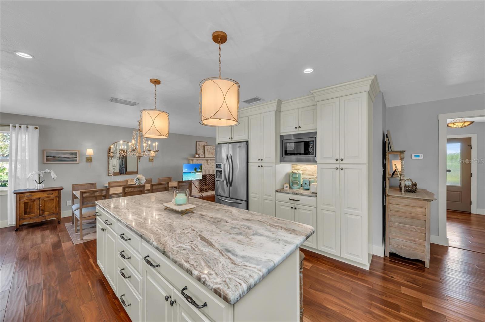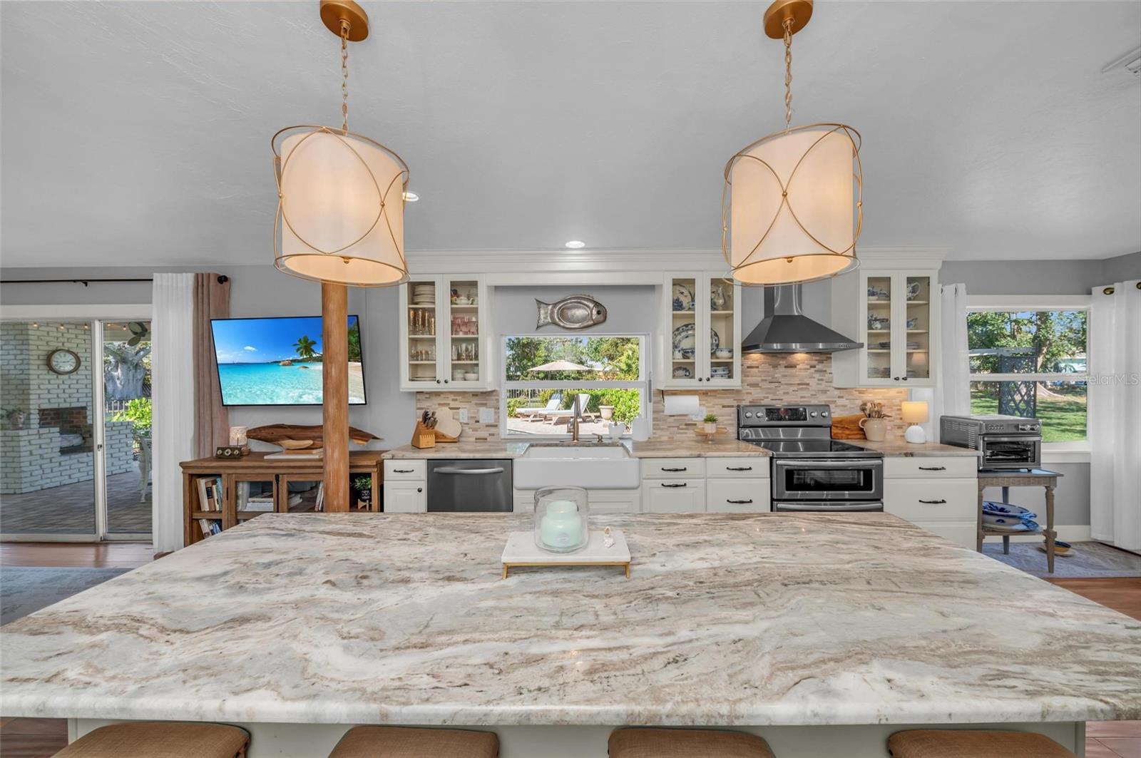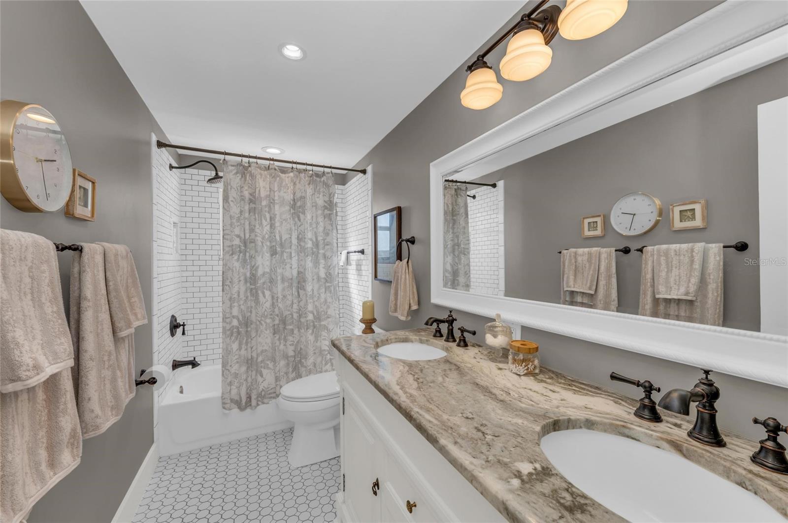 Tucked away in historic Palma Sola Park, this classic home is a far cry from cookie cutter. Nestled between an iconic 1920s craftsman residence and a mid-century modern home that is currently undergoing a ground-up restoration, this home has been lovingly restored and meticulously maintained. Beautifully landscaped, the large lot offers something rarely seen in a property this close to our island beaches. Away from the hustle and bustle, but a mere 5 MILES TO THE BEACH it is truly a serene paradise and the best of both worlds. No HOA or CDD! Dual Master suites and two living areas offer versatility for the growing family or the investor who is looking for that perfect rental. There is even a potential 5th bedroom Every detail has been thoughtfully curated by the interior decorator for both relaxed beauty and practicality. Built to last, this home has endured many years of hurricanes without a single drop of water intrusion-NO-FLOOD INSURANCE REQUIRED. With a second-story cedar exterior and a rock-solid roof that has never lost a single shingle, it stands as a testament to exceptional craftsmanship. Inside, you'll find hand-scraped acacia wood floors throughout, custom window treatments, and a designer kitchen featuring an 8-foot island with abundant storage, a farmhouse ceramic sink, and Made-in-America KitchenAid appliances. The open floor plan seamlessly flows into the living spaces, where a wood-burning or propane fireplace adds warmth and charm. Every bathroom has been completely remodeled with rain showerheads, granite countertops, and bidet toilet seats, while the downstairs master suite includes a luxurious clawfoot soaking tub and walk-in shower. Step outside to an exquisite backyard retreat, Room for PICKLE BALL COURT. A stunning pool surrounded by pavers and metal fencing, an outdoor wood-burning fireplace perfect for s'mores nights, a lanai with a wood-beamed ceiling, market lighting, and dual ceiling fans all add to the relaxing beauty of the back yard. The beautifully landscaped (almost an acre) lot includes Shady Lady olive trees, Christmas palms, a coconut tree, and a new privacy hedge. Additional highlights include: *Qualifies for a boat slip at the Portosueno Boat Basin * a large custom cedar-sided shed for kayaks *a golf cart * solid brick paver driveway *an extra long RV pad * 3 zone sprinkler system fed by a well * Hurricane-rated polycarbonate panels (150+ mph) for easy installation * Four hard-wired security cameras with motion spotlights *massive attic with wood flooring for ample storage * updated electrical and plumbing (2014), including a new panel box and subpanel. This home is the perfect blend of coastal convenience, designer luxury, and rock-solid durability. Don't miss your chance to make it yours!