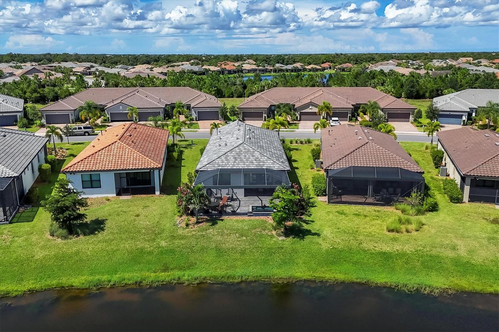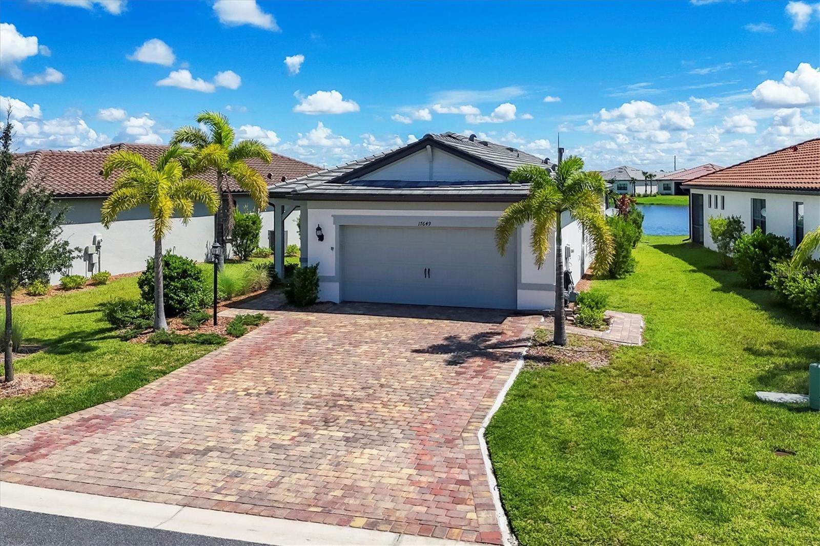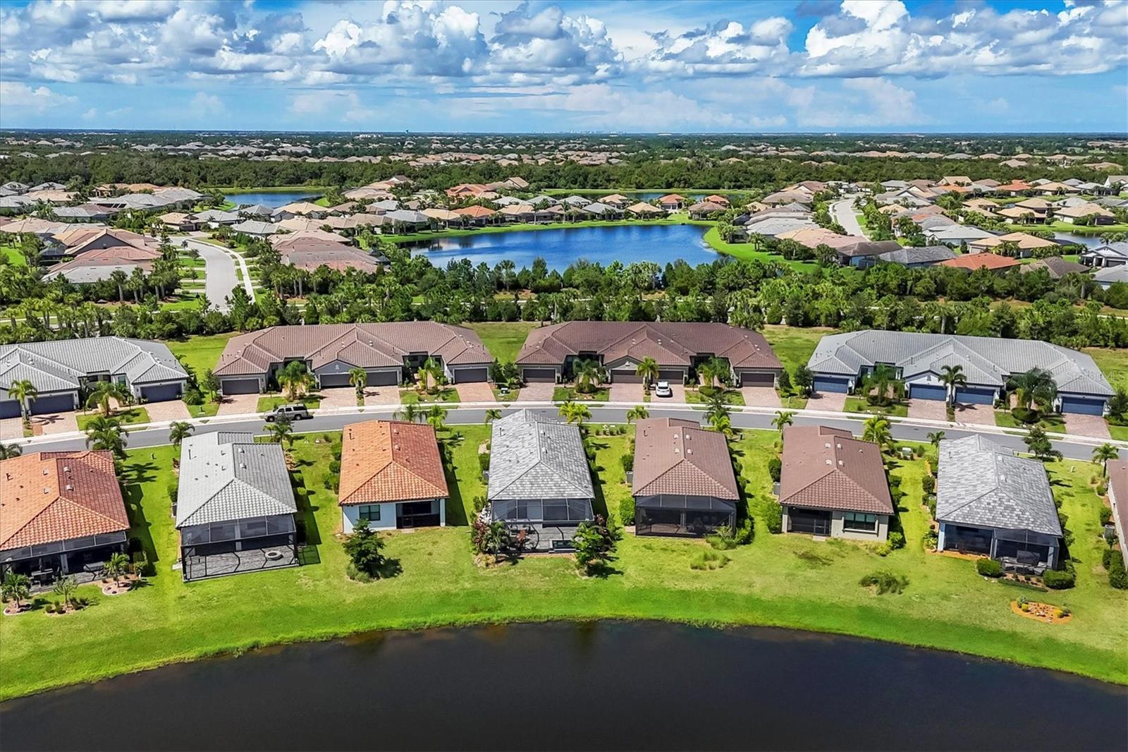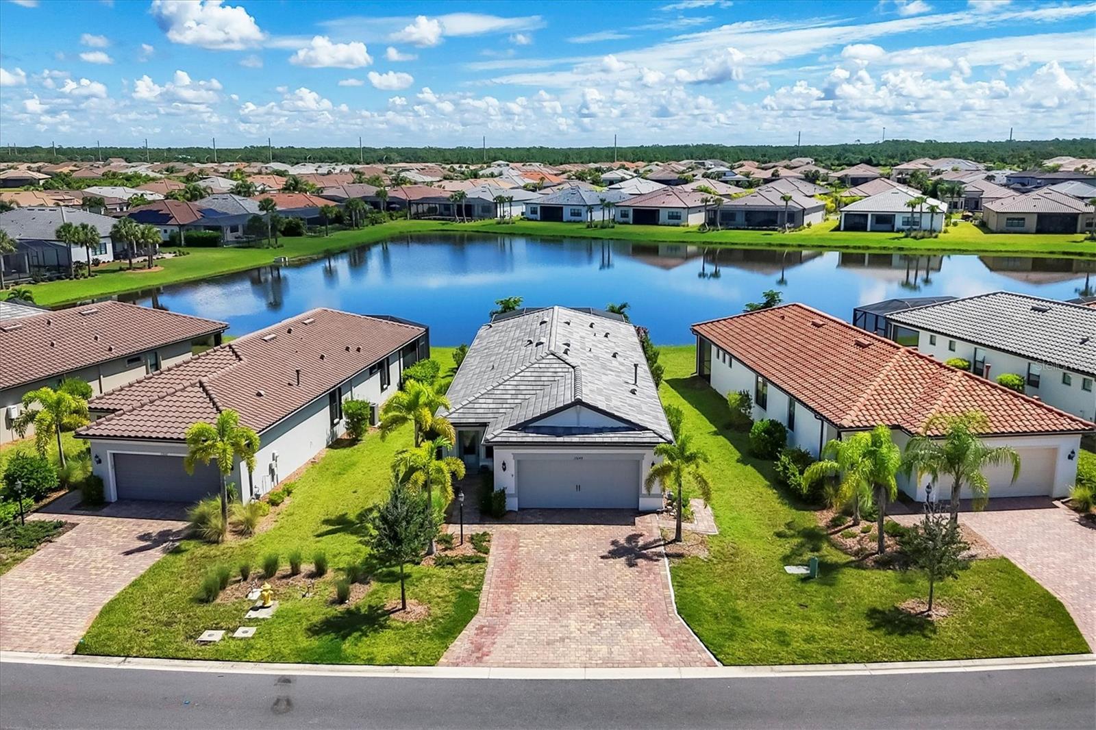 COME AND SEE THIS GORGEOUS home in the highly desired 55+ DEL WEBB LAKEWOOD RANCH! This beautiful Hallmark model, sits on a tranquil lake lot. The open concept floor plan offers three bedroom/two baths. Custom Elfa closets and pantry, custom master walk-in closet, impact hurricane windows/doors, reverse osmosis system in kitchen, pullout shelving in kitchen, SS appliances and quartz countertops. Adjacent dining and living rooms are perfect for entertaining. Triple pocket-slider allows for easy access to your outdoor oasis...step out to your paver lanai and take in your breath-taking lakeview thru the panoramic screen...while grilling on your outdoor kitchen or relaxing in your spool you will know why everyone calls Florida paradise. You will retreat to the large owners suite that overlooks the lake and boasts a spacious bathroom w/dual sinks, walk-in shower and separate water closet. One addtl bedroom allows space and home office with custom built-ins and bookcase. Shiplap in iving room and bedroom, crown molding thru-out home, ceiling fans thru-out home, electric fireplace in living room adds to ambiance! Garage has upgraded Elfa workshop and 4 ft extension, plus suspended shelving for storage, in addition to the attic space for storage, recently updated landscaping. Del Webb offers an active lifestyle beyond compare with resort style pool, state of the art fitness center, tennis/pickleball courts, bocce, art center, billiard room and restaurant. Located close to shopping, restaurants, golf, medical facilities and short drive to gulf beaches. Owner will entertain a lease back if needed.