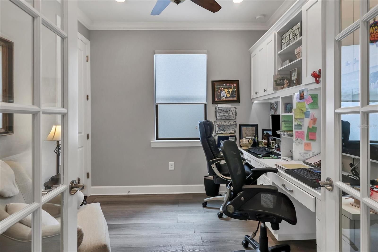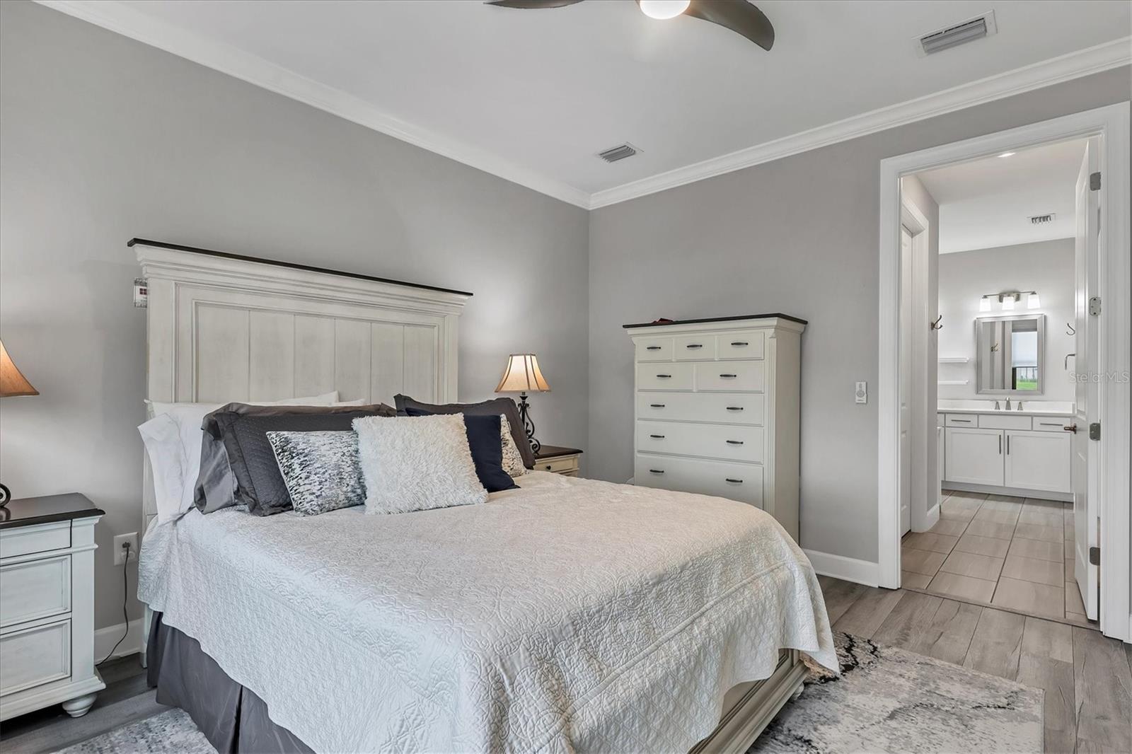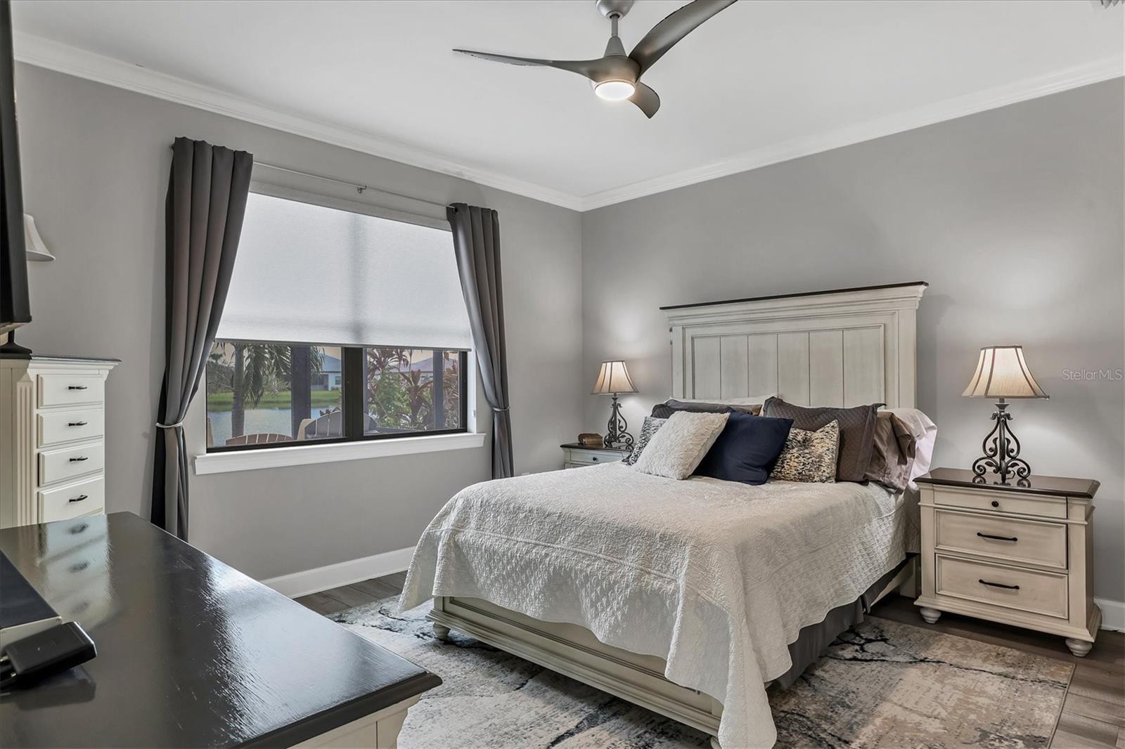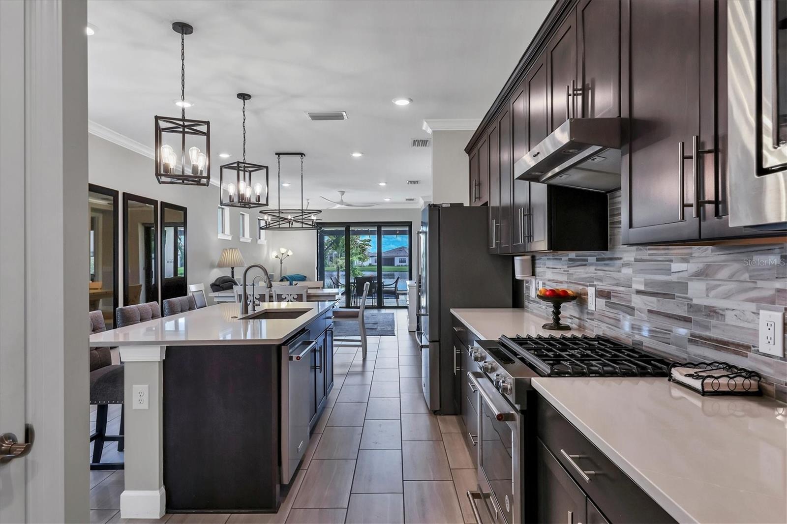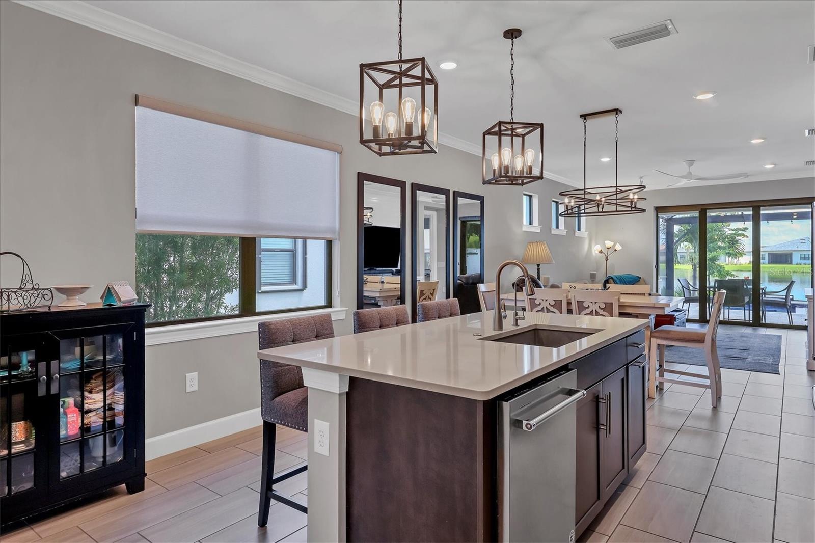 COME AND SEE THIS GORGEOUS home in the highly desired 55+ DEL WEBB LAKEWOOD RANCH! This beautiful Hallmark model, sits on a tranquil lake lot. The open concept floor plan offers three bedroom/two baths. Custom Elfa closets and pantry, custom master walk-in closet, impact hurricane windows/doors, reverse osmosis system in kitchen, pullout shelving in kitchen, SS appliances and quartz countertops. Adjacent dining and living rooms are perfect for entertaining. Triple pocket-slider allows for easy access to your outdoor oasis...step out to your paver lanai and take in your breath-taking lakeview thru the panoramic screen...while grilling on your outdoor kitchen or relaxing in your spool you will know why everyone calls Florida paradise. You will retreat to the large owners suite that overlooks the lake and boasts a spacious bathroom w/dual sinks, walk-in shower and separate water closet. One addtl bedroom allows space and home office with custom built-ins and bookcase. Shiplap in iving room and bedroom, crown molding thru-out home, ceiling fans thru-out home, electric fireplace in living room adds to ambiance! Garage has upgraded Elfa workshop and 4 ft extension, plus suspended shelving for storage, in addition to the attic space for storage, recently updated landscaping. Del Webb offers an active lifestyle beyond compare with resort style pool, state of the art fitness center, tennis/pickleball courts, bocce, art center, billiard room and restaurant. Located close to shopping, restaurants, golf, medical facilities and short drive to gulf beaches. Owner will entertain a lease back if needed.