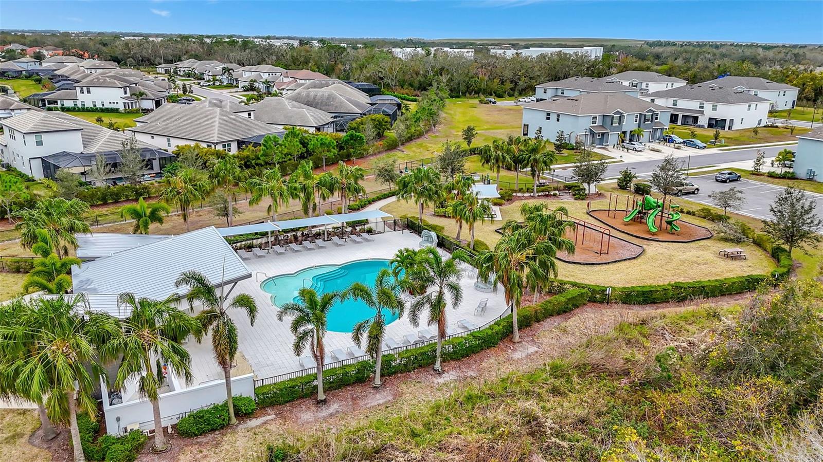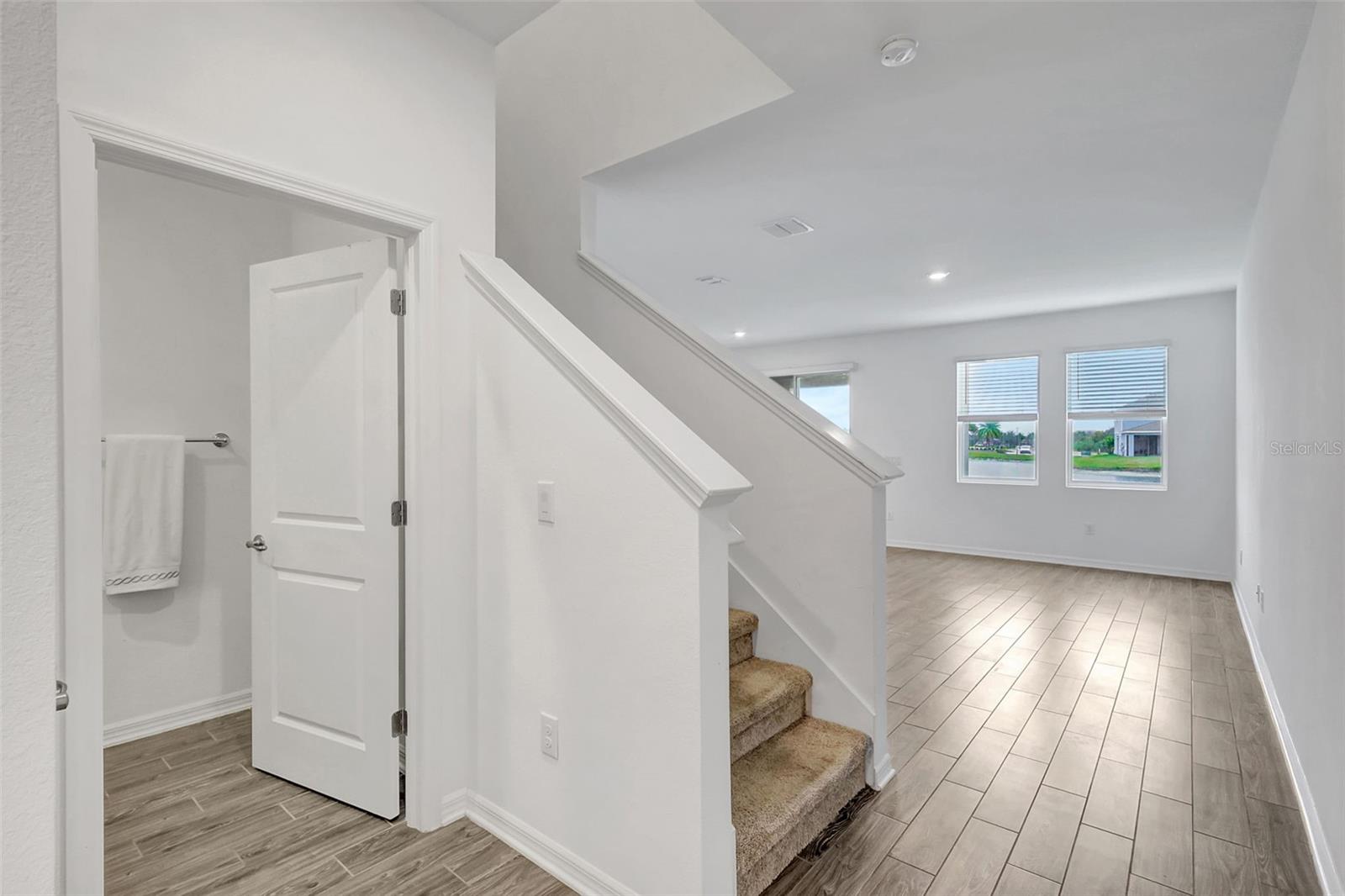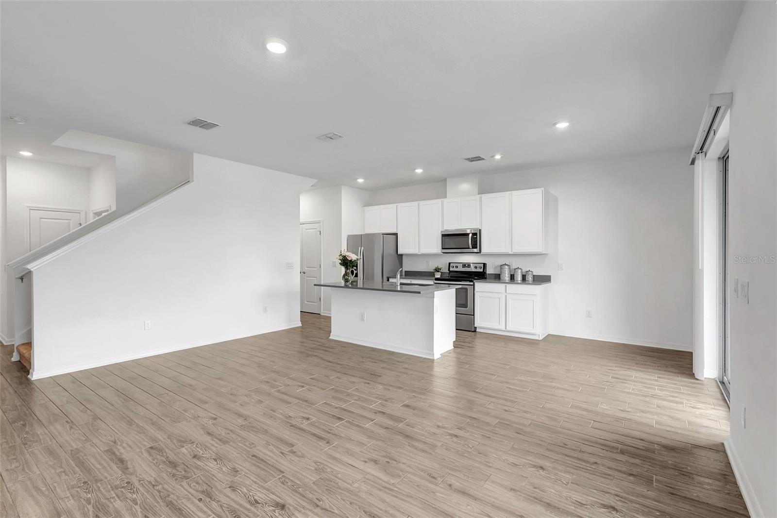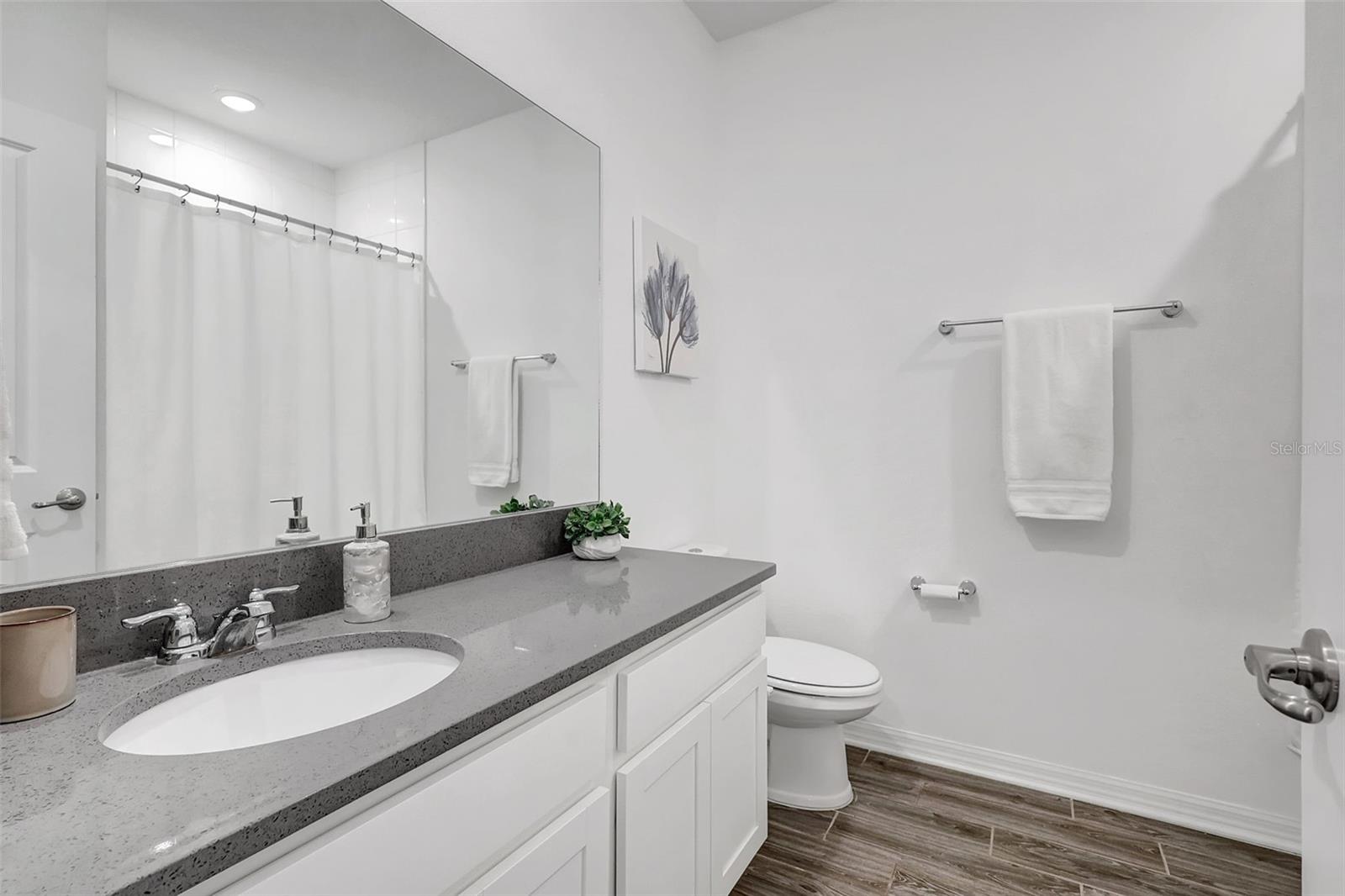 One or more photo(s) has been virtually staged. Placed in the center of everything. This fantastic townhouse is in the sought after gated community of Woodleaf Hammock. This incredible floor plan with three bedrooms, two and a half bathrooms with wood-like plank tile throughout the downstairs and the hallways of the upstairs of the unit. This spacious open floor plan offers flexibility and functionality, with a large island granite counter and amazing kitchen, with SS appliances a large pantry, white cabinets and additional storage under the stairs. The kitchen and flex space have great views of the pond behind. Up the stairs is a grand master suite is on the second floor with tray ceilings, two walk in closets, ensuite bathroom with double sinks and wonderfully sized shower. The second and third bedrooms share a bathroom. Each of the bedrooms are carpeted. This HOA includes lawn maintenance, a resort style pool, pickleball courts, two dog parks, playground and community pavilion with outdoor kitchen. Centrally located with St. Pete to the north, Sarasota to the southwest, Anna Maria Island the direct Gulf beach and Lakewood Ranches downtown areas close towards the south. A Costco five minutes away at the entrance to the highway.
