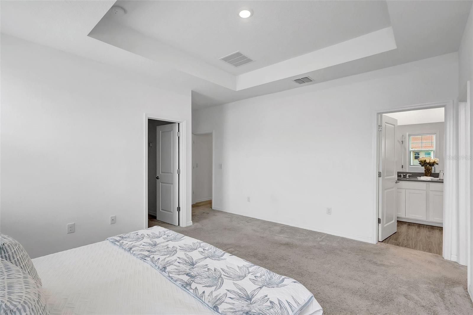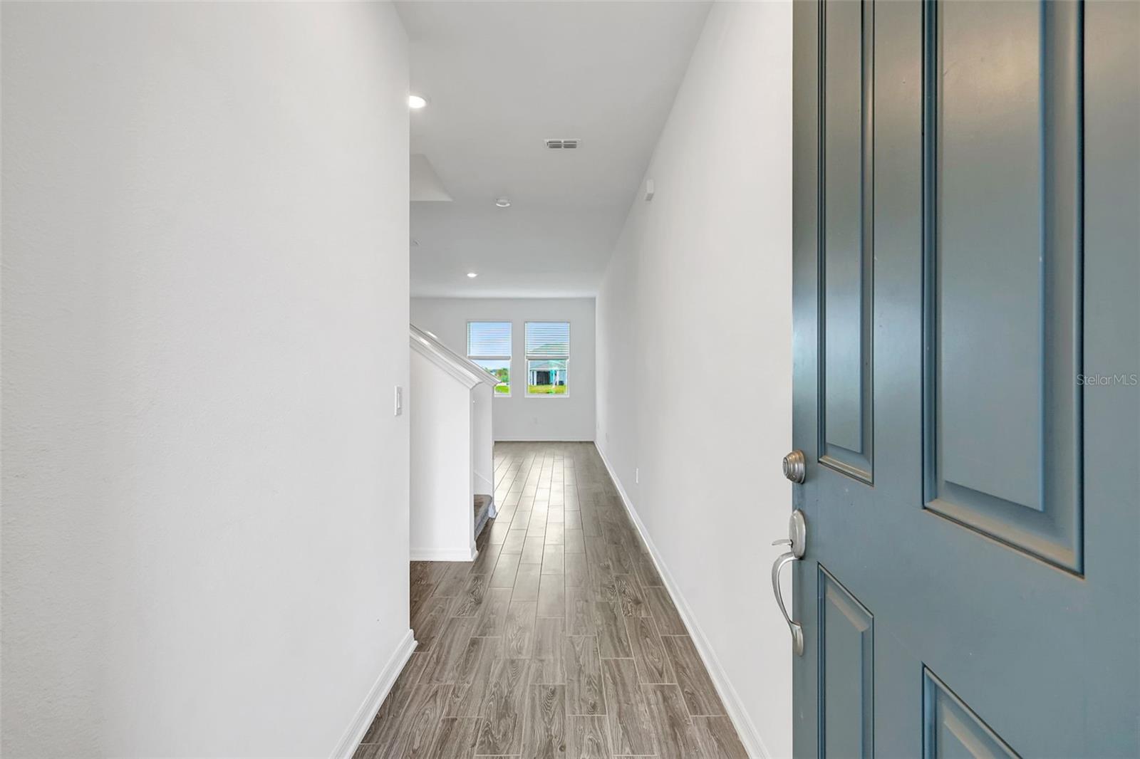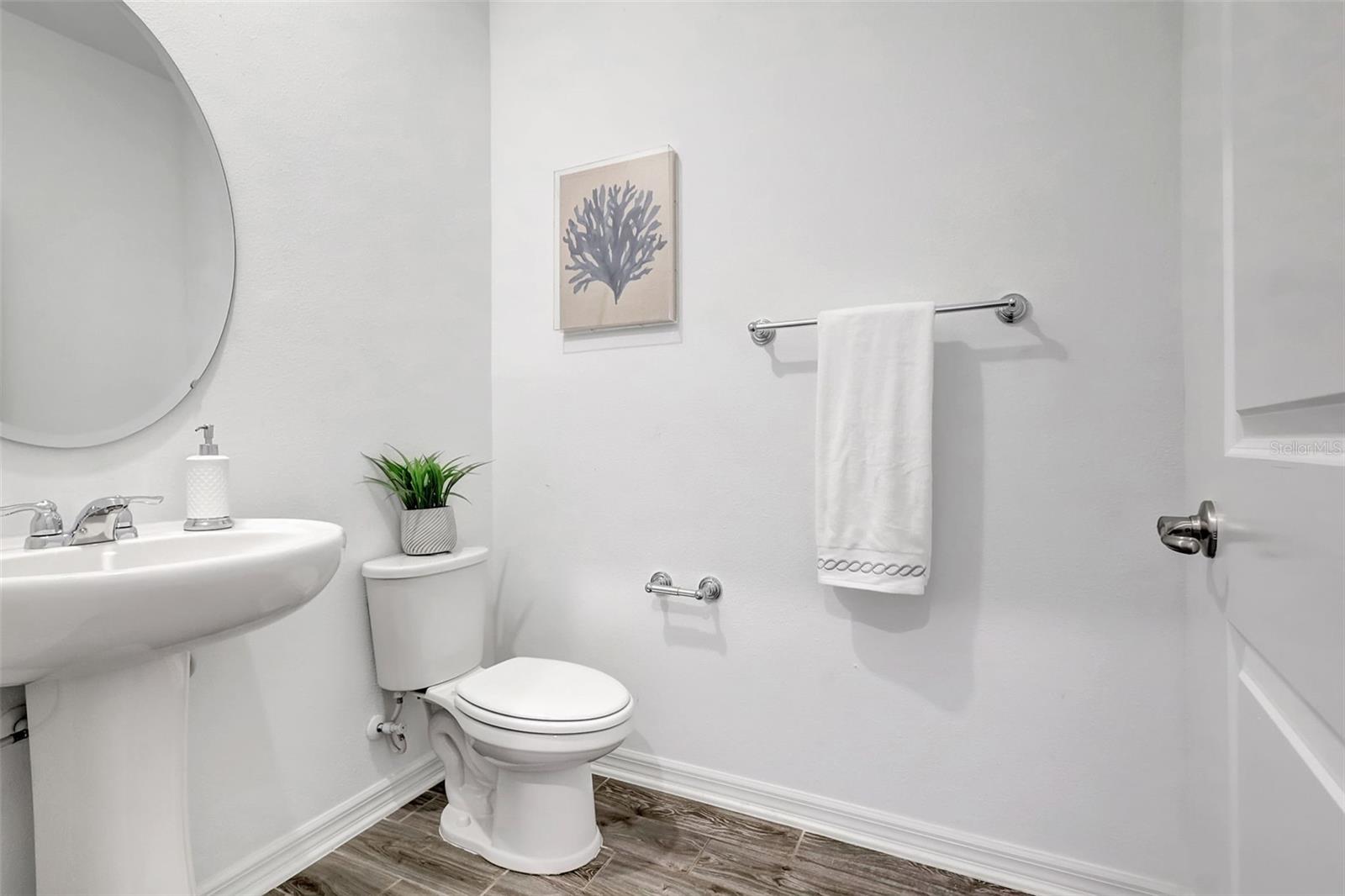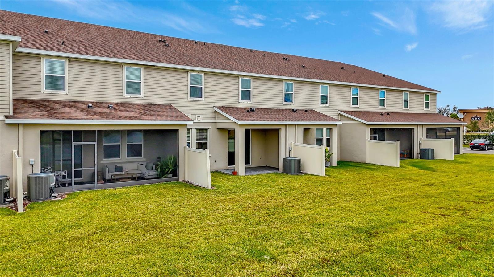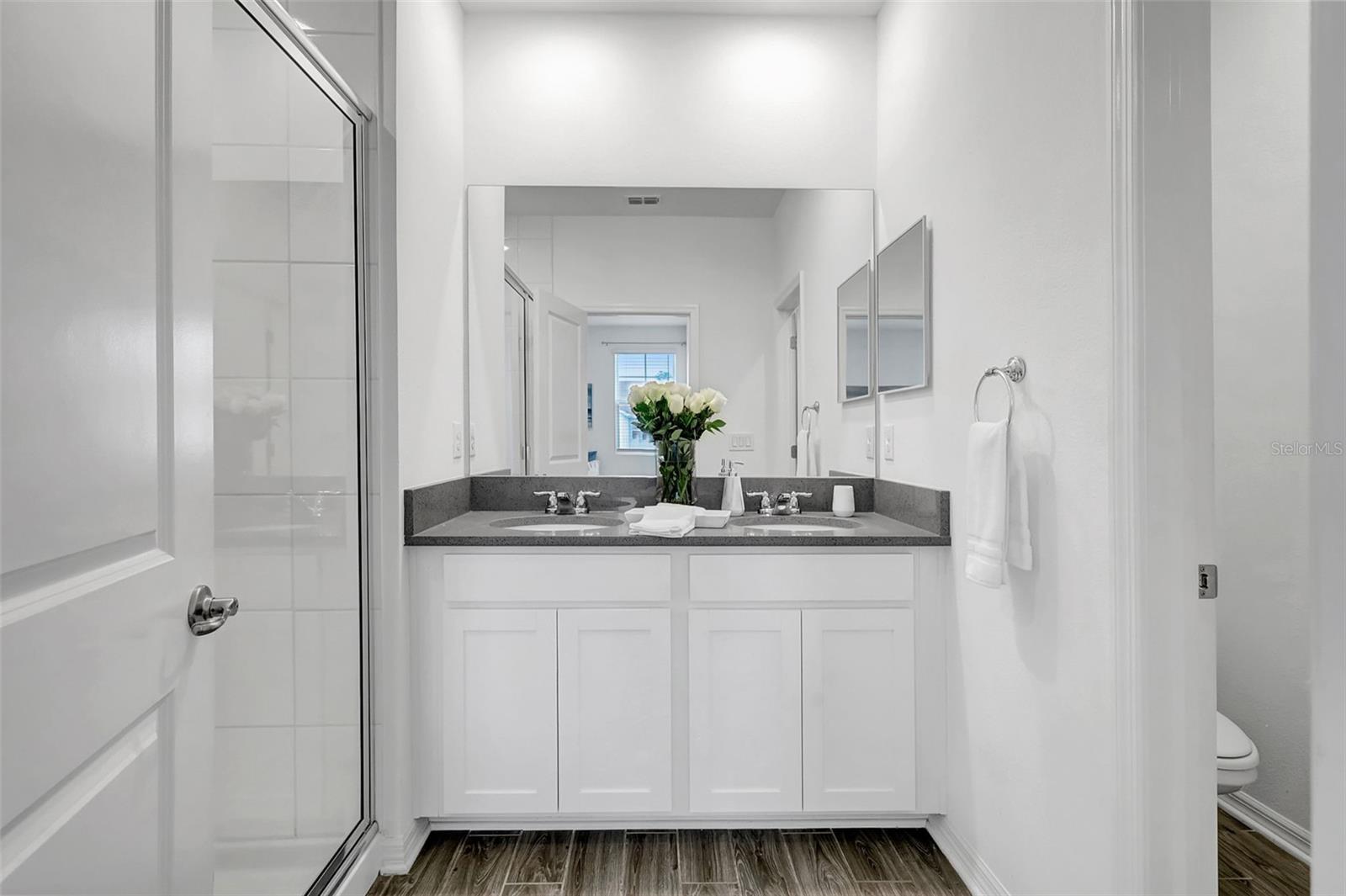 One or more photo(s) has been virtually staged. Placed in the center of everything. This fantastic townhouse is in the sought after gated community of Woodleaf Hammock. This incredible floor plan with three bedrooms, two and a half bathrooms with wood-like plank tile throughout the downstairs and the hallways of the upstairs of the unit. This spacious open floor plan offers flexibility and functionality, with a large island granite counter and amazing kitchen, with SS appliances a large pantry, white cabinets and additional storage under the stairs. The kitchen and flex space have great views of the pond behind. Up the stairs is a grand master suite is on the second floor with tray ceilings, two walk in closets, ensuite bathroom with double sinks and wonderfully sized shower. The second and third bedrooms share a bathroom. Each of the bedrooms are carpeted. This HOA includes lawn maintenance, a resort style pool, pickleball courts, two dog parks, playground and community pavilion with outdoor kitchen. Centrally located with St. Pete to the north, Sarasota to the southwest, Anna Maria Island the direct Gulf beach and Lakewood Ranches downtown areas close towards the south. A Costco five minutes away at the entrance to the highway.