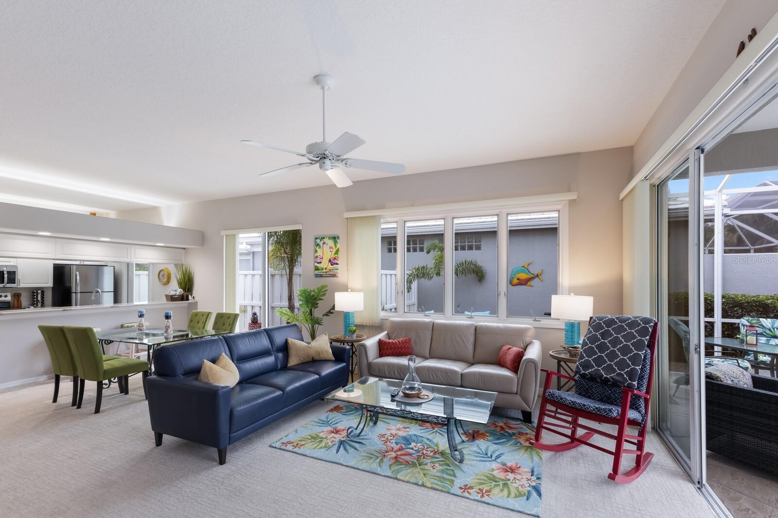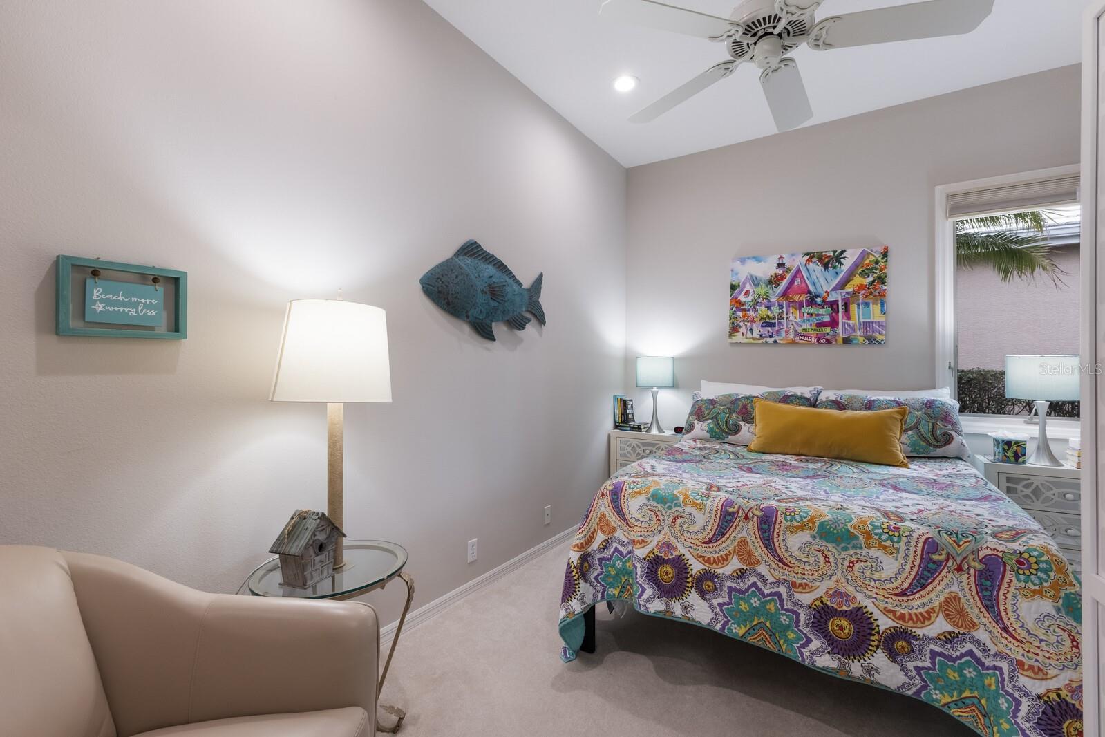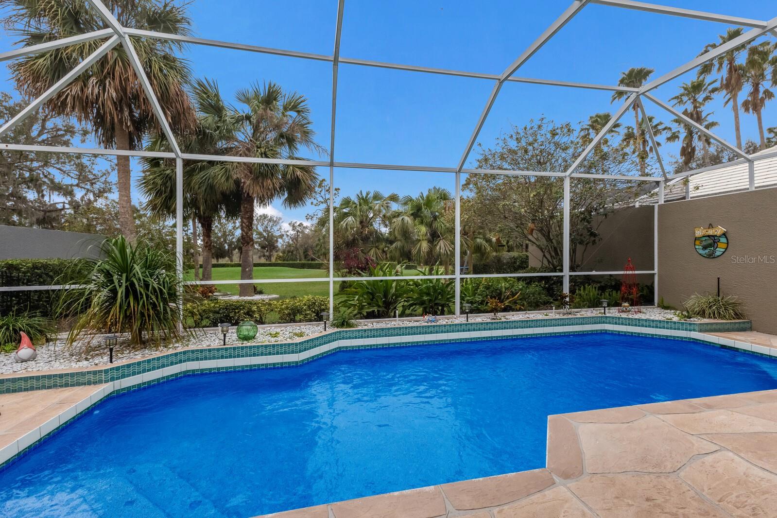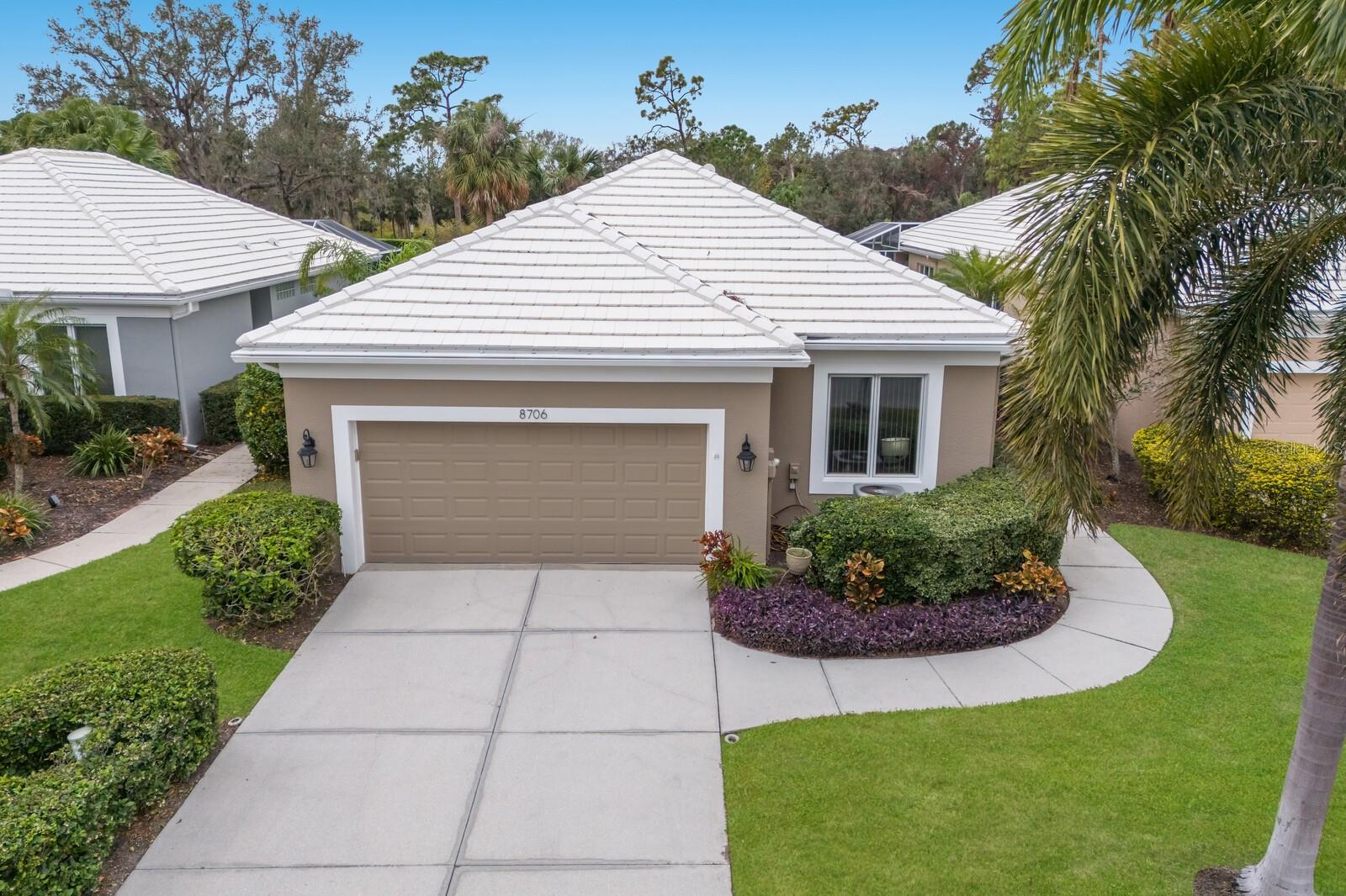 Welcome to this light and bright split floorplan home located in the maintenance-free section of Rosedale Golf & Country Club. Enjoy watching golfers warm up on the practice putting green and the activities at the first tee, all just steps from the clubhouse. The neutral kitchen features modern stone countertops and stainless steel appliances, with a breakfast bar and adjoining dining area that opens to the patio. Relax on the lovely lanai with a sparkling pool and sun sitting area - plus take in the amazing sunsets. The primary suite offers a spa-like bathroom with a walk-in shower and large walk-in closet. A versatile den/office currently serves as a bedroom and could be easily converted, while the private guest bedroom (currently used as a den) has a large closet and an adjoining bathroom. Additional features include a spacious 2-car garage with utility sink, a side patio perfect for gardening or grilling, and newer luxury vinyl flooring in the main entry and kitchen. New roof (2020), and homes on the street were recently painted as part of the HOA fees in 2023. Stay active with leisurely strolls along the tree-lined streets of this charming, walkable neighborhood, or navigate the friendly community on your personal golf cart. The community’s master HOA provides 24/7 security with two manned gates, and cares for common areas, lakes, roads, as well as offering internet, basic cable, common area taxes, and mailboxes. Immerse yourself in a vibrant social life at the Rosedale Golf & Country Club, offering optional social, tennis and golf memberships. The club features five lighted Har-Tru tennis courts, an 18-hole championship golf course, a Junior-size Olympic swimming pool, and a state-of-the-art wellness center. The recently modernized clubhouse includes a dining room, lounge, and bistro patio with an extensive menu, fostering a friendly and welcoming atmosphere. Ideally situated, Rosedale offers proximity to downtown Bradenton, Sarasota, St. Pete, and Tampa, providing a diverse array of dining, shopping, beaches, arts, cultural, and sport experiences. Discover a lifestyle of luxury and convenience in this stunning Rosedale home.