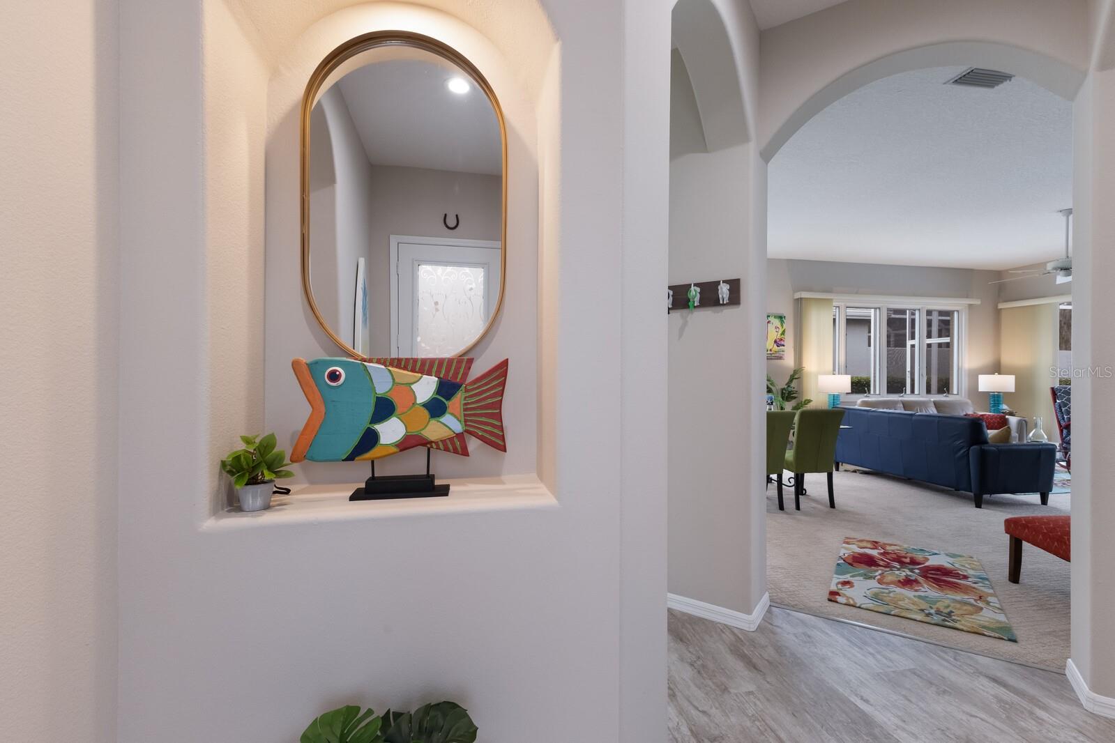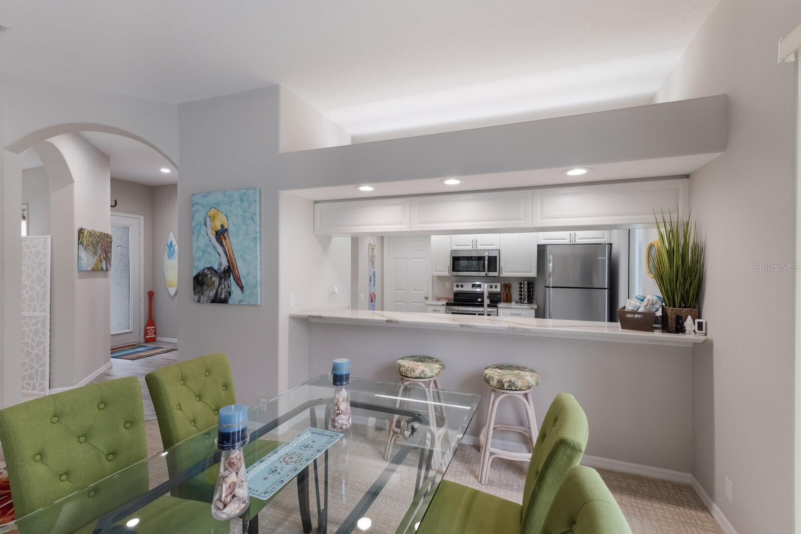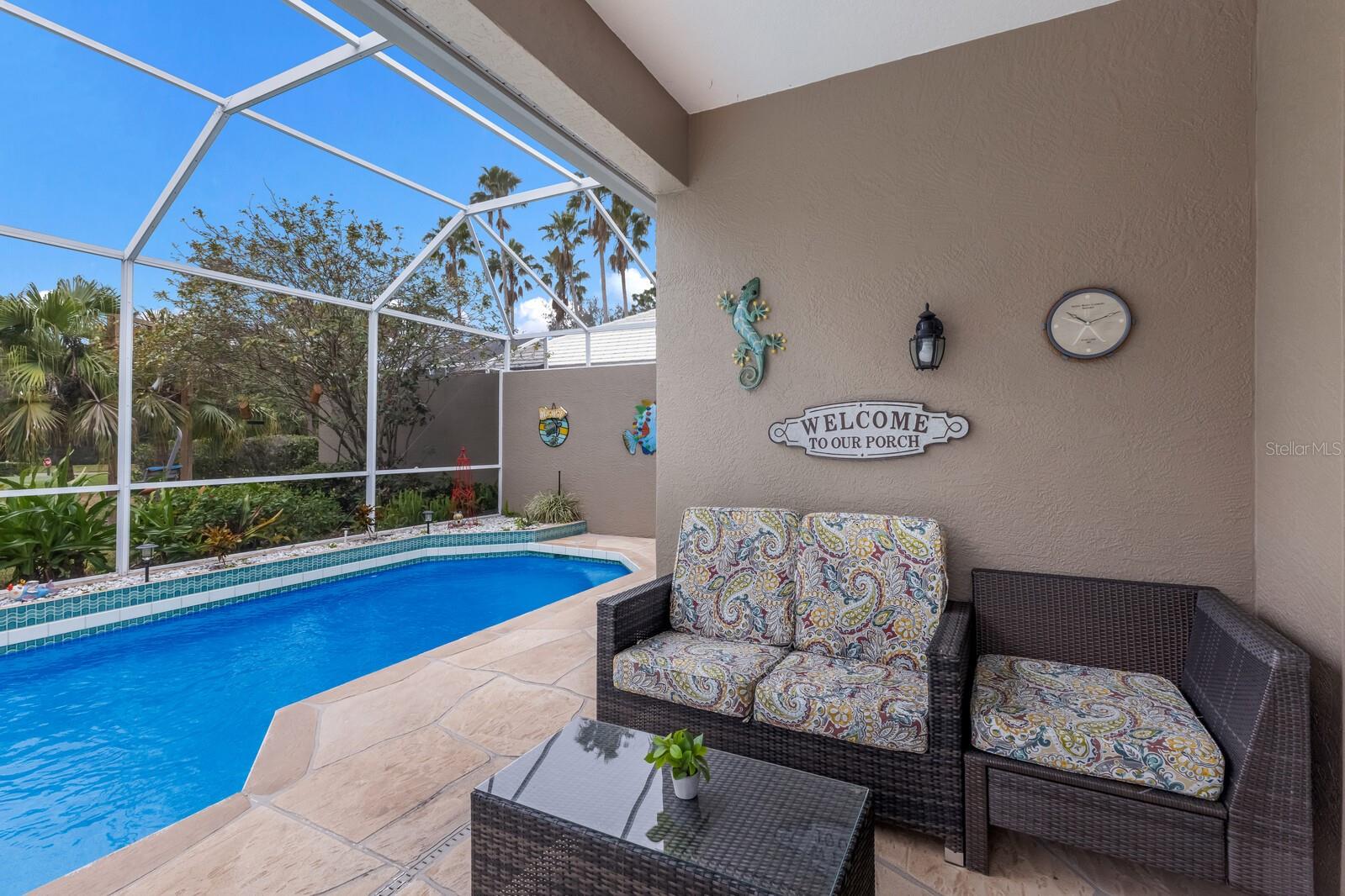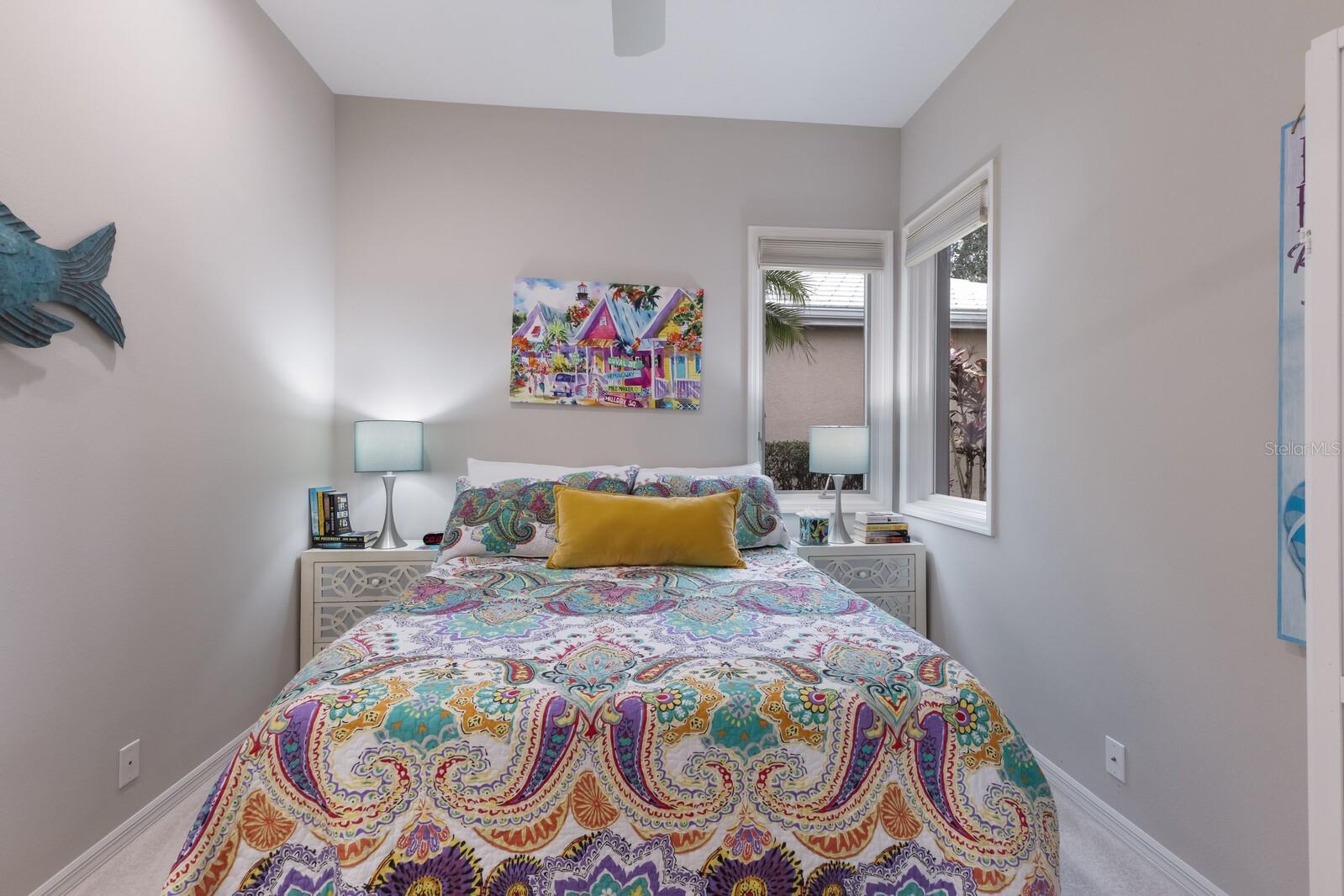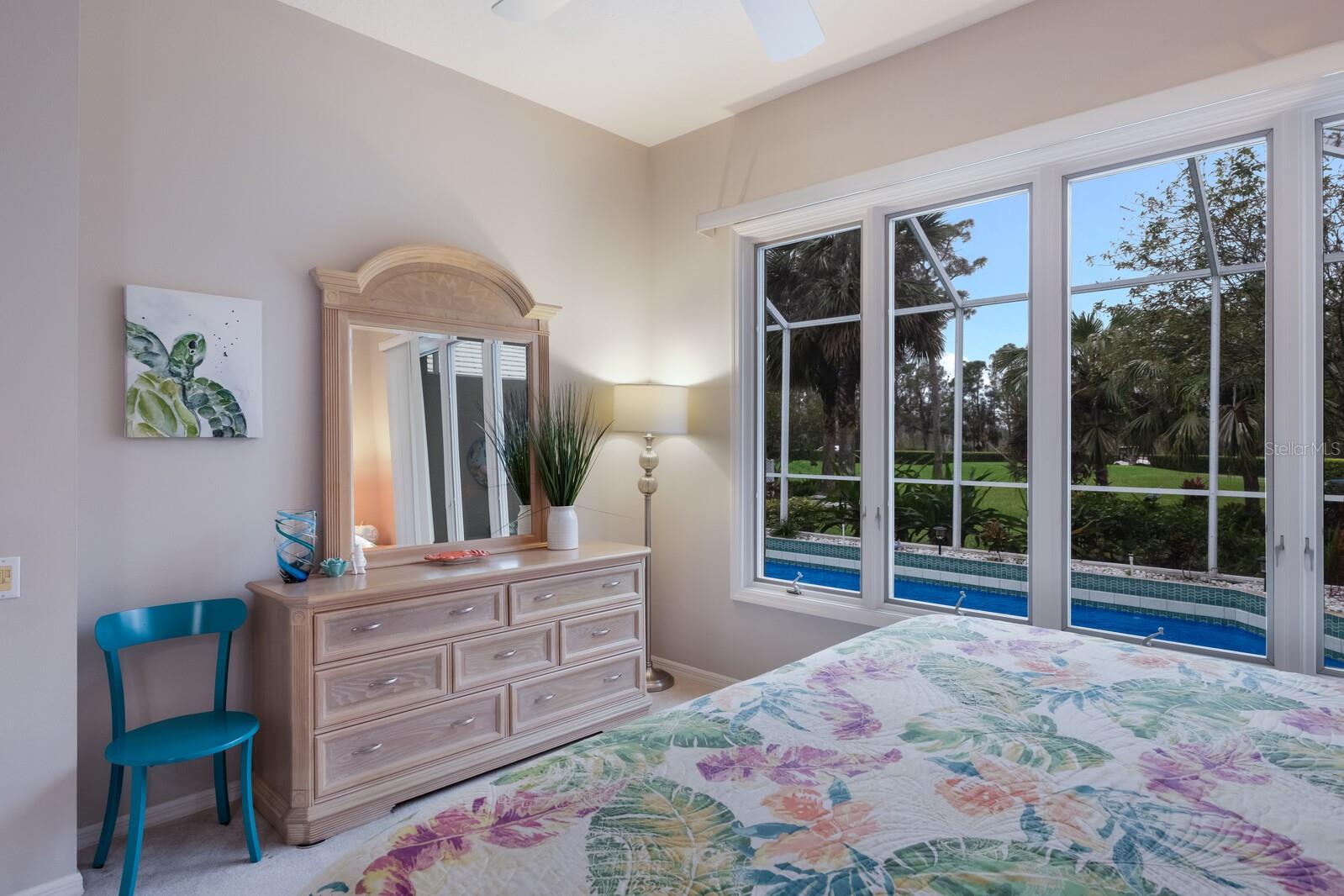 Welcome to this light and bright split floorplan home located in the maintenance-free section of Rosedale Golf & Country Club. Enjoy watching golfers warm up on the practice putting green and the activities at the first tee, all just steps from the clubhouse. The neutral kitchen features modern stone countertops and stainless steel appliances, with a breakfast bar and adjoining dining area that opens to the patio. Relax on the lovely lanai with a sparkling pool and sun sitting area - plus take in the amazing sunsets. The primary suite offers a spa-like bathroom with a walk-in shower and large walk-in closet. A versatile den/office currently serves as a bedroom and could be easily converted, while the private guest bedroom (currently used as a den) has a large closet and an adjoining bathroom. Additional features include a spacious 2-car garage with utility sink, a side patio perfect for gardening or grilling, and newer luxury vinyl flooring in the main entry and kitchen. New roof (2020), and homes on the street were recently painted as part of the HOA fees in 2023. Stay active with leisurely strolls along the tree-lined streets of this charming, walkable neighborhood, or navigate the friendly community on your personal golf cart. The community’s master HOA provides 24/7 security with two manned gates, and cares for common areas, lakes, roads, as well as offering internet, basic cable, common area taxes, and mailboxes. Immerse yourself in a vibrant social life at the Rosedale Golf & Country Club, offering optional social, tennis and golf memberships. The club features five lighted Har-Tru tennis courts, an 18-hole championship golf course, a Junior-size Olympic swimming pool, and a state-of-the-art wellness center. The recently modernized clubhouse includes a dining room, lounge, and bistro patio with an extensive menu, fostering a friendly and welcoming atmosphere. Ideally situated, Rosedale offers proximity to downtown Bradenton, Sarasota, St. Pete, and Tampa, providing a diverse array of dining, shopping, beaches, arts, cultural, and sport experiences. Discover a lifestyle of luxury and convenience in this stunning Rosedale home.