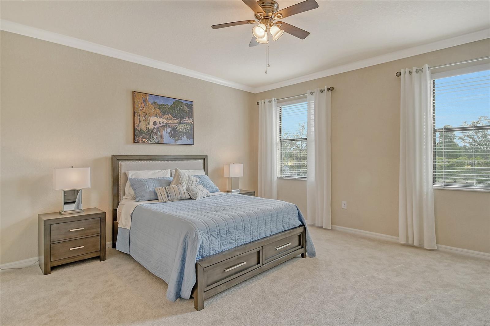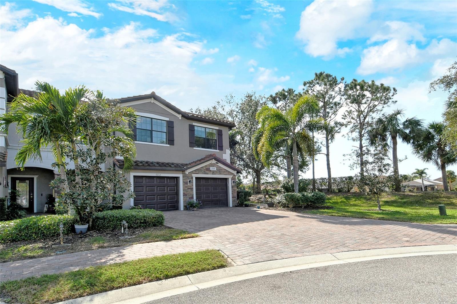 Exceptional 3 bedroom, 2.5 bathroom townhome, turnkey furnished for your ease. Regatta Landing provides maintenance-free living in a small enclave of Heritage Harbour, a beautifully designed master community with extensive amenities. First floor living space includes a great room, kitchen, dining area, half-bath, screened lanai and a single car garage. Nearly 2,000 square feet, this 2016 build has been refreshed and is move-in ready with tile floors throughout the main level. You'll appreciate the kitchen with dark cabinetry, granite countertops and stainless appliances. The great room and dining area share private/green views through the sliding doors, out to the screened and covered lanai. All bedrooms are carpeted and on the 2nd level. The generous primary suite features a tiled shower, dual sinks and a walk-in closet. A guest bath is situated just outside both the 2nd and 3rd bedrooms. No lugging laundry up the stairs, washer & dryer are situated on the 2nd level. Ideal location close to the interstate and 2 exits from University Town Center's shopping and dining mecca. Whether seeking a full-time residence, winter get-away or a solid rental investment... this will suit all your needs. Surrounded by parks, walking paths, golf and recreation... this will define a Florida lifestyle for you.