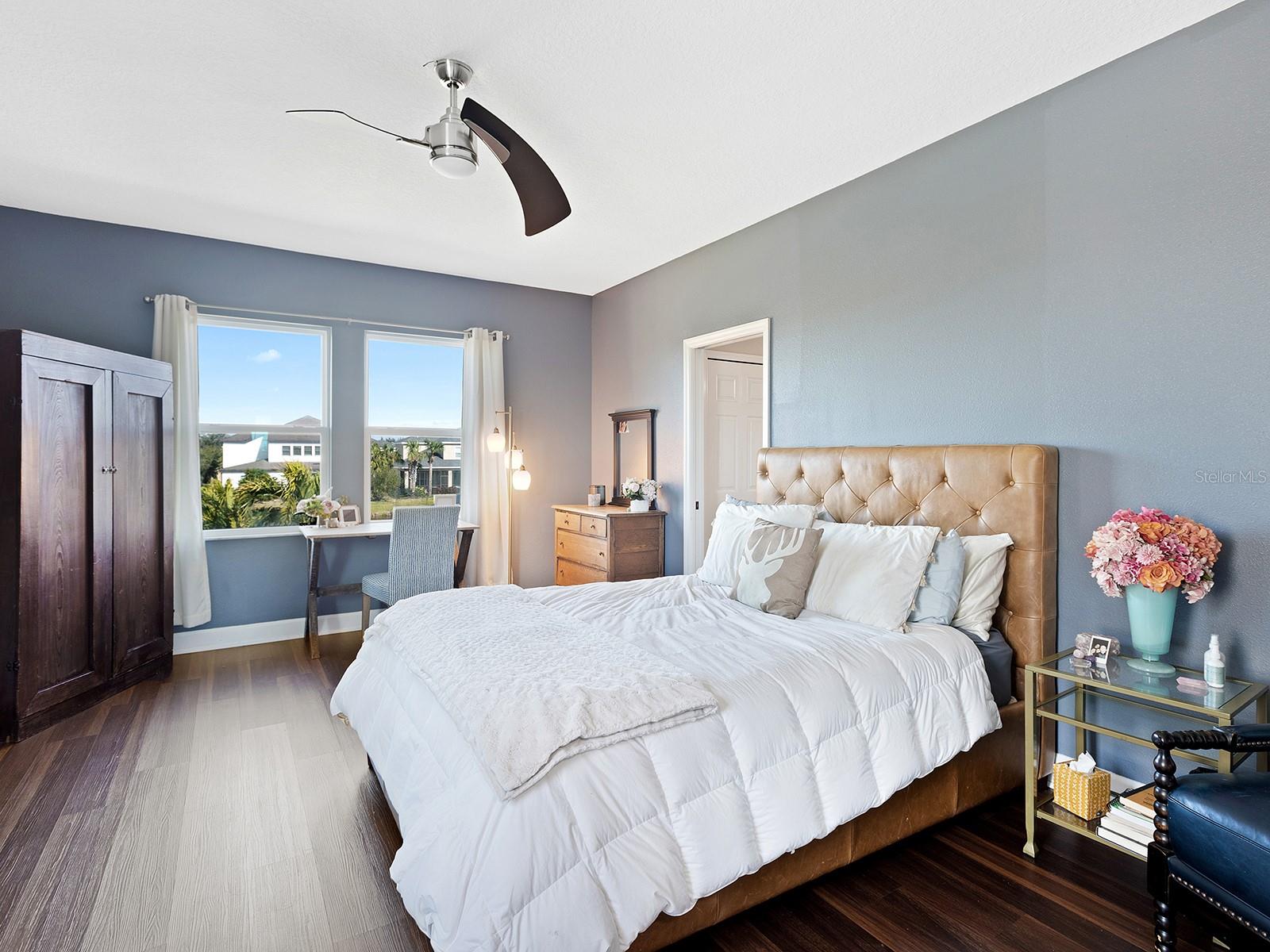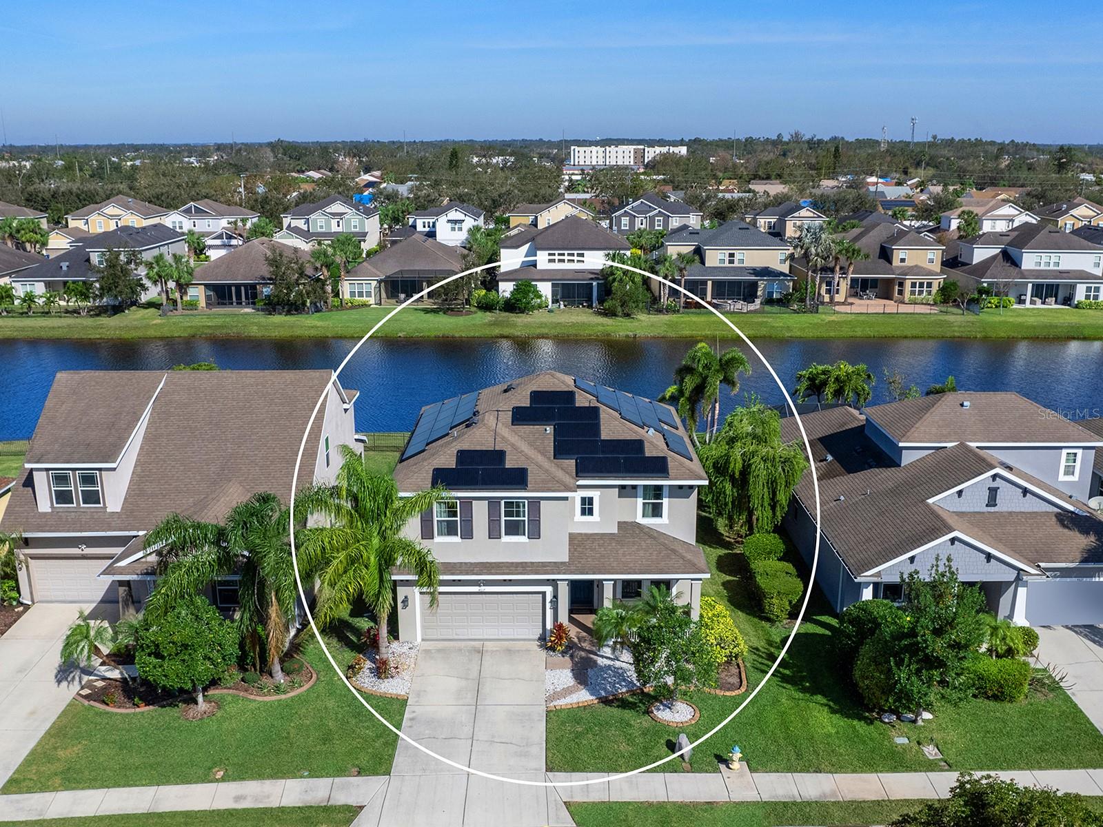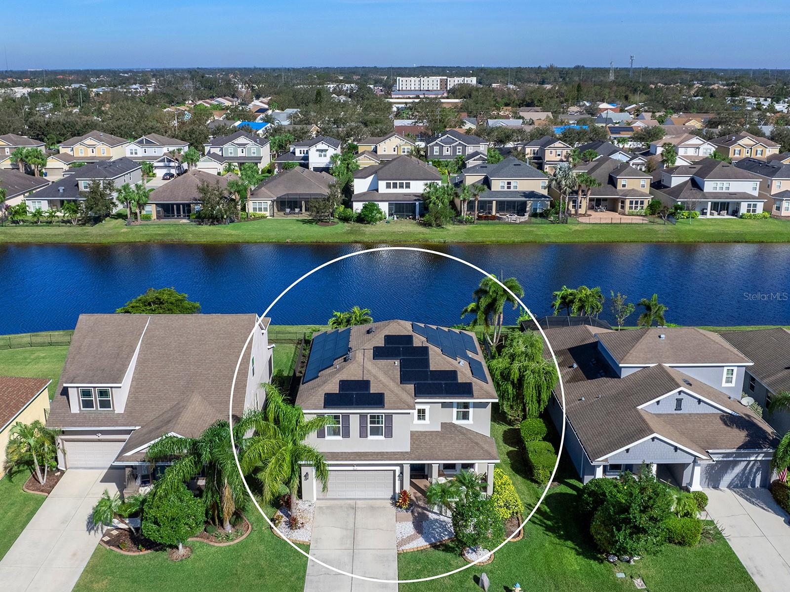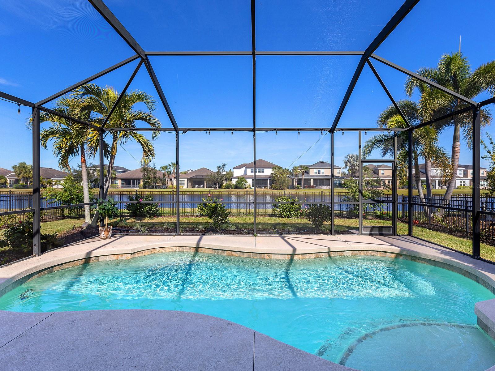 MOTIVATED SELLER! Move-in Ready Pool Home with Lake View in Gated Arbor Reserve. Discover the perfect blend of comfort, space, and efficiency in this beautifully upgraded 4-bedroom, 3-bathroom home with a private saltwater pool and 2-car garage, located in the sought-after gated community of Arbor Reserve. With nearly 2,600 sq. ft. of living space, this expansive two-story Miramar Model offers a versatile layout ideal for families, entertaining, and working from home. Step inside to find serene water views and designer finishes throughout—including granite countertops, crown molding, engineered hardwood floors, and an elegant color palette. The open-concept living area flows seamlessly into the oversized covered lanai, where you’ll enjoy relaxing by the sparkling pool with peaceful lake views. A wrought iron fence and fresh landscaping complete the outdoor oasis. The main floor includes a guest bedroom with a full bath, a dedicated home office, and a welcoming living area situated near the heart of the home- the kitchen. This vibrant kitchen boasts a large island and picturesque water views,- making it ideal for entertaining. Upstairs, you will find a generous bonus space offering endless possibilities for work, play, or relaxation. You'll fall in love with the spacious primary suite, featuring tranquil lake views, dual vanities, and walk in closets. Two additional bedrooms, a full bathroom, and a conveniently located laundry room complete the upstairs living space. This home is not just beautiful—it's also efficient. Equipped with a Tesla solar power system, plus two Carrier A/C units, you'll benefit from reduced electric bills and peace of mind during power outages. Community amenities include: Gated access, Community pool, Cabana with outdoor kitchen, Playground & basketball/sports court. Low HOA, no CDD fees, and no flood zone. Prime location just minutes to Lakewood Ranch, Sarasota, Bradenton, UTC Mall, I-75, SRQ Airport, and world-renowned beaches like Siesta Key and Lido Key. Schedule your private showing today! Experience Florida living at its best—Welcome Home!