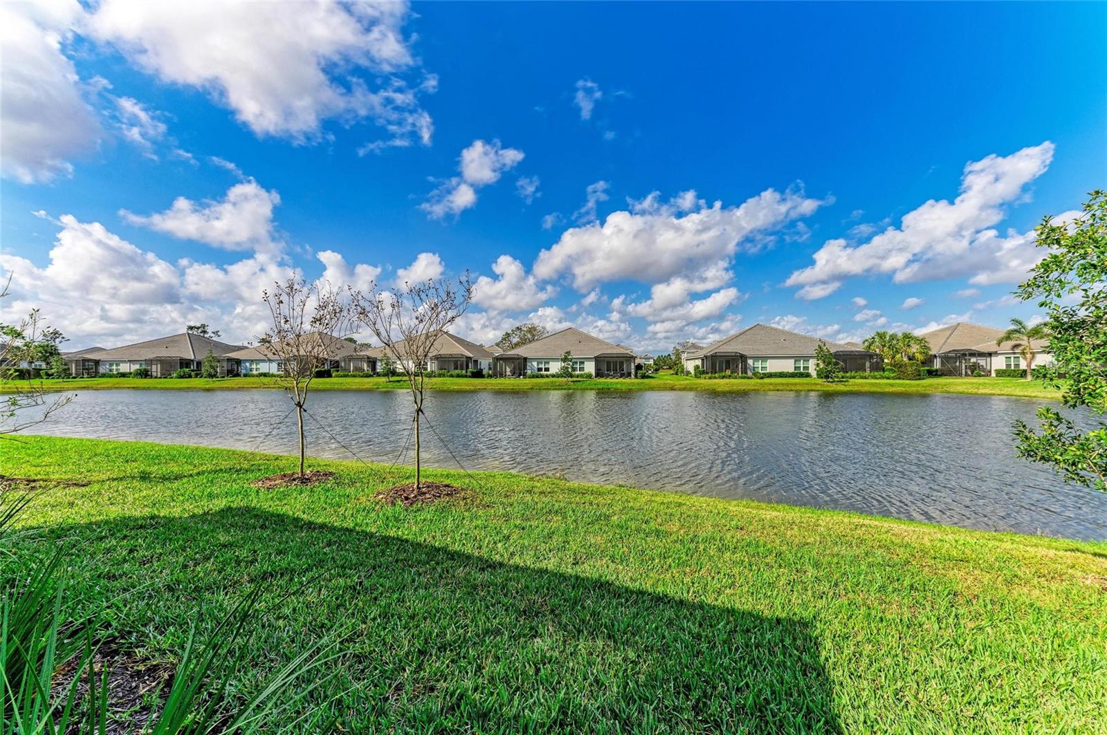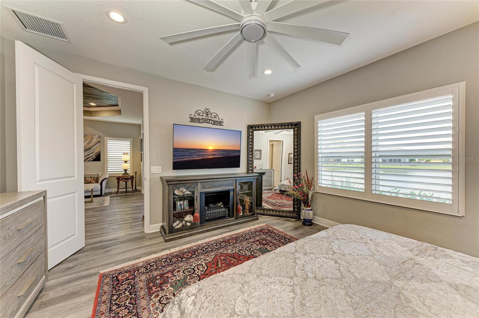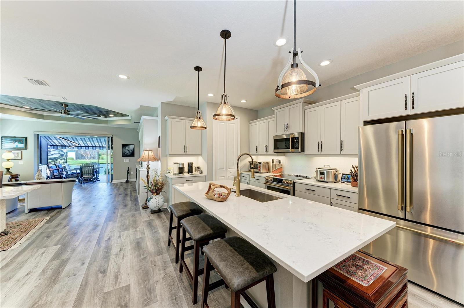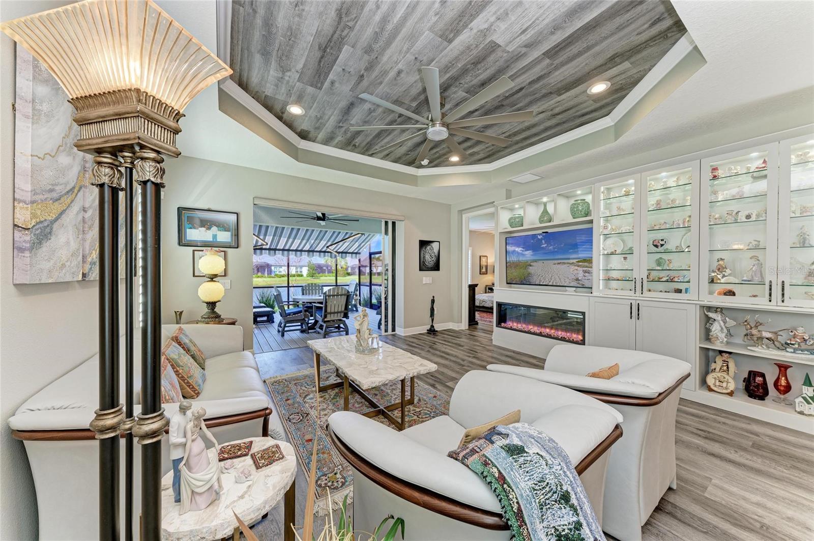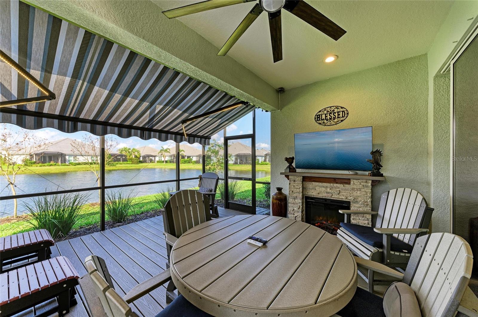 Come see this elegant home with high-end upgrades throughout backing to Lake. 3 bedrooms plus den, 2-Car Garage. Over $150,000+ in premium high-end upgrades. A MUST SEE. Move in ready. Enjoy the Florida lifestyle in this model-like 2-year gorgeous Neal Villa in like-new condition. ADA compliant and features a hurricane leaded glass front door with a removable stainless-steel ramp and many other extra conveniences. Popular gated Indigo, a resort lifestyle, and easy access to everything in LWR. Villas have a separate private community pool and fitness that is just around the corner and is in addition to the large Community Pool and Clubhouse. See the 3-page feature list of the high-end upgrades. Featuring a beautiful outdoor extended, super screened Lanai with the highest grade Trex composite decking, reflective privacy screening, and with remote controlled electric Sunbrella Awning with LED lighting, a beautiful fireplace, and a TV, overlooking the lake. Great for relaxing and entertaining. All neutral interior décor. Upon entering the home you’ll see a new leaded glass hurricane door with Schlage locks. Large Entry Hall. Open concept with the Great Room open to the Dining Room and Kitchen, and features a tray ceiling with custom finish, built-in Electric Fireplace with LED lighting, Custom Entertainment Center with glass cabinets for displays, and more. The dining room chandelier is a premium work of art. 4” Wide custom Plantation Shutters throughout. All flooring is high end luxury waterproof vinyl with whisper quiet underlayment. 3M Prestige Ultra High Impact Security and UV film on all windows and sliders. The Kitchen features soft pale cloud gray cabinets with high end marble pulls, upgraded GE Cafe stainless steel appliances with added brass handles, slide in induction stove with double oven, designer sink with high arch faucet, and matching soap dispenser. Quiet Garbage Insinkerator Disposal. Super quiet Dishwasher. Built in Pantry. Laundry Room with top-of-the-line Electrolux Washer/Gas Dryer on Pedestals, many added cabinets and sink. Den is off the Great Room with a double door. Large Primary Bedroom with customized walk-in closet, built-in makeup vanity, many ample shoe racks, cabinets and clothes hanging, designer porcelain full accent wall, and ensuite bath. The Primary bath features a fully customized large walk-in shower with rain glass, no threshold entry door, wheelchair friendly. Guest Bedrooms have built-in closets and share a large full bath with shower/tub combination. The 2-car insulated garage door features - new Carriage Lights that turn on/off automatically dusk to dawn, full ceiling insulation, Culligan water softener and purification, flooring with high-tech epoxy granite process with lifetime warranty, and Electric Charging Station. Whole house gutters. Lots of new landscaping including a Royal Palm tree, Crape Myrle trees, tall bushes and flowers. Indigo is right in the heart of Lakewood Ranch and features a Clubhouse, Tennis Courts, Fitness, Dog Park, Activity Director with Activities galore. Close to Siesta Key Beach, downtown Sarasota, UTC Mall, Airports. Treat yourself and see this beauty. Easy to show and see.