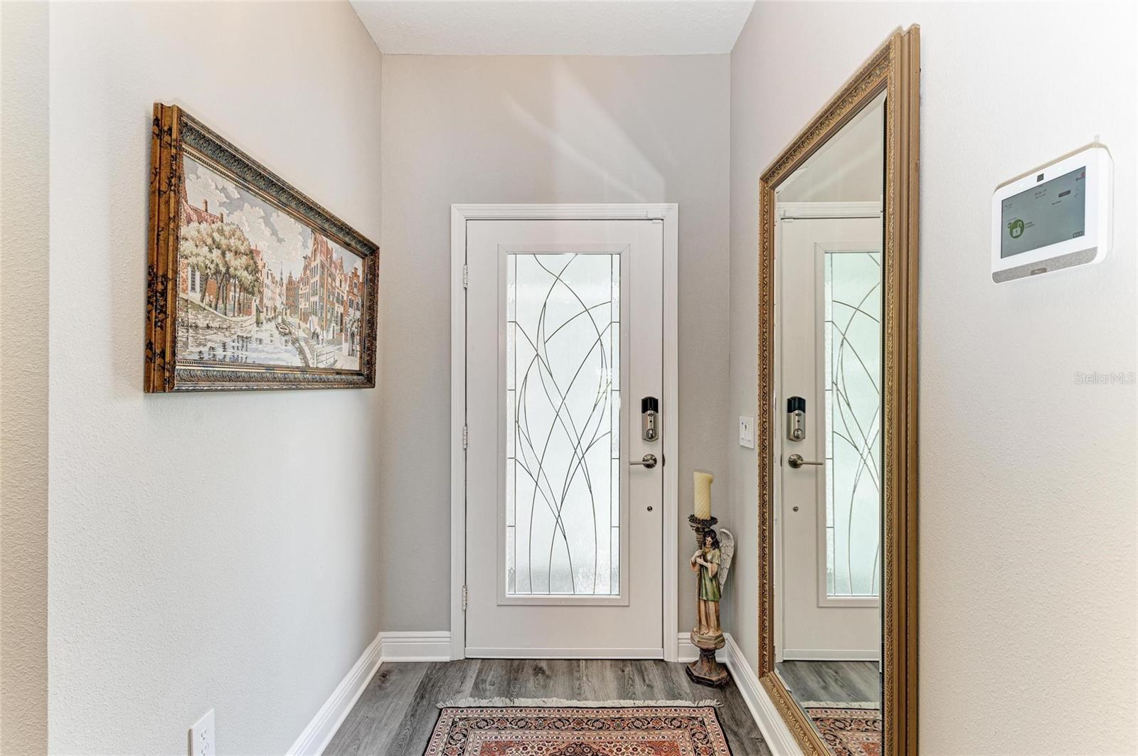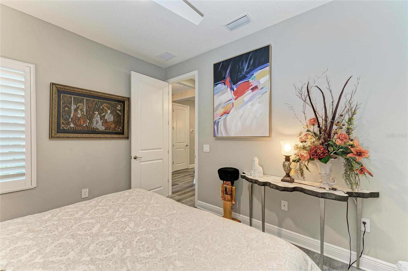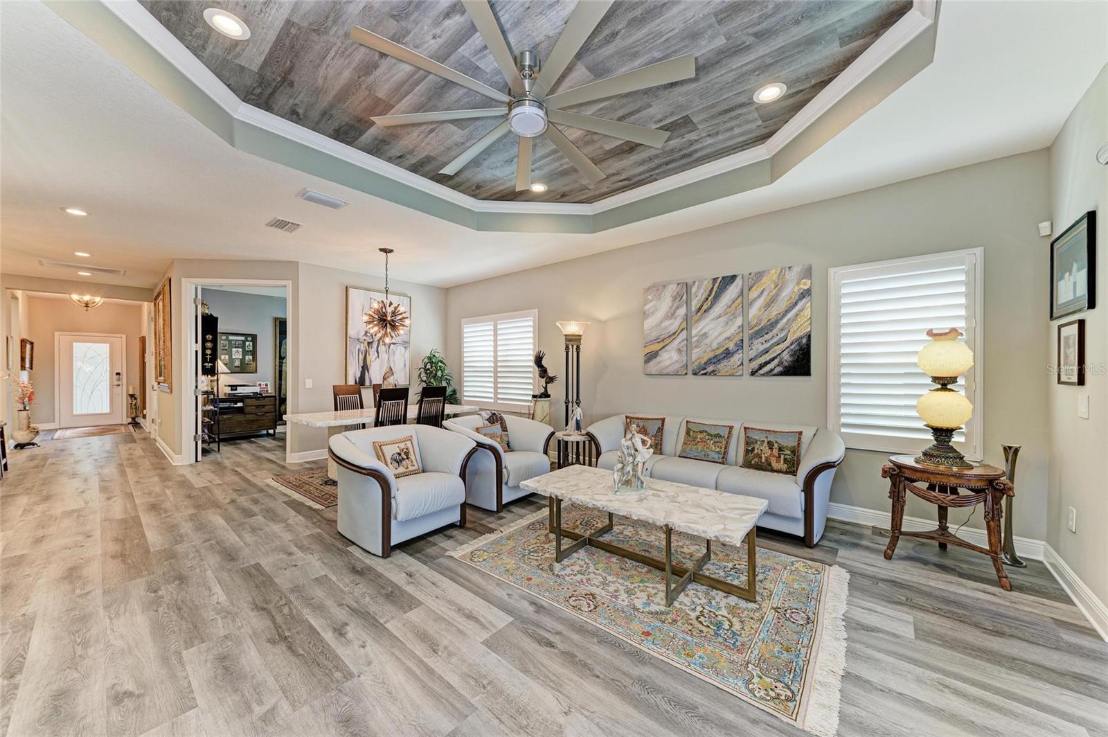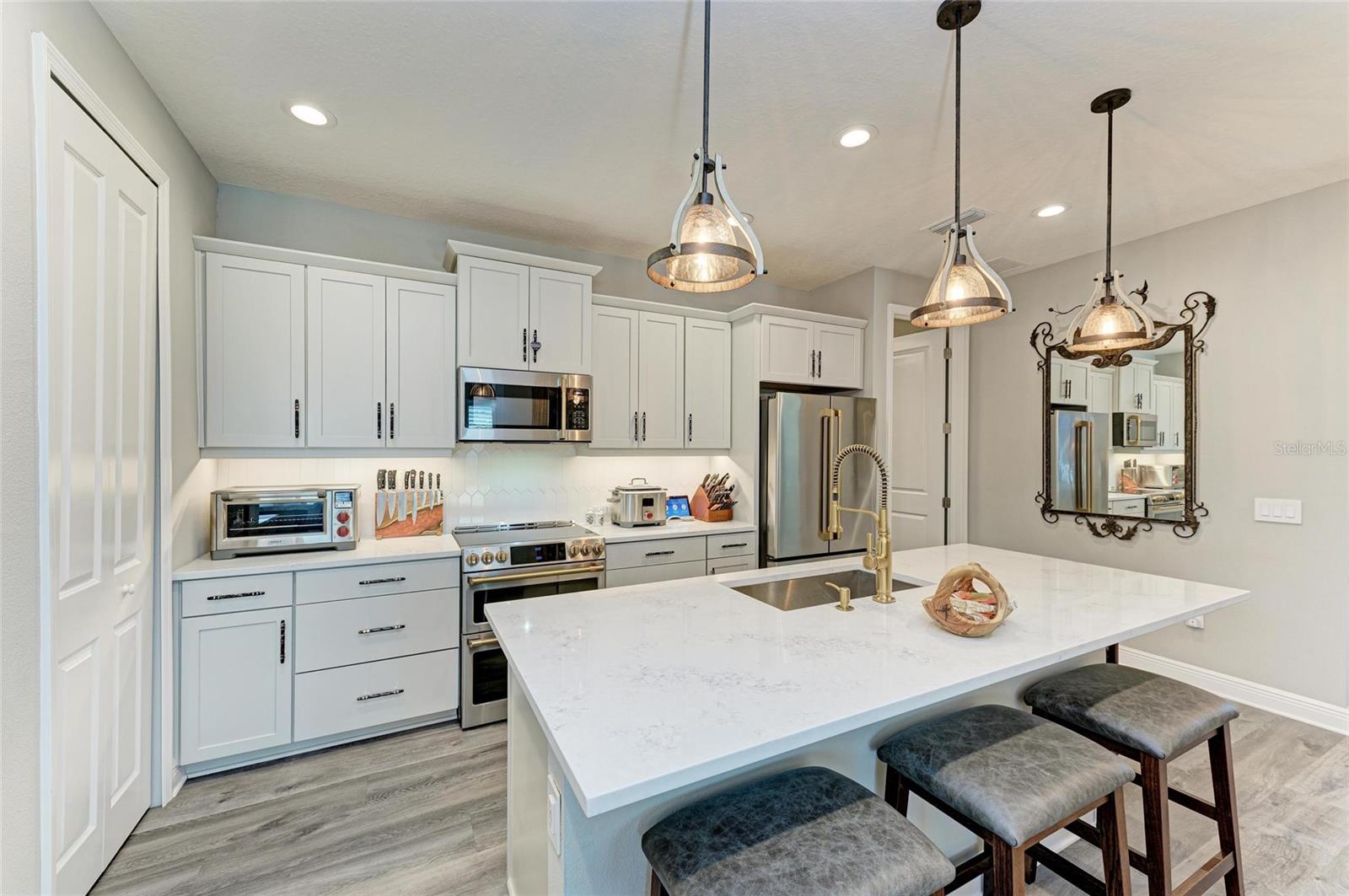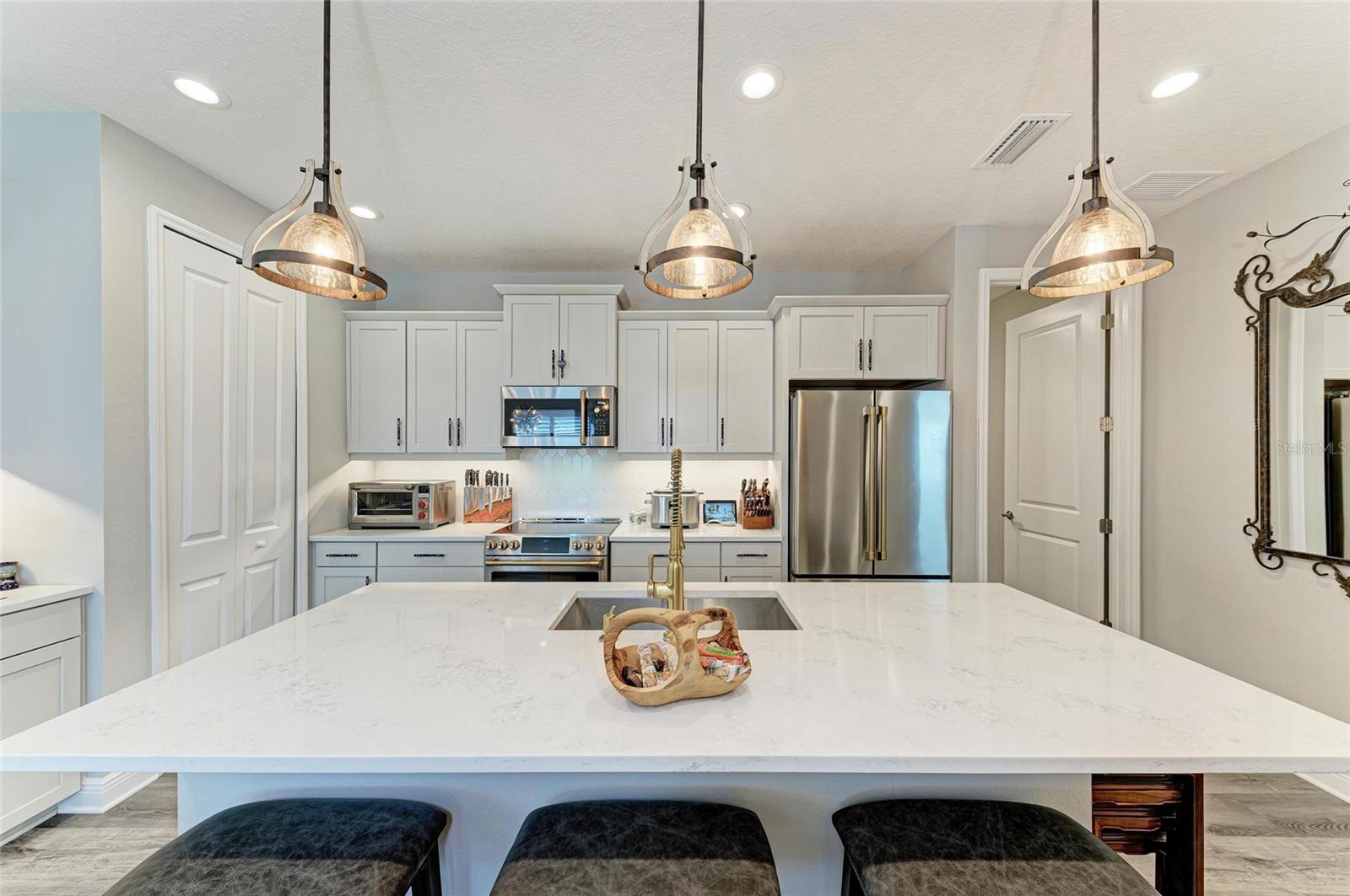 Come see this elegant home with high-end upgrades throughout backing to Lake. 3 bedrooms plus den, 2-Car Garage. Over $150,000+ in premium high-end upgrades. A MUST SEE. Move in ready. Enjoy the Florida lifestyle in this model-like 2-year gorgeous Neal Villa in like-new condition. ADA compliant and features a hurricane leaded glass front door with a removable stainless-steel ramp and many other extra conveniences. Popular gated Indigo, a resort lifestyle, and easy access to everything in LWR. Villas have a separate private community pool and fitness that is just around the corner and is in addition to the large Community Pool and Clubhouse. See the 3-page feature list of the high-end upgrades. Featuring a beautiful outdoor extended, super screened Lanai with the highest grade Trex composite decking, reflective privacy screening, and with remote controlled electric Sunbrella Awning with LED lighting, a beautiful fireplace, and a TV, overlooking the lake. Great for relaxing and entertaining. All neutral interior décor. Upon entering the home you’ll see a new leaded glass hurricane door with Schlage locks. Large Entry Hall. Open concept with the Great Room open to the Dining Room and Kitchen, and features a tray ceiling with custom finish, built-in Electric Fireplace with LED lighting, Custom Entertainment Center with glass cabinets for displays, and more. The dining room chandelier is a premium work of art. 4” Wide custom Plantation Shutters throughout. All flooring is high end luxury waterproof vinyl with whisper quiet underlayment. 3M Prestige Ultra High Impact Security and UV film on all windows and sliders. The Kitchen features soft pale cloud gray cabinets with high end marble pulls, upgraded GE Cafe stainless steel appliances with added brass handles, slide in induction stove with double oven, designer sink with high arch faucet, and matching soap dispenser. Quiet Garbage Insinkerator Disposal. Super quiet Dishwasher. Built in Pantry. Laundry Room with top-of-the-line Electrolux Washer/Gas Dryer on Pedestals, many added cabinets and sink. Den is off the Great Room with a double door. Large Primary Bedroom with customized walk-in closet, built-in makeup vanity, many ample shoe racks, cabinets and clothes hanging, designer porcelain full accent wall, and ensuite bath. The Primary bath features a fully customized large walk-in shower with rain glass, no threshold entry door, wheelchair friendly. Guest Bedrooms have built-in closets and share a large full bath with shower/tub combination. The 2-car insulated garage door features - new Carriage Lights that turn on/off automatically dusk to dawn, full ceiling insulation, Culligan water softener and purification, flooring with high-tech epoxy granite process with lifetime warranty, and Electric Charging Station. Whole house gutters. Lots of new landscaping including a Royal Palm tree, Crape Myrle trees, tall bushes and flowers. Indigo is right in the heart of Lakewood Ranch and features a Clubhouse, Tennis Courts, Fitness, Dog Park, Activity Director with Activities galore. Close to Siesta Key Beach, downtown Sarasota, UTC Mall, Airports. Treat yourself and see this beauty. Easy to show and see.