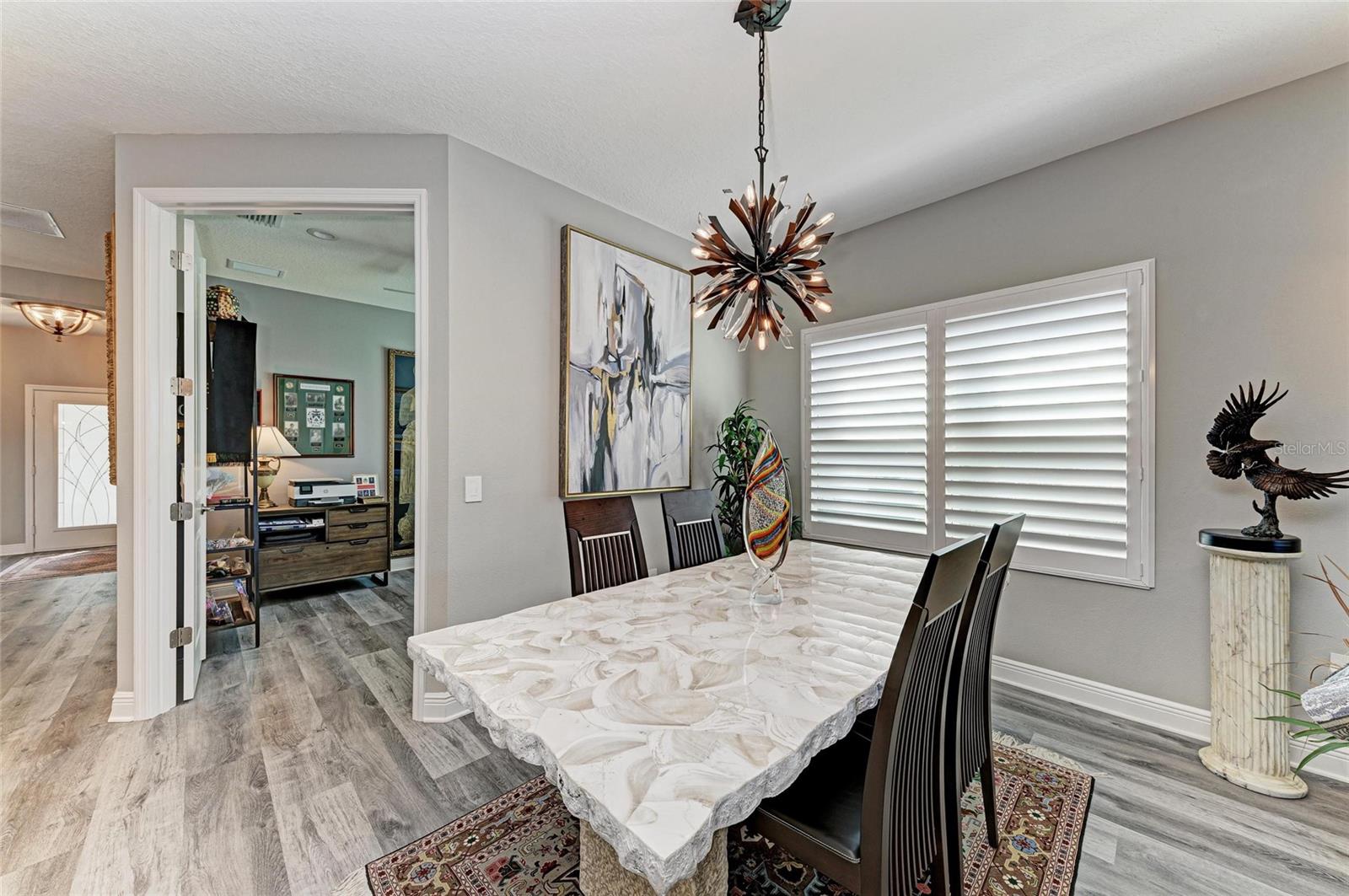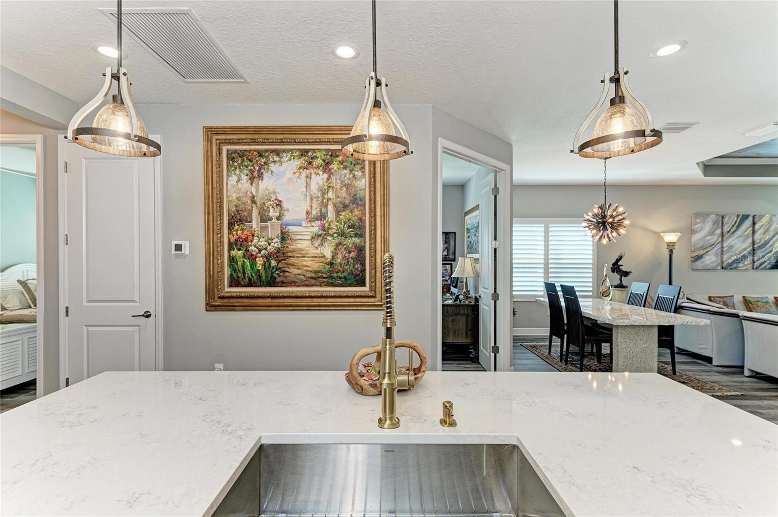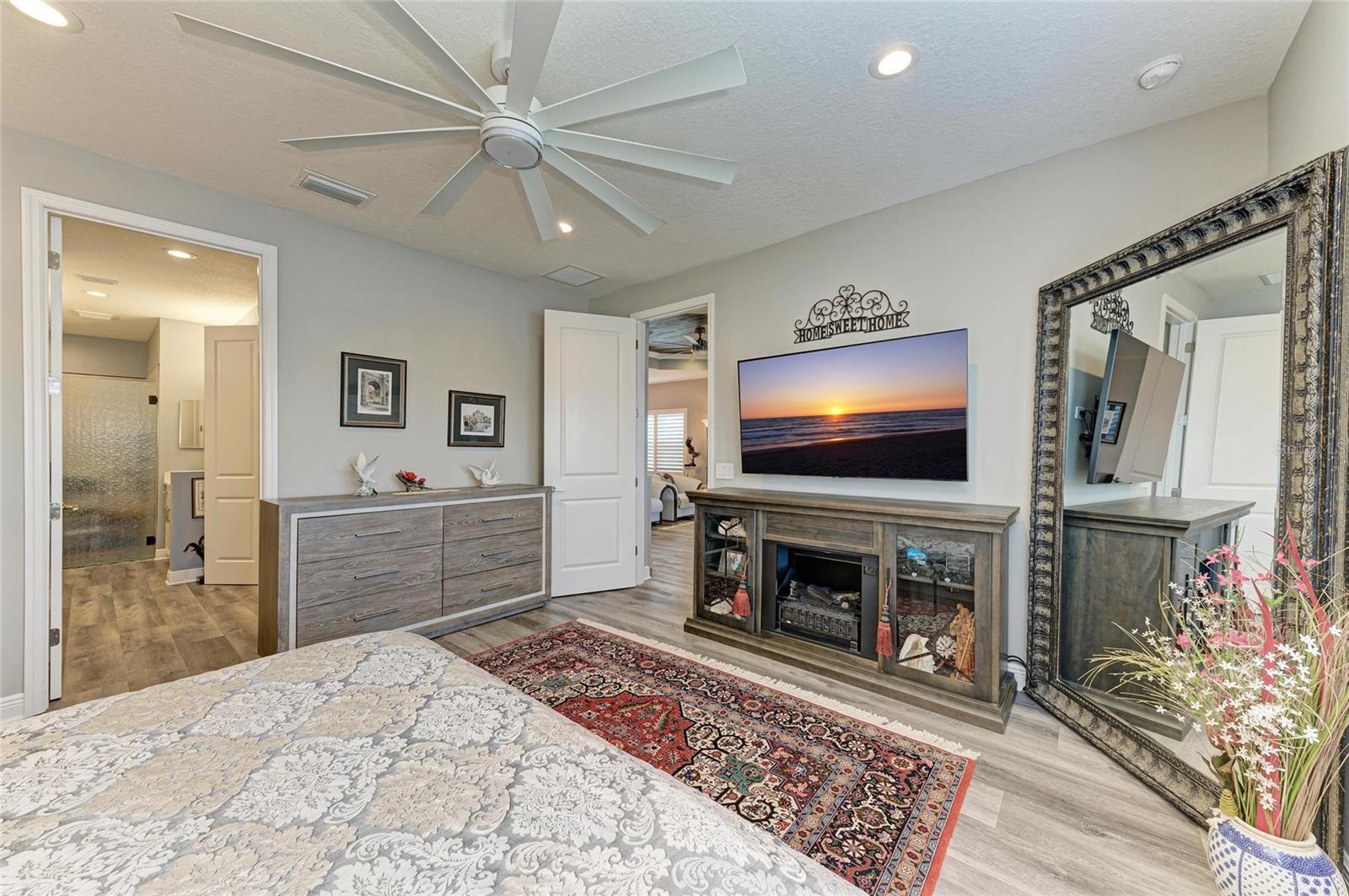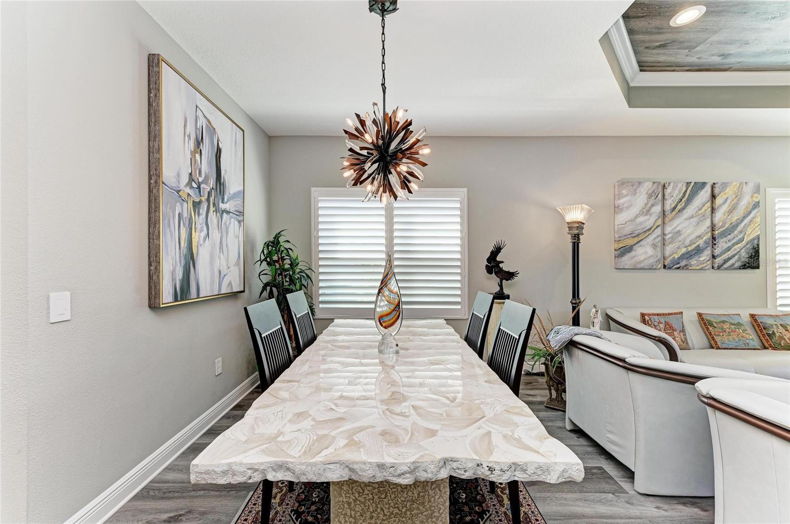 Come see this elegant home with high-end upgrades throughout backing to Lake. 3 bedrooms plus den, 2-Car Garage. Over $150,000+ in premium high-end upgrades. A MUST SEE. Move in ready. Enjoy the Florida lifestyle in this model-like 2-year gorgeous Neal Villa in like-new condition. ADA compliant and features a hurricane leaded glass front door with a removable stainless-steel ramp and many other extra conveniences. Popular gated Indigo, a resort lifestyle, and easy access to everything in LWR. Villas have a separate private community pool and fitness that is just around the corner and is in addition to the large Community Pool and Clubhouse. See the 3-page feature list of the high-end upgrades. Featuring a beautiful outdoor extended, super screened Lanai with the highest grade Trex composite decking, reflective privacy screening, and with remote controlled electric Sunbrella Awning with LED lighting, a beautiful fireplace, and a TV, overlooking the lake. Great for relaxing and entertaining. All neutral interior décor. Upon entering the home you’ll see a new leaded glass hurricane door with Schlage locks. Large Entry Hall. Open concept with the Great Room open to the Dining Room and Kitchen, and features a tray ceiling with custom finish, built-in Electric Fireplace with LED lighting, Custom Entertainment Center with glass cabinets for displays, and more. The dining room chandelier is a premium work of art. 4” Wide custom Plantation Shutters throughout. All flooring is high end luxury waterproof vinyl with whisper quiet underlayment. 3M Prestige Ultra High Impact Security and UV film on all windows and sliders. The Kitchen features soft pale cloud gray cabinets with high end marble pulls, upgraded GE Cafe stainless steel appliances with added brass handles, slide in induction stove with double oven, designer sink with high arch faucet, and matching soap dispenser. Quiet Garbage Insinkerator Disposal. Super quiet Dishwasher. Built in Pantry. Laundry Room with top-of-the-line Electrolux Washer/Gas Dryer on Pedestals, many added cabinets and sink. Den is off the Great Room with a double door. Large Primary Bedroom with customized walk-in closet, built-in makeup vanity, many ample shoe racks, cabinets and clothes hanging, designer porcelain full accent wall, and ensuite bath. The Primary bath features a fully customized large walk-in shower with rain glass, no threshold entry door, wheelchair friendly. Guest Bedrooms have built-in closets and share a large full bath with shower/tub combination. The 2-car insulated garage door features - new Carriage Lights that turn on/off automatically dusk to dawn, full ceiling insulation, Culligan water softener and purification, flooring with high-tech epoxy granite process with lifetime warranty, and Electric Charging Station. Whole house gutters. Lots of new landscaping including a Royal Palm tree, Crape Myrle trees, tall bushes and flowers. Indigo is right in the heart of Lakewood Ranch and features a Clubhouse, Tennis Courts, Fitness, Dog Park, Activity Director with Activities galore. Close to Siesta Key Beach, downtown Sarasota, UTC Mall, Airports. Treat yourself and see this beauty. Easy to show and see.