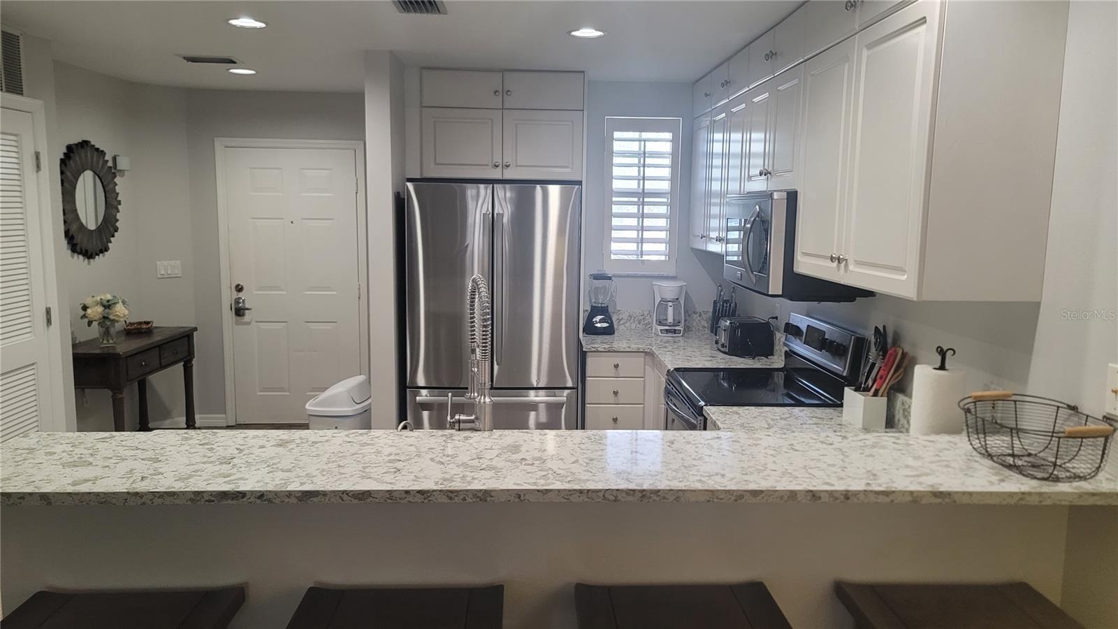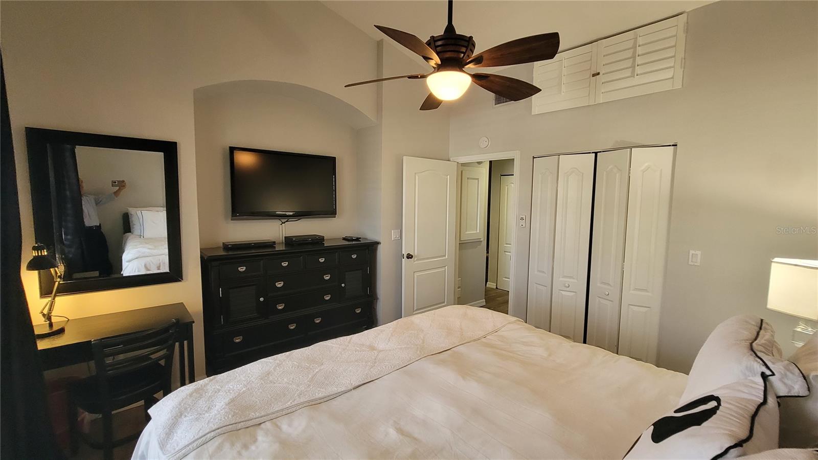 A wonderful luxury 2nd floor, 2 bed and 2 bathroom condo for sale. This unit is located in gated Bollettieri Resort Villas, which is also known as the IMG Academy. When you walk in the house, you will find the kitchen almost fully upgraded. Granite countertop, New design counter cabinet, Stainless steel appliances, Brand new refrigerator. The comfortable living room with Palm valley tropical ceiling fans, a special designed study couch room, custom window shutters, and new remodeled bathroom with a fully up grated ceramic tile in whole room which will cause you to love this warming heart house. This nice view unit is very close to the IMG gate, you’ll like the short distance to all IMG campus facilities to exercise your specific sports and save your transportation time to the school. This unit also has 2 carport parking spaces, just in front of your house, your guests or visitors can park in the nearby open parking lot very convenient. The community provides good benefits to the owner and his tenant such as a heated community swimming pool, clubhouse, and fitness room. You have to see. Furnished !