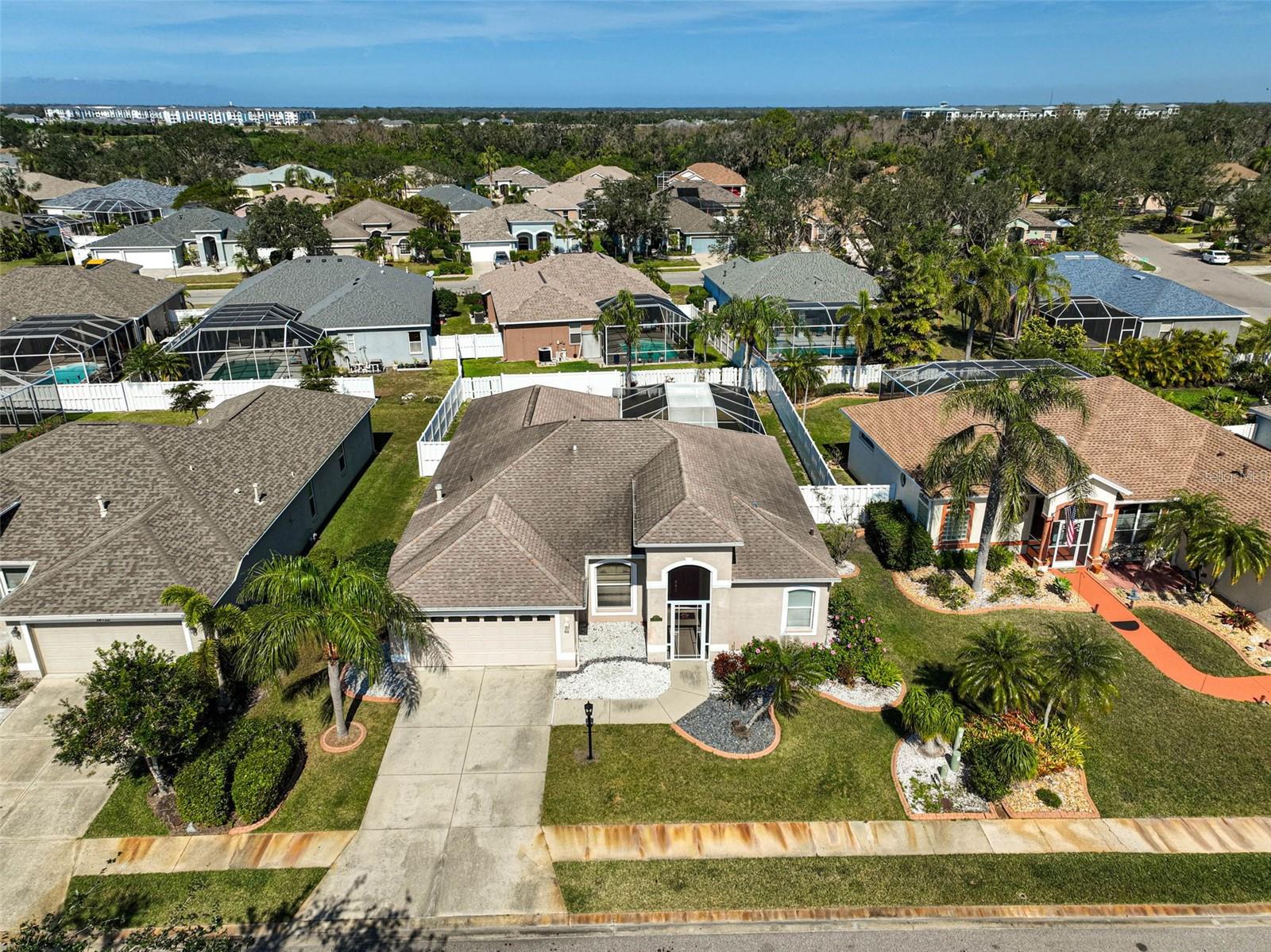 PRICE ADJUSTMENT! FABULOUS LOCATION! Benefit from next-door proximity to Lakewood Ranch, without the high fees. Enjoy living in a Golf-Course Community with NO MEMBERSHIP REQUIREMENTS, LOW HOA FEE (only $500/year) and NO CDD FEE! Welcome to GREENFIELD PLANTATION. Now you can afford to enjoy the Florida Lifestyle you deserve! As a bonus, the seller is even including a complimentary OLD REPUBLIC HOME WARRANTY. This home is very livable and features excellent options for both formal and casual entertaining. Take your pick of the formal dining/ living room, the casual dinette/ family room, or the lanai. The NEWLY UPGRADED KITCHEN (featuring BEAUTIFUL GRANITE COUNTERS and STATE-OF-THE-ART, NON-CRACK GRANITE SINK) is central to this home. The kitchen opens to the family room and lanai - perfect for the cook who likes to remain part of the action when guests are mingling. Sliding glass doors connect both the family room and adjacent formal living room to the lanai with its GORGEOUS, SPARKLING POOL. Such a welcoming place to expand the party or to just relax, soak up a little sun, or enjoy a dip in your private pool. The PRIMARY BEDROOM also has direct access to the lanai and features an ENSUITE BATHROOM with an UPGRADED SPACIOUS, WALK-IN SHOWER, QUARTZ COUNTER, and DOUBLE SINKS. The LARGE GARDEN TUB is a wonderful place to unwind with a glass of wine at the end of a long day. Once you have retired you can savor your privacy thanks to the SPLIT FLOOR PLAN which places the other two bedrooms and UPDATED GUEST BATH on the opposite side of the home. The guest bath, with direct access to lanai, also serves as the POOL BATH - so convenient for keeping the house free of wet footprints! Conveniently located just two miles east of I-75 providing close access to all the Suncoast has to offer. Check out the attached 3D virtual walk-thru tour and video fly-over. Or better yet, come see for yourself!