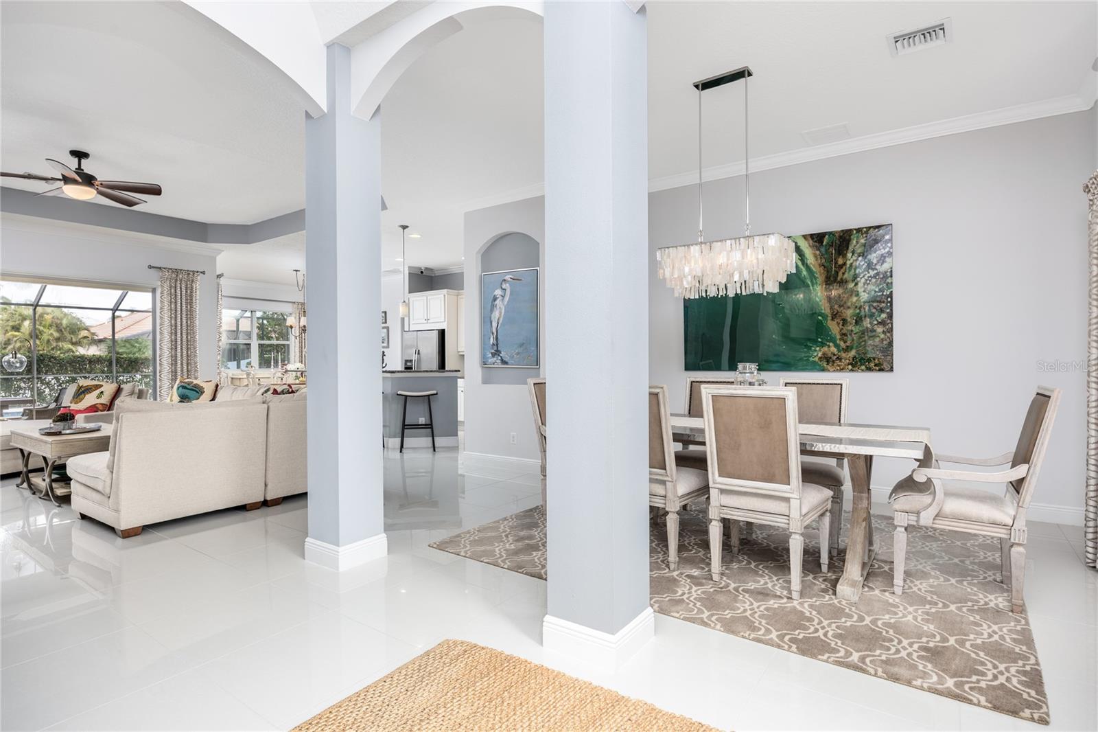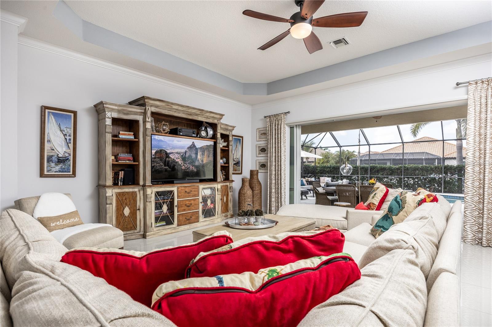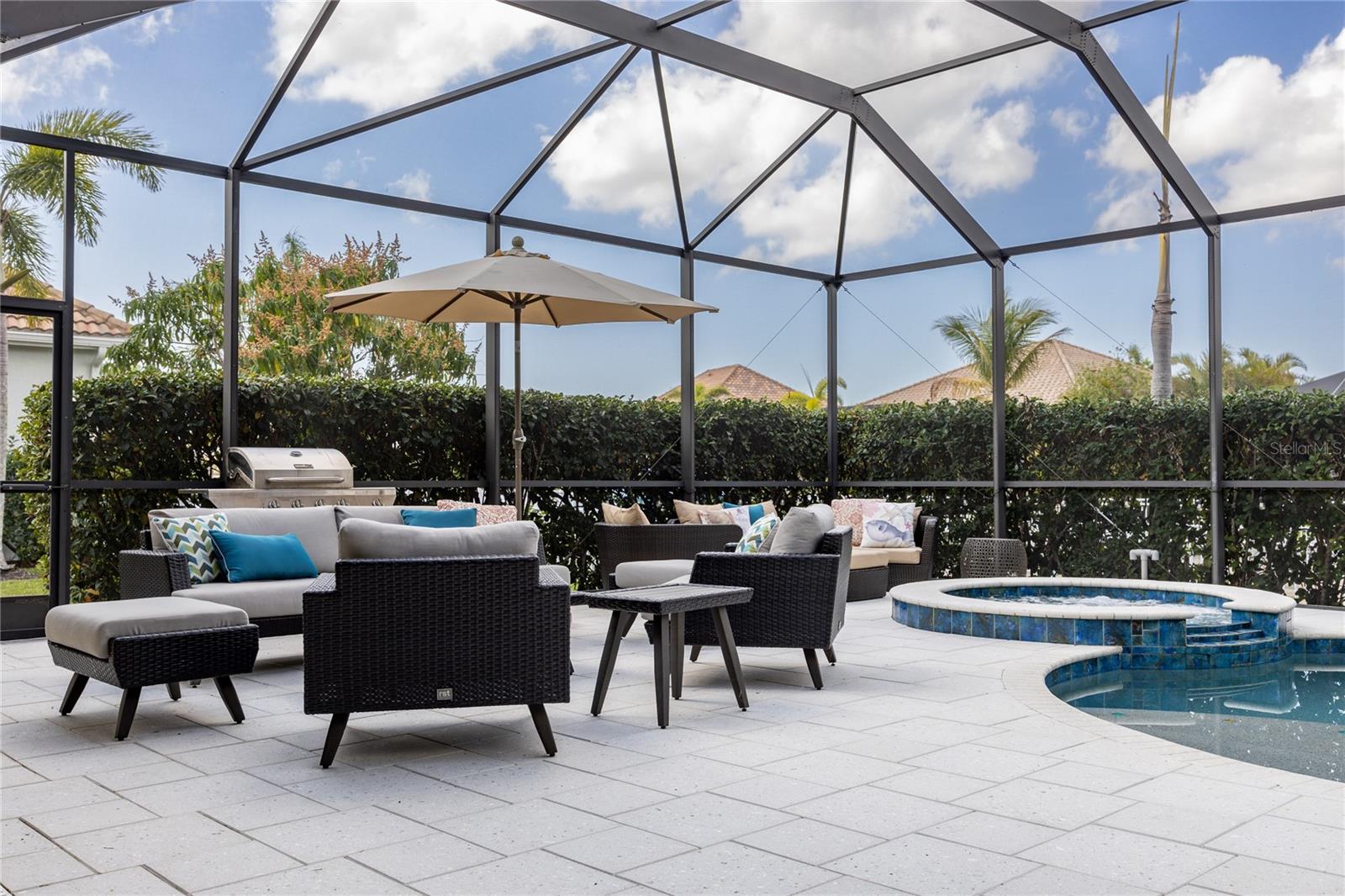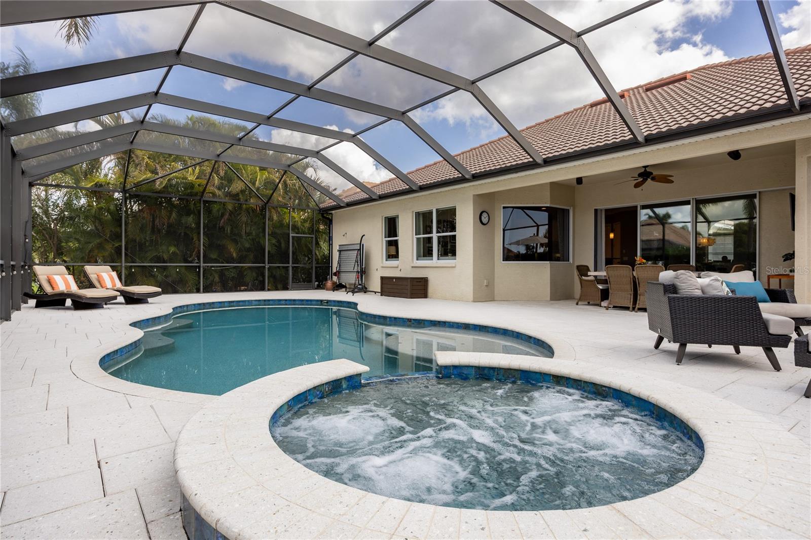 LOCATION... LOCATION... LOCATION... – AND FULLY FURNISHED!!! EXCLUSIVE GATED BOATING COMMUNITY Experience refined coastal luxury in this exceptional waterfront home, where exquisite craftsmanship and thoughtful design create a seamless blend of elegance, comfort, and indoor-outdoor living. Nestled in an exclusive gated boating community, this residence offers direct access to the Gulf of Mexico and features a private dock with a built-in elevator boat lift, providing the ultimate convenience for water enthusiasts. Situated on a private canal, this home boasts a resort-style salt water pool and spa with tranquil waterfalls, surrounded by lush, meticulously landscaped grounds that enhance both privacy and beauty. The expansive lanai serves as a true outdoor retreat, featuring a welcoming dining area with a custom concrete table, ample seating, and a relaxing lounge space, making it ideal for both quiet mornings and lively gatherings. Disappearing sliders seamlessly connect the great room to the outdoors, creating a harmonious transition between interior and exterior living spaces. Inside, the kitchen offers elegant cabinetry, sleek granite countertops, stainless steel appliances, and a spacious granite island with bar seating. A charming breakfast nook with a bay window overlooks the pool and lanai, adding to the home's inviting ambiance. A walk-in pantry provides additional storage and functionality. The open-concept design ensures a natural flow between the kitchen, dining area, and great room, where designer lighting and elegant finishes add a touch of sophistication. The versatile den/office, complete with a built-in Murphy bed, can easily serve as a fourth bedroom, making it ideal for guests, remote work, or a personal retreat. The primary suite is a private sanctuary, featuring his-and-her walk-in closets and a spa-inspired bath with a luxurious shower, deep soaking garden tub, and dual vanities. A glass-paned door opens directly to the lanai, allowing for effortless indoor-outdoor living. A paver walkway leads from the lanai to the private dock, offering easy access to the Manatee River and Gulf of Mexico. The partially fenced backyard is meticulously designed with tropical landscaping to enhance privacy while creating a serene setting. A spacious two-car garage with built-in storage provides ample space for vehicles and equipment. Lightly lived in and used only seasonally by the current owners, this home is truly Turnkey—FULLY FURNISHED and ready to move in. Residents of Harbour Walk at The Inlets enjoy an array of premium amenities, including a tennis court, a playground, an observation pier, scenic walking trails, and a kayak launch—all with no CDD fee. Conveniently located just minutes from world-renowned beaches and over 30 championship golf courses, this home offers the ultimate Florida lifestyle. Simply unlock the door and start living in paradise. Schedule your private tour today.