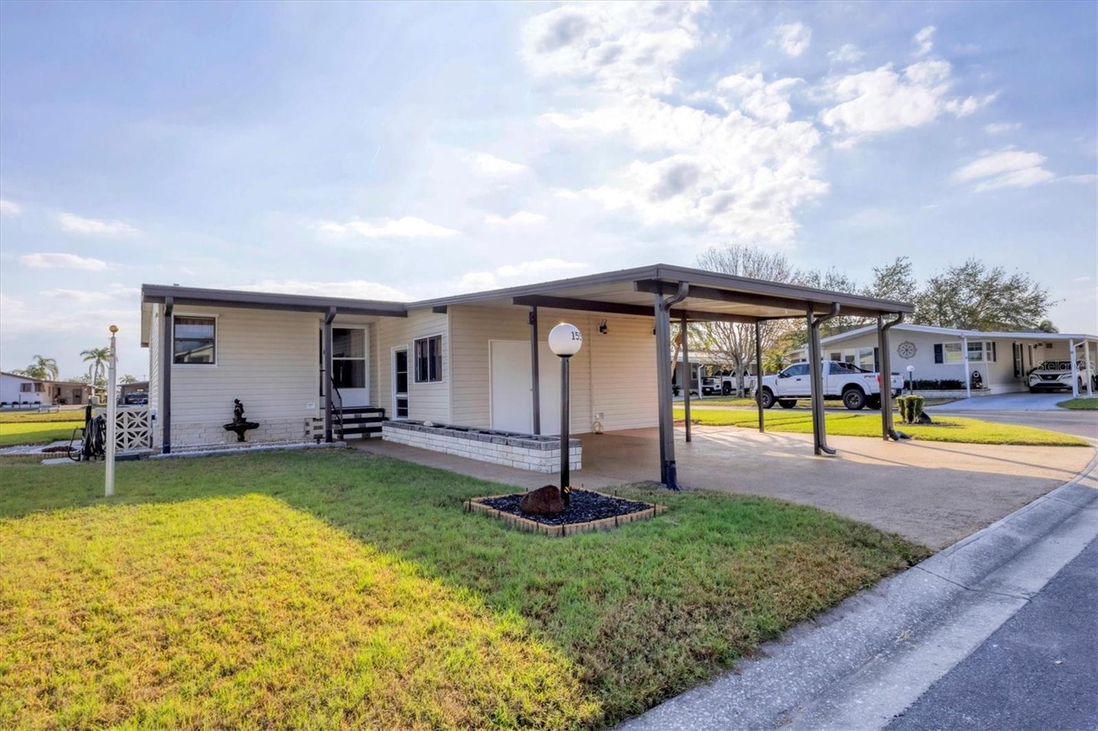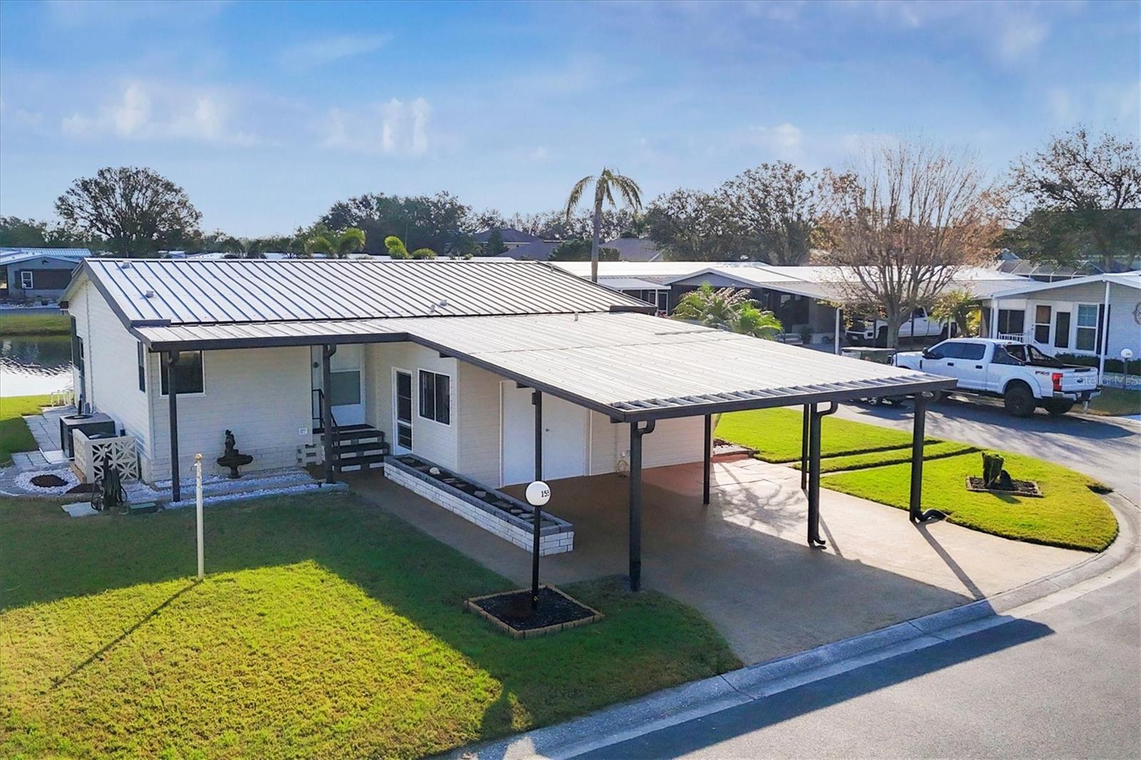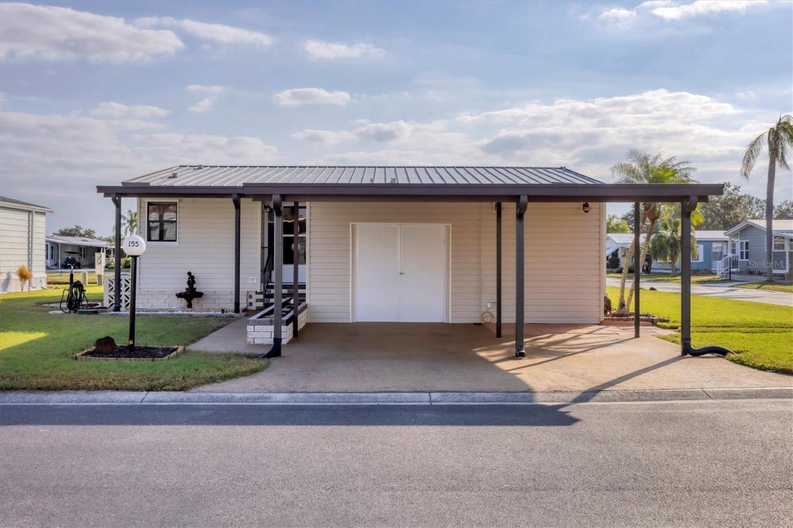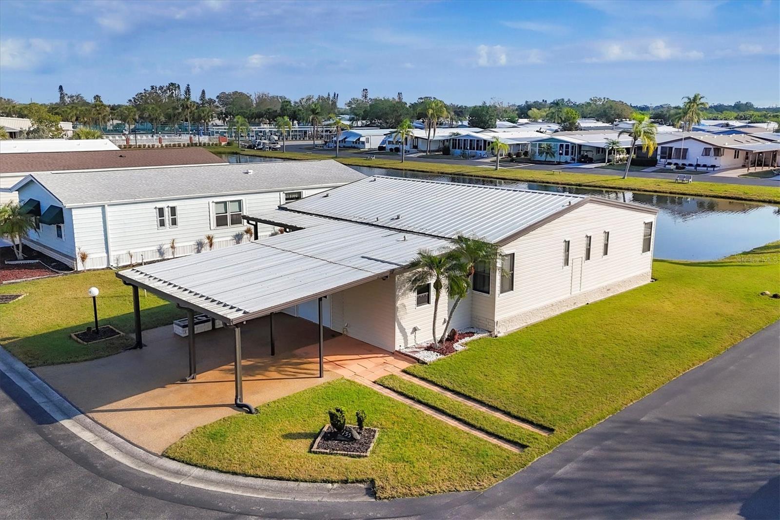 Charming Triple Wide with Water View on a Corner Lot in Gold Tree 55+ Community! Discover all the potential of this home, perfectly situated on one of the highest corner lots with great curb appeal and a serene water view in the highly sought-after Gold Tree 55+ community—where there’s NO LOT RENT and LOW HOA! Priced to allow you to customize and update to your liking, this home features 2 spacious bedrooms with walk-in closets, a durable metal roof, hurricane shutters, and a bright sunroom to enjoy the views. With plenty of storage, including an attached shed and two extra storage rooms, plus a 2-car carport, this home offers both comfort and convenience. Gold Tree is a resident-owned 55+ Co-Op community of 295 homes, where you own the shares with your purchase. Enjoy the perks of low monthly fees covering cable, internet, water, trash, lawn care, and access to a variety of resort-style amenities, including a heated pool, hot tub, fitness center, tennis courts, shuffleboard, a library, and a 15,000-square-foot clubhouse! Small pets are welcome, adding to the friendly and vibrant atmosphere. Conveniently located near shopping, dining, entertainment, and just 30 minutes from beautiful beaches, this home offers the perfect blend of relaxation and activity. Don’t miss your chance to make this home your own—schedule your showing today!