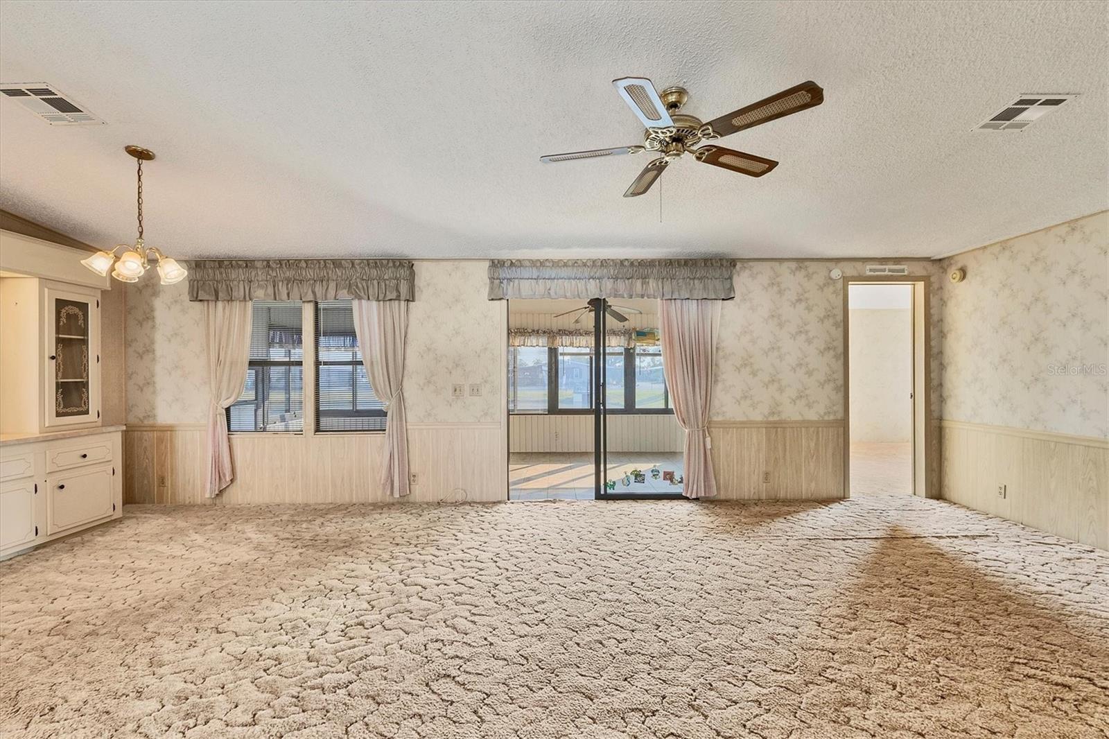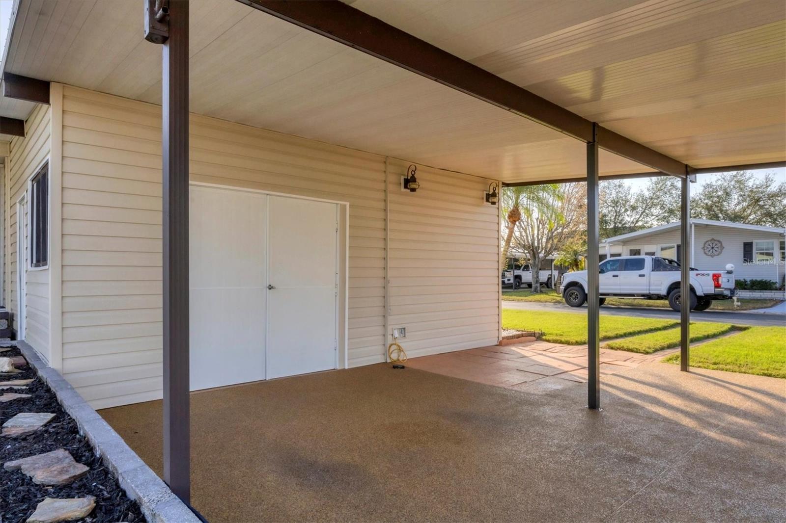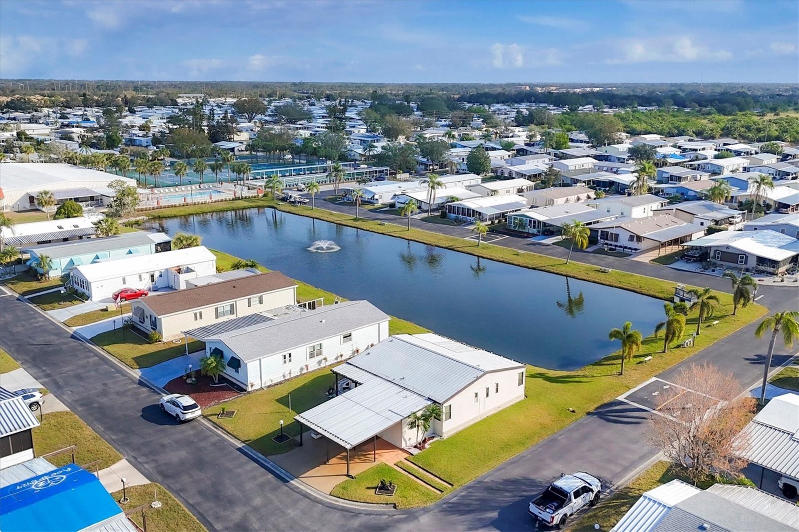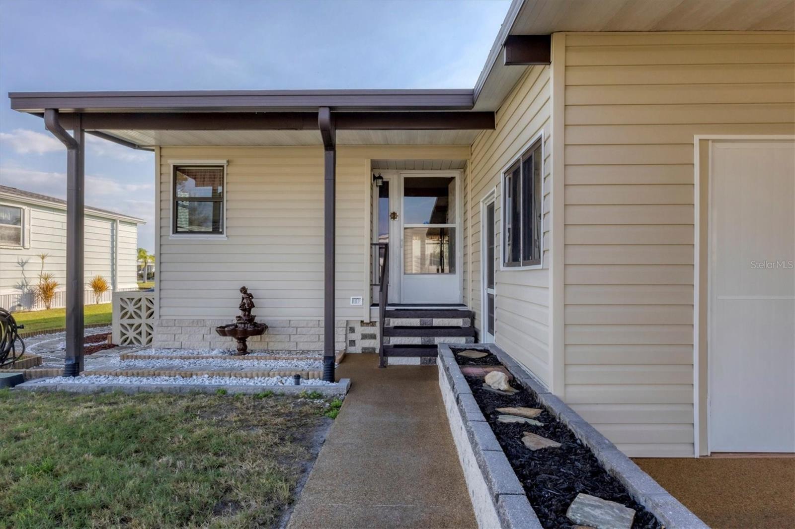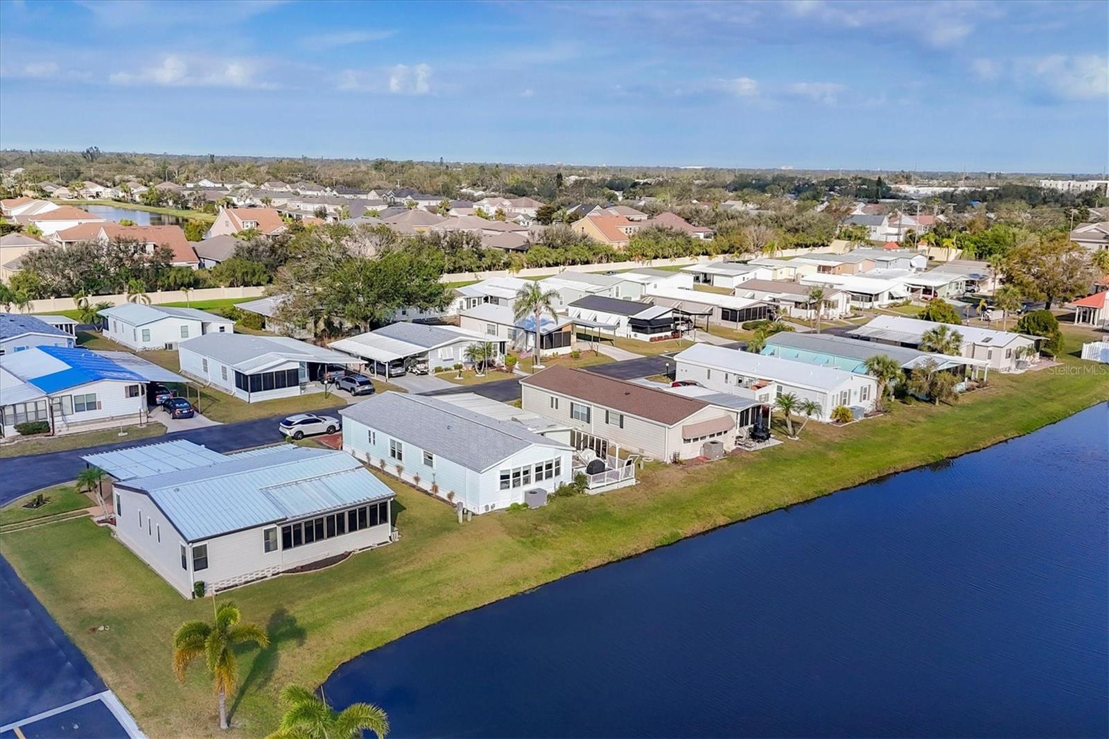 Charming Triple Wide with Water View on a Corner Lot in Gold Tree 55+ Community! Discover all the potential of this home, perfectly situated on one of the highest corner lots with great curb appeal and a serene water view in the highly sought-after Gold Tree 55+ community—where there’s NO LOT RENT and LOW HOA! Priced to allow you to customize and update to your liking, this home features 2 spacious bedrooms with walk-in closets, a durable metal roof, hurricane shutters, and a bright sunroom to enjoy the views. With plenty of storage, including an attached shed and two extra storage rooms, plus a 2-car carport, this home offers both comfort and convenience. Gold Tree is a resident-owned 55+ Co-Op community of 295 homes, where you own the shares with your purchase. Enjoy the perks of low monthly fees covering cable, internet, water, trash, lawn care, and access to a variety of resort-style amenities, including a heated pool, hot tub, fitness center, tennis courts, shuffleboard, a library, and a 15,000-square-foot clubhouse! Small pets are welcome, adding to the friendly and vibrant atmosphere. Conveniently located near shopping, dining, entertainment, and just 30 minutes from beautiful beaches, this home offers the perfect blend of relaxation and activity. Don’t miss your chance to make this home your own—schedule your showing today!