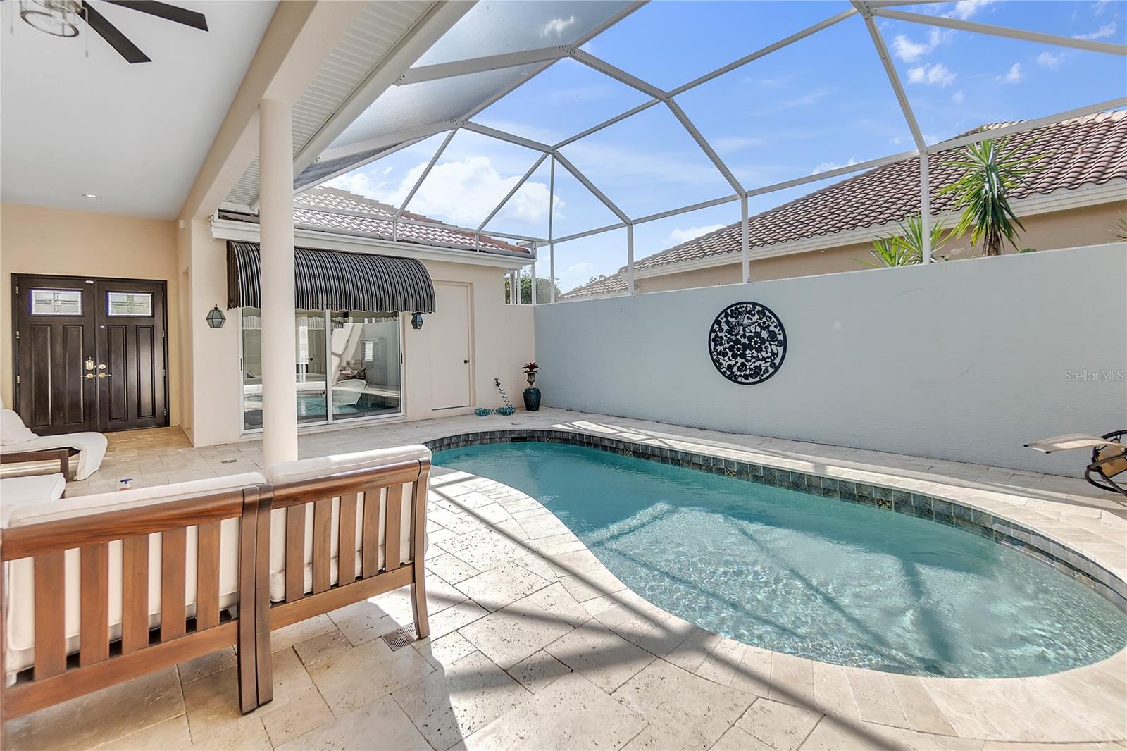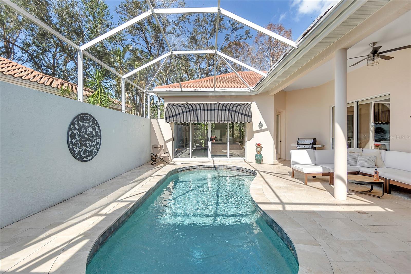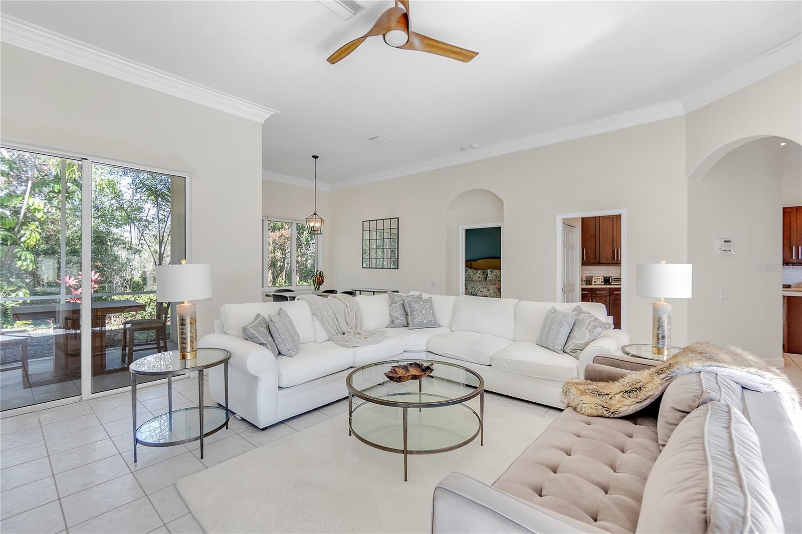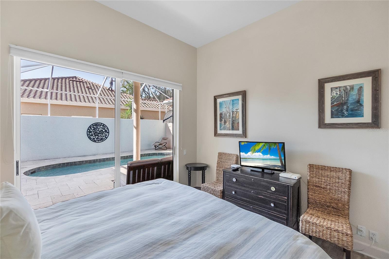 Welcome to the gated, picturesque golf community of Rosedale! This beautifully updated home boasts a modern kitchen, an abundance of natural light, and soaring ceilings that create a spacious, inviting atmosphere. As you enter, you'll be greeted by a grand entrance leading to your secluded retreat, complete with a serene courtyard and sparkling heated pool – perfect for relaxation and entertaining. The unique separate bungalow serves as a private third bedroom, art studio offering versatility and privacy. Recent updates include a new tile roof (2022), A/C (2020), and hot water heater (2020), ensuring peace of mind for years to come. The home also features a two-car garage with additional parking for your golf cart. Ideally located for easy access to I-75, and all the amenities offered by Lakewood Ranch and University Town Center. Membership of the Golf and Country Club is OPTIONAL and there are various levels of membership. The recently renovated club offers fitness, tennis, golf, dining and countless social activities!