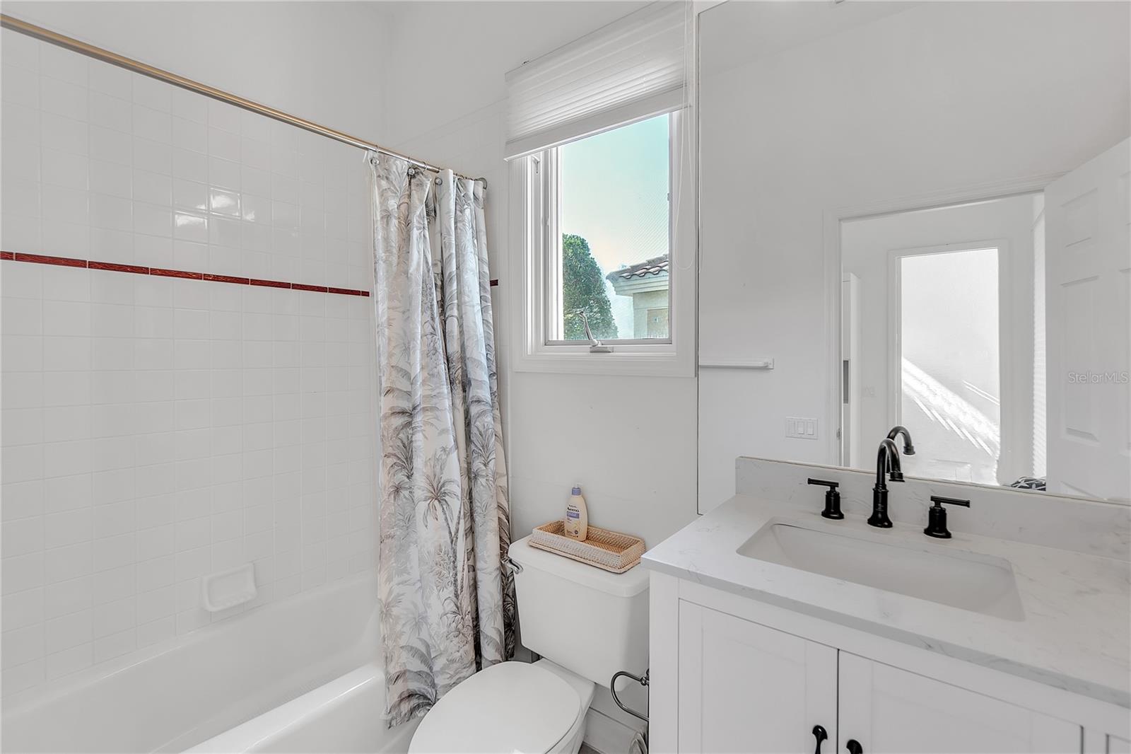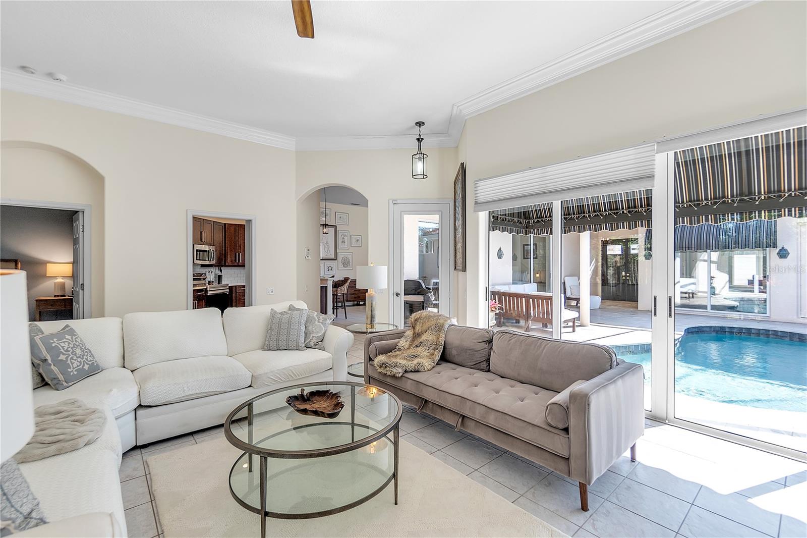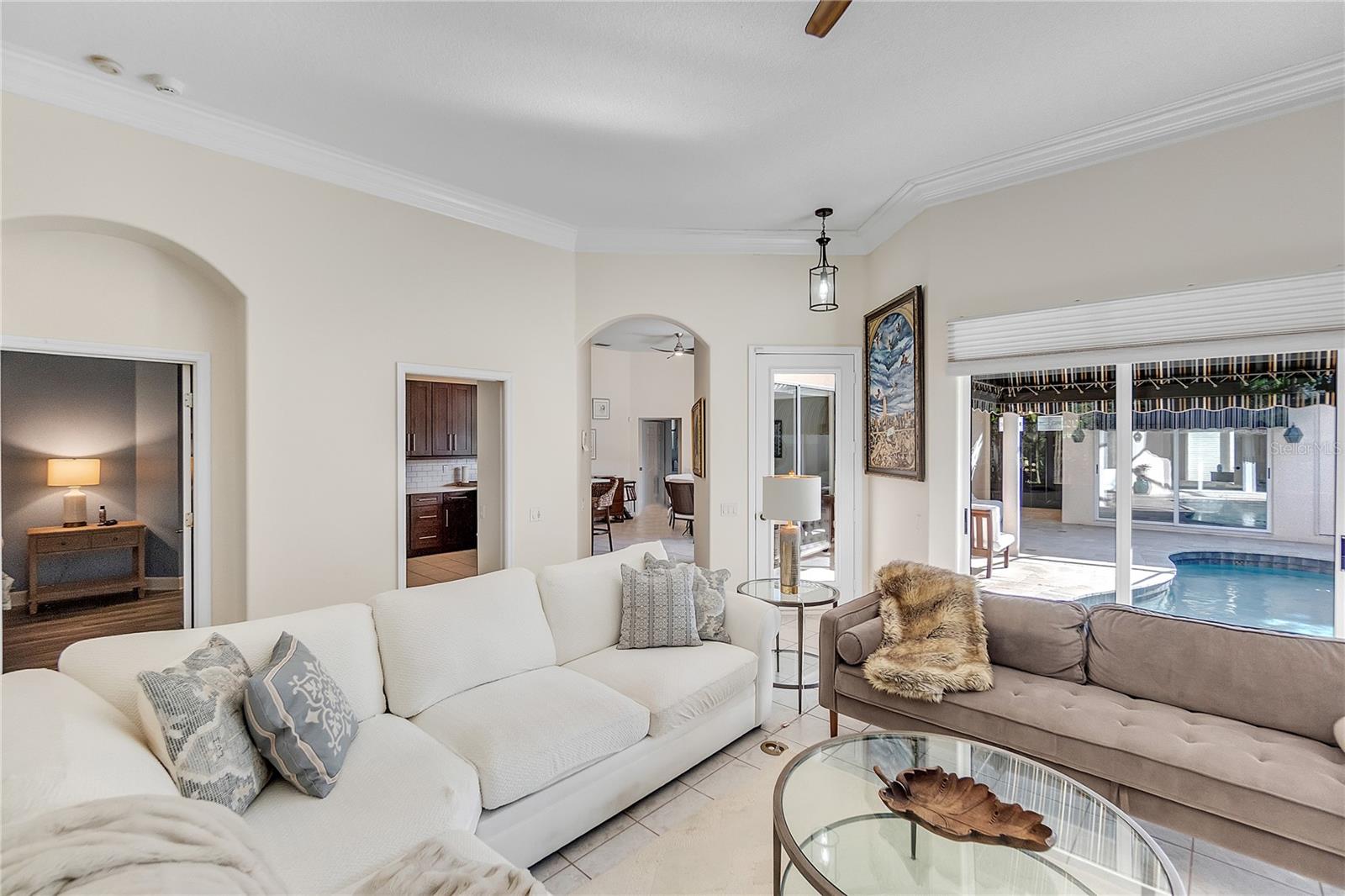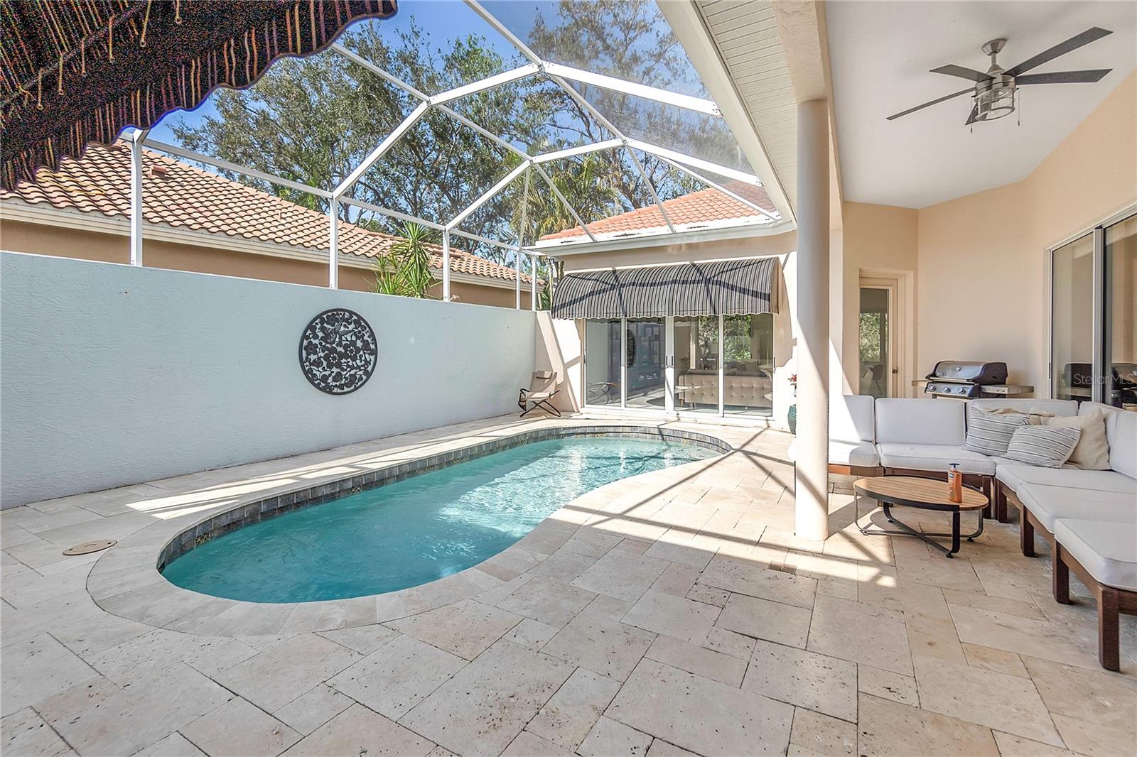 Welcome to the gated, picturesque golf community of Rosedale! This beautifully updated home boasts a modern kitchen, an abundance of natural light, and soaring ceilings that create a spacious, inviting atmosphere. As you enter, you'll be greeted by a grand entrance leading to your secluded retreat, complete with a serene courtyard and sparkling heated pool – perfect for relaxation and entertaining. The unique separate bungalow serves as a private third bedroom, art studio offering versatility and privacy. Recent updates include a new tile roof (2022), A/C (2020), and hot water heater (2020), ensuring peace of mind for years to come. The home also features a two-car garage with additional parking for your golf cart. Ideally located for easy access to I-75, and all the amenities offered by Lakewood Ranch and University Town Center. Membership of the Golf and Country Club is OPTIONAL and there are various levels of membership. The recently renovated club offers fitness, tennis, golf, dining and countless social activities!