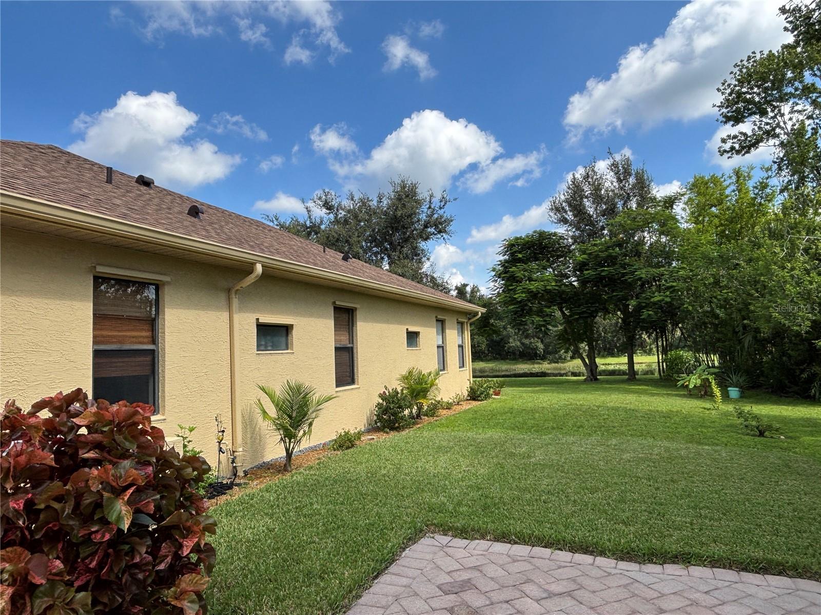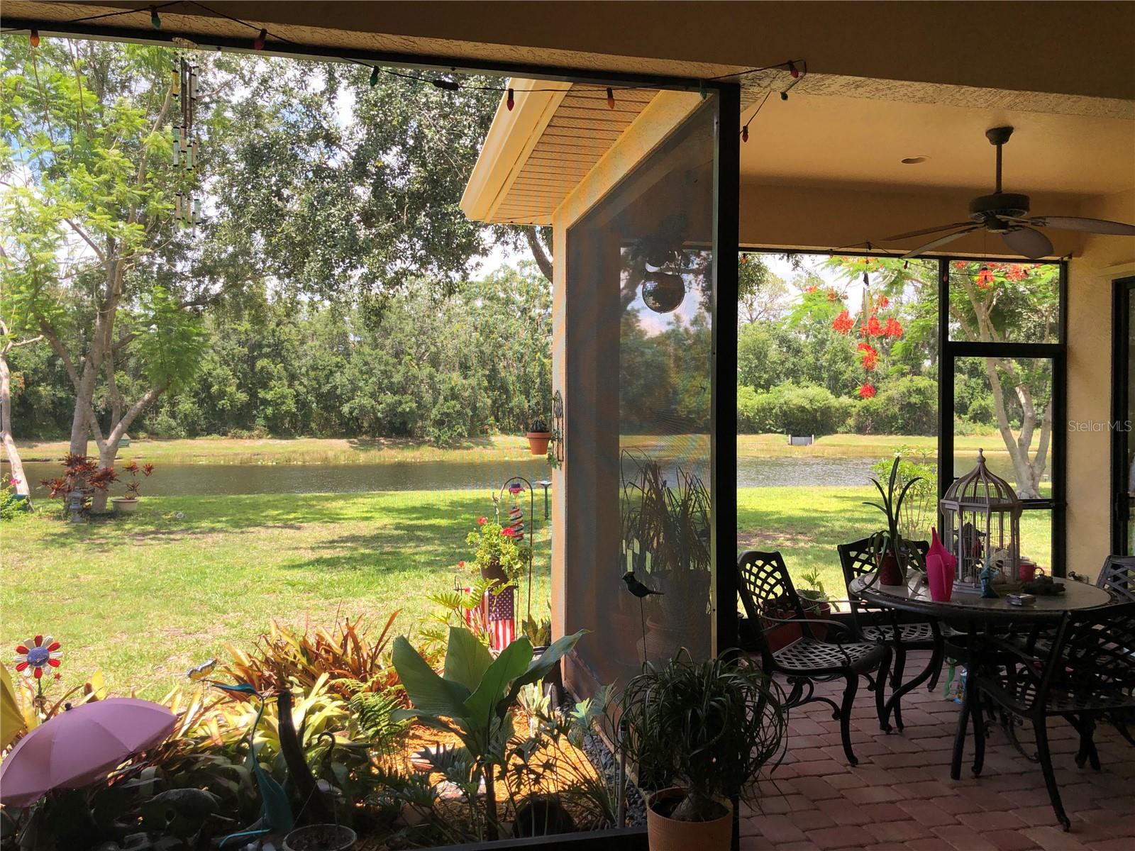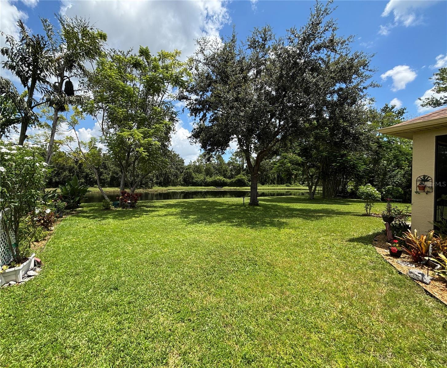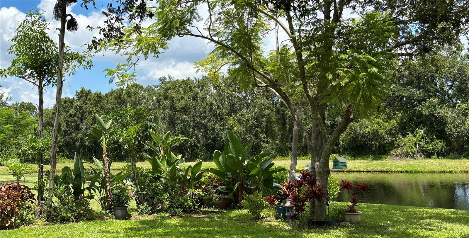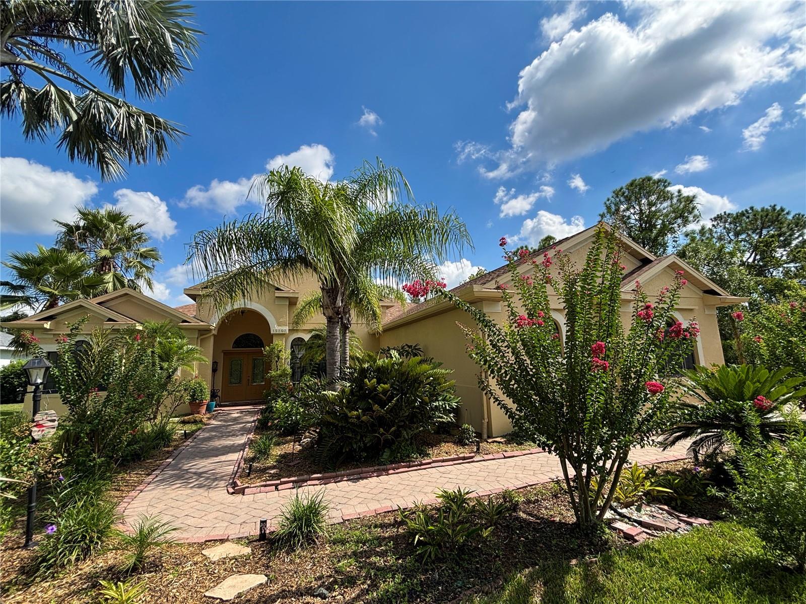 Enveloped within the scenes & sounds of nature, wildlife, & exotic mature landscaping, welcome to the next chapter of stunning Florida living! Step inside to discover a floor plan that blends comfort & privacy with its triple split bedrooms & pocket doors, yet flows seamlessly for entertaining. With no carpet to deal with, enjoy tile floors & engineered hardwood flooring in all 3 bedrooms + the sprawling den/4th bedroom, located at the back of the home. With pocket doors closing this area off if desired, this would be a perfect area as a teen or in law suite. The kitchen has wood cabinets & new (2024) appliances. Prepare to be distracted with the picturesque pond views or herons flying in for a landing from the aquarium windows in the kitchen eating nook. Other special features include a formal dining room with a wet bar area adjacent, huge great room with patio doors out to the L shaped lanai & an electric fireplace for those few cool Florida evenings. The owners suite has patio doors to the lanai, 2 closets with custom built ins, a shower with bench & jetted tub in the bathroom. The 2nd bath has a tub/shower combination & the 3rd bath has a walk in shower. Architectural details abound with crown molding, tray ceilings, 8 ft doors, clerestory sliver windows, niches, decorative or storage nooks, pocket doors, paver driveway/walkway/lanai floor & more. The expansive 3 car garage with a lighted tiled storage closet is positioned alongside the side yard where options exist to park a larger vehicle/boat or add a shop, truly a rare find! The extra breathing room of the larger lot sizes (almost 1/2 an acre) allows mature landscaping with open areas that can easily accommodate a pool or extended lanai. The front area would be perfect for a secluded courtyard, or plot out a garden in the side or back. Speaking of that, what a backyard find! Situated in the center of the pond, enjoy panoramic views from multiple seating options on the L shaped lanai with a special area for your grill. Easy on/off acrylic & metal hurricane shutters in the garage. A new roof (Jan 2025) & fresh paint outside & in, this home in Mill Creek with a low HOA & NO CDD is located near highly rated schools, shopping including Costco, restaurants, & the 44th St. extension for easier access to the beaches. Having only 2 primary resident owners, this home has been loved & cared for throughout the years, has great neighbors, & is ready & waiting for YOU!