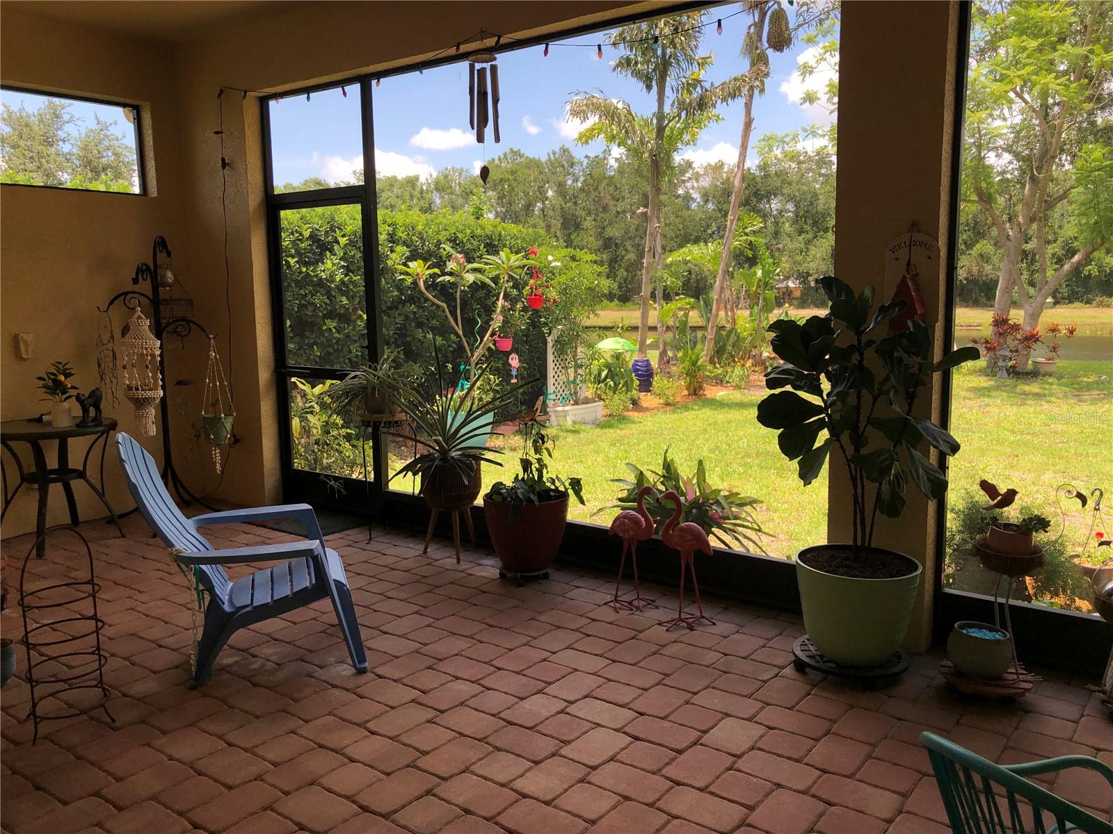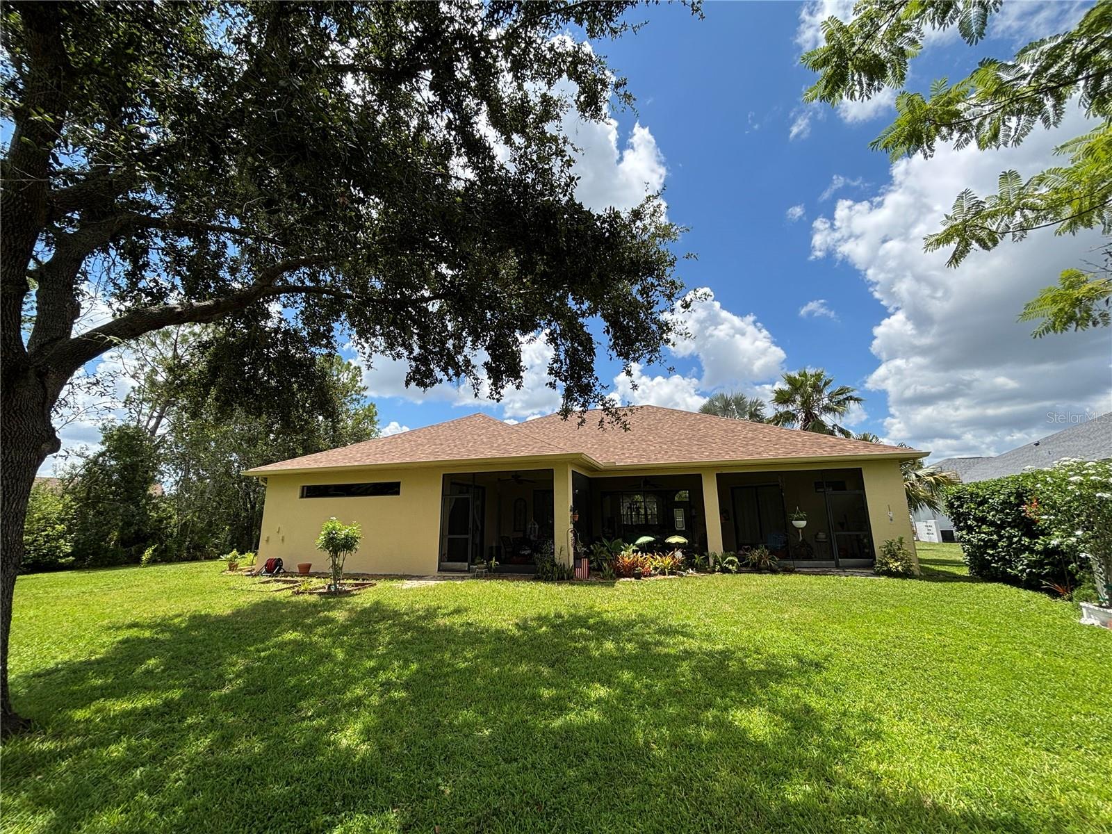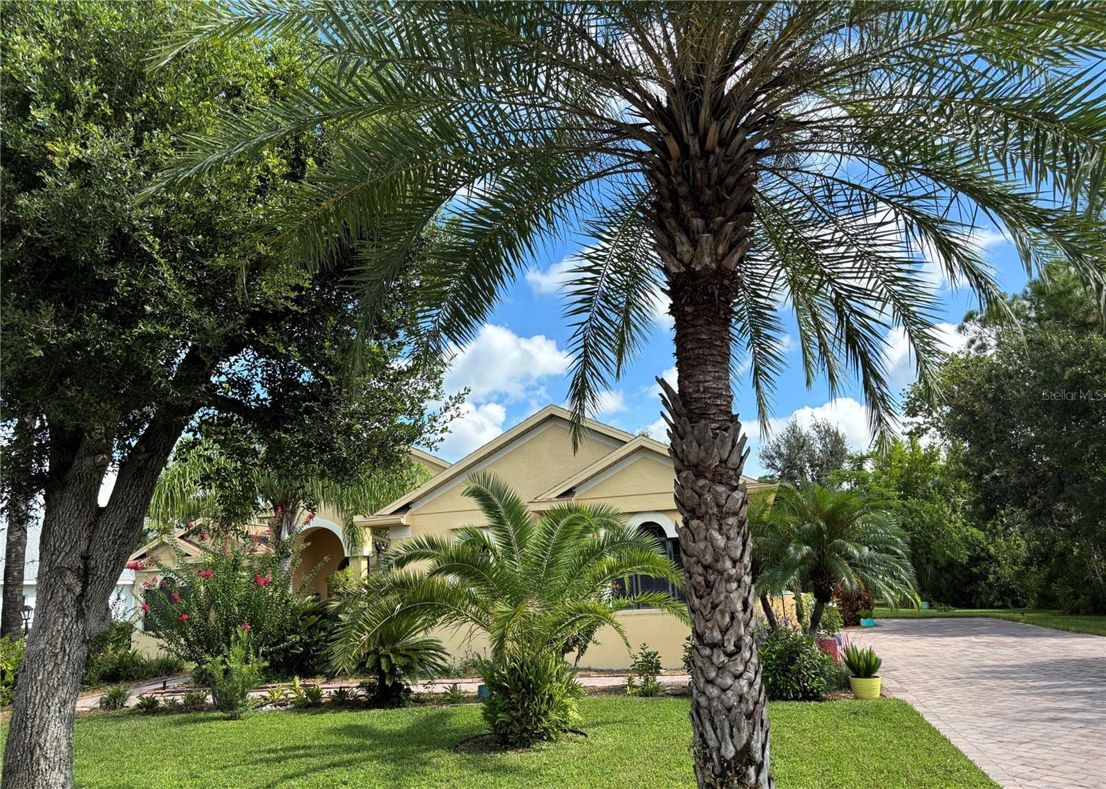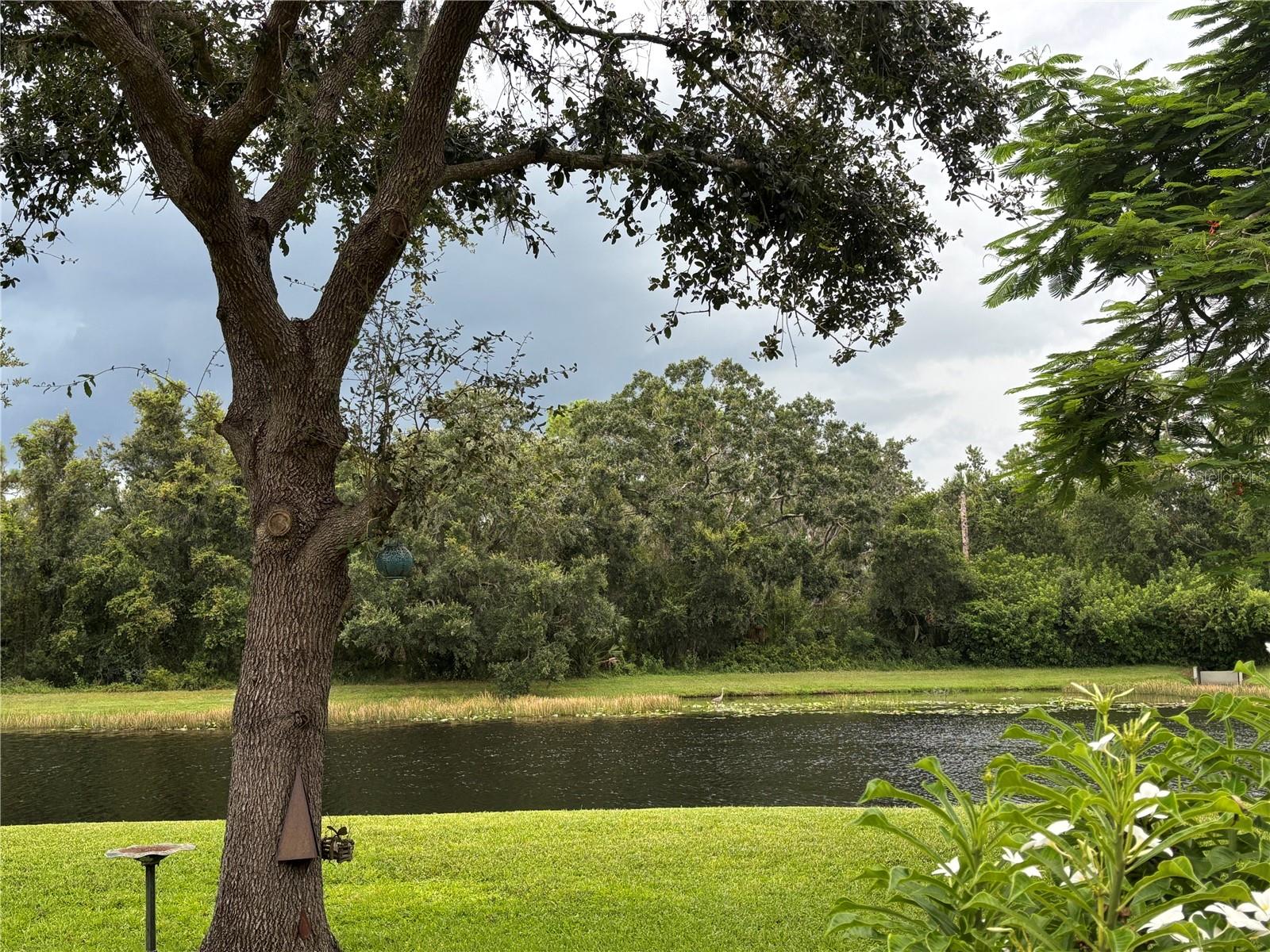 Enveloped within the scenes & sounds of nature, wildlife, & exotic mature landscaping, welcome to the next chapter of stunning Florida living! Step inside to discover a floor plan that blends comfort & privacy with its triple split bedrooms & pocket doors, yet flows seamlessly for entertaining. With no carpet to deal with, enjoy tile floors & engineered hardwood flooring in all 3 bedrooms + the sprawling den/4th bedroom, located at the back of the home. With pocket doors closing this area off if desired, this would be a perfect area as a teen or in law suite. The kitchen has wood cabinets & new (2024) appliances. Prepare to be distracted with the picturesque pond views or herons flying in for a landing from the aquarium windows in the kitchen eating nook. Other special features include a formal dining room with a wet bar area adjacent, huge great room with patio doors out to the L shaped lanai & an electric fireplace for those few cool Florida evenings. The owners suite has patio doors to the lanai, 2 closets with custom built ins, a shower with bench & jetted tub in the bathroom. The 2nd bath has a tub/shower combination & the 3rd bath has a walk in shower. Architectural details abound with crown molding, tray ceilings, 8 ft doors, clerestory sliver windows, niches, decorative or storage nooks, pocket doors, paver driveway/walkway/lanai floor & more. The expansive 3 car garage with a lighted tiled storage closet is positioned alongside the side yard where options exist to park a larger vehicle/boat or add a shop, truly a rare find! The extra breathing room of the larger lot sizes (almost 1/2 an acre) allows mature landscaping with open areas that can easily accommodate a pool or extended lanai. The front area would be perfect for a secluded courtyard, or plot out a garden in the side or back. Speaking of that, what a backyard find! Situated in the center of the pond, enjoy panoramic views from multiple seating options on the L shaped lanai with a special area for your grill. Easy on/off acrylic & metal hurricane shutters in the garage. A new roof (Jan 2025) & fresh paint outside & in, this home in Mill Creek with a low HOA & NO CDD is located near highly rated schools, shopping including Costco, restaurants, & the 44th St. extension for easier access to the beaches. Having only 2 primary resident owners, this home has been loved & cared for throughout the years, has great neighbors, & is ready & waiting for YOU!